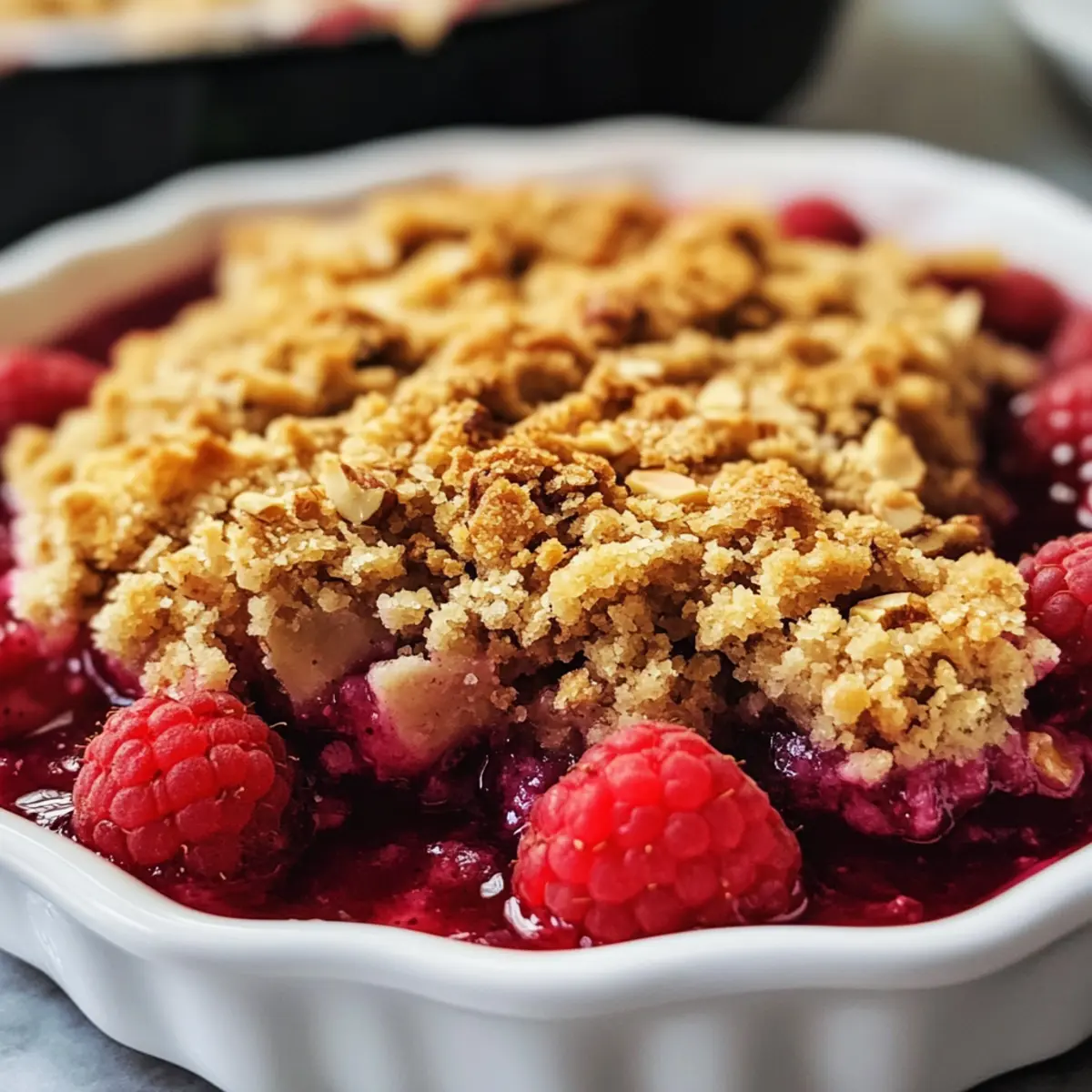 Während ich in meiner Küche stand und die köstlichen Aromen von frischen Himbeeren einströmten, wurde mir klar, dass nichts eine gemütliche Zusammenkunft so schön abrundet wie ein himmlisch gutes Himbeer-Crumble Rezept. Diese klassische Nachspeise besticht durch die perfekte Balance zwischen dem fruchtigen, leicht sauren Geschmack der Himbeeren und dem knackigen, buttrigen Topping – ein wahres Komfortessen! Was ich an diesem Rezept besonders liebe, ist seine Vielseitigkeit: Es lässt sich einfach anpassen, sodass jeder etwas davon genießen kann, ob vegan oder glutenfrei. Mit nur wenigen Zutaten ist es im Handumdrehen zubereitet und wird sicherlich zum Hit bei deinen Gästen oder als süßer Genuss für einen entspannten Abend. Bereit, deinen Kochlöffel zu schwingen und ein Stück vom leckeren Glück zu zaubern? Warum wird dir dieses Himbeer-Crumble Rezept gefallen? Einfachheit, die begeistert: Die Zubereitung ist denkbar unkompliziert und erfordert nur wenige Grundzutaten. So gelingt der Himbeer-Crumble auch Kochanfängern mühelos! Fruchtiger Genuss: Die saftigen Himbeeren verleihen dem Dessert eine erfrischende Note, während das buttrige Topping die perfekte Textur ergänzt. Vielseitigkeit: Du kannst dieses Rezept ganz einfach vegan oder glutenfrei abwandeln, sodass für jeden Geschmack etwas dabei ist. Schnell zubereitet: In nur 30 Minuten steht dieser köstliche Crumble frisch aus dem Ofen auf dem Tisch – perfekt für spontane Zusammenkünfte. Lieblingsgericht: Ob mit einer Kugel Vanilleeis oder pur – dieses Himbeer-Crumble ist ein Publikumsliebling, das jeder gerne teilt! Himbeer-Crumble Zutaten Für die Füllung • Himbeeren – 500 g frische Himbeeren sorgen für die perfekte fruchtige Note; du kannst auch gefrorene Himbeeren benutzen, aber taue sie vorher auf und lasse sie abtropfen. • Zucker – 100 g Zucker süßt die Füllung; du kannst auch Honig oder Ahornsirup verwenden. Für die Kruste • Butter – 100 g kalte Butter gibt dem Topping die gewünschte Buttrigkeit; du kannst auch vegane Butter oder Kokosöl verwenden. • Mehl – 150 g Mehl sorgt dafür, dass die Kruste schön knusprig wird; alternativ kannst du glutenfreies Mehl verwenden. • Haferflocken – 50 g Haferflocken verleihen der Kruste zusätzlichen Biss und Nährstoffe. • Salz – Eine Prise Salz verstärkt den Geschmack und balanciert die Süße. Der Fokus liegt hier auf dem Himbeer-Crumble Rezept, das sowohl klassisch als auch anpassbar ist! Schritt-für-Schritt-Anleitung für das Himbeer-Crumble Rezept Schritt 1: Ofen vorheizen Heize deinen Ofen auf 180 Grad Celsius vor. Dies ist wichtig, um sicherzustellen, dass dein Himbeer-Crumble gleichmäßig und perfekt gebacken wird. Nutze ein Blech oder eine Auflaufform, die du mit etwas Butter einfettest oder mit Backpapier auslegst, um ein Ankleben zu vermeiden. Schritt 2: Himbeeren vorbereiten Gib die 500 g frischen Himbeeren in die vorbereitete Auflaufform. Streue 50 g Zucker gleichmäßig über die Himbeeren, um deren natürlichen Geschmack zu intensivieren und eine süße Basis zu schaffen. Lass die Himbeeren kurz stehen, damit sie ihren Saft abgeben können, was dem Crumble später einen köstlichen Fruchtgeschmack verleiht. Schritt 3: Kruste zubereiten In einer großen Schüssel vermischst du 150 g Mehl, die restlichen 50 g Zucker, 50 g Haferflocken und eine Prise Salz. Füge dann die kalte Butter in kleinen Stückchen hinzu. Mit den Händen oder einer Gabel knetest du die Mischung, bis sie eine krümelige Textur erreicht. Diese Mischung wird gleichmäßig über die Himbeeren verteilt, um ein perfektes Topping zu schaffen. Schritt 4: Topping verteilen Streue die krümelige Mischung gleichmäßig über die Himbeeren in der Auflaufform. Achte darauf, dass die Himbeeren gut bedeckt sind, um die Früchte beim Backen zu schützen und ein schönes, goldbraunes Finish zu erzielen. Dieser Schritt sorgt dafür, dass das Himbeer-Crumble Rezept sowohl Geschmack als auch Textur in jedem Bissen bietet. Schritt 5: Backen Schiebe die Auflaufform in den vorgeheizten Ofen und backe das Himbeer-Crumble für etwa 30 Minuten. Achte darauf, dass die Oberseite goldbraun und knusprig ist, bevor du das Crumble aus dem Ofen nimmst. Die Himbeeren sollten beim Backen sprudeln, was auf die perfekte Konsistenz der Füllung hinweist. Schritt 6: Abkühlen und servieren Lass dein Himbeer-Crumble nach dem Backen für 10-15 Minuten abkühlen. Dies gibt der Füllung die Möglichkeit, sich zu setzen, was das Servieren erleichtert. Du kannst es warm genießen oder mit einer Kugel Vanilleeis oder etwas Schlagsahne servieren, um das Geschmackserlebnis noch weiter zu verbessern. Was passt zum Himbeer-Crumble Rezept? Genieße die perfekte Kombination aus Aromen und Texturen, die jedes Stück Himbeer-Crumble zu einem besonderen Erlebnis macht. Vanilleeis: Eine Kugel cremiges Vanilleeis bringt eine süße kühle Note zu dem warmen, fruchtigen Dessert. Diese Kombination ist einfach himmlisch! Der Kontrast zwischen warm und kalt wird dein Geschmackserlebnis unvergesslich machen. Schlagsahne: Ein großzügiger Klecks frisch geschlagener Sahne sorgt für eine luftige, süße Begleitung und hebt den fruchtigen Geschmack des Crumbles hervor. Diese einfache Ergänzung macht jeden Bissen noch köstlicher. Griechischer Joghurt: Eine Portion griechischer Joghurt mit Honig ist eine gesunde, aber geschmackvolle Wahl, die Cremigkeit und zusätzliche Frische bringt. Perfekt, wenn du nach einer leichten, proteinreichen Option suchst. Frische Minze: Ein paar Blätter frische Minze bringen ein überraschendes Aroma und einen tollen Farbtupfer zur Nahaufnahme. Die Kräuternote harmoniert wunderbar mit den Himbeeren. Zitronensorbet: Leicht und erfrischend, verbindet dieses Sorbet die Süße des Crumbles mit einer spritzigen Zitrusnote, die den Gaumen belebt. Kaffee oder Tee: Ein belebender Kaffee oder ein aromatischer Tee rundet das Essen schön ab und sorgt für eine entspannende Atmosphäre nach
