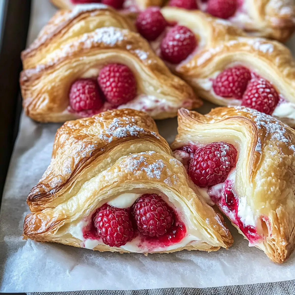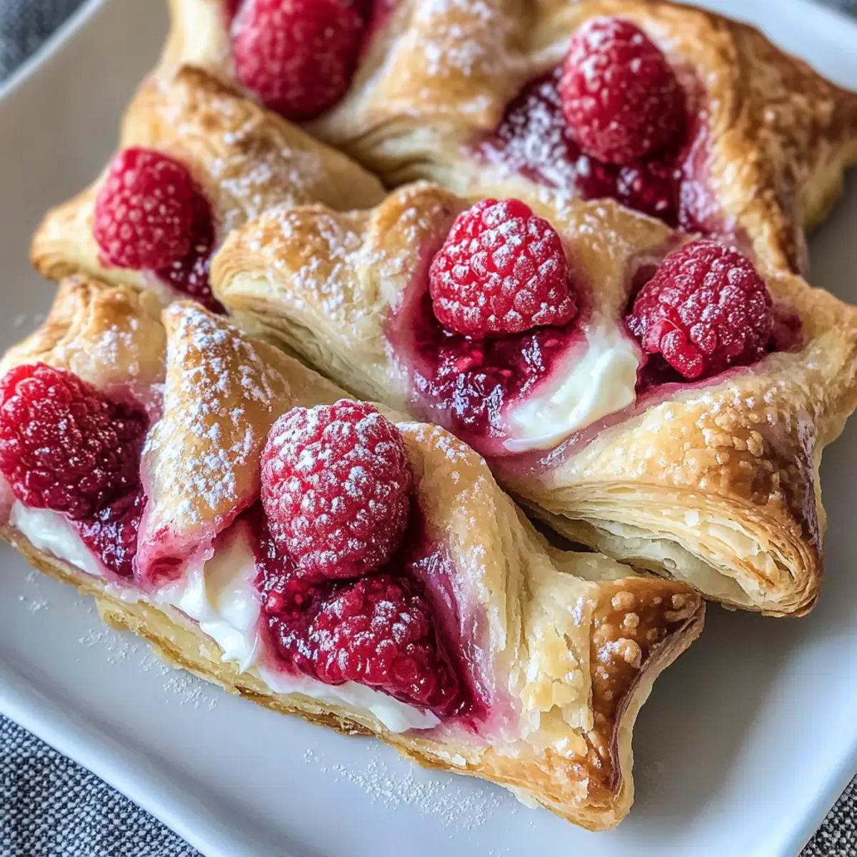 Es gibt nichts Schöneres, als den köstlichen Duft von frisch gebackenem Gebäck, der durch die Küche zieht. Heute lade ich dich ein, mit mir diese verführerischen Himbeer-Danish zu zaubern – eine einfache, aber beeindruckende Mischung aus knusprigem Blätterteig und einer cremigen Füllung aus Frischkäse, die dein Frühstück oder Dessert in ein kleines Fest verwandelt. Mit ihrer saftigen Beerennote und dem zarten, buttrigen Teig sind diese Himbeer-Danish nicht nur ein echter Augenschmaus, sondern lassen sich auch wunderbar im Voraus zubereiten oder einfrieren. Welche anderen geschmacklichen Überraschungen könnten wir heute noch entdecken? Warum wird dieser Himbeer-Danish geliebt? Einfachheit: Der gesamte Prozess ist unkompliziert, selbst für unerfahrene Bäcker. Alles, was du brauchst, ist ein wenig Zeit und Grundkenntnisse im Backen. Fruchtige Frische: Die Kombination aus frischen Himbeeren und cremigem Frischkäse sorgt für ein Geschmackserlebnis, das einfach himmlisch ist. Vielfältige Varianten: Sei kreativ! Du kannst die Himbeeren durch Blaubeeren oder Äpfel ersetzen oder etwas Zitronensaft für einen spritzigen Kick hinzufügen. Himmlische Texturen: Die perfekte Balance zwischen knusprigem Blätterteig und einer zährigen, fluffigen Füllung macht jeden Biss zu einem Genuss. Vorbereitung: Diese Leckerei lässt sich wunderbar im Voraus zubereiten – ideal für sonnige Frühstücke oder Überraschungsbesuche. Warum nicht gleich ein paar in den Gefrierschrank legen? Verpasse nicht die Gelegenheit, deine Küche mit dem Geruch frisch gebackener Leckereien zu füllen! Himbeer-Danish Zutaten • Hier sind die Zutaten, die du brauchst, um diesen Himbeer-Danish zu zaubern! Für den Teig • Gefrorenes Blätterteig – sorgt für die flauschige und knusprige Textur; vor der Verwendung auftauen und im Kühlschrank lagern. • Mehl – zum Bestäuben der Arbeitsfläche, um ein Ankleben zu verhindern. Für die Füllung • Frische Himbeeren – bringen fruchtigen Geschmack und natürliche Süße; verwende reife Beeren, um die Mischung optimal abzustimmen. • Frischkäse – bildet die cremige Füllung; achten darauf, dass er weich ist für eine einfache Mischung. • Puderzucker – süßt die Frischkäsemischung; füge mehr hinzu, falls die Himbeeren sehr sauer sind. • Vanilleextrakt – verbessert den Gesamtgeschmack; verwende reinen Vanilleextrakt für das beste Aroma. • Ei – für die Eiwäsche, um eine goldene Kruste zu erzeugen; mit Wasser und Salz verquirlen und auf das Gebäck auftragen. Schritt-für-Schritt-Anleitung für Himbeer-Danish mit cremiger Füllung ganz einfach Step 1: Füllung vorbereiten Vermenge den soften Frischkäse, Puderzucker und Vanilleextrakt in einer Schüssel mit einem Handmixer, bis die Mischung cremig und glatt ist. Achte darauf, dass die Süße angepasst wird, falls die Himbeeren etwas sauer sind. Diese cremige Füllung ist das Herzstück deiner Himbeer-Danish und sorgt für ein unvergessliches Geschmackserlebnis. Step 2: Eiwäsche zubereiten Schlage das Ei, Wasser und eine Prise Salz in einer kleinen Schüssel gut auf, bis alles gleichmäßig vermischt ist. Diese Eiwäsche wird später auf die Blätterteigstücke aufgetragen, um ihnen eine goldene, appetitliche Farbe zu verleihen, wenn sie gebacken werden. Bereite sie im Voraus vor, damit du sie griffbereit hast. Step 3: Teig vorbereiten Rolle den aufgetauten Blätterteig auf einer leicht bemehlten Arbeitsfläche aus, bis er eine quadratische Form von etwa 27 cm (10,5 Zoll) hat. Schneide den Teig in neun gleich große Quadrate von etwa 8,5 cm (3,5 Zoll) üblicherweise. Diese Quadrate sind die Grundlage für deine himmlischen Himbeer-Danish und sollten gleichmäßig geschnitten werden, um eine einheitliche Backzeit zu garantieren. Step 4: Pastries zusammenstellen Platziere weniger als einen Esslöffel der Frischkäsemischung in der Mitte jedes Blätterteigquadrates. Belege die Füllung mit vier frischen Himbeeren auf jeder Portion und sorge dafür, dass die Beeren gleichmäßig verteilt sind. Klappe die Ecken der Teigquadrate zur Mitte hin, um sie zu versiegeln und achte darauf, dass nichts aus der Füllung herausläuft. Step 5: Pastries kühlen Lege die geformten Himbeer-Danish auf ein mit Backpapier ausgelegtes Backblech und stelle sie für mindestens 30 Minuten in den Gefrierschrank. Dies hilft, den Teig fest zu halten, sodass er beim Backen schön aufgeht und knusprig wird. Achte darauf, dass die Pastries nicht zusammenkleben. Step 6: Ofen vorheizen Während die Himbeer-Danish im Gefrierschrank sind, heize deinen Ofen auf 200 °C (400 °F) vor. Ein gut vorgeheizter Ofen ist entscheidend, um die perfekte knusprige Kruste zu erzielen und die Füllung gut zu garen. Nutze diese Zeit, um deine Arbeitsfläche für das Backen vorzubereiten. Step 7: Backen Nimm die Pastries aus dem Gefrierschrank und bestreiche die Oberseiten vorsichtig mit der vorbereiteten Eiwäsche. Achte darauf, dass du sie gleichmäßig bestreichst, um ein schönes Goldbraun zu erzielen. Backe die Himbeer-Danish im vorgeheizten Ofen für 25-30 Minuten, bis sie schön goldbraun und knusprig sind. Ein guter Indikator ist die gleichmäßige Färbung des Teigs. Step 8: Servieren Lass die gebackenen Himbeer-Danish einige Minuten auf dem Blech abkühlen, bevor du sie auf einen Servierteller gibst. Optional kannst du sie vor dem Servieren mit Puderzucker bestäuben, um einen Hauch von Süße und einen schönen Look zu verleihen. Diese leckeren Himbeer-Danish sind nun bereit, deine Gäste zu begeistern oder einfach dein Frühstück zu versüßen. Tipps für den besten Himbeer-Danish Kalte Zutaten: Achte darauf, dass der Blätterteig und die Füllung kalt bleiben, um eine perfekte, knusprige Textur zu erreichen. Kälte ist dein bester Freund! Beerenwahl: Verwende reife Himbeeren für den besten Geschmack und eine angenehme Süße. Berücksichtige ihre Säure und passe die Zuckermenge entsprechend an. Gleichmäßige Füllung: Nutze e