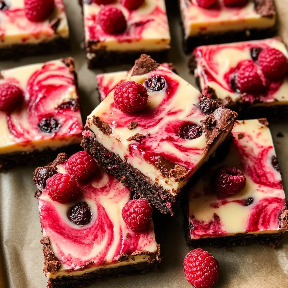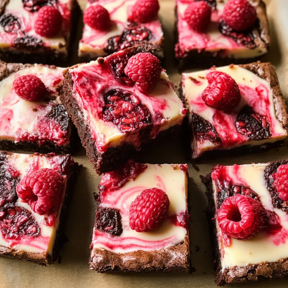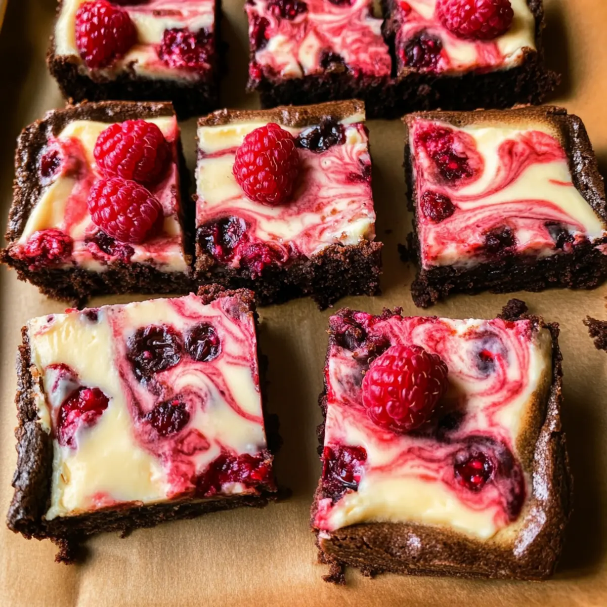 Köstliche Himbeer-Käsekuchen-Braunies vereinen die Aromen von dunkler Schokolade, feiner Vanille und frischen Himbeeren für ein unvergleichliches Dessert.