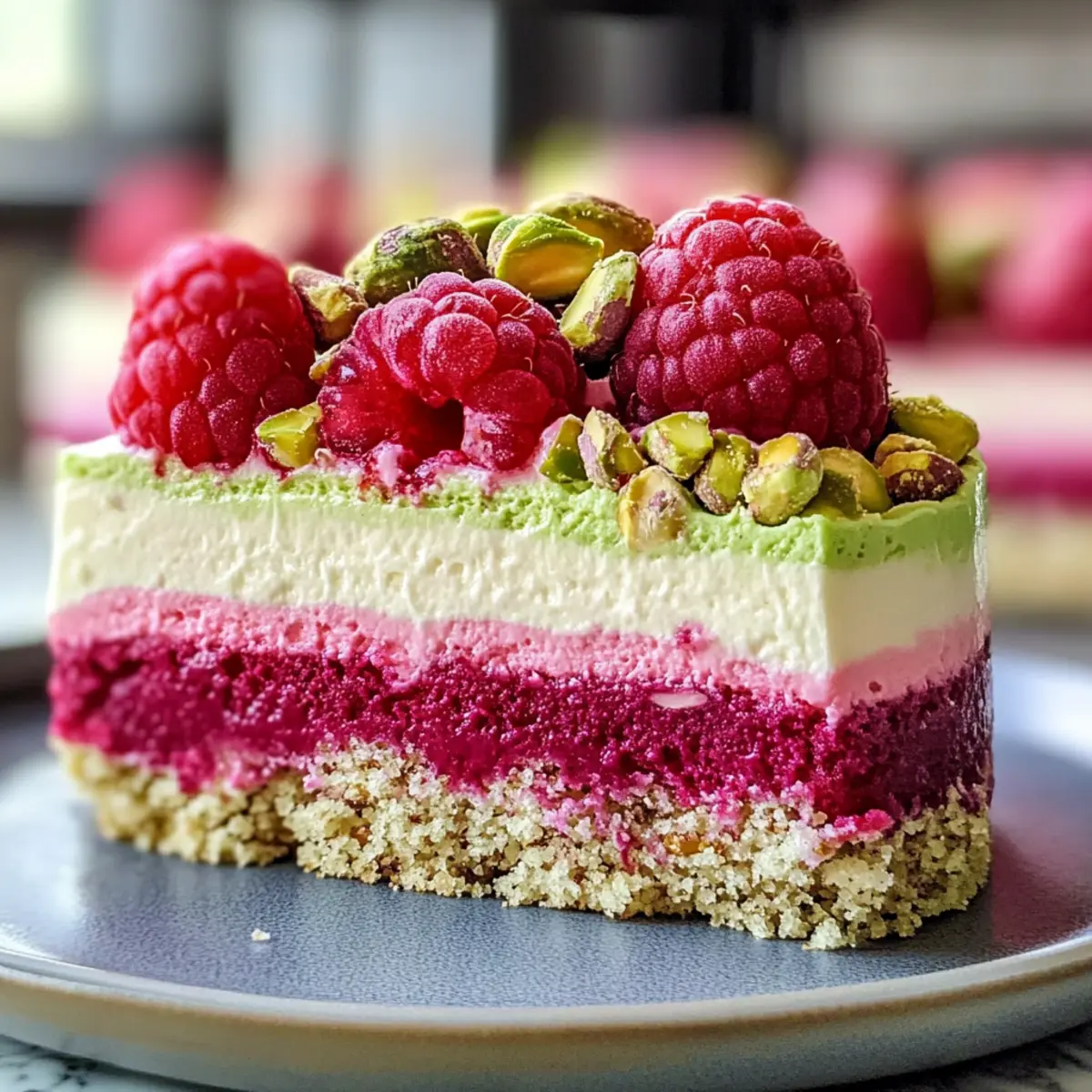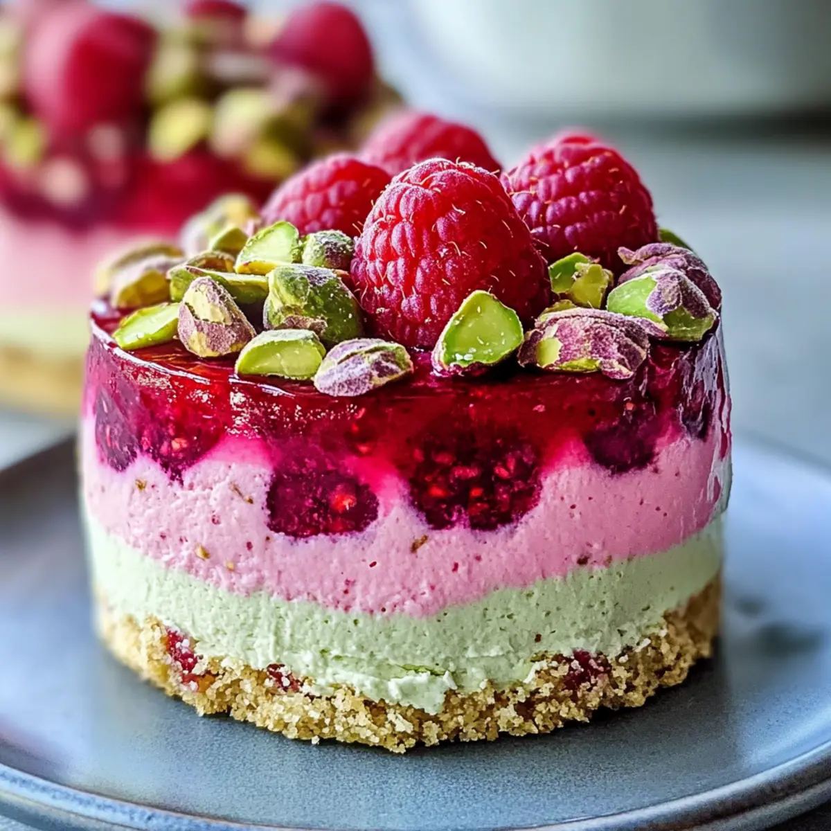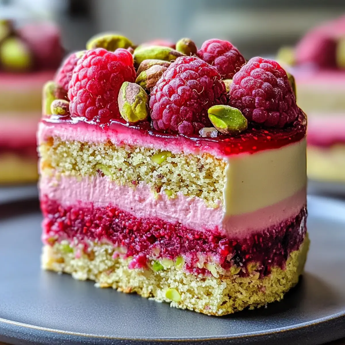 Himbeer-Pistazien-Mousse-Kuchen ist eine fruchtige Versuchung für jeden Anlass, perfekt für feierliche Erlebnisse.