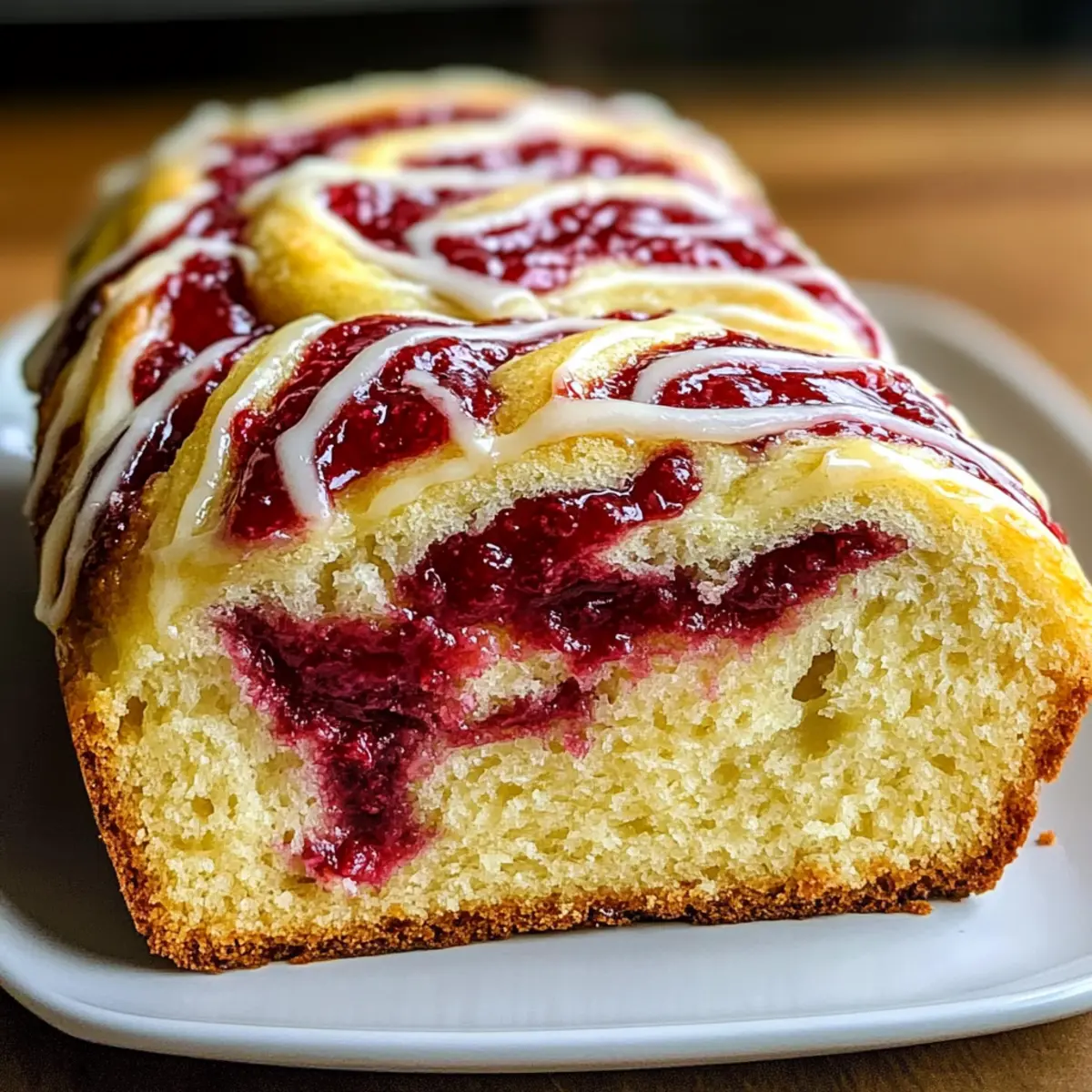 Entdecken Sie den Himbeerwirbel-Brioche-Laib, ein Fest für die Sinne mit fruchtiger Himbeerfüllung und buttrigem Teig.