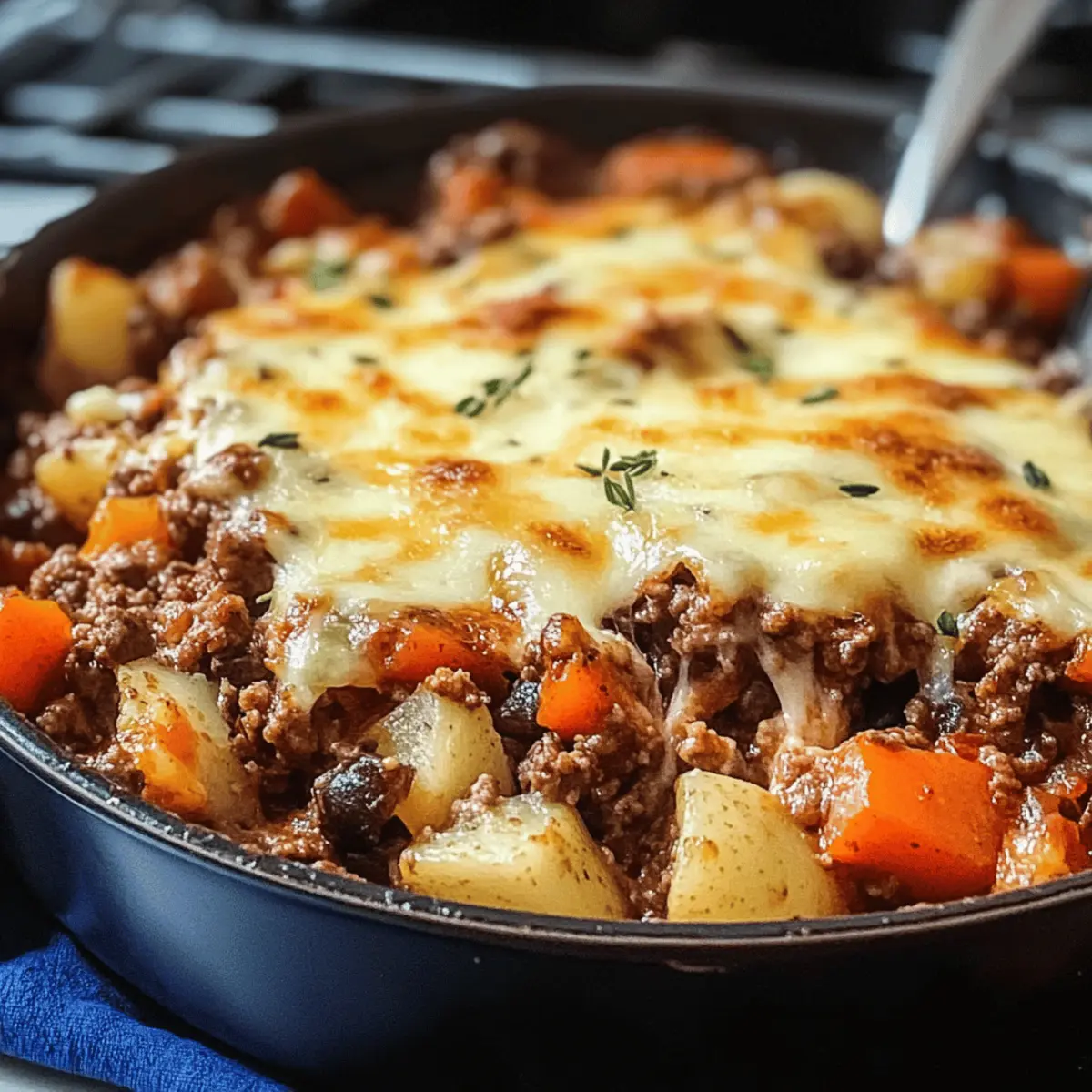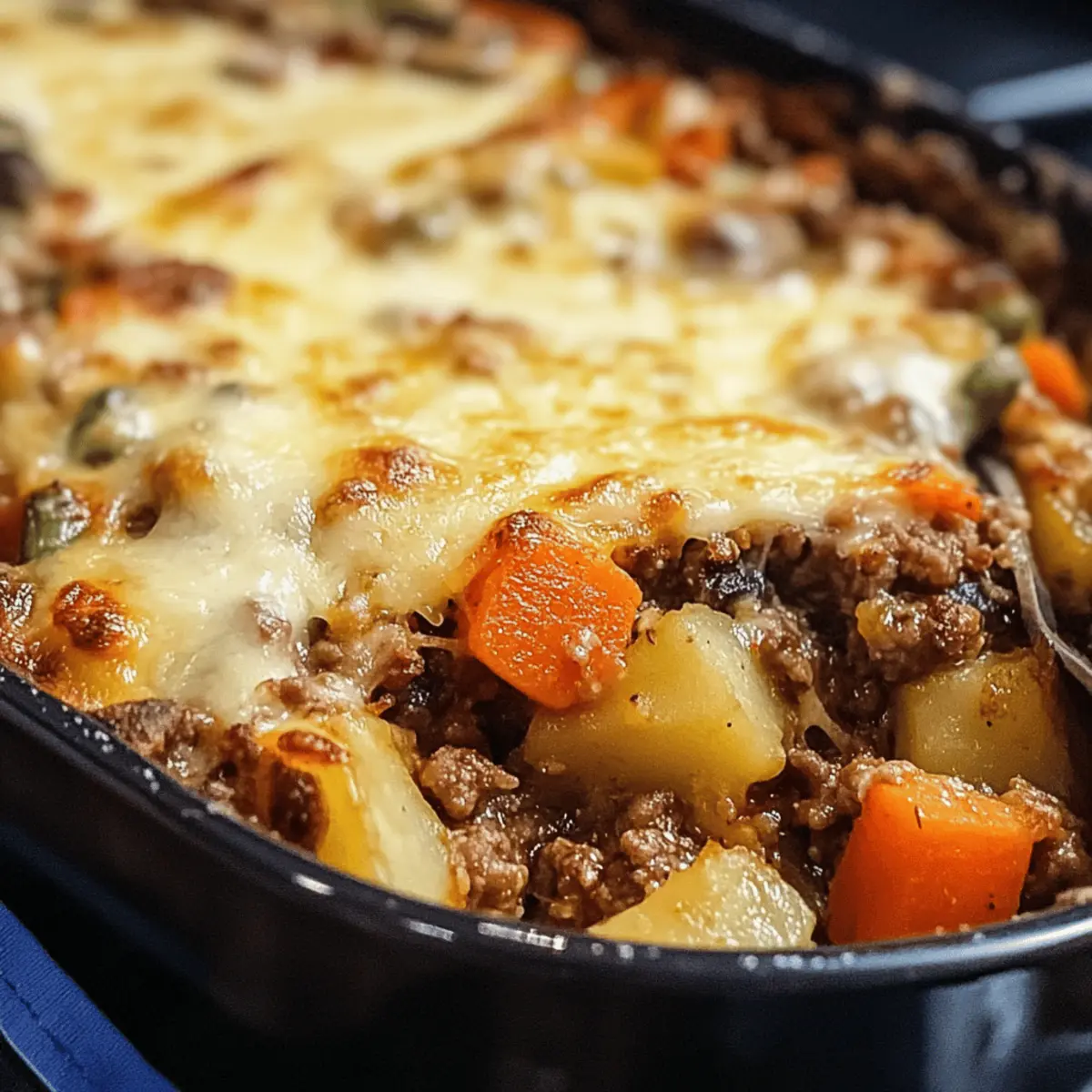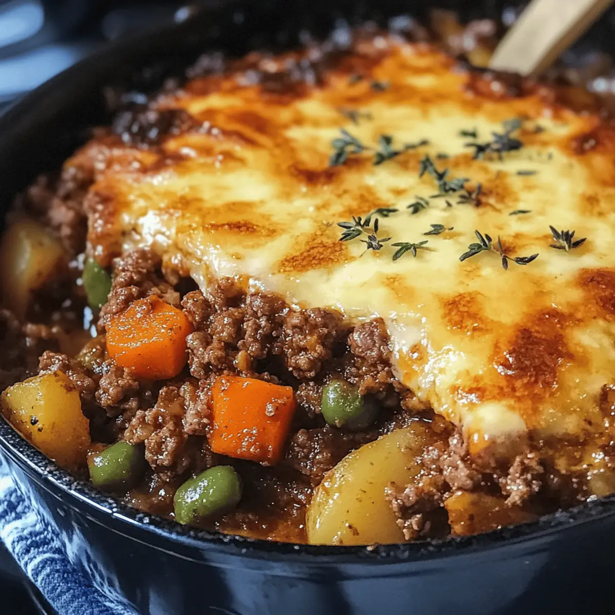 Zuletzt dachte ich an den verführerischen Duft, der aus der Küche strömte, als ich meinen ersten Hobo-Auflauf zubereitete. Dieses rustikale Gericht, das ursprünglich von Wanderarbeitern erfunden wurde, ist heute ein wahrer Klassiker, der Herzen und Mägen gleichermaßen erfreut. Der Hobo-Auflauf vereint einfach zuzubereitende Zutaten und vielfältige Variationen, sodass er sich perfekt für jede Gelegenheit eignet, ob für ein entspanntes Abendessen mit der Familie oder einen ungezwungenen Abend mit Freunden. Mit einem schnellen Vorbereitungsaufwand und der Möglichkeit, ihn nach persönlichen Vorlieben anzupassen, wird dieser Auflauf zum unkomplizierten Komfortessen, das nicht nur sättigt, sondern auch das Band zwischen den Menschen stärkt. Neugierig, wie eine Mischung aus Fleisch, Gemüse und herzhafter Brühe zu einem köstlichen Erlebnis werden kann? Lass uns gemeinsam den Herd anheizen und den Hobo-Auflauf kreieren! Warum ist der Hobo-Auflauf ein Hit? Vielseitigkeit: Der Hobo-Auflauf lässt sich mit verschiedenen Fleischsorten oder einer vegetarischen Option zubereiten, sodass für jeden Geschmack etwas dabei ist. Einfache Zubereitung: Mit wenigen, leicht verfügbaren Zutaten ist dieser Auflauf selbst für Kochanfänger ein Kinderspiel. Sättigende Kombination: Die Mischung aus herzhaftem Fleisch, frischem Gemüse und cremigem Käse macht jede Portion zu einem Hochgenuss. Zeitersparnis: Leckeres Essen in weniger als einer Stunde, ideal für beschäftigte Tage! Und wenn du mehr Ideen suchst, wie du deinem Hobo-Auflauf Vielfalt verleihen kannst, schau dir Variationen für deinen Hobo-Auflauf an. Gemütliches Zusammenkommen: Perfekt für gesellige Abende, bei denen sich alle um den Tisch versammeln und die köstlichen Aromen genießen können. Hobo-Auflauf Zutaten • Für das Fleisch Hackfleisch (500 g) – Hauptzutat, sorgt für den herzhaften Geschmack; Substitution: Rind, Huhn oder vegane Alternative. • Für das Gemüse Kartoffeln (4 mittelgroße) – Grundsubstanz und Sättigung; Geschält und gewürfelt für gleichmäßiges Garen. Karotten (3) – Für Süße und Farbe; Zucchini oder anderes Gemüse sind als Alternativen möglich. Zwiebel (1) – Aromageber, verstärkt den Geschmack; Schalotten oder Frühlingszwiebeln sind gute Substitutionen. Rotes Paprikastück (1) – Gibt etwas Süße und Farbe; grüner oder gelber Paprika kann ebenfalls verwendet werden. Grüne Bohnen (300 g) – Für Textur und Frische; frisch oder gefroren verwenden. • Für die Flüssigkeit und Gewürze Rinder- oder Gemüsebrühe (400 ml) – Fügt Flüssigkeit und Tiefe hinzu. Paprika (1 TL) – Gewürz für zusätzliche Würze; sorgt für einen intensiven Geschmack. Knoblauchpulver (1 TL) – Aromatisiert das Gericht; perfekt für eine geschmackvolle Note. Salz (1 TL) – Grundgeschmack; unverzichtbar für den perfekten Geschmack. Pfeffer (½ TL) – Für eine leichte Schärfe; nach persönlichem Geschmack anpassen. • Für das Anbraten Pflanzenöl (1 EL) – Zum Anbraten des Fleisches; sorgt dafür, dass alles schön bräunt. • Für den Belag (optional) Geriebener Käse (200 g) – Für einen cremigen, leckeren Abschluss; Feta oder Mozzarella sind köstliche Alternativen. Mit diesen Zutaten zauberst du einen leckeren Hobo-Auflauf, der das Herz von Jung und Alt erfreut! Schritt-für-Schritt-Anleitung für Hobo-Auflauf Step 1: Ofen vorheizen Heize den Ofen auf 180°C (350°F) vor. Dies ist wichtig, damit der Hobo-Auflauf gleichmäßig und perfekt gegart wird. Nutze die Zeit, während der Ofen aufheizt, um alle Zutaten vorzubereiten. So ist alles bereit für den nächsten Schritt und du kannst dich auf das Kochen konzentrieren. Step 2: Hackfleisch anbraten Erhitze in einer großen Pfanne das Pflanzenöl bei mittlerer Hitze. Gib das Hackfleisch hinein und brate es für etwa 10–12 Minuten, bis es durchgegart und schön braun ist. Achte darauf, das Fleisch beim Braten gut zu zerteilen, sodass es gleichmäßig bräunt. Dies sorgt für zusätzlichen Geschmack im Hobo-Auflauf. Step 3: Gemüse vorbereiten Vermenge in einer großen Schüssel das angebratene Hackfleisch mit den gewürfelten Kartoffeln, Karotten, Zwiebel, Paprika und den grünen Bohnen. Achte darauf, dass alles gut verteilt ist, um einen gleichmäßigen Geschmack zu gewährleisten. Diese Mischung bildet das Herzstück des Hobo-Auflaufs und bringt alle Aromen zusammen. Step 4: Brühe und Gewürze hinzufügen Gieße die Rinder- oder Gemüsebrühe über die Hackfleisch-Gemüsemischung. Streue Paprika, Knoblauchpulver, Salz und Pfeffer dazu. Mische alles gut durch, damit die Gewürze gleichmäßig verteilt sind. Dies verleiht deinem Hobo-Auflauf nicht nur Geschmack, sondern sorgt auch für eine köstliche Konsistenz. Step 5: In die Auflaufform geben Lege die vorbereitete Mischung in eine große Auflaufform und verteile sie gleichmäßig. Decke die Form anschließend mit Alufolie ab, um die Feuchtigkeit zu halten. Dies ist entscheidend, damit die Zutaten perfekt garen und der Hobo-Auflauf saftig bleibt. Step 6: Backen Backe den Hobo-Auflauf für 30 Minuten im vorgeheizten Ofen. Achte darauf, dass er schön blubbert, was ein Zeichen für das Garen ist. Nach dieser Zeit kommt das nächste Highlight: Du wirst die Folie abnehmen und den Auflauf weiterverarbeiten. Step 7: Käse hinzufügen Entferne nach 30 Minuten die Alufolie und streue den geriebenen Käse gleichmäßig über den Auflauf. Wenn du keinen Käse möchtest, kannst du diesen Schritt auslassen. Schiebe die Auflaufform zurück in den Ofen und backe für weitere 15 Minuten, bis der Käse schön geschmolzen und goldbraun ist. Step 8: Abkühlen lassen Nimm den fertigen Hobo-Auflauf aus dem Ofen und lasse ihn für etwa 5 Minuten abkühlen. Dies hilft, die Aromen zu entfalten und sorgt dafür, dass der Auflauf sich leichter portionieren lässt. Jetzt kannst du den Hobo-Auflauf servieren und genießen! Hobo-Auflauf: Variationen & Anpassungen Lass deiner Kreativität freien Lauf und entdec