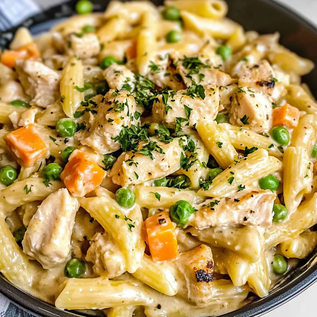 Als ich neulich in meiner Küche stand, überkam mich das Bedürfnis nach etwas Warmem und Tröstlichem. Genau in diesem Moment kam mir die Idee für mein Hühnchen Topf Pastagericht. Diese One Pot Creamy Chicken Pot Pie Pasta kombiniert die vertrauten Aromen eines klassischen Hühner-Pie mit der Bequemlichkeit eines schnellen, familienfreundlichen Gerichts. Frag dich nicht nur, wie du den Stress nach einem langen Tag ablegen kannst—dieses Rezept benötigt nur wenig Zeit und gelingt ganz ohne aufwendige Reinigung. Es wird dir nicht nur Zeit sparen, sondern sorgt auch dafür, dass jeder am Esstisch glücklich ist. Worauf wartest du noch? Lass uns gemeinsam in die Zubereitung eintauchen! Warum wirst du dieses Rezept lieben? Simplicity: Die Zubereitung könnte nicht einfacher sein – alles wird in einem Topf gekocht, was dir sowohl Zeit als auch Geschirr erspart. Wohlfühlgeschmack: Die cremige Sauce und die zarten Hühnchenstücke strahlen Geborgenheit aus und sorgen für eine wahre Geschmacksexplosion. Vielseitigkeit: Du kannst die Zutaten ganz nach deinem Geschmack anpassen – ob mit frischem Gemüse wie Karotten und Sellerie oder durch den Einsatz von Zutaten wie gefrorenen Erbsen. Familienfreundlich: Dieses Gericht ist perfekt für die ganze Familie und kann zudem mit einem einfachen grünen Salat oder köstlichem Joghurt Zitronen Kuchen serviert werden. Schnell zubereitet: In weniger als 30 Minuten steht dieses leckere Abendessen auf dem Tisch und bringt alle um den Esstisch. Hühnchen Topf Pastagerichte Zutaten Für die Soße Butter (ungesalzen) – sorgt für Reichtum und Geschmack; kannst es durch Olivenöl für eine milchfreie Variante ersetzen. Große Zwiebel (gehackt) – bietet aromatische Grundgeschmäcker; verwende Schalotten für einen milderen Geschmack. Sellerie (gehackt) – bringt Knackigkeit und Frische; du kannst Paprika oder Karotten als Alternativen nutzen. Mittlere Karotte (gehackt) – fügt Süße und Textur hinzu; lässt sich auch durch gefriergetrocknete oder geriebene Karotten ersetzen. Hühnchenschenkel (ohne Haut und Knochen, in mundgerechte Stücke geschnitten) – das proteinreiche Rückgrat des Gerichts; Brustfleisch kann auch verwendet werden, trocknet aber schneller aus. Salz und Pfeffer – verstärken das Aroma; je nach persönlichen Vorlieben anpassen. Weißwein (trocken, z.B. Sauvignon Blanc) – fügt Tiefgang und Geschmack hinzu; du kannst auch Hühnerbrühe verwenden, um es alkoholfrei zu machen. Hühnerbrühe (niedriger Natriumgehalt) – bildet die suppige Basis; Gemüsebrühe eignet sich für eine leichtere Version. Ungekochte Pasta (340 Gramm) – dient als Stärke des Gerichts und hält die Soße gut; kurze Pastaformen wie Penne oder Muscheln sind bevorzugt. Gefrorene Erbsen (1 Tasse) – bringen Farbe und Süße; frische Erbsen können verwendet werden, wenn verfügbar. Für die Garnitur Frische Petersilie (gehackt) – macht das Gericht frischer; kann weggelassen werden, wenn nicht verfügbar. Die sorgfältige Auswahl dieser Zutaten wird dein Hühnchen Topf Pastagerichte zum Leben erwecken, sodass es ein wahrer Genuss wird! Step-by-Step Instructions für Hühnchen Topf Pastagerichte Step 1: Butter schmelzen Erhitze in einem großen Topf oder Schmortopf bei mittlerer Hitze die ungesalzene Butter. Lass sie schmelzen, bis sie leicht schäumt, was etwa 2 Minuten dauert. Achte darauf, dass die Butter nicht braun wird, denn wir möchten ihr reichen Geschmack für das Hühnchen Topf Pastagerichte erhalten. Step 2: Gemüse anbraten Füge die gehackte Zwiebel, den Sellerie und die Karotte hinzu und brate sie etwa 5 Minuten lang an, bis sie weich und leicht glasig sind. Rühre gelegentlich um, damit das Gemüse gleichmäßig gart. Der Duft wird angenehm aromatisch sein und dein Herz für das bevorstehende Gericht erwärmen. Step 3: Hühnchen hinzufügen Incorporate die in mundgerechte Stücke geschnittenen Hühnchenschenkel und würze alles mit Salz und Pfeffer. Brate das Hühnchen für 5-7 Minuten an, bis es von allen Seiten leicht bräunt und nicht mehr rosa ist. Diese Schritte sind entscheidend für die Aromen in deinem Hühnchen Topf Pastagerichte. Step 4: Mehl einstreuen Streue gleichmäßig das Allzweckmehl über das Hühnchen und Gemüse. Rühre die Mischung gut durch und koche alles für 1 Minute weiter, um den Mehlgeschmack zu reduzieren. Dies wird deine cremige Sauce später schön andicken und eine Grundlage für zusätzlichen Geschmack bilden. Step 5: Flüssigkeiten hinzufügen Gib nun den gehackten frischen Rosmarin, den trockenen Weißwein und die Hühnerbrühe in den Topf. Rühre gut um und füge die ungekochte Pasta hinzu, damit sie gleichmäßig im nassen Gemisch verteilt ist. Lasse die Mischung kurz aufkochen, bevor du die Hitze reduzierst und die Gewürze anpasst. Step 6: Köcheln lassen Reduziere die Hitze auf mittlere bis niedrige Stufe und lasse das Hühnchen Topf Pastagerichte für etwa 15 Minuten köcheln. Rühre gelegentlich um, damit nichts am Boden festklebt. Die Pasta sollte langsam garen und die Aromen sich entfalten. Step 7: Erbsen hinzufügen Füge die gefrorenen Erbsen hinzu und koche die Mischung für weitere 5-10 Minuten. Achte darauf, dass die Pasta die gewünschte Bissfestigkeit erreicht. Die Erbsen bringen Farbe und eine süße Note zu deinem Gericht, das nun schön duftet. Step 8: Anrichten und garnieren Sobald das Hühnchen Topf Pastagerichte fertig ist, serviere es heiß und garniere es nach Belieben mit frischer, gehackter Petersilie. Dies verleiht dem Gericht nicht nur eine ansprechende Optik, sondern auch eine frische Geschmacksnote, die das Erlebnis abrundet. Variationen & Alternativen für Hühnchen Topf Pastagerichte Lass deiner Kreativität freien Lauf und passe dieses Rezept nach deinem Geschmack an – die Möglichkeiten sind endlos. Dairy-Free: Ersetze die Butter durch Olivenöl und verwende pflanzliche Milch für eine milchfreie Variante. Protein-Power: Nutze einfach fertiges, zerrissenes Rotisse