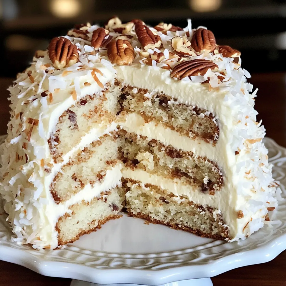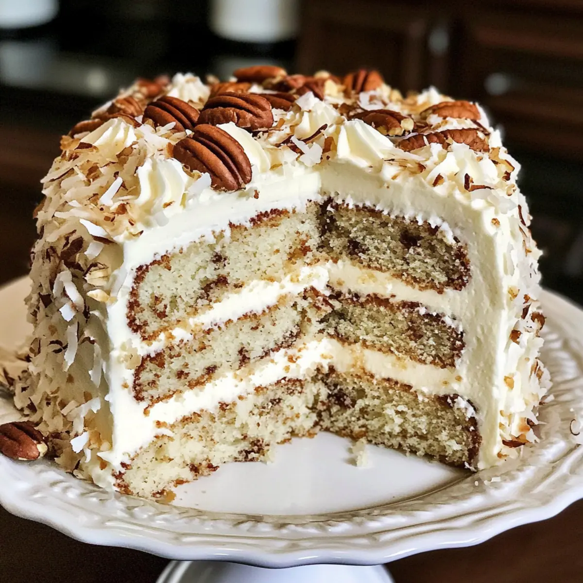 Hast du schon einmal das Gefühl gehabt, du müsstest etwas Besonderes zaubern? Dann ist diese Italienische Sahnetorte genau das Richtige für dich! Diese himmlische Sahnetorte begeistert mit ihrem saftigen, buttrigen Teig, der mit gerösteten Pekannüssen und süßer Kokosnuss verfeinert ist. Du wirst die Wärme und Liebe spüren, die in jedem Stück steckt. Die Kombination aus fluffigem Cream Cheese Frosting und den knusprigen Nüssen macht sie zu einem echten Highlight bei Feierlichkeiten oder einfach, um das Leben zu genießen. Ein weiteres großartiges Plus? Die Zubereitung geht schnell und einfach, was sich perfekt für jeden Anlass eignet. Bist du bereit, deine Gäste mit dieser köstlichen Torte zu beeindrucken? Warum solltest du diese Torte lieben? Einfachheit: Die Zubereitung der Italienischen Sahnetorte ist unkompliziert und benötigt nur grundlegende Backfähigkeiten, sodass sie jeder nachmachen kann. Einzigartiger Geschmack: Die Verbindung von gerösteten Pekannüssen und süßer Kokosnuss schafft ein Geschmackserlebnis, das deine Gäste begeistern wird. ** Vielseitigkeit**: Diese Torte ist perfekt für jede Feier oder einfach als süße Belohnung im Alltag – du kannst sie mit frischen Früchten oder einer Tasse Kaffee genießen. Schnell zubereitet: Dank einfacher Schritte kannst du diese Torte im Handumdrehen zaubern. Wenn du nach weiteren köstlichen Rezepten suchst, schau dir auch Mit Geraeuchertem Lachs an – es könnte deine nächste Leidenschaft werden! Krönender Abschluss: Das luftige Cream Cheese Frosting zusammen mit dem knusprigen Topping lässt die Torte wie ein Meisterwerk aussehen, das jedem Anlass gerecht wird. Italienische Sahnetorte Zutaten • Hier findest du alles für deine Italienische Sahnetorte! Für den Teig Allzweckmehl – Gibt der Torte Struktur und Stabilität. Backpulver und Natron – Diese treibenden Zutaten helfen der Torte beim Aufgehen. Gesalzene Butter – Sorgt für die nötige Reichhaltigkeit und Geschmack. Zucker – Liefert die Süße und trägt zur Struktur der Torte bei. Brauner Zucker – Fügt eine tiefe Geschmacksnote und Feuchtigkeit hinzu. Vanilleextrakt – Hebt das gesamte Geschmacksprofil hervor. Mandelessenz – Verleiht einen nussigen Geschmack; kann durch mehr Vanille ersetzt werden. Eier – Binden die Zutaten und tragen zur Reichhaltigkeit bei. Buttermilch – Sorgt für Feuchtigkeit und Zartheit im Teig. Geröstete Kokosflocken – Fügen eine kauige Textur und Süße hinzu. Pekanussstücke – Sorgen für den knackigen Biss und zusätzlichen Geschmack. Für das Frosting Frischkäse – Die Hauptzutat des Frostings, sorgt für eine cremige Konsistenz. Ungesalzene Butter – Verleiht dem Frosting eine extra Cremigkeit. Puderzucker – Süßt und verdickt das Frosting. Mit diesen Zutaten kannst du deine Italienische Sahnetorte zaubern und unvergessliche Momente schaffen! Schritt-für-Schritt-Anleitung für Italienische Sahnetorte Step 1: Backofen vorheizen Heize den Backofen auf 180°C vor. Bereite drei runde 23 cm große Kuchenformen vor, indem du sie gründlich einfettest und mit Mehl bestäubst. Dies sorgt dafür, dass die Italienische Sahnetorte später leicht aus den Formen zu lösen ist. Step 2: Trockene Zutaten mischen Siebe in einer Schüssel das Allzweckmehl, Backpulver und Natron gut miteinander. Dieses Verfahren sorgt dafür, dass keine Klumpen im Teig sind und die Zutaten gleichmäßig verteilt sind. Beiseitelegen, während du die anderen Schritte ausführst. Step 3: Butter und Zucker cremig schlagen In einer großen Schüssel die weiche gesalzene Butter mit dem Granulated Sugar und dem braunen Zucker etwa 3-4 Minuten lang cremig schlagen, bis die Mischung leicht und luftig aussieht. Füge dann den Vanille- und Mandelessenz hinzu und verrühre alles gut, um die Aromen zu verbinden. Step 4: Eier hinzufügen Füge die Eier einzeln in die cremige Butter-Zucker-Mischung hinzu und schlage nach jedem Ei gut durch, bis die Mischung sachlich und homogen ist. Dies sorgt dafür, dass die Eier gleichmäßig eingearbeitet werden, was zu einer besseren Struktur der Torte führt. Step 5: Mehl und Buttermilch kombinieren Gib die gesiebte Mehlmischung abwechselnd mit der Buttermilch in die Schüssel, beginnend und endend mit dem Mehl. Rühre alles vorsichtig, bis der Teig gut vermischt ist, aber übertreibe es nicht – so bleibt deine Italienische Sahnetorte schön zartig. Step 6: Kokosnuss und Pekannüsse einarbeiten Falte vorsichtig die Hälfte der gerösteten Kokosnuss und der Pekanussstücke in den Teig. Diese Zutaten verleihen der Torte nicht nur zusätzlichen Geschmack, sondern auch eine interessante Textur. Achte darauf, nicht zu kräftig zu rühren, damit der Teig fluffig bleibt. Step 7: Backen Verteile den Teig gleichmäßig auf die vorbereiteten Kuchenformen. Backe die Torten für etwa 25-30 Minuten oder bis ein Zahnstocher, in die Mitte gestochen, sauber herauskommt. Lass die Kuchen danach 10 Minuten in den Formen abkühlen, bevor du sie auf ein Kuchengitter zum Vollständig Abkühlen transferierst. Step 8: Frosting zubereiten Schlage den Frischkäse und die ungesalzene Butter in einer Schüssel leicht und fluffig. Füge dann nach und nach den Puderzucker hinzu und mische anschließend die Vanille- und Mandelessenz ein. Achte darauf, dass das Frosting eine cremige, spreadbare Konsistenz hat. Step 9: Torte stapeln Lege eine der abgekühlten Kuchenböden auf eine Servierplatte und verteile eine großzügige Schicht Frosting darauf. Setze dann den zweiten Kuchen darauf und wiederhole den Vorgang. Decke auch die Oberseite und die Seiten der Italienischen Sahnetorte mit dem restlichen Frosting ab. Step 10: Dekorieren und Kühlen Dekoriere die Torte mit der zurückbehaltenen gerösteten Kokosnuss und Pekanussstücken. Stelle die Torte vor dem Servieren für etwas Zeit in den Kühlschrank, damit das Frosting fest wird und die Aromen sich gut entfalten können. Lagerungstipps für Italienische Sahnetorte Kühlschrank: B