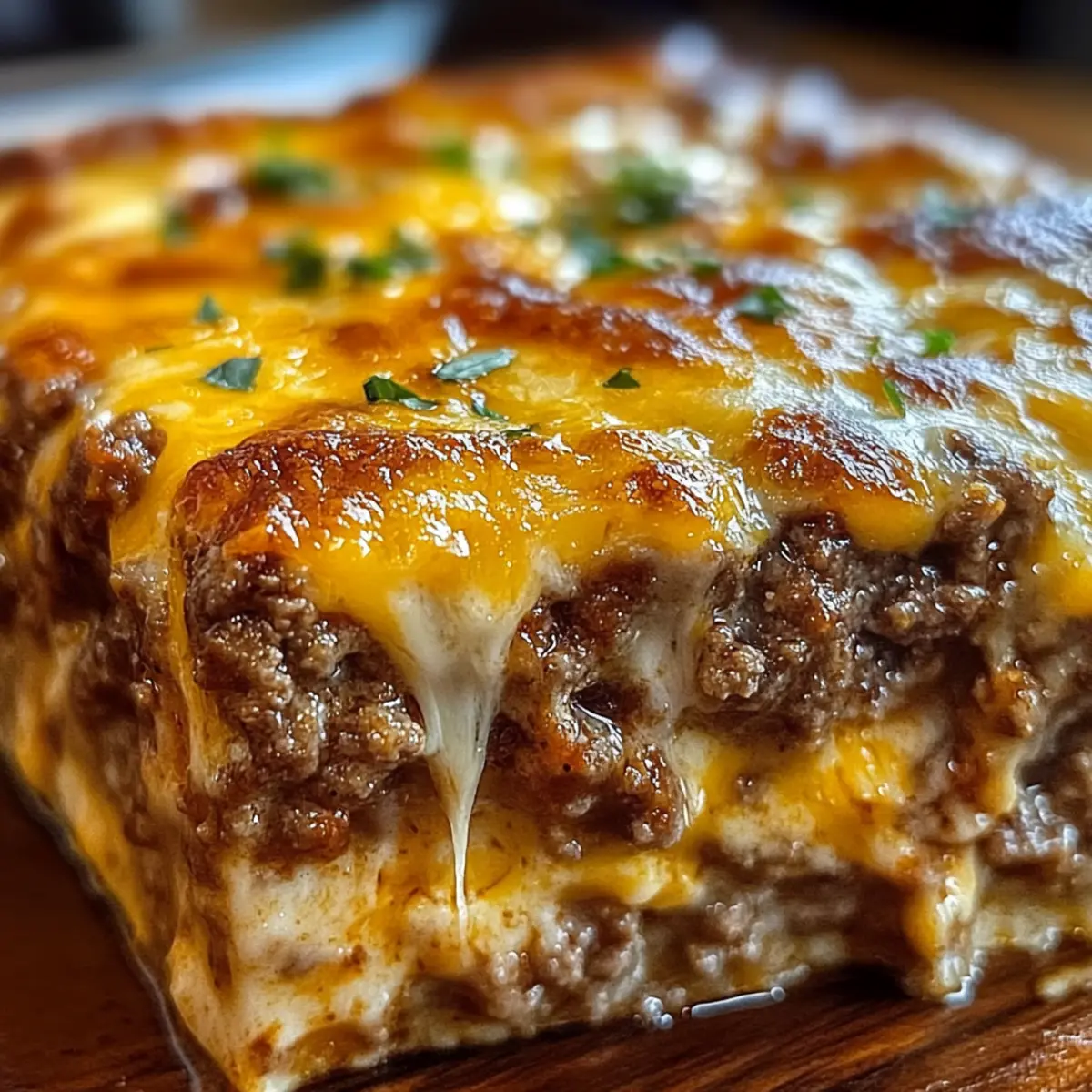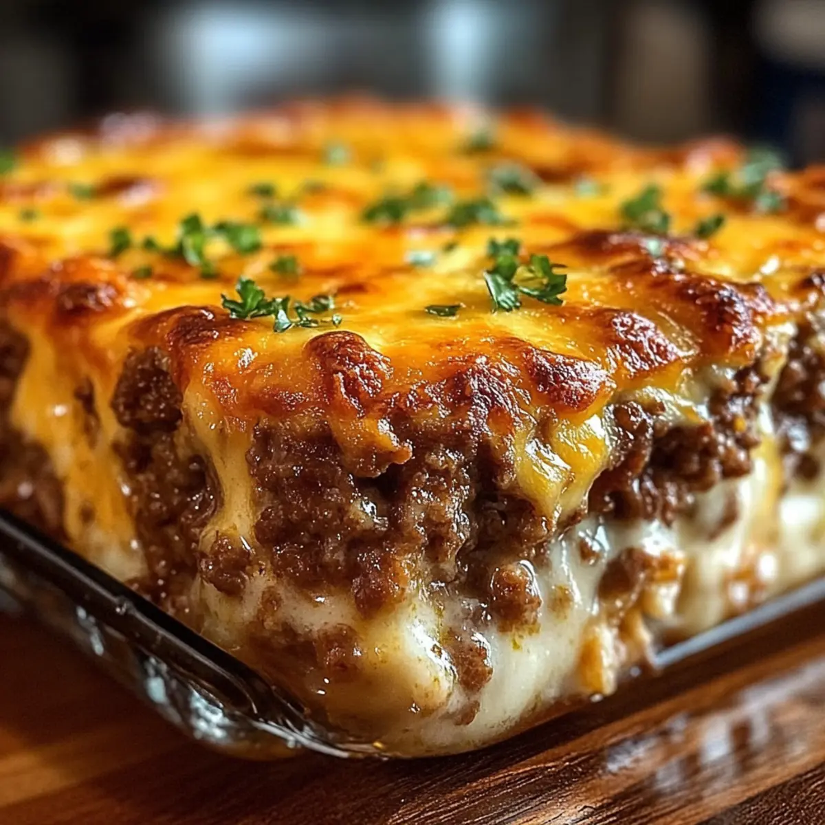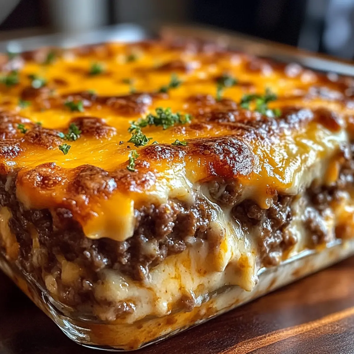 In einem kleinen, einladenden Restaurant in einer abgelegenen Gasse entdeckte ich das Geheimnis eines Gerichts, das den Tag aller Gäste erhellte: den Käse-Hackbraten-Auflauf. Mit seiner Mischung aus würzigem Hackfleisch und geschmolzenem Käse vereint dieses Rezept die Aromen von Komfort und Nostalgie in einem einzigen Biss. Die Zubereitung ist unglaublich einfach und eignet sich perfekt für ein schnelles Abendessen unter der Woche, bei dem selbst die wählerischsten Esser nach mehr verlangen werden. Außerdem ist dieser Auflauf wunderbar warm und sättigend, ideal für die ganze Familie. Warum also nicht gleich ausprobieren und eure Lieben mit diesem köstlichen Gericht überraschen? Warum wirst du diesen Auflauf lieben? Einfachheit: Die Zubereitung ist ein Kinderspiel – selbst Einsteiger im Kochen können diesen Auflauf meistern! Herzhafter Genuss: Die Kombination aus würzigem Hackfleisch und geschmolzenem Käse sorgt für ein Geschmacksfeuerwerk, das direkt ins Herz trifft. Familienfreundlich: Jeder, auch die wählerischsten Esser, werden um Nachschlag bitten – ein echtes Familienessen! Vielseitigkeitsbonus: Dieser Auflauf lässt sich leicht anpassen; probiert ihn zum Beispiel mit verschiedenen Käsesorten wie Monterey Jack oder sogar in Muffinformen für die Kleinen. Zeitersparnis: In weniger als einer Stunde ist dieses Gericht fertig, perfekt für hektische Wochentage. Wohlfühlfaktor: Ein warmes Gericht wie dieses bringt sofort Gemütlichkeit und gute Stimmung auf den Tisch. Schau dir auch unser Rezept für komfortable Aufläufe an! Käse-Hackbraten-Auflauf Zutaten Für das Fleisch • Rinderhackfleisch – sorgt für den herzhaften Geschmack; ideal ist eine Mischung aus 80/20 für das beste Ergebnis. • Breadcrumbs – helfen dem Auflauf, seine Form zu behalten; du kannst normale oder Panko verwenden. • Eier – binden die Mischung zusammen; die Verwendung von Eiern bei Zimmertemperatur sorgt für ein gleichmäßiges Vermischen. • Zwiebel, gehackt – gibt dem Gericht eine aromatische Tiefe; fein hacken für das beste Ergebnis. • Knoblauchpulver – verleiht dem Hackbraten zusätzlichen Geschmack; kein Ersatz empfohlen. • Italienische Gewürze – bringen die Kräuternote ins Spiel; ideal für die richtige Temperatur. • Salz und Pfeffer – nach Geschmack hinzufügen, um den gesamten Geschmack zu verstärken. Für die Cremigkeit • Milch – hält den Auflauf während des Kochens schön saftig; keine Substitution empfohlen. • Ketchup – sorgt für die nötige Süße und Feuchtigkeit; kein Ersatz empfohlen. Für den Käse • Geriebener Cheddar – sorgt für die leckere, schmelzende Käsekruste und den herzhaften Geschmack; frisch von einem Block gerieben ist am besten für die Schmelzqualität. • Zusätzlicher Cheddar (für die Oberseite) – schafft eine goldene, sprudelnde Kruste; jedes andere beliebte Käse kann als Alternative verwendet werden. Dieser Käse-Hackbraten-Auflauf ist nicht nur ein Genuss, sondern auch eine schmackhafte Möglichkeit, die ganze Familie zusammenzubringen. Schritt-für-Schritt-Anleitung für Käse-Hackbraten-Auflauf Schritt 1: Ofen vorheizen Heize deinen Ofen auf 175 °C vor und fette eine Auflaufform leicht ein. Damit der Käse-Hackbraten-Auflauf gleichmäßig gegart wird, ist es wichtig, dass der Ofen die richtige Temperatur hat, bevor du mit der Zubereitung des Hackfleischgemischs beginnst. Schritt 2: Fleischmischung vorbereiten In einer großen Schüssel das Rinderhackfleisch, die Breadcrumbs, den geriebenen Cheddar, die Milch, den Ketchup, die gehackte Zwiebel, die Eier sowie Salz, Pfeffer, Knoblauchpulver und italienische Gewürze vorsichtig vermengen. Achte darauf, die Mischung nicht zu stark zu kneten, um eine lockere Konsistenz zu erhalten. Dies dauert etwa 5 Minuten. Schritt 3: In die Auflaufform geben Übertrage die Fleischmischung in die vorbereitete Auflaufform. Forme sie entweder zu einem Laib oder verteile sie gleichmäßig, um den Auflaufstil zu erreichen. Glätte die Oberseite, damit der Käse später gleichmäßig schmelzen kann. Diese Schritt sorgt für einen ansprechenden Anblick nach dem Backen. Schritt 4: Backen Backe den Käse-Hackbraten-Auflauf für 45 Minuten im vorgeheizten Ofen. Die Kanten sollten sich leicht von der Form lösen, und die innere Temperatur sollte zwischen 68-70 °C liegen. Verwende ein Fleischthermometer, um sicherzustellen, dass das Hackfleisch gut durchgegart ist. Schritt 5: Käse hinzufügen Nimm den Auflauf aus dem Ofen und streue den zusätzlichen geriebenen Cheddar gleichmäßig darüber. Setze ihn für weitere 10-15 Minuten zurück in den Ofen, bis der Käse geschmolzen und blubbernd ist. Der Auflauf sollte jetzt eine köstlich goldene Kruste haben. Schritt 6: Ruhen lassen Lass den Käse-Hackbraten-Auflauf einige Minuten ruhen, bevor du ihn in Scheiben schneidest. Dies hilft, die Form zu bewahren und sorgt für saubere Portionen beim Servieren. Genieße das warme Gericht gemeinsam mit deinen Lieblingsbeilagen! Was passt zum Käse-Hackbraten-Auflauf? Der Käse-Hackbraten-Auflauf ist nicht nur lecker, sondern auch der perfekte Mittelpunkt eines herzhaften Abendessens. Cremige Kartoffelbrei: Diese klassischen cremigen Kartoffeln sind eine genussvolle und stimmungsvolle Ergänzung, die genau den richtigen Kontrast zur herzhaften Fleischmischung bietet. Ein Löffel Kartoffelbrei mit Käse-Hackbraten-Auflauf ist einfach unwiderstehlich! Frischer grüner Salat: Ein einfacher, knackiger Salat mit einem leichten Dressing bringt Frische und Balance auf den Tisch. Die knusprigen Blätter und das frische Gemüse sorgen dafür, dass das Gericht nicht zu schwer wird und bieten einen erfrischenden Kontrast. Geröstetes Gemüse: Bunte, geröstete Gemüsesorten wie Karotten, Zucchini und Paprika ergänzen die Aromen des Auflaufs auf wunderbare Weise. Sie bringen zusätzliche Texturen und einen Hauch von Süße ins Spiel, die harmonisch mit dem herzhaften Geschmack des Auflaufs harmonieren. Kn