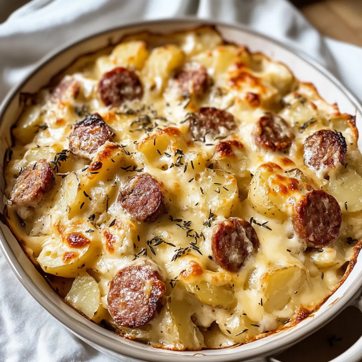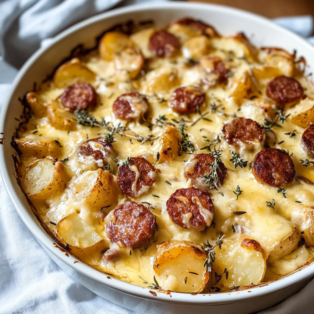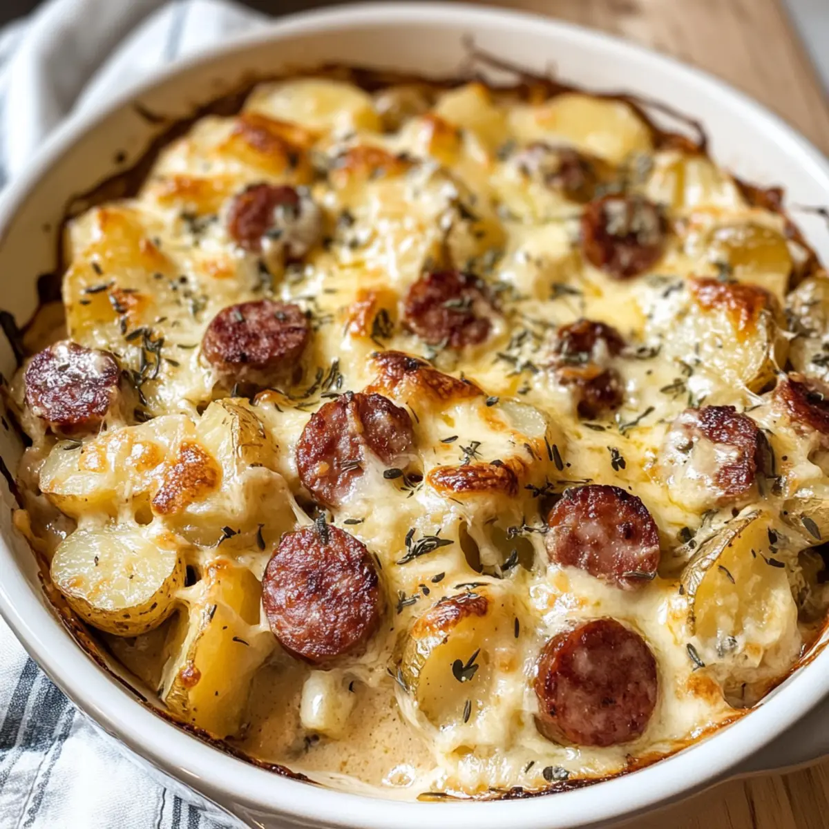 Die warme, einladende Aromen von frisch gebackenem Essen haben die erstaunliche Fähigkeit, Erinnerungen und Emotionen zu wecken. Mit meiner Rezeptur für Käse Ranch Kartoffeln & geräucherter Würstchen lade ich dich ein, die Gemütlichkeit von Comfort Food in dein Zuhause zu bringen. Diese herzhafte Kombination aus cremigen, golden gebackenen Kartoffeln und würzigem, rauchigem Würstchen ist nicht nur budgetfreundlich, sondern auch blitzschnell zubereitet. Du kannst die Zutaten ganz nach deinem Geschmack anpassen – sei es durch die Wahl verschiedener Käsesorten oder durch das Hinzufügen von frischem Gemüse. Perfekt für hektische Wochentage oder entspannte Abende mit Freunden, wird dieses Gericht definitiv zum neuen Lieblingsrezept für alle, die herzhaftes Essen lieben. Bist du bereit, dich mit mir auf diese köstliche Reise zu begeben? Warum wirst du dieses Rezept lieben? Einfachheit: Die Zubereitung ist unkompliziert und benötigt keine besonderen Kochkünste. Herzhafter Geschmack: Die Kombination aus würzigem Würstchen und cremigem Käse sorgt für ein geschmackliches Erlebnis, das jeden begeistert. Vielseitigkeit: Du kannst ganz nach deinem Gusto variieren – ob mit verschiedenen Käsesorten oder zusätzlichen Gemüsen, deiner Kreativität sind keine Grenzen gesetzt. Zeitsparend: In weniger als einer Stunde steht dieses leckere Gericht auf dem Tisch, ideal für stressige Tage. Familienfreundlich: Diese Käse Ranch Kartoffeln & geräucherter Würstchen sind ein Hit bei Jung und Alt – perfekt für ein gemütliches Abendessen! Budgetfreundlich: Mit einfachen, preiswerten Zutaten kannst du ein Gericht zaubern, das sowohl lecker als auch gut für den Geldbeutel ist. Käse Ranch Kartoffeln & geräucherter Würstchen Zutaten • Diese Käse Ranch Kartoffeln & geräucherter Würstchen sind einfach und lecker – lass uns mit den Zutaten beginnen! Für die Kartoffeln Kartoffeln – Sie bilden die Grundlage und nehmen das Ranch-Gewürz perfekt auf; Yukon Gold sorgt für eine cremigere Textur. Geräucherter Würstchen – Fügt herzhaften Geschmack und Biss hinzu; verwende Putenwürstchen für eine leichtere Version. Für das Gewürz Ranch-Gewürzmischung – Liefert einen cremigen, würzigen Geschmack; du kannst auch hausgemachtes Ranch-Gewürz verwenden. Für den Belag Cheddar-Käse – Sorgt für eine köstlich geschmolzene Konsistenz; Colby Jack sorgt für einen milderen Geschmack. Schwarzer Pfeffer – Verstärkt den Gesamtgeschmack; frisch gemahlener Pfeffer gibt den letzten Schliff. Schritt-für-Schritt-Anleitung für Käse Ranch Kartoffeln & geräucherter Würstchen Schritt 1: Ofen vorheizen Heize deinen Ofen auf 190 °C (375 °F) vor. Dies ist eine wichtige Schritt, um sicherzustellen, dass die Käse Ranch Kartoffeln & geräucherter Würstchen gleichmäßig garen. Während der Ofen sich aufheizt, kannst du dich um die Vorbereitung der Zutaten kümmern. Schritt 2: Zutaten vermengen In einer großen Schüssel die gewürfelten Kartoffeln, die in Scheiben geschnittenen geräucherten Würstchen und die Ranch-Gewürzmischung gut vermischen. Verwende einen Holzlöffel oder eine große Gabel, um sicherzustellen, dass jede Kartoffel und jedes Stück Würstchen gleichmäßig mit dem Gewürz überzogen ist. Dieser Schritt ist entscheidend für den vollen Geschmack. Schritt 3: Mischung in die Backform geben Übertrage die Mischung aus Kartoffeln und Würstchen in eine große, gefettete Auflaufform. Verteile die Zutaten gleichmäßig, sodass die Kartoffeln gut im Gewürz baden können. Achte darauf, eine gleichmäßige Schicht zu schaffen, damit alles schön gleichmäßig gart und nichts anbrennt. Schritt 4: Käse hinzufügen Streue den frisch geriebenen Cheddar-Käse gleichmäßig über die Kartoffeln und Würstchen in der Auflaufform. Achte darauf, dass der Käse die gesamte Oberfläche bedeckt; dies wird dazu beitragen, dass der Käse während des Backens schön schmilzt und eine leckere goldene Kruste bildet. Schritt 5: Backen Setze die Auflaufform bei 190 °C (375 °F) in den vorgeheizten Ofen und backe das Gericht für etwa 50 Minuten. Überprüfe nach etwa 40 Minuten, ob die Kartoffeln weich sind, indem du mit einer Gabel hinein stichst. Wenn sie zart sind und der Käse schön blubbert, reicht die Garzeit. Schritt 6: Abkühlen lassen Nach dem Backen nimm die Auflaufform vorsichtig aus dem Ofen und lasse sie einige Minuten abkühlen. Dieser Schritt ist wichtig, damit die Aromen sich setzen können und du dich nicht verbrennst, wenn du die Käse Ranch Kartoffeln & geräucherter Würstchen servierst. Der Käse wird zudem etwas fester und leichter zu portionieren. Meal Prep für Käse Ranch Kartoffeln & geräucherter Würstchen Die Vorbereitung der Käse Ranch Kartoffeln & geräucherter Würstchen ist ein Genuss für vielbeschäftigte Köche! Du kannst die Kartoffeln und Würstchen bis zu 24 Stunden im Voraus schneiden und in einer luftdichten Box im Kühlschrank aufbewahren. Mische sie mit der Ranch-Gewürzmischung, damit die Aromen gut durchziehen. Ein weiterer Vorteil ist, dass du bereits den Käse vorbereiten kannst – reibe ihn und bewahre ihn getrennt auf, um die Frische zu erhalten. Wenn du bereit bist zu genießen, einfach alles in die Backform übertragen, den Käse darüber streuen und bei 190 °C (375 °F) für etwa 50 Minuten backen. So hast du ein herzhaftes Essen mit minimalem Aufwand und maximalem Geschmack! Variationen & Alternativen Entdecke kreative Wege, um dieses Rezept nach deinem Geschmack anzupassen und damit deinen Gaumen zu erfreuen. Gemüse hinzufügen: Füge Brokkoli oder Paprika hinzu, um die Nährstoffe zu erhöhen und mehr Farbe zu bieten. Diese Gemüse verleihen dem Gericht nicht nur einen frischeren Geschmack, sondern sorgen auch für eine schöne Texturvielfalt. Milchfrei: Tausche den Käse gegen eine milchfreie Alternative aus, um das Gericht für Lactoseintolerante geeignet zu machen. Es gibt eine Vielzahl an pflanzlichen Käsesorten, die schmel