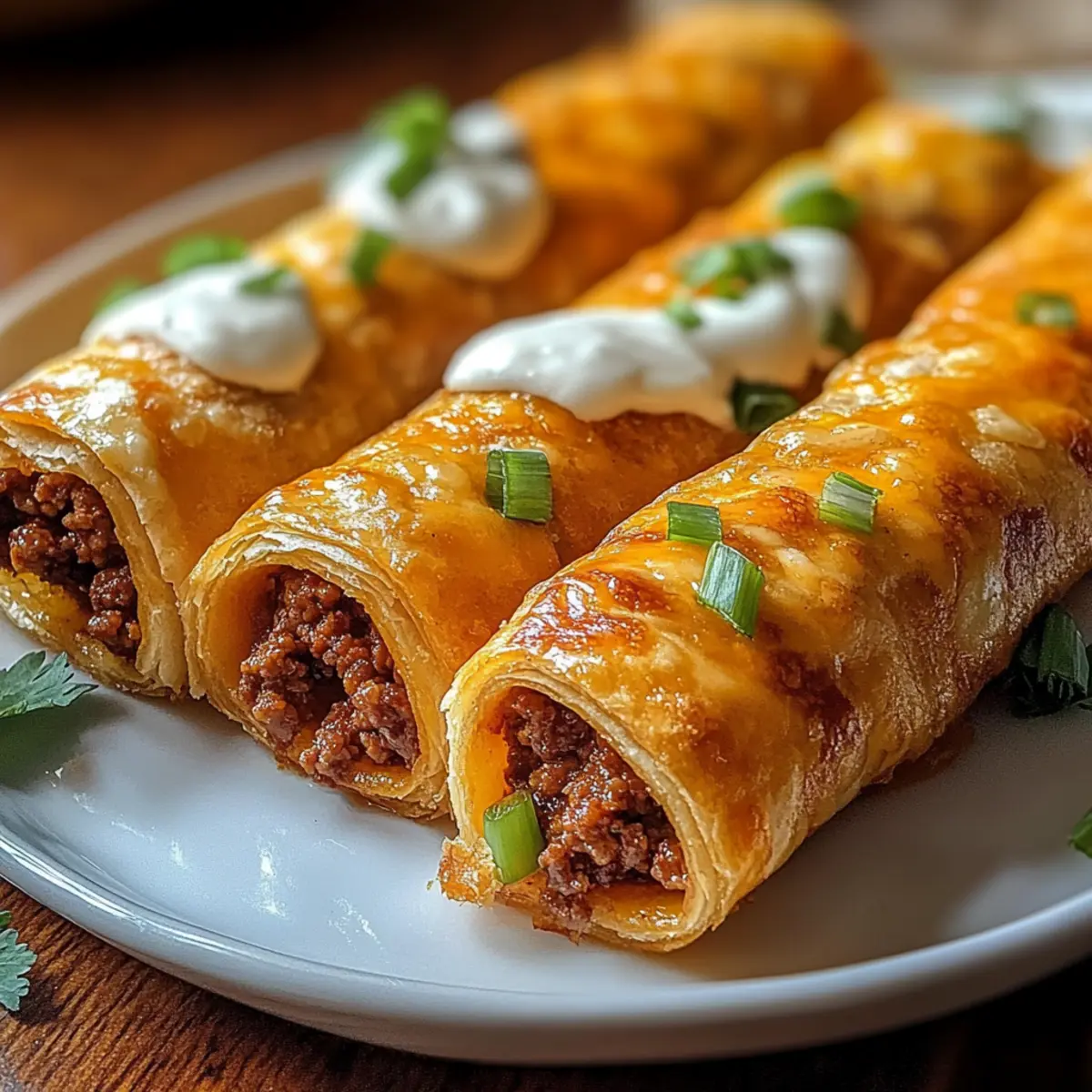 In einem überfüllten Raum bemerke ich die begeisterte Aufregung, als der Duft frisch gebackener Käsiger Taco-Stäbchen die Luft durchzieht. Diese köstlichen Snacks verbinden alles, was wir an Tex-Mex lieben, und verwandeln es in einen handlichen Genuss – perfekt für das nächste Treffen mit Freunden oder einfach als schnelles Abendessen unter der Woche. Mit ihrem knusprigen Blätterteig und der herzhaften Füllung aus gewürztem Rinderhackfleisch und schmelzendem Cheddar sind sie nicht nur ein absolutes Highlight, sondern auch super einfach zuzubereiten! Und das Beste: Es gibt sogar glutenfreie und vegetarische Optionen! Neugierig, wie du diese genussvollen Taco-Stäbchen zum Leben erwecken kannst? Lass uns gleich loslegen! Warum sind Käsige Taco-Stäbchen so beliebt? Einzigartiger Geschmack: Diese Taco-Stäbchen vereinen die besten Aromen der Tex-Mex-Küche in einem handlichen Snack. Vielseitigkeit: Ob als herzhaftes Gericht oder in einer süßen Dessertvariante – du hast die Wahl! Einfache Zubereitung: Die Anleitung ist unkompliziert und perfekt für Küchenanfänger. Geselligkeit: Ideal für Partys oder als Fingerfood bei Treffen mit Freunden. Probiere sie mit verschiedenen Dips, wie Guacamole oder hausgemachter Salsa, für noch mehr Genuss! Gesunde Alternativen: Mit glutenfreien oder vegetarischen Optionen kannst du jedem Geschmack gerecht werden. Käsige Taco-Stäbchen Zutaten • Entdecke die köstlichen Zutaten, die diesen Snack unwiderstehlich machen! Für den Teig Blätterteig (Puff Pastry) – Basis für die Taco-Stäbchen; eine glutenfreie Variante ist ebenfalls möglich. Für die Füllung Rinderhackfleisch (Ground Beef) – Sorgt für Protein und einen herzhaften Geschmack; kann durch Linsen oder schwarze Bohnen ersetzt werden. Cheddar-Käse (Cheddar Cheese) – Verleiht Cremigkeit und Geschmack; variierbar mit Mozzarella oder geräuchertem Käse. Taco-Gewürzmischung (Taco Seasoning) – Essentiell für die Würze; selbstgemacht sorgt für mehr Kontrolle über die Zutaten. Frühlingszwiebeln (Spring Onions) – Fügt frischen Crunch hinzu; optional, aber köstlich! E (Egg) – Für das Eierwaschen, um eine goldene, knusprige Kruste zu erzielen. Öl (Oil) – Zum Braten des Rinderhackfleischs, damit es gleichmäßig gart und zusätzlichen Geschmack bringt. Wasser – Hilft, die Gewürze mit dem Fleisch zu vermischen. Jalapeños (optional) – Für eine scharfe Note; je nach Vorliebe anpassen. Schritt-für-Schritt-Anleitung für Käsige Taco-Stäbchen Step 1: Ofen vorheizen Heize deinen Ofen auf 200°C vor. Dies gewährleistet, dass die Käsigen Taco-Stäbchen gleichmäßig gebacken werden und eine perfekte goldbraune Kruste erhalten. Während du den Ofen vorheizt, kannst du mit der Zubereitung der Füllung beginnen, um Zeit zu sparen. Step 2: Rinderhackfleisch anbraten Erhitze in einer Pfanne etwas Öl bei mittlerer Hitze. Füge das Rinderhackfleisch hinzu und brate es unter gelegentlichem Rühren etwa 5-7 Minuten an, bis es vollständig durchgegart und braun ist. Achte darauf, dass kein rosa Fleisch mehr sichtbar ist, bevor du fortfährst, um einen optimalen Geschmack zu gewährleisten. Step 3: Taco-Gewürzmischung hinzufügen Streue die Taco-Gewürzmischung über das angebratene Rinderhackfleisch und füge 2 Esslöffel Wasser hinzu. Rühre alles gut um und lasse es für weitere 3 Minuten köcheln. Diese Mischung sorgt für den typischen Taco-Geschmack in deinen Käsigen Taco-Stäbchen. Step 4: Käse und Gemüse einmischen Nimm die Pfanne vom Herd und rühre den geriebenen Cheddar-Käse unter die Fleischmischung. Lass die Füllung kurz abkühlen, bevor du die Frühlingszwiebeln unterhebst, um frischen Crunch hinzuzufügen. Stelle sicher, dass die Mischung nicht mehr heiß ist, um die Blätterteigkruste nicht aufzuweichen. Step 5: Blätterteig vorbereiten Rolle den Blätterteig auf einer bemehlten Arbeitsfläche aus und schneide ihn in 8 gleichmäßige Streifen. Diese Streifen bilden die Basis für deine Käsigen Taco-Stäbchen. Achte darauf, dass der Teig nicht zu dünn ausgerollt wird, damit er beim Füllen stabil bleibt. Step 6: Füllung einfüllen Platziere an einem Ende jedes Teigstreifens 1-2 Esslöffel der vorbereiteten Füllung. Achte darauf, nicht zu viel Füllung zu verwenden, damit die Stäbchen beim Backen nicht aufplatzen. Verwende einen Löffel, um die Mischung gleichmäßig zu verteilen. Step 7: Taco-Stäbchen formen Rolle den Blätterteig über die Füllung und achte darauf, die Ränder gut zu verschließen. Du kannst dazu Wasser oder das verquirlte Ei verwenden, um einen perfekten Seal zu erzielen. Dies hilft, die Füllung im Inneren zu halten und sorgt für eine schön knusprige Kruste. Step 8: Backen Lege die Käsigen Taco-Stäbchen auf ein mit Backpapier belegtes Blech. Backe sie im vorgeheizten Ofen für etwa 15-18 Minuten oder bis sie goldbraun und knusprig sind. Du kannst sie während des Backens beobachten, um sicherzustellen, dass sie gleichmäßig bräunen. Step 9: Abkühlen und garnieren Nimm die Taco-Stäbchen nach dem Backen aus dem Ofen und lasse sie kurz abkühlen. Garniere sie dann mit den restlichen Frühlingszwiebeln und serviere sie mit leckeren Dips wie Salsa, Guacamole oder Sour Cream. Jetzt sind deine Käsigen Taco-Stäbchen bereit zum Genießen! Lagerungstipps für Käsige Taco-Stäbchen Zimmertemperatur: Bewahre unbebackene Taco-Stäbchen in einem kühlen, trockenen Ort auf, und verbrauche sie innerhalb von 1-2 Tagen für optimale Frische. Kühlschrank: Gekochte Käsige Taco-Stäbchen können in einem luftdichten Behälter bis zu 3 Tage im Kühlschrank aufbewahrt werden; so bleiben sie frisch und lecker. Gefrierschrank: Die Taco-Stäbchen lassen sich hervorragend einfrieren! Packe sie einzeln in Frischhaltefolie ein und lagere sie bis zu 3 Monate im Gefrierfach. Backe die gefrorenen Stäbchen bei 180°C für etwa 20 Minuten direkt aus dem Gefrierfach. Wiedererwärmen: Erwärme übrige Taco-Stäbchen im Ofen bei 180°C für 10-