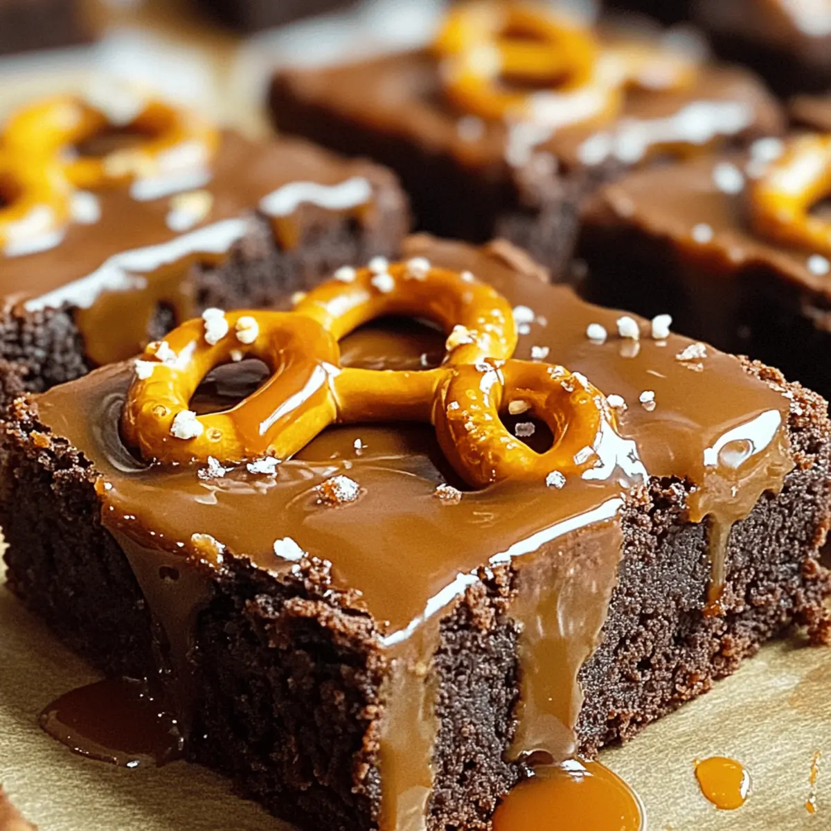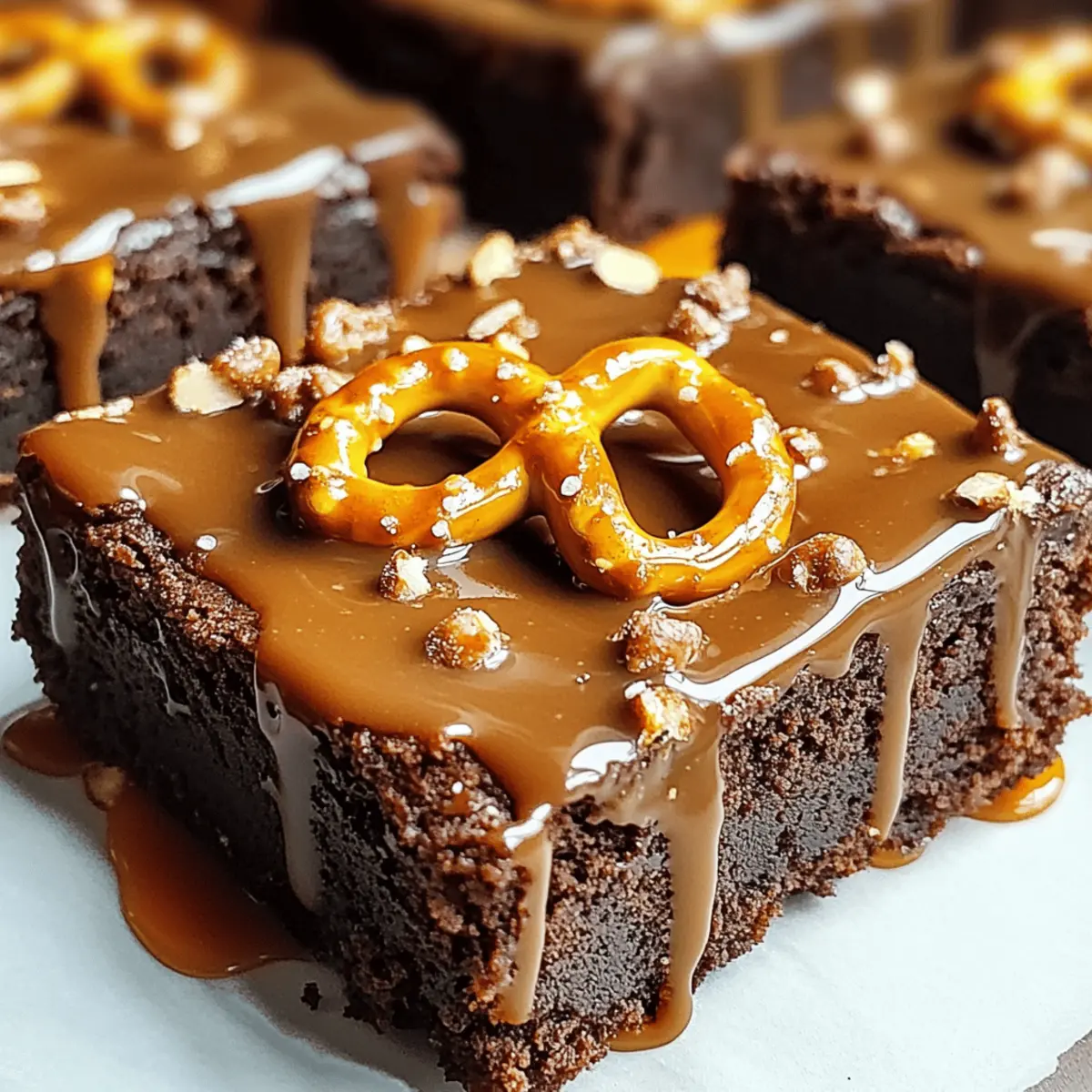 Als ich das erste Mal den verführerischen Duft von Karamell-Pretzel-Brownies in meiner Küche wahrnahm, konnte ich nicht widerstehen, sofort einen Bissen zu probieren. Dieses Rezept ist ein absolutes Muss für jeden, der sowohl süße als auch salzige Genüsse liebt. Unsere Karamell-Pretzel-Brownies vereinen die knusprige Textur der Brezeln mit der üppigen Cremigkeit von Karamell – eine unwiderstehliche Kombination! Sie sind nicht nur einfach zuzubereiten, sondern auch anpassbar; ob glutenfrei oder mit einer zusätzlichen Süßigkeit verstärkt – Ihre Kreativität kennt keine Grenzen. Perfekt als Snack für zwischendurch oder das Highlight auf jeder Feier, diese Brownies sind einfach ein Genuss und bringen ein wenig Freude in den Alltag. Sind Sie bereit, Ihre Küche in eine kleine Genusswerkstatt zu verwandeln? Lassen Sie uns gleich loslegen! Warum sind Karamell-Brezel-Brownies so beliebt? Unwiderstehliche Kombination: Die Mischung aus süßem Karamell und salzigen Brezeln schafft einen einzigartigen Geschmack, der sowohl Naschkatzen als auch Liebhaber herzhafter Snacks begeistert. Einfache Zubereitung: Mit wenigen Zutaten und unkomplizierten Schritten sind diese brownies schnell und mühelos gemacht – ideal für Kochanfänger! Vielseitigkeit: Ob glutenfrei, mit Nüssen oder extra Schokolade – dieses Rezept erlaubt kreative Anpassungen, die Ihren persönlichen Vorlieben gerecht werden. Perfekt für jede Gelegenheit: Egal, ob zum Kaffeeklatsch oder als Nachtisch beim Familienessen, diese Brownies sind der Publikumsliebling, den jeder liebt. Schneller Genuss: Dank der einfachen Zubereitung haben Sie im Handumdrehen etwas Leckeres auf dem Tisch – ideal für unerwartete Gäste! Karamell-Brezel-Brownies Zutaten Für den Teig: Ungesalzene Butter – sorgt für reichhaltige Feuchtigkeit; verwenden Sie hochwertige Butter für verbesserten Geschmack. Zucker – fügt Süße und Struktur hinzu; versuchen Sie Kokoszucker für einen karamelligen Unterton. Brauner Zucker – steigert die Feuchtigkeit und Tiefe des Geschmacks; leicht verpackt ist für die besten Ergebnisse vorzuziehen. Eier – binden die Zutaten und tragen zur Textur bei; frische Eier ergeben die beste Konsistenz. Vanilleextrakt – verleiht aromatische Süße; verwenden Sie reinen Vanilleextrakt für intensiveren Geschmack. Allzweckmehl – Hauptbestandteil für die Struktur; kann durch glutenfreies Mehl ersetzt werden, um glutenfreie Brownies zu erstellen. Ungesüßtes Kakaopulver – sorgt für Schokoladengeschmack; wählen Sie qualitativ hochwertiges Kakaopulver für einen tiefere Geschmack. Salz – balanciert die Süße aus; Meersalz hebt den Geschmack zusätzlich hervor. Schokoladenstückchen – sorgt für Reichhaltigkeit und Textur; verwenden Sie halbsüße oder dunkle Schokolade für einen intensiveren Geschmack. Brezeln, gehackt – sorgen für Crunch und einen salzigen Kontrast zur Süße; wählen Sie hochwertige Brezeln oder greifen Sie zu schokolierten für einen zusätzlichen Genuss. Karamellsauce – verleiht einen köstlichen, klebrigen Textur und Geschmack; verwenden Sie hausgemachte oder gekaufte, stellen Sie sicher, dass sie nicht zu heiß ist, wenn Sie sie hinzufügen. Für das Topping: Zusätzliche Brezeln, ganz – für eine ansprechende Optik und extra Crunch; diese kommen obenauf, um die Textur zu verstärken. Zucker – können Sie zum Bestreuen verwenden, um einen süßen Glanz zu erzielen. Fühlen Sie sich inspiriert, Ihre eigenen Karamell-Brezel-Brownies zu kreieren? Dieses Rezept ist der perfekte Ausgangspunkt für süße Glücksmomente in Ihrer Küche! Schritt-für-Schritt-Anleitung für Karamell-Brezel-Brownies Step 1: Ofen vorheizen Heizen Sie Ihren Ofen auf 175°C vor und bereiten Sie eine 23×33 cm große Backform vor, indem Sie sie entweder einfetten oder mit Backpapier auslegen. Dies sorgt dafür, dass Ihre Karamell-Brezel-Brownies später leicht aus der Form genommen werden können und nicht kleben bleiben. Step 2: Feuchte Zutaten mischen In einer großen Rührschüssel schmelzen Sie die ungesalzene Butter und geben Sie sie zusammen mit dem granulierten Zucker und dem braunen Zucker hinzu. Rühren Sie die Mischung etwa 2-3 Minuten lang, bis sie glatt und cremig ist. Dies ist der Grundbaustein für die saftigen Karamell-Brezel-Brownies. Step 3: Eier und Vanille hinzufügen Fügen Sie die Eier einzeln hinzu, während Sie jeden hinzugefügten Ei gut einrühren, bis alles gut kombiniert ist. Anschließend geben Sie den Vanilleextrakt dazu und vermischen die Masse nochmals gründlich. Diese Schritte verleihen Ihrem Teig eine wunderbare Aromatik und helfen, die Zutaten zu verbinden. Step 4: Trockene Zutaten kombinieren In einer separaten Schüssel sieben Sie das Allzweckmehl, das ungesüßte Kakaopulver und das Salz zusammen. Fügen Sie nun die trockenen Zutaten nach und nach zur feuchten Mischung hinzu, während Sie vorsichtig unterheben, bis alles gerade so kombiniert ist. Vermeiden Sie es, zu lange zu rühren, damit die Karamell-Brezel-Brownies schön saftig bleiben. Step 5: Extras einarbeiten Falten Sie die Schokoladenstückchen und die gehackten Brezeln vorsichtig unter den Teig, wobei Sie einige Brezeln zum Bestreuen aufbewahren. Diese geben den Karamell-Brezel-Brownies einen zusätzlichen Crunch und ein tolles visuelles Element, wenn sie auf die Oberfläche gedrückt werden. Step 6: Schichten und Marmorieren Gießen Sie die Hälfte des Teigs gleichmäßig in die vorbereitete Backform. Träufeln Sie die Hälfte der Karamellsauce über den Teig und geben Sie dann den restlichen Teig hinzu. Verwenden Sie einen Löffel, um die restliche Karamellsauce einzumarmorieren, sodass ein wunderschönes Muster entsteht. Streuen Sie die reservierten Brezeln darüber für zusätzlichen Crunch. Step 7: Backen Schieben Sie die Backform in den vorgeheizten Ofen und backen Sie die Karamell-Brezel-Brownies 25 bis 30 Minuten lang. Überprüfen Sie die Konsistenz, indem Sie ein Zahnstocher in die Mitte ste