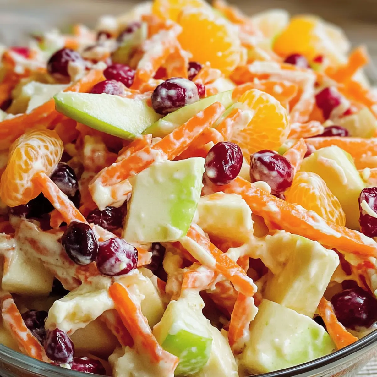 Ein frisch zubereiteter Salat kann oft das i-Tüpfelchen auf einem gelungenen Essen setzen. Die Kombination von knackigen Äpfeln, süßen Karotten, herben Cranberries und saftigen Mandarinen sorgt in diesem Rezept für einen geschmacklichen Höhepunkt: der Karotte Apfel Preiselbeere Mandarine Salat. Diese Mischung ist nicht nur köstlich, sondern auch perfekt für Picknicks oder als Beilage zu jedem Gericht – und das Beste daran? Die Zubereitung ist einfach und schnell! Mit einer cremigen Joghurt-Mayonnaise-Dressings bleibt dieser Salat leicht und erfrischend, sodass er selbst die wählerischsten Gäste begeistert. Bereit, diese genussvolle Geschmacksexplosion in deiner Küche zu zaubern? Warum wirst du diesen Salat lieben? Frische Zutaten: Dieser Salat kombiniert knackige Äpfel, süße Karotten, und saftige Mandarinen zu einem erfrischenden Geschmackserlebnis. Einfach zubereitet: In wenigen Schritten hast du eine köstliche Beilage oder Hauptspeise zaubert, die deine Gäste begeistern wird. Vielseitig: Ob als leichtes Mittagessen oder Beilage zum Grillabend, dieser Salat passt perfekt zu jeder Gelegenheit. Gesunde Wahl: Mit hochwertigen, vegetarischen und glutenfreien Zutaten ist dieser Salat eine nahrhafte Alternative zu schweren Gerichten. Cremige Note: Das Joghurt-Mayonnaise-Dressing bringt eine wunderbare Cremigkeit, die den Geschmack der frischen Zutaten perfekt abrundet. Lass dich von der Einfachheit und dem Geschmack dieses tollen Karotte Apfel Preiselbeere Mandarine Salats überzeugen und entdecke noch mehr interessante Rezeptideen in unserem Blog. Karotte Apfel Preiselbeere Mandarine Zutaten Für den Salat Rote Delicious Äpfel – sorgt für Süße und eine feste Textur; kann durch jede andere süße Apfelsorte ersetzt werden. Granny Smith Äpfel – bringt eine angenehme Säure und Knackigkeit mit; kann auch durch einen anderen säuerlichen Apfel ersetzt werden. Matchstick Karotten – bieten eine knackige Konsistenz; vorkonfigurierte Matchstick-Karotten sind eine zeitsparende Option. Gelbe Zwiebel – fügt einen scharfen Biss hinzu, der die Aromen ausgleicht; kann weggelassen werden für einen milderen Geschmack. Dosenmandarinen – schenken Saftigkeit und Süße; frische Mandarinen verstärken das Geschmackserlebnis. Zitronensaft – verhindert das Braunwerden der Äpfel und bringt Frische; frisch gepresst ist ideal. Getrocknete, gesüßte Cranberries – fügen eine zähe Textur und süß-sauren Geschmack hinzu; können durch getrocknete Kirschen oder goldene Rosinen ersetzt werden. Vanillejoghurt – sorgt für einen subtilen süßen und cremigen Geschmack; kann durch Naturgriechischen Joghurt für eine leicht säuerliche Note ersetzt werden. Mayonnaise – trägt zur Cremigkeit des Dressings bei; eine leichte Version kann für eine gesündere Variante verwendet werden. Zucker – balanciert die Säure aus; nach Geschmack anpassen oder bei Bedarf weglassen. Salz & schwarzer Pfeffer – heben den Geschmack insgesamt hervor; nach Belieben anpassen. Entdecke mit diesen Zutaten den Geschmack des köstlichen Karotte Apfel Preiselbeere Mandarine Salats, der jede Mahlzeit aufwertet! Schritt-für-Schritt-Anleitung für Karotte Apfel Preiselbeere Mandarine Salat Schritt 1: Äpfel vorbereiten Schneide die roten Delicious und Granny Smith Äpfel in dünne Stifte und gib sie in eine Schüssel. Sofort mit frischem Zitronensaft vermengen, um das Braunwerden zu verhindern, und lasse die Mischung 5 Minuten ruhen. Dies hilft, die frische Farbe zu erhalten und damit die Äpfel knackig bleiben. Schritt 2: Basis-Zutaten kombinieren Nimm eine große Schüssel und füge die Matchstick Karotten, die fein gewürfelte gelbe Zwiebel und die getrockneten, gesüßten Cranberries hinzu. Rühre die Zutaten gut um, damit sich die Aromen gleichmäßig verteilen. Diese Mischung bildet die Grundlage für deinen köstlichen Karotte Apfel Preiselbeere Mandarine Salat. Schritt 3: Äpfel hinzufügen Füge die zuvor vorbereiteten Äpfel mit dem Zitronensaft zu der Sammlung von Karotten, Zwiebeln und Cranberries in der Schüssel hinzu. Mische alles vorsichtig, sodass die Äpfel gleichmäßig unter die anderen Zutaten verteilt werden, ohne dass sie zerdrückt werden. Schritt 4: Dressing zubereiten Gib Vanillejoghurt, Mayonnaise, Zucker, Salz und schwarzen Pfeffer in die Schüssel mit den anderen Zutaten. Rühre alles gründlich um, bis die Mischung gleichmäßig mit dem cremigen Dressing überzogen ist. Dies sorgt für eine angenehme, reichhaltige Textur und verbindet die Aromen des Karotte Apfel Preiselbeere Mandarine Salats. Schritt 5: Mandarinen hinzufügen Füge die abgetropften Mandarinenhälften sanft hinzu und achte darauf, sie nicht zu zerdrücken. Klopfe vorsichtig, um die Mandarinen in die Salatmischung zu integrieren, was dem Salat eine saftige, süße Note verleiht, die perfekt mit den anderen Zutaten harmoniert. Schritt 6: Kühlen Decke die Schüssel ab und stelle sie für mindestens 3 Stunden in den Kühlschrank. Dies ermöglicht es den Aromen, sich wunderbar miteinander zu verbinden und reicht aus, damit der Salat gut durchgezogen ist, was die Frische noch verbessert. Schritt 7: Servieren Vor dem Servieren den Salat noch einmal gründlich durchmischen, sodass das Dressing gleichmäßig verteilt ist. Serviere den Karotte Apfel Preiselbeere Mandarine Salat in einer schönen Schüssel und genieße die einzelnen Geschmäcker, die zusammen eine köstliche und erfrischende Kombination bilden. Was passt gut zum Karotte Apfel Preiselbeere Mandarine Salat? Ein harmonisches Zusammenspiel von Geschmäckern und Texturen sorgt für ein unvergessliches Esserlebnis zu jedem Anlass. Grillhähnchen: Das zarte, saftige Fleisch ergänzt die Süße und Frische des Salats perfekt und sorgt für ein ausgewogenes Gericht. Quiche mit Spinat: Die cremige Konsistenz und die herzhaften Aromen der Quiche harmonieren wunderbar mit dem knackigen Salat. Brot mit Kräuterbutter: Ein frisch gebackenes Baguette mit aromatisch