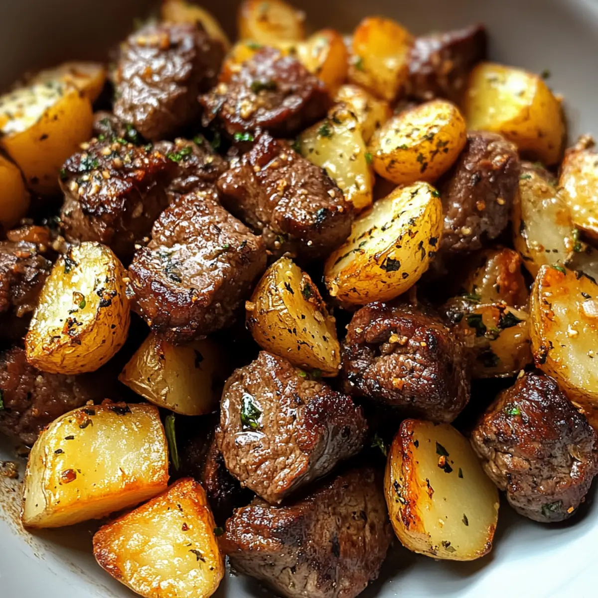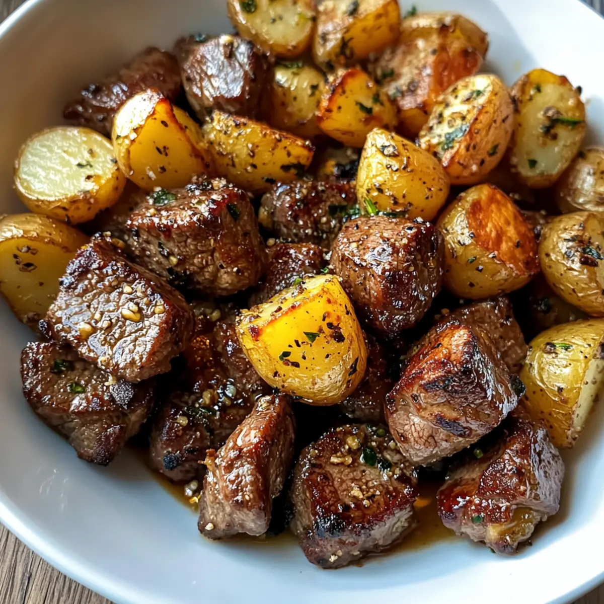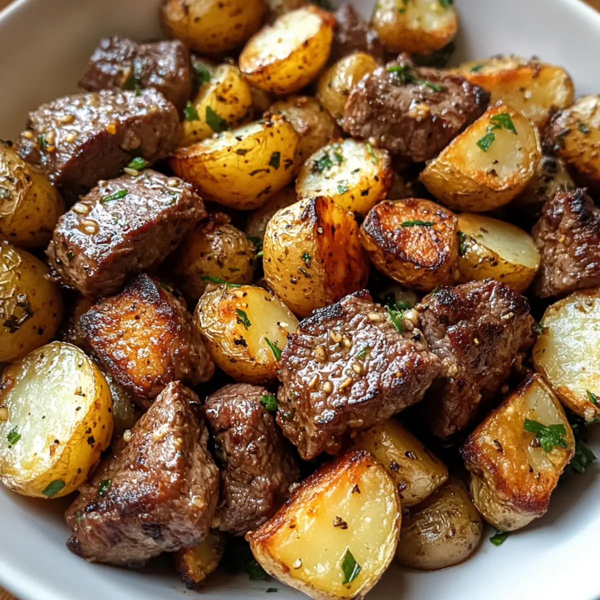 Der Duft von frisch gebackenem Brot wehte durch die Straßen und erinnerte mich sofort an die gemütlichen Sonntage meiner Kindheit. In solch nostalgischen Momenten kommt mir oft der Gedanke an ein köstliches Kartoffelgulasch, das die Seele wärmt. Diese herzhafte Speise, die einfach zuzubereiten ist, vereint zarte Kartoffeln mit der aromatischen Würze von Zwiebeln und Paprika, und schafft so ein unwiderstehliches Geschmackserlebnis. Perfekt für ein schnelles Abendessen oder zum Teilen mit Freunden, ist dieses Gericht nicht nur glutenfrei, sondern auch äußerst vielseitig – man kann es ganz nach Belieben anpassen. Neugierig, wie man mit nur wenigen Zutaten ein comforting Essen zaubern kann? Lass uns gleich in die Zubereitung eintauchen! Warum ist dieses Gericht unverzichtbar? Einfachheit pur: Die Zubereitung ist kinderleicht und benötigt nur grundlegende Kochfähigkeiten, perfekt für jede Gelegenheit. Herzhaft im Geschmack: Die Kombination aus Kartoffeln, Paprika und Zwiebeln sorgt für ein warmes, sättigendes Aroma, das an gemütliche Familienessen erinnert. Vielseitig anpassbar: Variiere die Zutaten, indem du zum Beispiel zusätzliches Gemüse oder Gewürze hinzufügst, um deinem Gulasch eine persönliche Note zu geben. Schnell zubereitet: In nur 30 Minuten hast du ein schmackhaftes Gericht auf dem Tisch, ideal für hektische Tage. Perfekt zum Teilen: Dieses Kartoffelgulasch ist ein wahres Soulfood, das sich hervorragend zum Teilen mit Freunden oder Familie eignet. Kartoffelgulasch Zutaten • Für das Gulasch: Kartoffeln (1 kg) – Hauptbestandteil, der für eine cremige Textur und sättigende Substanz sorgt. Zwiebeln (500 g) – Verleiht dem Gericht eine süße Note und ein reichhaltiges Aroma. Knoblauch (2 Zehen) – Intensiviert den Geschmack des Gulaschs beim Anbraten. Verwende frischen Knoblauch für einen volleren Geschmack. Paprika (2 Stück) – Sorgt für Farbe und süßen Geschmack; Chili kann für eine scharfe Note verwendet werden. Gemüsebrühe (1 L) – Basisflüssigkeit, die das Gericht mit Geschmack bereichert. Kann auch durch Hühnerbrühe ersetzt werden. Öl (2 EL) – Für das Anbraten der Zwiebeln und das Herauslösen der Aromen. Olivenöl ist eine gute Option. Salz und Pfeffer – Essenzielle Gewürze zum Abstimmen des Geschmacks; nach Belieben anpassen. Mit diesen Zutaten zauberst du ein köstliches Kartoffelgulasch, das sowohl nahrhaft als auch herzhaft ist! Step-by-Step Instructions für Kartoffelgulasch Step 1: Zwiebeln und Knoblauch vorbereiten Hacke die Zwiebeln und die Knoblauchzehen fein und bereite sie in einer Schüssel vor. Dieser Schritt sorgt dafür, dass die Aromen beim Kochen gleichmäßig verteilt werden. Du wirst den köstlichen Duft des angebratenen Knoblauchs genießen, sobald du ihn in den heißen Topf gibst. Step 2: Paprika schneiden Wasche die Paprika gründlich und würfle sie in kleine Stücke. Diese bunten Stücke bringen nicht nur Farbvielfalt, sondern auch einen herrlich süßen Geschmack in dein Kartoffelgulasch. Geschnittene Paprika sollte zur Seite gelegt werden, um sie später hinzuzufügen. Step 3: Zwiebeln anbraten Erhitze das Öl in einem großen Topf bei mittlerer Hitze. Sobald das Öl heiß ist, füge die gehackten Zwiebeln hinzu und brate sie etwa 5 Minuten lang an, bis sie goldbraun und weich sind. Dieser Schritt legt das aromatische Fundament für dein Gulasch, also beobachte die Zwiebeln aufmerksam. Step 4: Knoblauch und Paprika hinzufügen Gib den gehackten Knoblauch und die gewürfelte Paprika zu den Zwiebeln in den Topf und brate alles zusammen für etwa 2-3 Minuten an. Rühre gelegentlich um, bis der Knoblauch duftet und die Paprika leicht weich wird. Diese Kombination sorgt für eine wunderbare Geschmacksbasis für dein Kartoffelgulasch. Step 5: Kartoffeln vorbereiten Schäle die Kartoffeln und schneide sie in gleichmäßige Würfel von etwa 2-3 cm. So garen sie gleichmäßig und schneller. Füge die Kartoffelwürfel dann in den Topf zu den angebratenen Zutaten hinzu und rühre gut um, um alles gleichmäßig zu vermischen. Step 6: Brühe aufgießen Gieße die Gemüsebrühe über die Kartoffeln im Topf und bringe alles zum Kochen. Reduziere die Hitze auf mittlere Temperatur und lasse das Kartoffelgulasch etwa 30 Minuten lang köcheln, bis die Kartoffeln zart sind und die Aromen gut durchgezogen sind. Step 7: Würzen und abschmecken Nachdem das Gulasch 30 Minuten gekocht hat, schmecke es mit Salz und Pfeffer ab. Dies ist der perfekte Zeitpunkt, um den Geschmack zu intensivieren und sicherzustellen, dass das Kartoffelgulasch genau nach deinem Wunsch gewürzt ist. Step 8: Servieren Sobald das Gericht fertig ist, serviere das Kartoffelgulasch heiß in tiefen Tellern. Du kannst es optional mit frischen Kräutern garnieren, um eine zusätzliche Geschmacksnote hinzuzufügen. Genieße dein würziges, herzhaftes Essen, das nicht nur den Magen, sondern auch die Seele wärmt! Was passt zu Kartoffelgulasch mit Paprika und Knoblauchgenuss? Ein herzhaftes Kartoffelgulasch verlangt nach passenden Begleitern, die das Geschmackserlebnis perfekt abrunden. Frisches Bauernbrot: Ideal zum Tunken, es ergänzt die herzhafte Brühe wunderbar und sorgt für ein rustikales Gefühl am Tisch. Cremiger Gurkensalat: Die Frische der Gurken bietet einen angenehmen Kontrast zur herzhaften Schwere des Gulaschs und sorgt für einen erfrischenden Biss. Roter Wein: Ein vollmundiger Rotwein harmoniert perfekt mit den kräftigen Aromen des Gulaschs und unterstreicht das Geschmackserlebnis. Bunte Gemüsemischung: Frisch gedünstetes Gemüse wie Karotten oder Brokkoli bietet nicht nur zusätzliche Nährstoffe, sondern auch eine schöne Farbvielfalt auf dem Teller. Apfelmus: Die süße Note von Apfelmus harmoniert überraschend gut mit dem herzhaften Gulasch und bringt Abwechslung in jede Gabel. Knackige Brötchen: Knusprige Brötchen sind nicht nur ideal zum Dippen, sondern sorgen auch für zusätzliche Textur und machen das Essen noch genussvoller. Ka