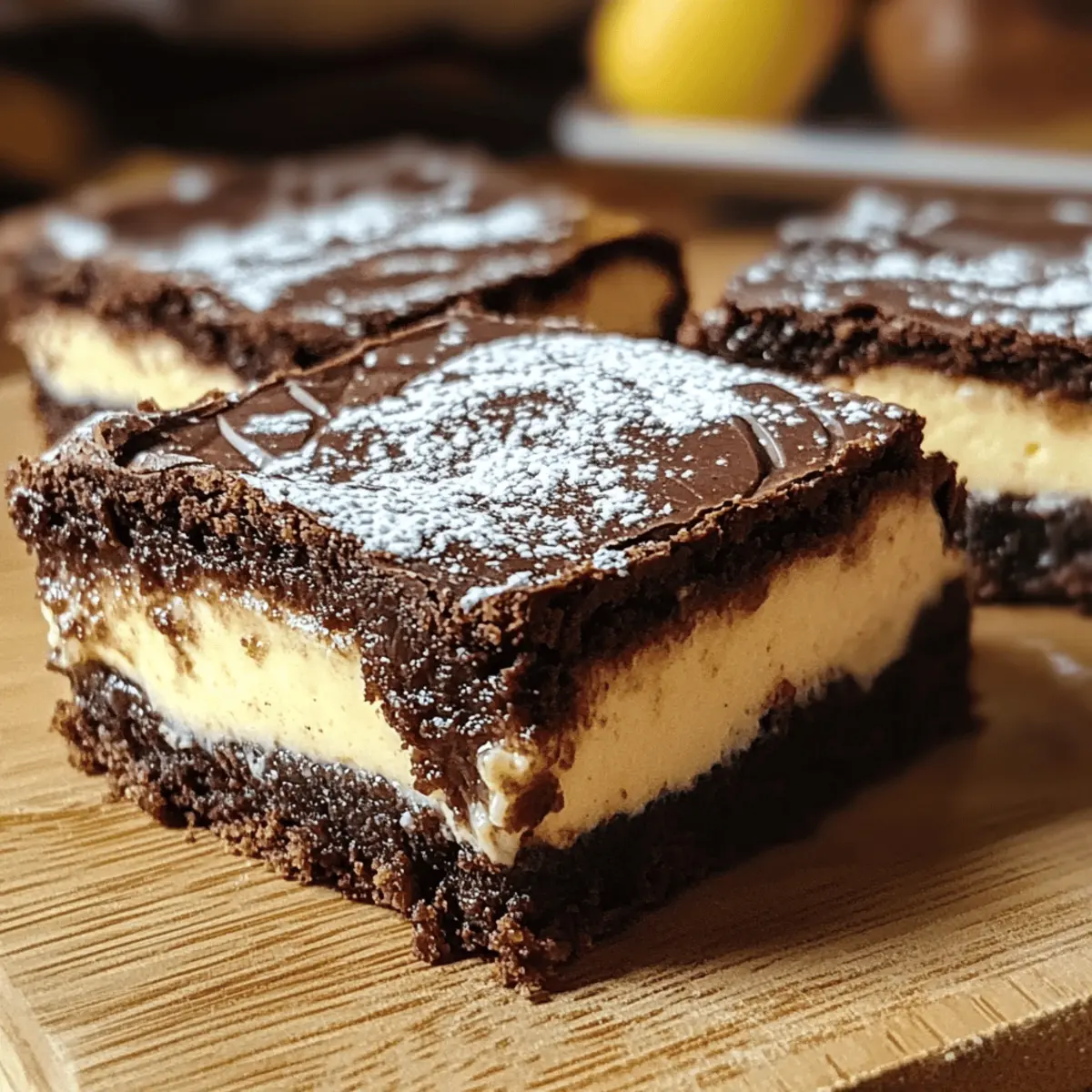 Verführende Texturen: Die fudgy Brownies mit dem samtigen Käsekuchen bieten ein unwiderstehliches Geschmackserlebnis, das man nicht verpassen sollte.