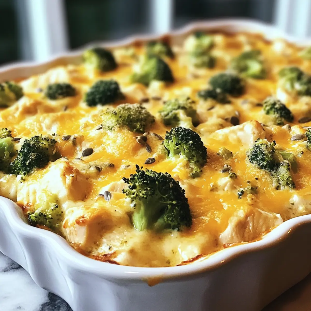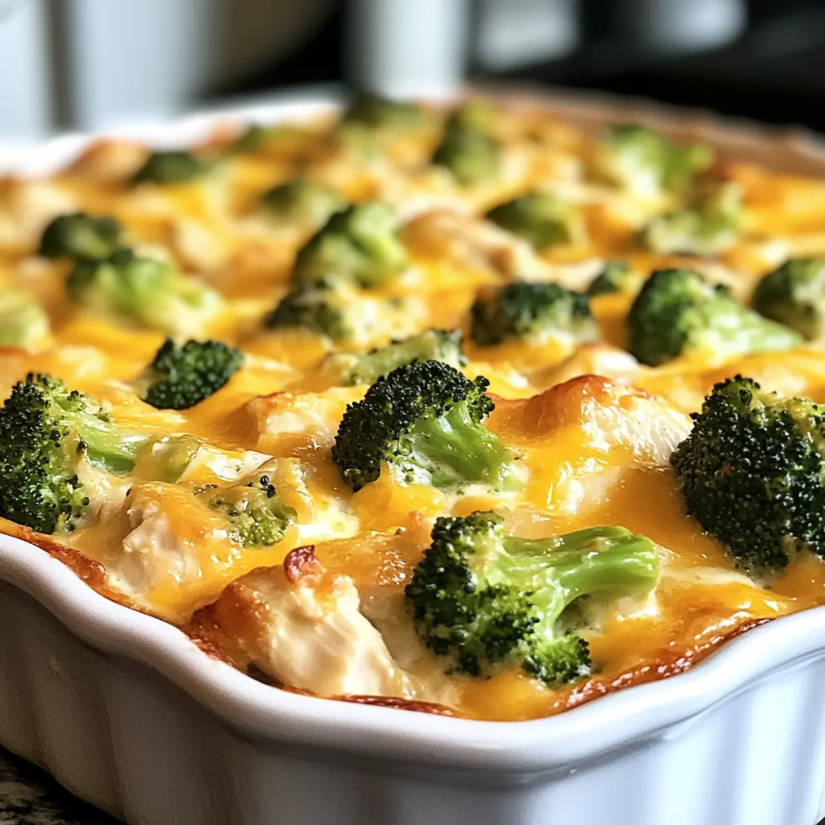Ein köstlicher Duft schlich sich durch meine Küche, während ich die Zutaten für mein neuestes Lieblingsgericht vorbereitete: den Keto Brokkoli Hähnchen Auflauf. Die Kombination aus zartem Hähnchen und knackigem Brokkoli in einer cremigen Käsesauce verzaubert nicht nur meine Familie, sondern passt auch perfekt zu unserem kohlenhydratbewussten Lifestyle. Dieses herzhaft und einfach zubereitete Gericht ist nicht nur in kürzester Zeit fertig, sondern sorgt auch dafür, dass alle am Tisch begeistert sind. Mit gesunden Fetten und wenig Kohlenhydraten ist es die ideale Lösung für ein schnelles Abendessen nach einem langen Tag. Welches Gemüse würdet ihr hinzufügen, um den Auflauf noch interessanter zu machen? Warum ist dieser Auflauf so besonders? Einfachheit: Die Zubereitung ist denkbar unkompliziert und benötigt keine speziellen Kochkünste. Herzhafter Geschmack: Die harmonische Kombination aus zartem Hähnchen und frisch gedämpftem Brokkoli sorgt für einen reichen, zufriedenstellenden Geschmack. Vielseitigkeit: Variiere den Auflauf ganz nach deinem Geschmack, indem du zum Beispiel Speck oder verschiedene Käsesorten hinzufügst – perfekt für jede Vorliebe! Familienfreundlich: Selbst die wählerischsten Esser werden diesen Auflauf lieben; er ist nicht nur lecker, sondern auch nahrhaft. Schnelle Zubereitung: In weniger als einer Stunde hast du ein köstliches Gericht, das die ganze Familie zusammenbringt. Gesund und nahrhaft: Mit nur 8 g Kohlenhydraten pro Portion eignet sich dieser Auflauf hervorragend für eine ketogene Ernährung; ein tolles nährstoffreiches Essen! Keto Brokkoli Hähnchen Auflauf Zutaten • Entdecke die köstlichen Zutaten für dieses herzhaft und einfaches Gericht! Für den Auflauf Brokkoli-Röschen – Verleiht nicht nur Farbe, sondern auch wertvolle Nährstoffe; frisch oder gefroren; vor dem Hinzufügen dämpfen. Gekochtes Hähnchen – Liefert eine proteinreiche Basis; perfekt ist zerrupftes Brathähnchen für einfache Zubereitung. Frischkäse – Sorgt für die cremige Basis; stelle sicher, dass er weich ist, um eine einfache Verarbeitung zu gewährleisten. Geriebener Cheddar-Käse – Fügt reichhaltigen Geschmack und Textur hinzu; Käse am Stück verwenden für besseres Schmelzen. Sauerrahm – Macht den Auflauf schön cremig mit einem Hauch von Säure; griechischer Joghurt als leichtere Variante verwenden. Knoblauchpulver – Für den unverwechselbaren Geschmack; frischer Knoblauch (1-2 Zehen) kann ebenfalls verwendet werden. Zwiebelpulver – Für eine geschmackliche Tiefe; viele mögen fein gehackte Zwiebeln als Alternative. Paprika – Verleiht eine subtile Rauchigkeit; für intensiveren Geschmack geräucherte Paprika verwenden. Salz und Pfeffer – Verstärken die Aromen; nach eigenem Geschmack anpassen. Für das Topping Mandelmehl – Schafft eine schöne Textur für die Kruste; alternativ Kokosmehl verwenden für einen anderen Geschmack. Olivenöl – Verbessert die Konsistenz der Topping-Zutaten; neutrales Öl funktioniert auch gut. Frische Schnittlauch – Zum Garnieren; auch frische Kräuter können hier für zusätzlichen Geschmack verwendet werden. Dieser Keto Brokkoli Hähnchen Auflauf ist nicht nur gesund, sondern auch super lecker und erfüllt die Bedürfnisse einer kohlenhydratbewussten Ernährung! Schritt-für-Schritt-Anleitung für Keto Brokkoli Hähnchen Auflauf Step 1: Ofen vorheizen Heize deinen Ofen auf 175°C vor, damit er die perfekte Temperatur erreicht, um den Keto Brokkoli Hähnchen Auflauf gleichmäßig zu backen. Während der Ofen vorheizt, kannst du mit der Zubereitung der anderen Zutaten beginnen. Außerdem kannst du bereits eine 9×13 Zoll große Auflaufform einfetten, sodass du sie später sofort verwenden kannst. Step 2: Cremige Basis zubereiten In einer großen Schüssel vermische den weich gewordenen Frischkäse und den Sauerrahm mit Knoblauch- und Zwiebelpulver, Paprika, Salz und Pfeffer, bis die Mischung schön cremig und glatt ist. Diese cremige Basis wird die Hauptkomponente deines Keto Brokkoli Hähnchen Auflaufs ausmachen, und sie sorgt für den köstlichen Geschmack. Step 3: Zutaten hinzufügen Füge nun das zerrupfte Hähnchen, die gedämpften Brokkoli-Röschen und den geriebenen Cheddar-Käse zu der cremigen Mischung hinzu. Mische alle Zutaten vorsichtig mit einem großen Löffel oder Spatel, bis alles gut kombiniert und gleichmäßig verteilt ist. Das Ergebnis wird eine satte, cremige Füllung für deinen Auflauf sein. Step 4: Mischung in die Form geben Übertrage die Mischung in die vorbereitete, eingefettete Auflaufform und verteile sie gleichmäßig. Es ist wichtig, dass die Füllung gut verteilt ist, damit jeder Bissen deines Keto Brokkoli Hähnchen Auflaufs gleich lecker und zufriedenstellend ist. Glätte die Oberfläche mit einem Spatel, um ein gleichmäßiges Backergebnis zu erzielen. Step 5: Topping zubereiten In einer kleinen Schüssel vermische das Mandelmehl mit dem Olivenöl, bis eine krümelige Textur entsteht. Diese Mischung wird das köstliche Topping für den Auflauf sein. Achte darauf, dass es gut vermengt ist, damit es beim Backen gleichmäßig bräunt und eine schöne Kruste bildet. Step 6: Auflauf vervollständigen Streue die vorbereitete Mandelmehlmischung gleichmäßig über die Oberfläche des Auflaufs. Danach kannst du für einen zusätzlichen Käsegeschmack noch etwas geriebenen Cheddar-Käse darüber geben. Diese Schicht sorgt für eine goldene, knusprige Kruste und einen unwiderstehlichen Geschmack. Step 7: Backen Backe den Keto Brokkoli Hähnchen Auflauf im vorgeheizten Ofen für 25-30 Minuten oder bis die Oberfläche blubbert und goldbraun ist. Achte während des Backens darauf, dass der Auflauf nicht zu trocken wird. Die perfekte Konsistenz solltest du erreichen, wenn der Auflauf an den Rändern leicht blubbert. Step 8: Abkühlen und servieren Lass den Auflauf nach dem Backen für ein paar Minuten abkühlen, bevor du ihn anschneidest. Dies hilft, die Zutaten zu setzen und 