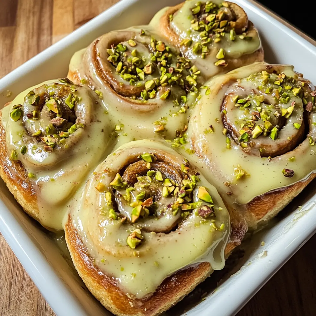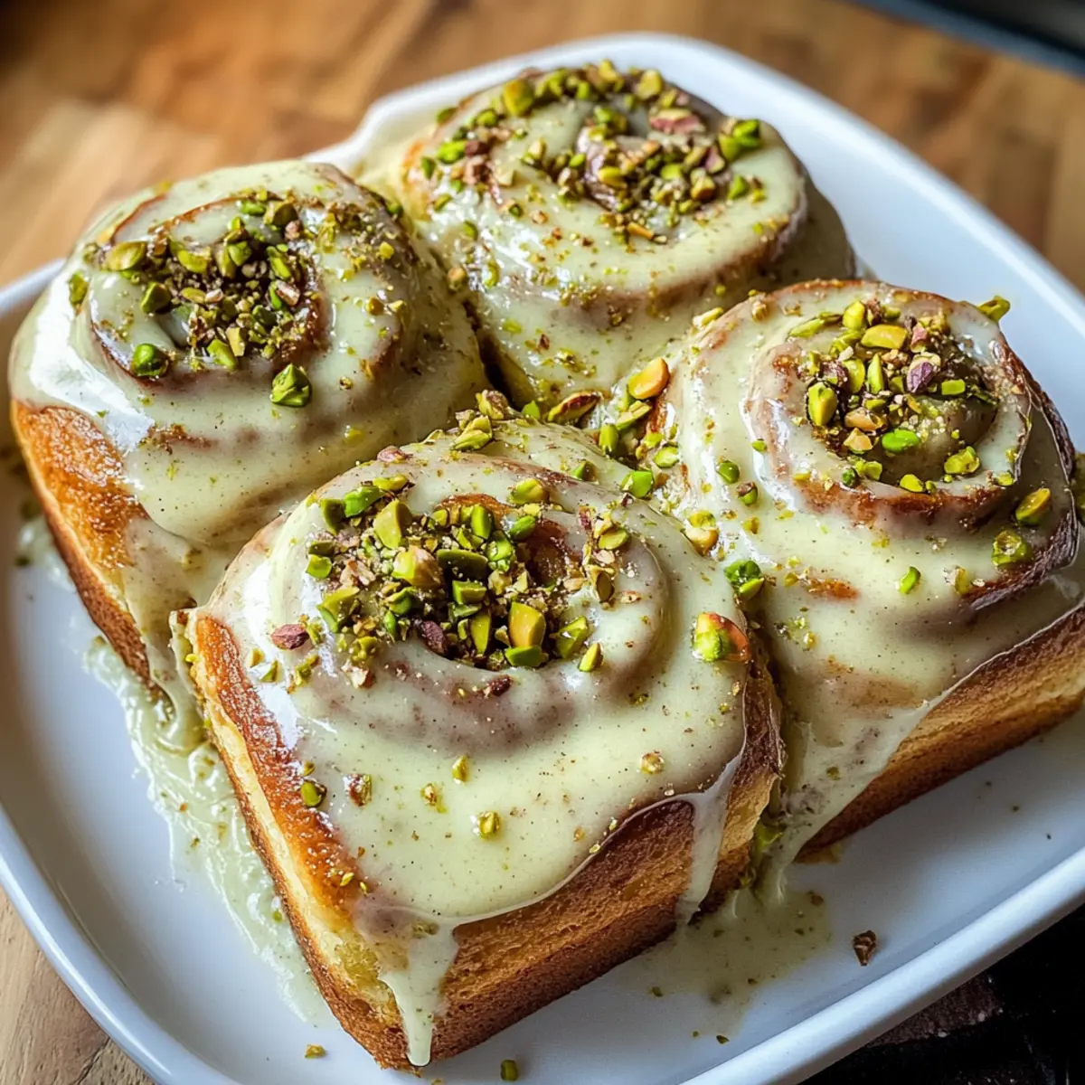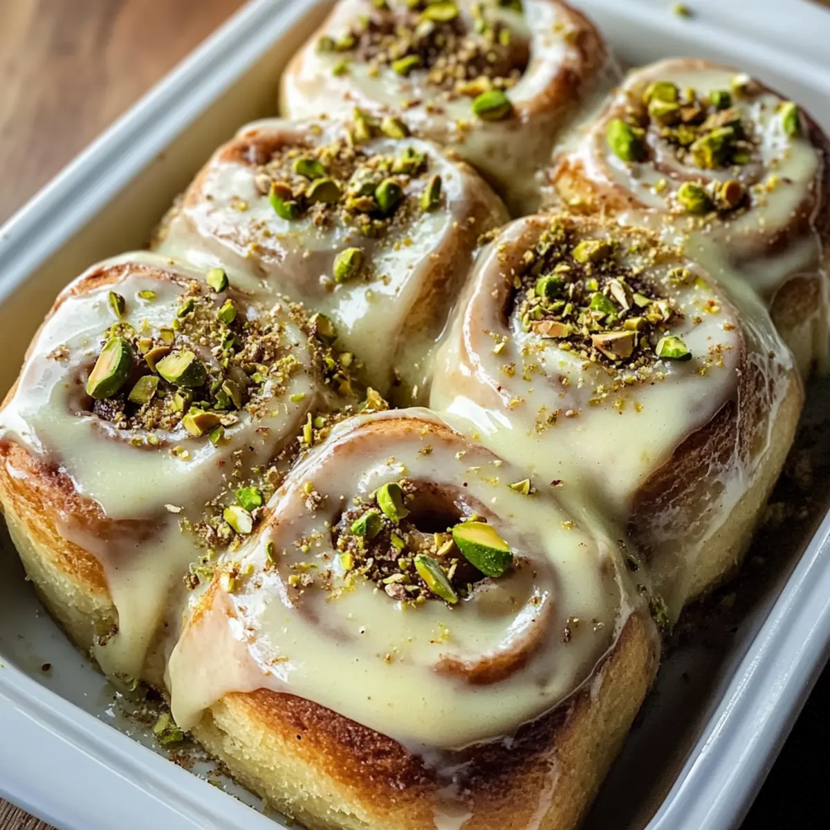 Jedes Mal, wenn ich diese Kleincharge Pistaziencreme Zimtschnecken backe, erfülle ich meine Küche mit einem Aroma, das an gemütliche Mornings erinnert. Diese kleinen, aber feinen Leckerbissen kombinieren die vertrauten Aromen klassischer Zimtschnecken mit der nussigen Süße von Pistaziencreme, die einfach unwiderstehlich ist. Sie sind nicht nur perfekt für ein entspanntes Frühstück oder einen süßen Snack nach dem Mittagessen, sondern auch in kürzester Zeit zubereitet und ideal für kleinere Haushalte. Schmeckt so gut, dass du sie immer wieder backen möchtest! Bereite dich darauf vor, den Löffel mit der cremigen Glasur voll zu nehmen und dich in diese köstlichen Schnecken zu verlieben – bereit, sie zu probieren? Warum sind Zimtschnecken immer ein Hit? Unwiderstehliches Aroma: Der Duft dieser Kleincharge Pistaziencreme Zimtschnecken erfüllt die Küche und zieht jeden in seinen Bann. Eingängige Süße: Die Kombination aus der nussigen Pistaziencreme und dem süßen Zimt macht jeden Bissen zu einem Genuss. Schnell zubereitet: Perfekt für vielbeschäftigte Köche, die sich eine himmlische Leckerei wünschen, ohne stundenlang in der Küche zu stehen. Egal zu welchem Anlass: Ob zum entspannten Frühstück oder als süßer Snack nach dem Mittagessen, diese Schnecken sind immer willkommen. Kleine Portionen, große Freude: Ideal für kleinere Haushalte, so dass nichts übrig bleibt. Lass die einfachen Zutaten für sich sprechen und entdecke auch andere köstliche Rezepte. Kleincharge Pistaziencreme Zimtschnecken Zutaten Für den Teig: Warme Milch – aktiviert die Hefe und sorgt für Feuchtigkeit; jede Milchvariante (tierisch oder pflanzlich) ist geeignet. Hefe – sorgt für das Aufgehen des Teigs; achte darauf, dass sie frisch ist. Ei – erhöht die Reichhaltigkeit; kann durch ein Flachsei ersetzt werden, um vegan zu bleiben. Ungesalzene Butter – macht den Teig zart und fluffig; veganer Butter kann für eine milchfreie Variante verwendet werden. Allzweckmehl – Hauptbestandteil für Struktur; Vollkornmehl verleiht einen nussigen Geschmack, kann aber die Textur verändern. Zucker – süßt den Teig; brauner Zucker fügt Feuchtigkeit und Tiefe hinzu, oder verwende Kokosblütenzucker für eine gesündere Wahl. Salz – hebt den Geschmack hervor; verwende Meersalz oder koscheres Salz. Für die Füllung: Pistazienbutter – sorgt für den nussigen Geschmack und die Süße der Füllung; kann selbstgemacht oder gekauft werden, alternativ Mandelbutter nutzen. Brauner Zucker – sorgt für Süße in der Füllung; Kokosblütenzucker ist auch eine Option. Gemahlener Zimt – ist unerlässlich für den traditionellen Zimtschnecken-Geschmack. Für das Topping: Frischkäse – ist die Basis für das Topping und liefert Cremigkeit; verwende veganen Frischkäse für eine pflanzliche Option. Puderzucker – sorgt für Süße und Dicke des Toppings. Vanilleextrakt – verleiht ein aromatisches Aroma. Sahne – macht das Topping reichhaltig; ersetze sie mit Kokoscreme für eine milchfreie Variante. Diese Kleincharge Pistaziencreme Zimtschnecken sind leicht zuzubereiten und verwandeln jeden Biss in ein Geschmackserlebnis. Lass uns gemeinsam in die Welt der Köstlichkeiten eintauchen! Schritt-für-Schritt-Anleitung für Kleincharge Pistaziencreme Zimtschnecken Step 1: Teig zubereiten Erwärme die Milch in einem kleinen Topf, bis sie lauwarm ist, und gib die Hefe hinein. Warte 5–10 Minuten, bis die Mischung schäumt. Vermische in einer größeren Schüssel das geschlagene Ei und die zimmerwarme Butter. Füge die Hefemischung hinzu und rühre gut um. Danach siebe das Mehl, den Zucker und das Salz hinein, bis ein klebriger Teig entsteht. Step 2: Teig kneten Knete den Teig auf einer leicht bemehlten Arbeitsfläche für etwa 5–7 Minuten, bis er glatt und elastisch ist. Achte darauf, dass der Teig nicht zu fest oder zu klebrig wird, sonst werden die Zimtschnecken dicht. Forme den Teig zu einer Kugel und lege ihn in eine leicht gefettete Schüssel. Decke die Schüssel mit einem Tuch ab und lasse den Teig an einem warmen Ort für etwa 1 Stunde gehen, bis er sich verdoppelt hat. Step 3: Füllung vorbereiten In einer separaten Schüssel vermische die Pistazienbutter mit dem braunen Zucker und dem gemahlenen Zimt zu einer glatten Paste. Falls gewünscht, kannst du auch gehackte Pistazien hinzufügen, um für zusätzlichen Crunch zu sorgen. Diese Füllung wird später auf den ausgerollten Teig gestrichen. Step 4: Schnecken formen Wenn der Teig aufgegangen ist, rolle ihn auf einer bemehlten Fläche zu einem Rechteck von etwa 30 x 40 cm aus. Verteile die vorbereitete Füllung gleichmäßig auf dem Teig. Rolle den Teig dann von der langen Seite her straff auf und schneide ihn in 4–6 gleich große Stücke. Achte darauf, dass die Kanten beim Schneiden gut zusammenhalten. Step 5: Zweite Gare Lege die geschnittenen Zimtschnecken in eine gefettete Backform, sodass sie sich leicht berühren. Bedecke die Form erneut mit einem Tuch und lasse die Schnecken für 30–45 Minuten an einem warmen Ort gehen, bis sie sichtbar aufgegangen und fluffig sind. Step 6: Backen Heize den Ofen auf 175°C vor. Backe die Kleincharge Pistaziencreme Zimtschnecken 23–30 Minuten lang, bis sie goldbraun und durchgebacken sind. Achte darauf, dass sie nicht zu dunkel werden, da sie weiterhin weich und saftig bleiben sollen. Step 7: Glasur zubereiten Während die Zimtschnecken im Ofen sind, schlage den Frischkäse mit dem Puderzucker, Vanilleextrakt, Sahne und der restlichen Pistazienbutter in einer Schüssel cremig. Die Glasur sollte glatt und gut vermischt sein. Wenn die Schnecken fertig gebacken sind, lasse sie kurz abkühlen, bevor du die Glasur darauf verteilst. Step 8: Glasieren & Servieren Verteile die Glasur großzügig über den warmen Kleincharge Pistaziencreme Zimtschnecken, sodass sie die Schichten durchdringt. Für einen besonders schönen Anblick kannst du die fertigen Schnecken noch mit gehackten Pistazien garnieren. S