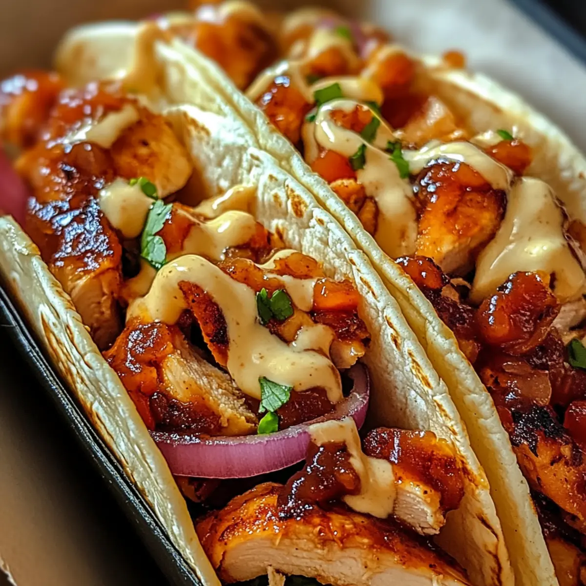 Als ich neulich in der Küche stand und den deer wohltuenden Duft von geschmolzener Butter und knusprigem Knoblauch einatmete, wusste ich, dass ein besonderes Gericht in der Mache war – die Knoblauch Butter Honig BBQ Hähnchen Tacos! Diese köstlichen Tacos vereinen auf perfekte Weise süße, würzige und rauchige Aromen. Saftiges, zartes Hähnchen wird von einer reichhaltigen Knoblauch-Butter-Sauce umhüllt, die alle Geschmäcker harmonisch miteinander verbindet. Ob für ein schnelles Abendessen unter der Woche oder für einen geselligen Taco-Abend mit Freunden, dieses Rezept ist nicht nur anpassbar und gesund, sondern auch kinderleicht vorzubereiten. Lust auf ein neues Taco-Abenteuer? Dann lasst uns sofort loslegen! Warum sind diese Tacos ein Muss? Einfachheit, die begeistert: Die Zubereitung dieser Knoblauch Butter Honig BBQ Hähnchen Tacos ist kinderleicht und erfordert keine besonderen Kochkünste. Vielfalt garantiert: Ob vegetarisch oder mit gegrilltem Hähnchen – du kannst ganz nach deinem Geschmack variieren! Würzige Süße: Diese Kombination aus süßem Honig und rauchiger BBQ-Sauce lässt keine Geschmacksnase kalt. Perfekt für Meal Prep: Bereite die einzelnen Komponenten vor und genieße frische Tacos, wann immer du Lust hast. Crowd-Pleaser: Egal, ob für eine gemütliche Familienfeier oder einen Taco-Abend mit Freunden, sie werden immer ein Hit sein! Schau dir auch unser Rezept für Gebackene Feta Honig an, das ebenfalls deine Gäste begeistern wird! Knoblauch Butter Honig BBQ Hähnchen Tacos Zutaten • Ein harmonisches Zusammenstellen von frischen Zutaten ist der Schlüssel zu diesen köstlichen Tacos! Für das Hähnchen Hähnchen (1,5 lbs) – Hauptproteinquelle, sorgt für Zartheit und Saftigkeit. Hähnchenobers sind eine schmackhafte Alternative. Salz (1 TL) – Verbessert die Aromen und macht das Hähnchen zart. Keine Substitutionen; unerlässlich für den Geschmack. Schwarzer Pfeffer (½ TL) – Fügt milde Schärfe und Tiefe hinzu. Optional für alle, die es weniger gewürzt mögen. Geräuchertes Paprikapulver (½ TL) – Bringt eine rauchige Geschmacksnote. Reguläres Paprikapulver kann weniger Rauch erzeugen. Knoblauchpulver (½ TL) – Verleiht einen Hintergrundgeschmack, der frischen Knoblauch ergänzt. Frischer Knoblauch kann verwendet werden; erhöhen Sie jedoch die Menge. Zwiebelpulver (½ TL) – Fügt subtile Süße und Tiefe hinzu. Schalotten können als frische Alternative verwendet werden. Olivenöl (1 EL) – Zum Anbraten des Hähnchens, fügt gesunde Fette hinzu. Kann durch Avocadoöl ersetzt werden. Für die Sauce Butter (3 EL, ungesalzen) – Bildet die Basis der reichhaltigen Sauce. Margarine kann als milchfreie Option genutzt werden. Knoblauch (4 Zehen, gehackt) – Liefert aromatischen Geschmack; unverzichtbar in der Sauce. Schalotten können für einen milderen Geschmack verwendet werden. Honig (¼ Tasse) – Sorgt für Süße und Glanz in der Sauce. Agavensirup kann als vegane Substitution verwendet werden. BBQ-Sauce (½ Tasse) – Basis für die Sauce, sorgt für Quelligkeit. Verwenden Sie eine beliebige Lieblingsmarke oder selbstgemachte Variante. Sojasauce (1 EL) – Fügt umami und Salzigkeit hinzu. Tamari für glutenfrei oder Kokosaminos für sojafrei. Apfelessig (1 EL) – Bringt Säure, um die Süße auszubalancieren. Zitronensaft kann hier substituiert werden. Rote Pfefferflocken (½ TL, optional) – Für etwas Schärfe. Menge je nach Geschmack anpassen. Für die Tacos Tortillas (8 kleine) – Die Hülle für die Tacos. Weiche oder Mais-Tortillas verwenden und auf glutenfreie Optionen achten. Toppings (verschiedene) – Geriebener Kopfsalat, gewürfelte Tomaten, gehackte rote Zwiebeln, geriebener Käse, frischer Koriander, Limettenschnitze, saure Sahne oder griechischer Joghurt. Diese fügen Frische und Textur hinzu. Passe sie nach verfügbarer Auswahl oder persönlichen Vorlieben an. In diesen Knoblauch Butter Honig BBQ Hähnchen Tacos vereinen sich abwechslungsreiche Aromen und Zutaten! Wie wäre es, sie direkt auszuprobieren und ein Festmahl zu gestalten? Schritt-für-Schritt-Anleitung für Knoblauch Butter Honig BBQ Hähnchen Tacos Step 1: Hähnchen vorbereiten In einer Schüssel vermenge das Salz, den schwarzen Pfeffer, das geräucherte Paprikapulver, das Knoblauchpulver und das Zwiebelpulver. Reibe diese Gewürzmischung gründlich auf das Hähnchen, damit es gut durchzogen ist. Lasse das Hähnchen 10 Minuten ruhen, damit die Aromen einziehen können. Step 2: Hähnchen anbraten Erhitze das Olivenöl in einer großen Pfanne bei mittlerer Hitze. Lege das gewürzte Hähnchen in die Pfanne hinein und brate es 5-6 Minuten auf jeder Seite, bis es goldbraun ist und die Innentemperatur 75°C erreicht. Nach dem Braten das Hähnchen 5 Minuten ruhen lassen, dann in dünne Scheiben schneiden. Step 3: Sauce zubereiten In der gleichen Pfanne die Butter schmelzen und den gehackten Knoblauch hinzufügen. Sauté den Knoblauch für etwa 30-45 Sekunden, bis er aromatisch ist, aber nicht bräunt. Füge Honig, BBQ-Sauce, Sojasauce, Apfelessig und die roten Pfefferflocken hinzu und lasse die Mischung 2-3 Minuten bei mittlerer Hitze köcheln, bis sie leicht eindickt. Step 4: Hähnchen mit Sauce vermengen Die geschnittenen Hähnchenteile in die Pfanne mit der Sauce geben und alles gut vermengen. Koche die Mischung für zusätzliche 2 Minuten, damit das Hähnchen die leckere Knoblauch Butter Honig BBQ Sauce aufnimmt. Achte darauf, dass die Wärme konstant bleibt, damit nichts anbrennt. Step 5: Tortillas erwärmen In einer separaten Pfanne jede Tortilla bei mittlerer Hitze warmen. Erwärme jede Tortilla 15-20 Sekunden auf jeder Seite, bis sie geschmeidig und leicht goldbraun sind. Die warmen Tortillas machen das Füllen einfacher und verbessern das Esserlebnis. Step 6: Tacos zusammenstellen Fülle jede Tortilla großzügig mit dem Hähnchen aus der Knoblauch Butter Honig BBQ Mischung. Verteile nach Belieben Toppings wie geriebenen Kopfsalat, gewürfelte 