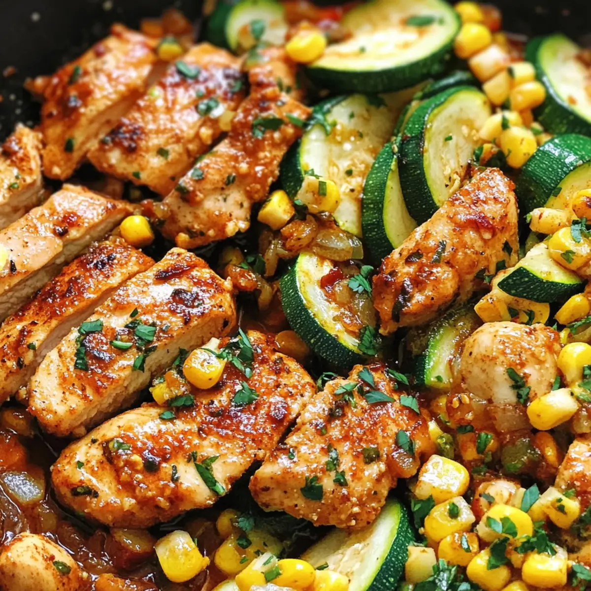 Die Sonne strahlt auf den Grill, und ich kann es kaum erwarten, die köstlichen Aromen eines schnellen Abendessens zu genießen! Heute präsentiere ich euch mein Knoblauchbutter-Hühnchen mit Zucchini und Mais — ein Gericht, das nicht nur in unter 30 Minuten zubereitet wird, sondern auch ein absoluter Familienliebling ist. Saftige Hühnchenstücke vereinen sich mit frischer Zucchini und süßem Mais, alles umhüllt von einer cremigen Knoblauchbutter-Sauce. Die Kombination aus leuchtenden Farben und dem feinen Geschmack heller Gemüsesorten macht dieses Gericht perfekt für warme Sommerabende. Und das Beste daran? Es ist nicht nur glutenfrei, sondern kann auch ganz einfach vegetarisch zubereitet werden. Wie wäre es, wenn wir gemeinsam die Pfanne zum Brutzeln bringen? Warum ist Knoblauchbutter-Hühnchen so beliebt? Einfache Zubereitung: In nur 30 Minuten genießen Sie ein köstliches Abendessen, das garantiert jedem schmeckt. Frische Zutaten: Leckere Zucchini und süßer Mais verleihen dem Gericht eine frische Note, die an den Sommer erinnert. Variationsvielfalt: Ob mit Tofu oder Pilzen – die vegetarische Variante ist ebenso lecker und einfach zuzubereiten. Wohlige Aromen: Die Kombination aus Knoblauch, Butter und einer Prise Paprika sorgt für eine Geschmacksexplosion, die begeistert. Gesunde Wahl: Glutenfrei und voller gesunder Fette aus Olivenöl, ist es eine großartige Option für ausgewogene Mahlzeiten. Lassen Sie sich von diesem Gericht inspirieren, und kombinieren Sie es mit einer frischen Beilage für ein perfektes Dinner-Erlebnis! Knoblauchbutter-Hühnchen Zutaten • Entdecken Sie die köstlichen Zutaten für ein schnelles und schmackhaftes Gericht! Für das Hühnchen Hühnchenbrust – Hauptproteinquelle; Hühnchenkeulen können für mehr Geschmack verwendet werden. Olivenöl – Zum Anbraten des Huhns und des Gemüses; kann durch Avocadoöl ersetzt werden. Knoblauch – Hauptaroma; fein gehackt für maximalen Geschmack hinzufügen. Smoked Paprika – Gibt eine rauchige Note; nach Belieben mehr hinzufügen. Chili-Pulver – Für eine angenehme Schärfe; nach Geschmack anpassen. Salz – Verbesser die Aromen; nach Geschmack anpassen. Schwarzer Pfeffer – Beigefügt für Gewürz; frisch gemahlener Pfeffer ist bevorzugt. Für das Gemüse Zucchini – Für Frische und Knackigkeit; kann durch Gelbe Zucchini ersetzt werden. Maiskörner – Für Süße und Textur; frischer Mais ist ideal, gefrorener kann auch verwendet werden. Für die Sauce Butter – Verleiht der Sauce Cremigkeit; kann durch pflanzliche Butter für eine vegane Version ersetzt werden. Limettensaft – Bringt die Aromen zum Strahlen; kann weggelassen werden für einen milderen Geschmack. Koriander – Frische Kräuter-Garne; kann durch Petersilie ersetzt werden, um eine andere Note zu erhalten. Genießen Sie dieses knoblauchbutter-hühnchen zubereitet in unter 30 Minuten und verwandeln Sie Ihr Abendessen in ein geschmackvolles Erlebnis! Schritt-für-Schritt-Anleitung für Knoblauchbutter-Hühnchen Zucchini Mais Step 1: Pfanne vorheizen Erhitzen Sie eine große gusseiserne Pfanne bei mittlerer Hitze und geben Sie einen Esslöffel Olivenöl hinzu, sodass es leicht schimmert. Warten Sie, bis das Öl heiß ist, dann fügen Sie die geschnittene Zucchini hinzu. Braten Sie die Zucchini etwa 3 Minuten lang an, bis sie leicht goldbraun und zart ist, danach beiseite stellen. Step 2: Hühnchen würzen Würzen Sie die Hühnchenbruststücke großzügig mit geräuchertem Paprika, Chili-Pulver, Salz und frisch gemahlenem schwarz Pfeffer. Achten Sie darauf, die Gewürze gleichmäßig zu verteilen. Bereiten Sie die Pfanne auf, indem Sie im gleichen Behälter etwas mehr Olivenöl hinzufügen. Step 3: Hühnchen braten Legen Sie das gewürzte Hühnchen in einer einzigen Schicht in die heiße Pfanne und braten Sie es 4 Minuten lang. Warten Sie, bis die Unterseite eine goldbraune Farbe annimmt. Wenden Sie die Hühnchenstücke vorsichtig und achten Sie darauf, sie nicht zu überfüllen, um eine gleichmäßige Bräunung zu erzielen. Step 4: Knoblauch hinzufügen Fügen Sie nach dem Wenden der Hühnchenstücke eine fein gehackte Knoblauchzehe in die Pfanne hinzu. Kochen Sie das Hühnchen weitere 2 Minuten, bis es durchgegart ist und der Knoblauch angenehm duftet. Achten Sie darauf, dass der Knoblauch nicht anbrennt, um einen bitteren Geschmack zu vermeiden. Step 5: Sauce zubereiten Reduzieren Sie die Hitze und geben Sie den Limettensaft und die Butter in die Pfanne. Rühren Sie die Mischung um, bis die Butter geschmolzen ist und sich mit den restlichen Zutaten verbindet. Diese cremige Knoblauchbutter-Sauce wird das Hühnchen hervorragend umhüllen und addiert zusätzlichen Geschmack. Step 6: Gemüse hinzufügen Mischen Sie die gebratene Zucchini und die Maiskörner in die Pfanne, sodass sie gleichmäßig mit der Soße überzogen werden. Kochen Sie alles zusammen für weitere 2 Minuten, bis das gesamte Gemüse erhitzt ist und die Aromen gut durchgezogen sind. Achten Sie auf die schöne farbenfrohe Mischung. Step 7: Abschmecken und servieren Fügen Sie die Hälfte des frisch gehackten Korianders hinzu und passen Sie die Gewürze nach Geschmack an. Servieren Sie das Knoblauchbutter-Hühnchen mit Zucchini und Mais heiß, garniert mit dem restlichen Koriander und einem Hauch Chili-Pulver für eine zusätzliche Geschmacksdimension. Knoblauchbutter-Hühnchen Variationen Lassen Sie Ihrer Kreativität freien Lauf und passen Sie dieses köstliche Gericht nach Ihrem Geschmack an! Vegetarisch: Ersetzen Sie das Hühnchen durch Tofu oder dick geschnittene Pilze, um einen herzhaften Geschmack zu erzeugen. Saisonale Gemüsen: Verwenden Sie saisonales Gemüse wie gerösteten Butternusskürbis oder sautierte Paprika für eine herbstliche Note. Die Variabilität der Zutaten macht das Gericht besonders spannend! Extra Würze: Fügen Sie einen Hauch von Chili-Öl oder frischen Chili-Schoten hinzu, um die Schärfe zu steigern und den Gaumen zu kitzeln. Nussi