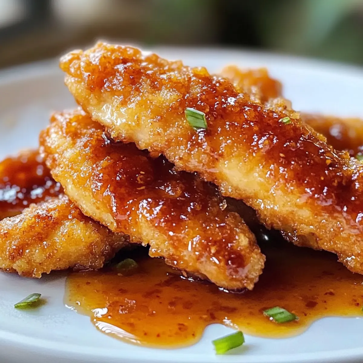 Hast du jemals den verführerischen Duft von frisch frittiertem Hähnchen gespürt, der durch deine Küche zieht? Mit meinem Rezept für knusprige Honigbutter-Hühnchenstreifen wird dieses Erlebnis greifbar. Diese Hühnchenstreifen verbinden die perfekte Knusprigkeit mit einer süß-buttrigen Note, die einfach unwiderstehlich ist. Ideal für Familienessen oder gesellige Abende, lassen sie sich schnell zubereiten und sorgen garantiert für strahlende Gesichter am Tisch. Dank der Buttermilch-Marinade bleiben die Streifen saftig und zart, während die goldene Kruste jeden Bissen zu einem kleinen Fest macht. Bereit, deine Liebsten mit diesem klassischen amerikanischen Komfortessen zu begeistern? Lass uns loslegen! Warum wirst du dieses Rezept lieben? Einfachheit: Die Zubereitung ist kinderleicht und benötigt nur grundlegende Kochkenntnisse. Süßes und Herzhaftes: Die perfekte Kombination aus honigsüßer Butter und zartem Hähnchen sorgt für ein Geschmackserlebnis, das du nicht vergessen wirst. Vielseitigkeit: Ob als Hauptgericht oder in einem Sandwich serviert, diese Hühnchenstreifen sind vielseitig einsetzbar. Perfekte Konsistenz: Die knusprige Oberfläche in Verbindung mit dem saftigen Fleisch sorgt für ein unwiderstehliches Mundgefühl. Familienfreundliches Gericht: Ideal für jeden Anlass, von Familienessen bis zu geselligen Abenden – deine Gäste werden begeistert sein! Falls du noch mehr Ideen brauchst, wie du deine knusprigen Streifen anrichten kannst, schau dir die besten Beilagen für Hühnchen an! Knusprige Honigbutter-Hühnchenstreifen Zutaten Um deinen Gästen ein unvergessliches Geschmackserlebnis zu bieten, benötigst du folgende Zutaten für das Rezept. Für das Hühnchen Hühnchenstreifen – Hauptprotein, zentral für die Herzhafte, die diese Streifen bieten. Buttermilch – Zartet das Hühnchen und sorgt für Geschmack; ersetze sie mit normaler Milch und einem Esslöffel Zitronensaft oder Essig. Salz – Intensiviert den Geschmack; es gibt keinen direkten Ersatz. Schwarzer Pfeffer – Sorgt für eine milde Schärfe; verwende weißen Pfeffer für einen anderen Geschmack. Knoblauchpulver – Gibt herzhaften Tiefgang; frischer Knoblauch kann verwendet werden, passe jedoch die Menge nach Geschmack an. Paprika – Fügt Geschmack und Farbe hinzu; geräucherte Paprika bietet einen intensiveren Geschmack. Für die Panade Allzweckmehl – Grundzutat für die Beschichtung; eine glutenfreie Mehlmischung ist ebenfalls möglich. Maisstärke – Sorgt für zusätzliche Knusprigkeit; kann durch Kartoffelstärke ersetzt werden. Backpulver – Hilft, eine leichte, luftige Kruste zu erzielen; unbedingt verwenden, um die Textur zu erhalten. Für das Frittieren Pflanzenöl – Zum Frittieren; kann durch Raps- oder Erdnussöl ersetzt werden. Für die Honigbutterglasur Butter – Basis der Honigbutterglasur; ungesalzene Butter ermöglicht bessere Kontrolle über den Salzgehalt. Honig – Verleiht die charakteristische Süße; Ahornsirup kann für einen anderen Geschmack verwendet werden. Optional: Gewürzsoße – Fügt der Honigbutter Wärme hinzu; nach Belieben anpassen. Mit diesen Zutaten bist du bestens gerüstet, um deine Knusprigen Honigbutter-Hühnchenstreifen zu kreieren, die garantiert jedem auf der Zunge zergehen werden! Schritt-für-Schritt-Anleitung für Knusprige Honigbutter-Hühnchenstreifen Rezept Step 1: Hähnchen marinieren Die Hühnchenstreifen in eine Schüssel geben und mit Buttermilch, Salz, schwarzem Pfeffer, Knoblauchpulver und Paprika vermengen. Decke die Schüssel ab und stelle sie für mindestens 30 Minuten bis zu 4 Stunden in den Kühlschrank. Diese Marinade sorgt dafür, dass das Hühnchen zart und voller Geschmack bleibt, während du die Aromen ideal entfaltest. Step 2: Panade vorbereiten In einer flachen Schüssel das Allzweckmehl, die Maisstärke und das Backpulver gründlich vermischen. Diese Mischung bildet die Grundlage für die knusprige Beschichtung deiner Knusprigen Honigbutter-Hühnchenstreifen. Stelle die Schüssel bereit, während du den nächsten Schritt zur Herstellung der knusprigen Kruste angehst. Step 3: Öl erhitzen Fülle eine große Pfanne mit etwa 5 cm Pflanzenöl und erhitze es auf mittlerer bis hoher Stufe, bis die Öltemperatur bei 180 °C (350 °F) erreicht ist. Verwende ein Küchenthermometer, um sicherzustellen, dass das Öl heiß genug ist – nur so erhältst du die perfekte Knusprigkeit. Während das Öl erhitzt, kannst du dich auf das nächste Dredging vorbereiten. Step 4: Hähnchenpanade Nehme die Hühnchenstreifen aus der Marinade und tauche sie in die vorbereitete Mehlmischung. Achte darauf, die Streifen gut zu beschichten, indem du leicht andrückst. Für einen zusätzlichen Knusprigkeitseffekt kannst du die Streifen zur Sicherheit noch einmal in die Buttermilch tauchen und sie erneut in der Mehlmischung wenden, bevor du mit dem Frittieren fortfährst. Step 5: Hähnchen frittieren Frittiere die Hühnchenstreifen in Portionsgrößen, um Überfüllung zu vermeiden, jeweils 4 bis 5 Minuten auf jeder Seite, bis sie goldbraun sind und eine Innentemperatur von 74 °C (165 °F) erreicht haben. Schau genau hin: die perfekte Kruste wird goldbraun und knusprig – ein Zeichen, dass sie bereit sind, aus dem Öl genommen zu werden. Step 6: Honigbutterglasur zubereiten In einem kleinen Topf die ungesalzene Butter bei niedriger Hitze schmelzen. Rühre den Honig und optional die Gewürzsoße ein, bis alles gut vermischt ist und die Glasur warm ist. Diese köstliche Honigbutterglasur wird deinen knusprigen Streifen das gewisse Etwas verleihen und ihnen eine süß-buttrige Note geben, die sie unwiderstehlich macht. Step 7: Anrichten und servieren Sobald die Hähnchenstreifen frittiert sind und das Öl abtropfen konnte, genieße es, die Honigbutterglasur großzügig über die Streifen zu träufeln oder sie mit einem Pinsel zu bestreichen. Serviere sie warm und vielleicht mit etwas Beilage wie coleslaw oder einem frischen Salat, damit deine Kn