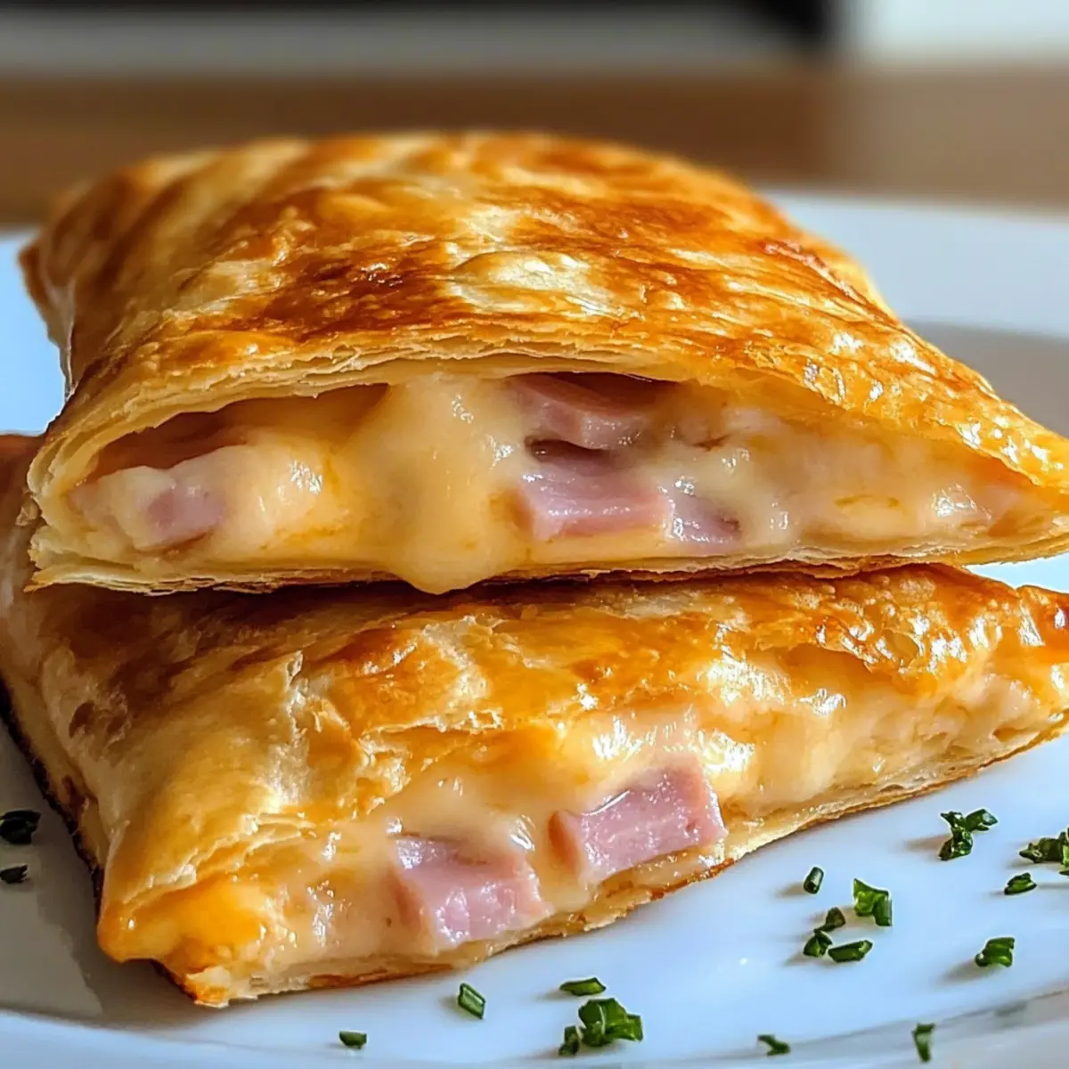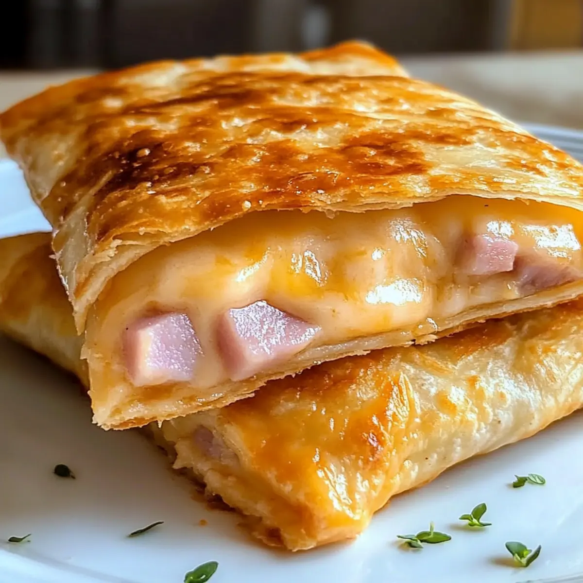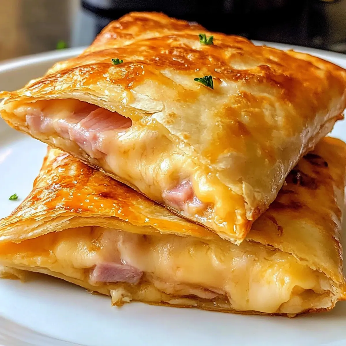 Ein unerwarteter Duft zieht durch die Küche und versetzt mich direkt in Erinnerungen an gemütliche Nachmittage mit selbstgemachtem Essen. Heute zeige ich euch, wie ihr knusprige Schinken-Käse-Taschen ganz einfach im Air Fryer zubereiten könnt. In nur 15 Minuten sind diese herzhaften Snacks fertig und perfekt für ein schnelles Mittagessen oder einen Snack zwischendurch. Das Beste daran? Ihr könnt sie ganz nach eurem Geschmack anpassen – ob mit würzigem Gouda oder scharfem Pepper Jack, die Möglichkeiten sind endlos. Außerdem sind diese leckeren Taschen nicht nur schnell gemacht, sondern lassen sich auch hervorragend einfrieren, sodass ihr immer eine köstliche Überraschung parat habt. Welche Füllungen werden euch am meisten begeistern? Lass uns gemeinsam loslegen! Warum werden Sie diese Taschen lieben? Einfachheit: Die Zubereitung ist kinderleicht und erfordert nur die grundlegenden Kochkenntnisse. Vielfalt: Passen Sie die Füllung nach Lust und Laune an – von exotischen Käsesorten bis hin zu köstlichem Gemüse! Zeitersparnis: In nur 15 Minuten haben Sie einen köstlichen Snack oder ein schnelles Mittagessen zubereitet. Perfekte Textur: Außen knusprig, innen unwiderstehlich cremig – diese Kombination wird jeden begeistern! Vorratsfreundlich: Ideal zum Einfrieren, sodass Sie jederzeit eine schmackhafte Mahlzeit parat haben. Familienfreundlich: Ideal für ein gemeinsames Kochen oder als Snack für die Kinder – alle werden diese Taschen lieben! Knusprige Schinken-Käse-Taschen Zutaten • Ein einfacher Genuss, der Ihnen den perfekten Snack beschert! Für die Taschen Mehl-Tortillas – Die ideale Basis für Ihre Schinken-Käse-Taschen; wählen Sie mittelgroße (ca. 20 cm Durchmesser) für einfaches Falten. Kochschinken – Sorgt für den herzhaften Geschmack; Sie können diesen auch durch türkischen Aufschnitt oder Salami ersetzen. Geriebener Cheddar-Jack Käse – Bringt cremigen Geschmack; alternativ sind Gouda, Mozzarella oder Gruyère tolle Optionen für andere Geschmacksrichtungen. Weiche Butter – Zum Bestreichen vor dem Air Fryen für eine knusprige Oberfläche; geschmolzene Margarine kann ebenfalls verwendet werden. Schritt-für-Schritt-Anleitung für Knusprige Schinken-Käse-Taschen Step 1: Tortillas erwärmen Erhitzen Sie die Mehl-Tortillas in der Mikrowelle für etwa 20 Sekunden, bis sie warm und gleichmäßig weich sind. So lassen sie sich leichter falten und sind weniger anfällig für Risse beim Befüllen. Halten Sie die Tortillas bereit, während Sie die anderen Zutaten vorbereiten. Step 2: Schinken vorbereiten Schneiden Sie den Kochschinken in kleine Stücke, sodass er gleichmäßig verteilt in den Taschen landet. Diese vorbereiteten Stücke sollten bite-sized sein, um einen perfekten Biss in Ihren Knusprigen Schinken-Käse-Taschen zu gewährleisten. Stellen Sie die Schinkenstücke beiseite, während Sie die Käsefüllung vorbereiten. Step 3: Käse und Füllung befüllen Legen Sie etwa 60 g geriebenen Cheddar-Jack Käse in die Mitte jeder Tortilla. Fügen Sie dann die geschnittenen Schinkenstücke hinzu und bedecken Sie diese mit einer dünnen Schicht zusätzlichem Käse. Die Füllung sollte sich schön in der Mitte der Tortilla anordnen lassen, ohne über den Rand hinauszureichen. Step 4: Taschen falten und versiegeln Falten Sie jede Tortilla vorsichtig in der Mitte und drücken Sie die Ränder fest zusammen, um ein sicheres Versiegeln zu gewährleisten. Verwenden Sie eine Gabel, um die Kanten nach Belieben zu crimpen; dies hilft, die Füllung während des Kochens in den Knusprigen Schinken-Käse-Taschen zu halten. Step 5: Air Fryer vorheizen Heizen Sie Ihren Air Fryer auf 193°C (380°F) für etwa 3 Minuten vor. Dies sorgt dafür, dass die Taschen gleichmäßig und knusprig garen. Überprüfen Sie die Temperatur des Geräts, während Sie sich auf das Bestreichen der Taschen vorbereiten. Step 6: Taschen bestreichen Bestreichen Sie die Oberseiten der gefüllten Taschen großzügig mit weicher Butter und streuen Sie etwas zusätzlichen Käse darüber. Dies trägt zu einer schönen goldbraunen und knusprigen Oberfläche bei, wenn die Knusprigen Schinken-Käse-Taschen im Air Fryer garen. Achten Sie darauf, alle Ränder gut abzudecken. Step 7: Garzeit im Air Fryer Legen Sie die gefüllten Taschen mit der Naht nach unten in den Korb des Air Fryers. Kochen Sie sie für etwa 5 Minuten, wobei Sie nach 2-3 Minuten einen Blick darauf werfen sollten, um sicherzustellen, dass sie gleichmäßig goldbraun werden. Step 8: Abkühlen und servieren Lassen Sie die Knusprigen Schinken-Käse-Taschen für 1-2 Minuten abkühlen, da die Füllung sehr heiß sein wird. Überprüfen Sie die Textur und genießen Sie die Kombination aus knuspriger Außenseite und cremiger Käsefüllung. Bereiten Sie sich auf ein unvergessliches Geschmackserlebnis vor! Was passt zu den Knusprigen Schinken-Käse-Taschen? Genießen Sie ein wahres Geschmackserlebnis, wenn Sie diese herzhaften Taschen mit köstlichen Beilagen kombinieren. Frischer Salat: Ein bunter gemischter Salat mit knackigem Gemüse und leichtem Dressing bringt Frische und Balance zu den herzhaften Taschen. Sauerrahm-Dip: Der cremige Sauerrahm harmoniert perfekt mit den warmen, knusprigen Taschen und sorgt für eine erfrischende Geschmackskombination. Salsa mit Avocado: Eine fruchtige Salsa mit Avocado und Tomaten ergänzt die salzigen Aromen der Taschen und bringt einen würzigen Kick. Gemüsesuppe: Eine leicht gewürzte Gemüsesuppe ist die ideale Ergänzung, um den Geschmack zu intensivieren und ein rundum befriedigendes Mahl zu schaffen. Gegrilltes Gemüse: Würziges, gegrilltes Gemüse bietet eine gesunde, herzhafte Note und bringt zusätzlich Farbe auf den Teller. Rotwein: Ein Glas fruchtiger Rotwein rundet das Essen ab und verwandelt Ihr schnelles Mittagessen in ein kleines Festmahl. So bereiten Sie Knusprige Schinken-Käse-Taschen im Voraus vor Die Knusprigen Schinken-Käse-Taschen sind perfekt für die Vorbereitung! Sie kön