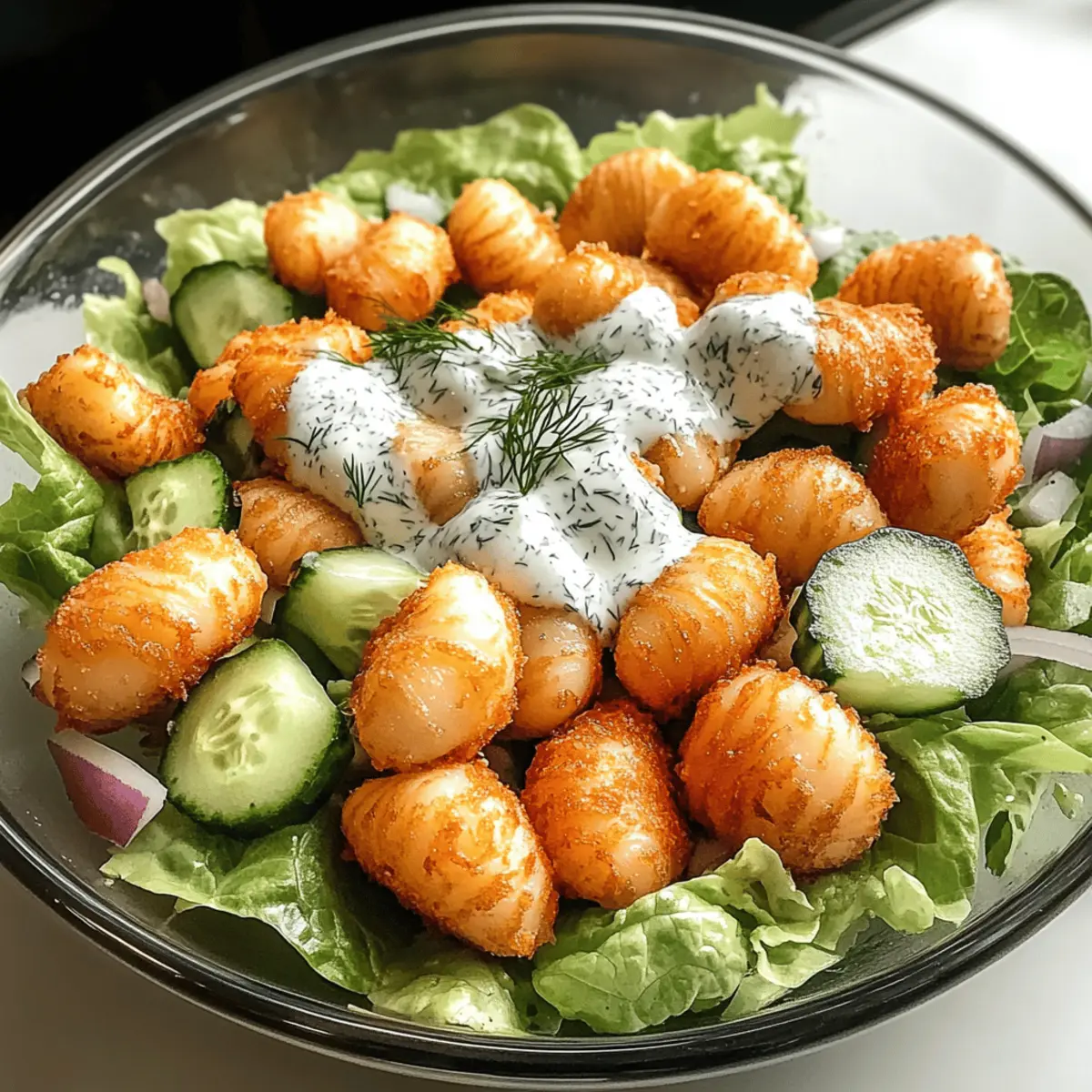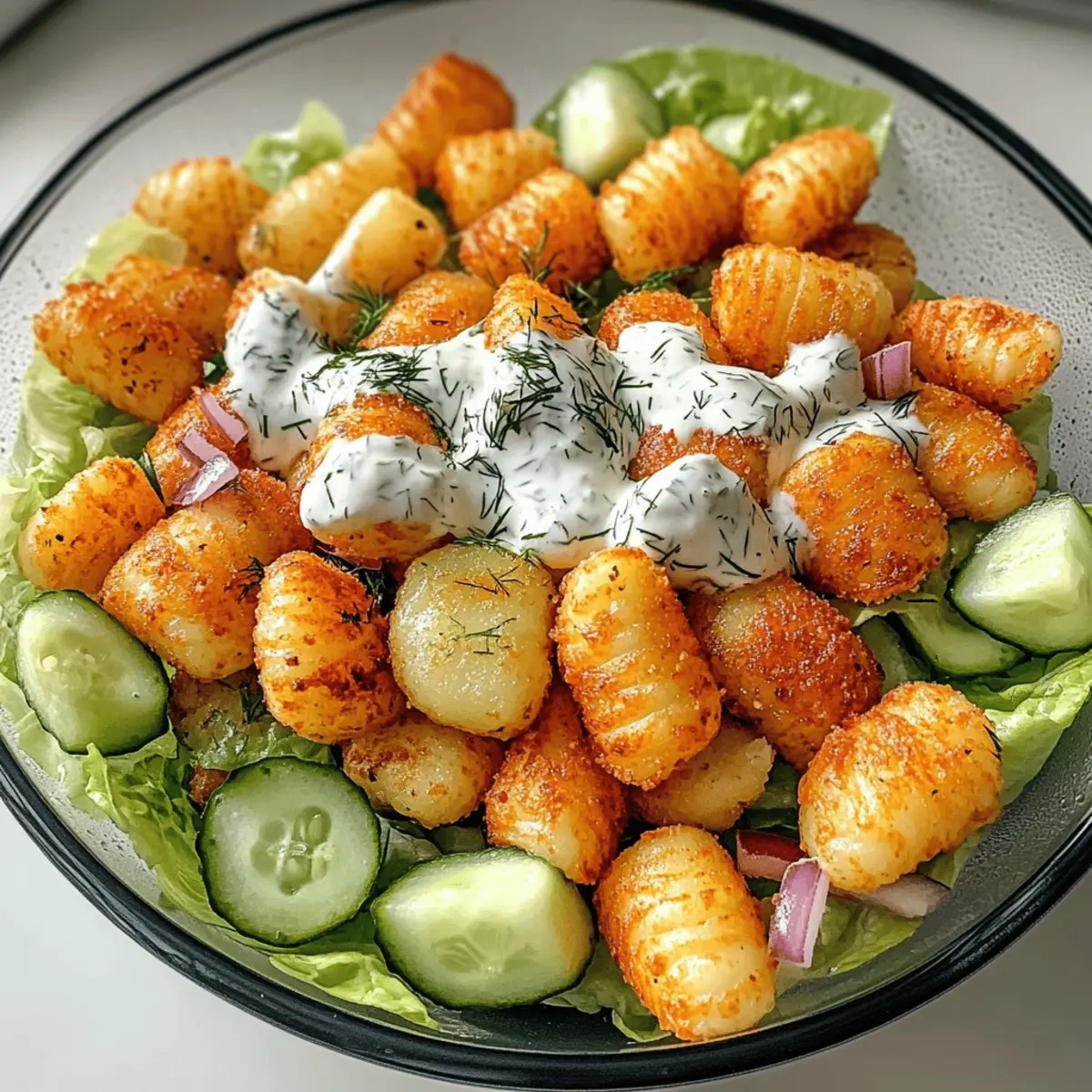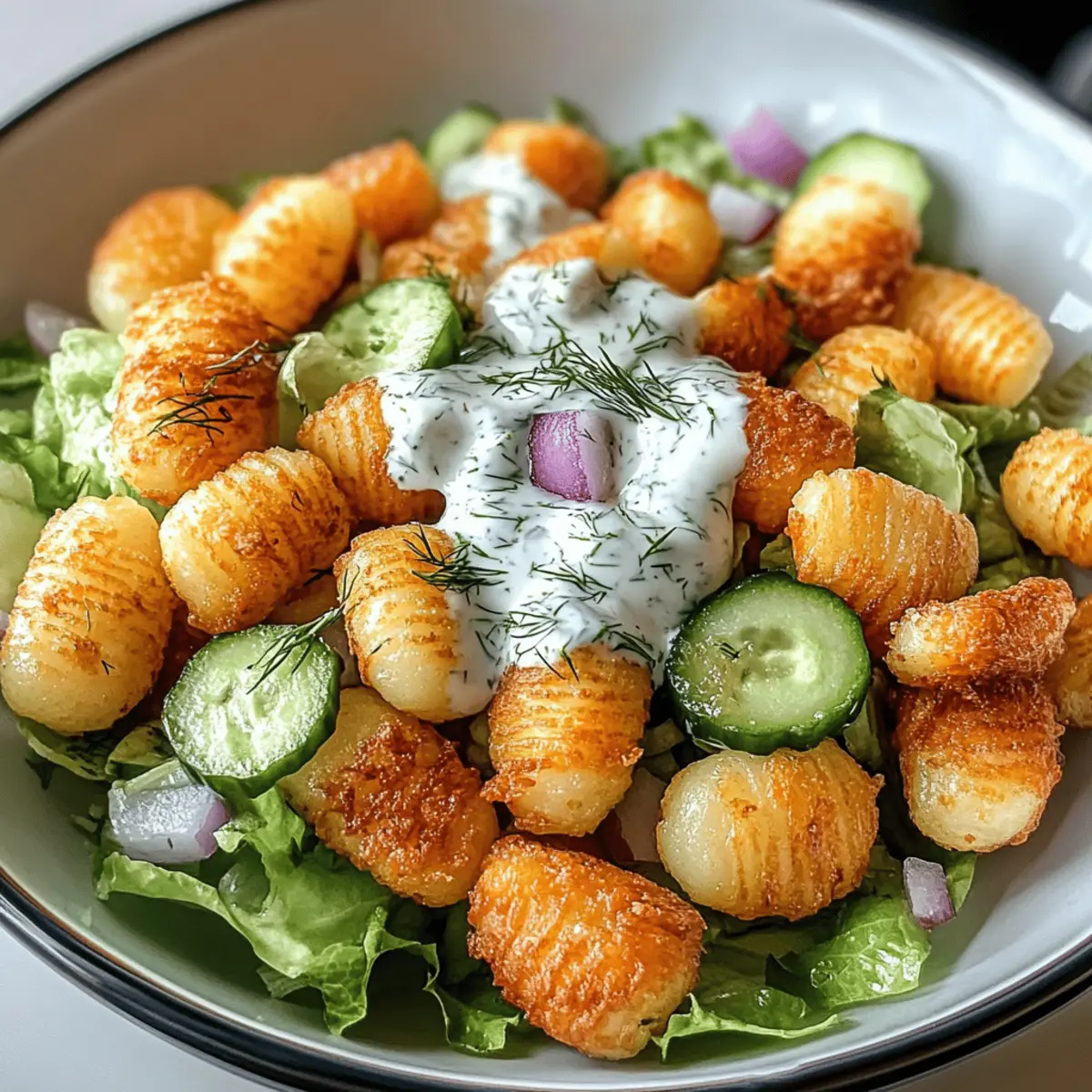 Frische Geschmacksexplosion: Dieser Salat vereint die knusprigen Gnocchi mit frischem Gemüse, was einen aufregenden Kontrast in jedem Bissen schafft.