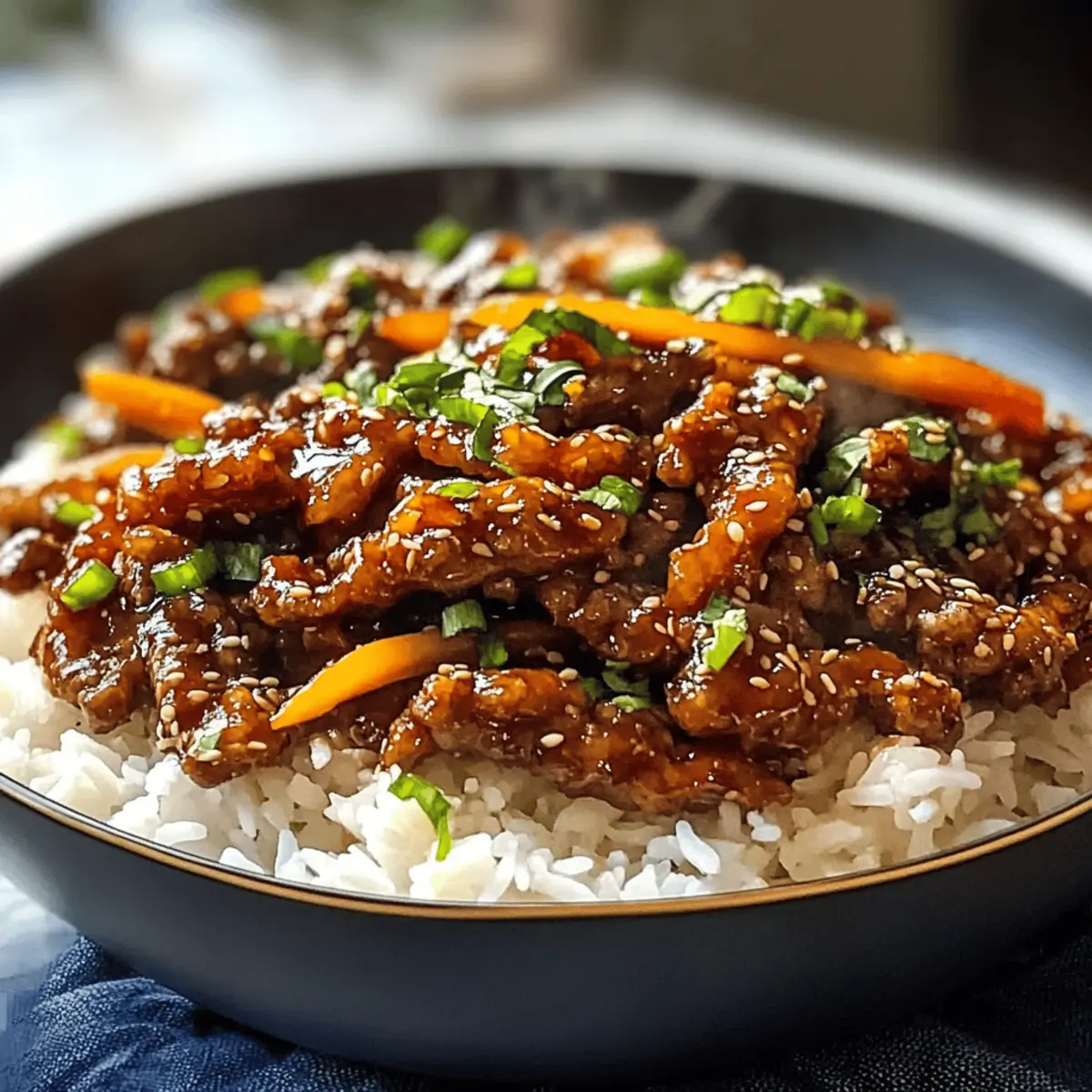 “Wenn ich an eine schmackhafte Woche zurückdenke, fällt mir sofort das Knusprige Chili Rindfleisch Reis ein. Dieses Gericht vereint das Beste aus beiden Welten: knackig gebratenes Rindfleisch, das in einer süß-scharfen Sauce schwelgt, serviert auf fluffigem Reis. Ideal für die hektischen Abende unter der Woche, bietet dieses Rezept nicht nur eine schnelle Zubereitung in nur 30 Minuten, sondern lässt sich auch wunderbar anpassen – egal, ob du den Schärfegrad erhöhen oder auf Hähnchen umsteigen möchtest. Du kannst dir vorstellen, wie die Aromen deiner Küche die Vorfreude auf das Essen steigern. Neugierig, wie du dieses unverwechselbare Erlebnis kreieren kannst?” Warum wirst du dieses Rezept lieben? Einfachheit: Die Zubereitung ist kinderleicht und benötigt nur grundlegende Kochkenntnisse. Perfekt für Anfänger oder beschäftigte Köche! Vielseitigkeit: Du kannst die Schärfe nach deinem Geschmack anpassen und auch Hähnchen oder Tofu verwenden, um das Gericht zu variieren. Unvergesslicher Geschmack: Die Kombination aus knusprigem Rindfleisch und der süßen, würzigen Sauce sorgt für ein Geschmackserlebnis, das dich begeistern wird. Schnelle Zubereitung: In nur 30 Minuten kannst du ein köstliches Abendessen zaubern, ideal für hektische Wochentage. Perfekte Ergänzung: Ergänze dein Gericht mit stir-fried vegetables oder einem frischen Salat, um die Aromen zu vervollständigen. Zuschauerliebling: Dieses Rezept wird deine Familie und Freunde beeindrucken und sie werden um Nachschlag bitten! Knuspriges Chili Rindfleisch Reis Zutaten • Erlebe die Aromen in der perfekten Kombination aus knusprigem Rindfleisch und süßer Chili-Sauce. Für das Rindfleisch • Rindfleischstreifen – mageres Rindfleisch (z.B. aus der Hüfte oder dem Filet) sorgt für eine saftige Basis; für eine Alternative kannst du Hähnchen verwenden. • Maisstärke & Mehl – diese Mischung sorgt für eine knusprige Panade; glutenfreies Mehl kann ebenfalls verwendet werden. Für den Reis • Reis – fluffig gedämpfter Reis absorbiert die Sauce und ergänzt die Texturen. Für die Sauce • Chilisauce – eine Mischung aus süßer Chilisauce und Sojasauce verleiht dem Gericht seinen charakteristischen, kräftigen Geschmack; taste es je nach gewünschtem Schärfegrad an. • Knoblauch & Ingwer – frische Aromaten, die die Tiefe der Sauce verstärken; sie sind entscheidend für die Geschmacksintegrität. • Zucker – bringt Süße ins Spiel, um die Schärfe der Chilisauce zu balancieren; Honig ist eine natürliche alternative Wahl. Schritt-für-Schritt-Anleitungen für Knuspriges Chili Rindfleisch Reis Step 1: Reis vorbereiten Beginne damit, den Reis gemäß der Verpackungsanweisung zu kochen, damit er zeitgleich mit dem Rindfleisch fertig ist. Bring dazu einen Topf mit Wasser zum Kochen, füge den Reis hinzu und reduziere die Hitze, um ihn bei niedriger Temperatur zu garen. Der Reis sollte nach 15–20 Minuten schön fluffig und durchgekocht sein. Step 2: Panade zubereiten Während der Reis kocht, mische in einer Schüssel gleichmäßige Teile Maisstärke und Mehl, um die knusprige Panade für das Knusprige Chili Rindfleisch vorzubereiten. Tauche die Rindfleischstreifen sorgfältig in die Mischung, bis sie gleichmäßig bedeckt sind. Achte darauf, dass jede Seite gut paniert ist, um die perfekte Textur zu erreichen. Step 3: Rindfleisch frittieren Erhitze in einer großen Pfanne genügend Öl bei mittlerer bis hoher Hitze, sodass das Rindfleisch beim Frittieren leicht schwimmt. Frittieren die Rindfleischstreifen in kleinen Portionen für 3–5 Minuten oder bis sie goldbraun und knusprig sind. Nutze eine Zange, um die Streifen zu wenden, damit sie gleichmäßig bräunen, und lasse sie anschließend auf einem Küchentuch abtropfen. Step 4: Sauce zubereiten In der zwischenzeit, wo das Rindfleisch frittiert, erhitze etwas Öl in einer weiteren Pfanne und füge fein gehackten Knoblauch und Ingwer hinzu. Sauté diese Aromaten für 1–2 Minuten, bis sie duften. Mische dann Chili- und Sojasauce sowie Zucker unter, bis die Sauce dick und glänzend ist – dies dauert etwa 1–2 Minuten bei mittlerer Hitze. Step 5: Rindfleisch mit Sauce vermengen Nimm die knusprigen Rindfleischstreifen und gib sie in die Pfanne mit der Sauce. Vermenge alles gut, sodass das Rindfleisch gleichmäßig mit der süß-scharfen Sauce bedeckt ist. Lass es für ungefähr 1–2 Minuten auf niedriger Hitze ziehen, um die Aromen einziehen zu lassen, und achte darauf, dass das Rindfleisch nicht zu lange in der Sauce bleibt, um die Knusprigkeit zu bewahren. Step 6: Servieren Richte das knusprige Chili Rindfleisch auf einer Portion des fluffigen Reises an. Optional kannst du noch mit frischen Frühlingszwiebeln oder Sesam bestreuen, um dem Gericht eine zusätzliche Textur und Farbe zu verleihen. So serviert, kannst du das Gericht sofort genießen und die köstlichen Aromen bewundern! Was passt gut zu Knusprigem Chili Rindfleisch Reis? Bereite dich auf ein festliches Geschmackserlebnis vor, indem du dein knuspriges Gericht mit einer Vielzahl köstlicher Beilagen kombinierst. Gedämpfte Gemüse: Leicht gewürzte, gedämpfte Brokkoli und Karotten bringen Frische und knusprige Texturen ins Spiel, die das Gericht wunderbar ergänzen. Cremige Avocado-Scheiben: Die samtige Avocado sorgt für eine ausgewogene und gesunde Note, während sie den scharfen Aromen des Rindfleischs entgegenwirkt. Knuspriges Brot: Ein Stück frisches Knoblauchbrot ist perfekt, um die süß-scharfe Sauce aufzutunken und erhöht den Genuss beim Essen. Frischer Gurkensalat: Ein erfrischender Gurkensalat mit einem Hauch von Essig bringt eine knackige, spritzige Note, die die Aromen des Rindfleischs auflockert. Mango-Salsa: Die süße und fruchtige Mango-Salsa vertieft die Geschmackskombination und verleiht deinem Abendessen eine exotische Note. Jasmin- oder Basmatireis: Serviere zusätzlich fluffigen Jasminreis für ein einfaches, traditionelles Gefühl, das die Aromen verst
