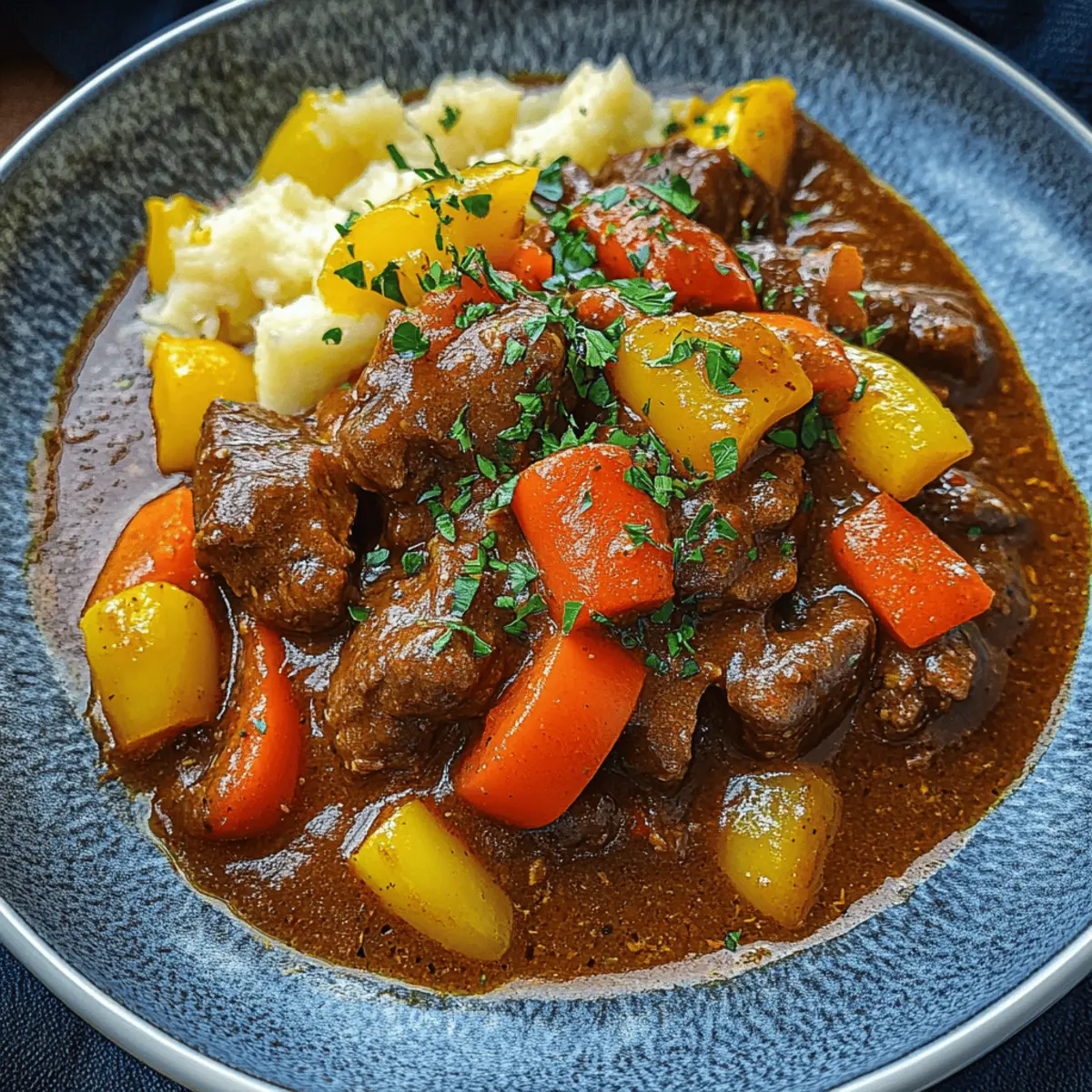 Jeder Koch weiß, dass das Herz des Hauses oft in der Küche schlägt. Heute lade ich euch ein, mit mir in die Welt des köstlichen Gulaschs einzutauchen – ein Gericht, das nicht nur Geschmack, sondern auch ein Gefühl von Heimat und Geborgenheit vermittelt. Dieses Rindergulasch mit Paprika und Möhren vereint zartes Fleisch und frische, bunte Zutaten und ist zugleich ein ideales Rezept für Anfänger, die ihre Kochkünste erweitern möchten. Die einfache Zubereitung und die Möglichkeit, das Gericht in weniger als 30 Minuten auf den Tisch zu bringen, machen es perfekt für hektische Tage. Und das Beste? Es erfreut sich großer Beliebtheit bei Familie und Freunden. Bist du bereit, deine Küche in ein kleines Gourmet-Restaurant zu verwandeln? Warum wirst du dieses Gulasch lieben? Köstlich und herzhaft: Dieses Gulasch bringt die perfekte Balance aus zartem Rindfleisch und aromatischen Gemüsen auf deinen Teller. Einfachheit: Mit nur wenigen Grundzutaten und schnell zuzubereiten, ist es ideal für Anfänger. Vielseitig: Serviere es über Nudeln oder mit frisch gebackenem Brot. Du kannst auch zusätzliche Gemüse oder Gewürze nach deinem Geschmack hinzufügen. Comfort Food: Es ist das perfekte Gericht, um sich an kalten Tagen aufzuwärmen und das Gefühl von Heimat einzufangen. Familienfreundlich: Dieses Rezept ist nicht nur lecker, sondern auch ein Hit bei Groß und Klein! Für weitere einfache und schmackhafte Rezepte, schau dir unser Kochbuch für Anfänger an! Köstliches Gulasch Zutaten • Für das Gulasch Bratengulasch (1 kg) – Die Hauptproteinquelle, ideal ist Schulter- oder Schmorbraten für Zartheit. Butterschmalz (2 EL) – Fügt dem Gericht ein reichhaltiges Aroma hinzu; olivenöl kann als Ersatz verwendet werden. Zwiebeln (4 kleine) – Sorgt für Süße und Tiefe; gelbe Zwiebeln oder Schalotten sind gute Alternativen. Knoblauchzehe (1) – Verstärkt den Geschmack; frisch gemahlener Knoblauch kann auch verwendet werden. Suppengrün (etwas) – Für zusätzlichen Geschmack; frisch oder gefroren ist beides möglich. Rote Paprika (1 Stück) – Bringt Süße und Farbe ins Spiel; gelbe oder grüne Paprika sind ebenfalls geeignet. Karotten (2 Stück) – Fügen Süße und Nährstoffe hinzu; auch Pastinaken können für einen anderen Geschmack verwendet werden. Tomatenmark (2 EL) – Sorgt für Reichhaltigkeit und Umami; Tomatenpüree ist ein passabler Ersatz. Rotwein (200 ml, optional) – Entzieht dem Topf den Geschmack und verbessert die Aromen; Brühe kann als alkoholfreie Option verwendet werden. Rinderfond (400 ml) – Die Basis der Soße, intensiviert den Geschmack; Hühnerbrühe ist eine gute Alternative. Gulaschgewürz (3 EL) – Eine Gewürzmischung aus Paprika, Majoran und Kümmel; nutzen Sie vorgefertigte Mischungen oder stellen Sie Ihre eigene zusammen. Lorbeerblätter (2 Stück) – Bringt sie Aromatik; vor dem Servieren unbedingt entfernen. Saucenbinder oder Stärke (bei Bedarf) – Für die gewünschte Konsistenz der Soße. Für das köstlichste Gulasch wirst du jede Zutat in perfekter Harmonie zusammenbringen! Schritt-für-Schritt-Anleitung für Köstliches Gulasch mit Paprika und Möhren Schritt 1: Zutaten vorbereiten Schneide das Rindfleisch in kleine Würfel und bereite das Gemüse vor. Würfle die rote Paprika, hacke die Zwiebeln und den Knoblauch fein und schneide die Karotten in Scheiben. Achte darauf, alle Zutaten gut vorzubereiten, um einen reibungslosen Ablauf beim Kochen zu gewährleisten. Schritt 2: Fleisch anbraten Erhitze in einem großen Topf bei mittlerer Hitze das Butterschmalz. Füge nach und nach die Rindfleischwürfel hinzu und brate sie für etwa 5–7 Minuten an, bis sie rundum schön gebräunt sind. Dies sorgt für eine tiefere Geschmacksbasis im köstlichen Gulasch. Schritt 3: Zwiebeln und Knoblauch hinzufügen Gib die gehackten Zwiebeln und den Knoblauch zum angebratenen Fleisch und brate sie für 2–3 Minuten mit. Rühre, bis die Zwiebeln glasig sind und ihr Aroma entfalten. Dies bringt ein weiteres Geschmacksniveau in dein Gulasch. Schritt 4: Tomatenmark einrühren Füge das Tomatenmark hinzu und rühre es gut unter das Fleisch und die Zwiebeln. Lass die Mischung für etwa 1–2 Minuten anschwitzen, bis das Tomatenmark leicht karamellisiert ist. Dies wird deinem Gulasch eine reichhaltige, umami-reiche Basis verleihen. Schritt 5: Paprika und Karotten zufügen Jetzt ist es Zeit, die vorbereiteten roten Paprika und Karotten in den Topf zu geben. Sauté die Gemüsemischung für etwa 3–4 Minuten unter gelegentlichem Rühren. Das sorgt dafür, dass das Gemüse leicht weich wird und seine Aromen entfaltet. Schritt 6: Deglazieren mit Rotwein Gieße den Rotwein in den Topf, um den Bratensatz zu lösen. Lass die Mischung für 2–3 Minuten köcheln, bis der Alkohol verdampft ist und die Aromen intensiviert werden. Diese Phase ist entscheidend für das köstliche Aroma unseres Gulaschs. Schritt 7: Brühe und Gewürze hinzufügen Rühre die Gulaschgewürze und die Lorbeerblätter unter die Mischung. Gieße dann den Rinderfond dazu und bringe alles zum Sanften Köcheln. Achte darauf, die Temperatur niedrig zu halten, um die Zartheit des Fleisches zu bewahren. Lasse das Ganze etwa 2–3 Stunden köcheln. Schritt 8: Nach dem Kochen abschmecken Überprüfe nach 2 Stunden die Zartheit des Rindfleischs. Es sollte leicht auseinanderfallen. Schmecke das köstliche Gulasch mit Salz und Pfeffer ab und verdicke bei Bedarf die Soße mit Saucenbinder oder Stärke. So erhältst du eine perfekte, sämige Konsistenz. Was passt gut zu Köstlichem Gulasch mit Paprika und Möhren? Jedes köstliche Gulasch braucht die perfekten Begleiter, um ein harmonisches und befriedigendes Mahl zu kreieren. Herzhafter Kartoffelstampfer: Cremige Kartoffeln ziehen jedes Stück Gulasch in ihren samtigen Genuss und sorgen für eine köstliche Kombination. Frisches Baguette: Knuspriges Brot eignet sich hervorragend, um die reichhaltige Soße aufzutunken – der perfekte Abschluss f