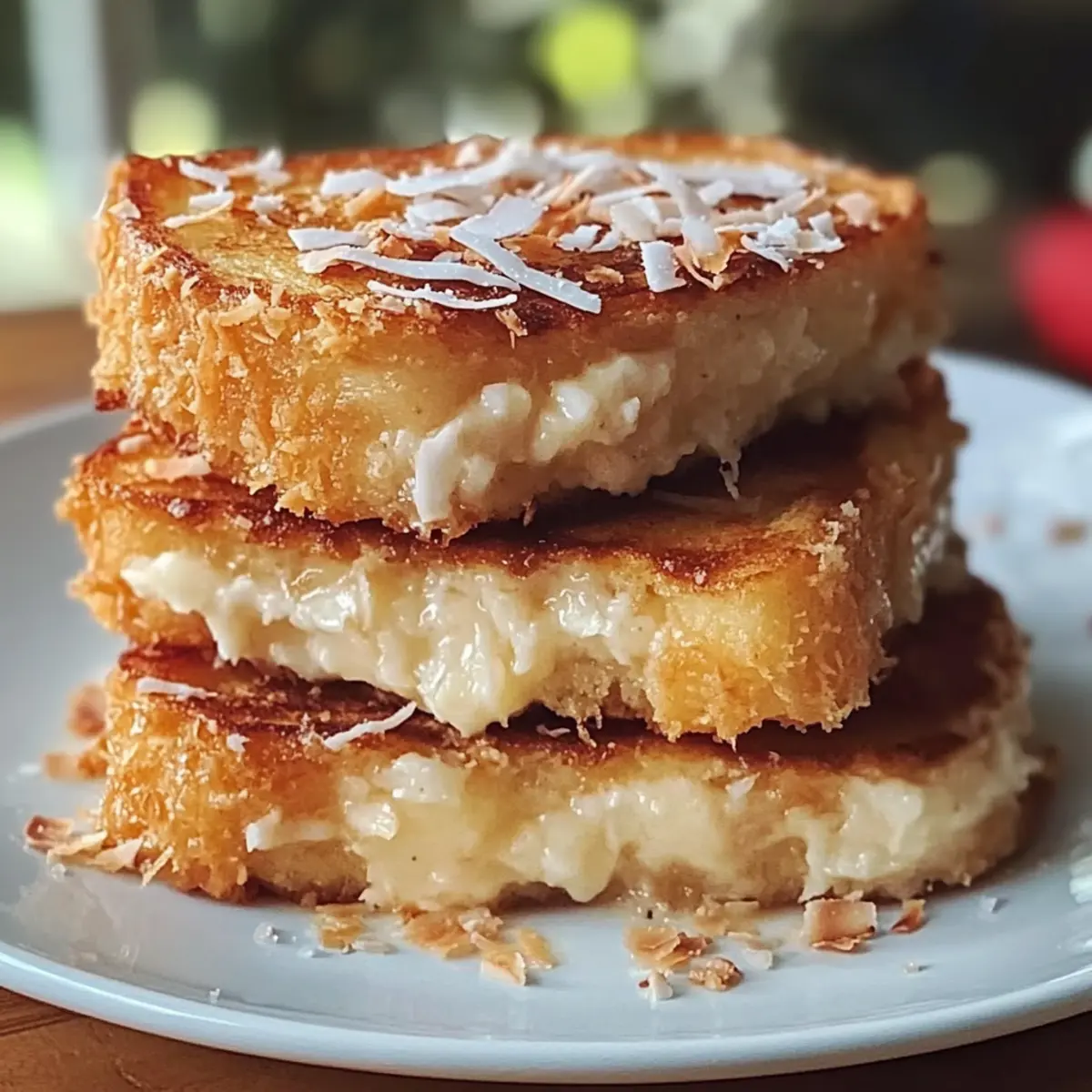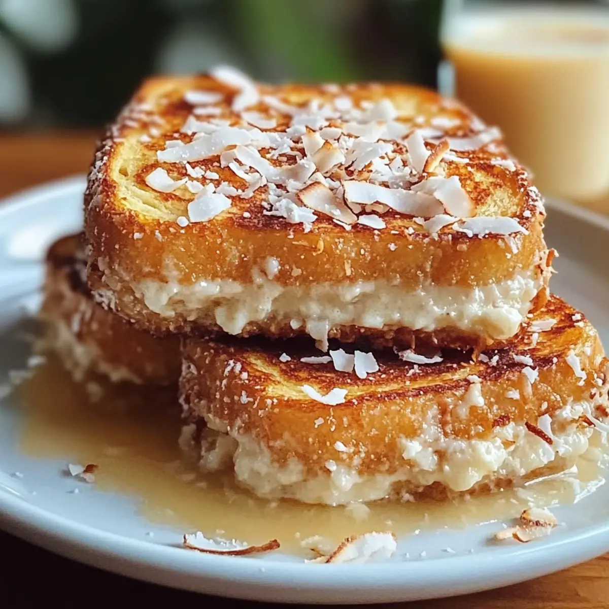 Ein tropischer Frühstückstraum, der euch direkt ins Paradies entführt! Mein Kokosnuss gefüllter French Toast Rezept kombiniert warme, knusprige Baguette-Scheiben mit einer cremigen Kokosfüllung, die von süßen Kokosflocken umhüllt ist. Es ist nicht nur ein einfach zuzubereitendes Gericht für entspannte Sonntags-Brunches, sondern auch ein himmlischer Start in den Tag, der garantiert für strahlende Gesichter am Familientisch sorgt. Ob für einen besonderen Anlass oder einfach nur als köstliche Abwechslung – dieses Rezept bietet viele kreative Möglichkeiten zur Anpassung, sodass jeder nach seinem Geschmack schlemmen kann. Seid ihr bereit, in die Welt dieser tropischen Genüsse einzutauchen und eure Frühstücksroutine aufzupeppen? Warum ist dieses Rezept ein Muss? Einfachheit: Die Zubereitung ist unkompliziert und benötigt nur grundlegende Kochkenntnisse, sodass jeder es meistern kann. Tropischer Genuss: Geschmackvolle Kokosnuss mit einer cremigen Füllung versetzt euch in Urlaubsstimmung, egal, wo ihr seid. Familienfreundlich: Jedes Familienmitglied wird begeistert sein und nach mehr verlangen – ideal für den sonntäglichen Brunch! Kreative Anpassungen: Dieses Rezept ist vielseitig und kann leicht mit verschiedenen Füllungen wie Schokolade oder frischem Obst variiert werden – perfekt für experimentierfreudige Köche! Zeitersparnis: Ideal für den schnellen Genuss am Morgen – bereitet die Füllung einfach am Abend zuvor vor und zaubert am nächsten Tag im Handumdrehen ein köstliches Frühstück. Verpasst nicht, diese tropische Delikatesse auszuprobieren und entdeckt auch meine anderen Frühstücksrezepte für inspirierende Ideen! Kokosnuss gefüllter French Toast Zutaten Für die Füllung • Frischkäse – sorgt für eine cremige Textur; kann durch eine milchfreie Option ersetzt werden. • Kokoscreme – fügt Süße und tropischen Geschmack hinzu, sowohl für die Füllung als auch für die Eiermischung. • Zucker (optional) – verstärkt die Süße; nach Geschmack anpassen. Für den Toast • Französisches Baguette – bildet die Basis; in 1,5-zoll dicke Scheiben schneiden für ideales Füllen und Einweichen. • Eier – entscheidend für die Herstellung einer Bindung, die Füllung zusammenhält und für eine warme, flauschige Textur sorgt. • Schlagsahne – verleiht der Eiermischung zusätzlichen Reichtum. • Vanilleextrakt – bringt aromatische Tiefe ins Geschmacksprofil. • Gesüßte Kokosraspeln – umhüllen den French Toast für zusätzlichen Kokosgeschmack und Crunch. • Neutrales Öl – wird zum Braten verwendet; verhindert Ankleben und sorgt für gleichmäßige Bräunung. Genießt dieses Kokosnuss gefüllte French Toast Rezept für einen unvergesslichen Frühstücksgenuss! Schritt-für-Schritt-Anleitungen für Kokosnuss gefüllter French Toast Rezept Step 1: Füllung zubereiten In einer kleinen Schüssel Frischkäse, Kokoscreme und nach Belieben Zucker gut vermengen, bis eine glatte und cremige Mischung entsteht. Diese Füllung sorgt für die tropische Note in eurem Kokosnuss gefüllten French Toast. Stellt die Schüssel für später beiseite, während ihr die übrigen Zutaten vorbereitet. Step 2: Eiermischung herstellen In einer breiten Schüssel die Eier, Kokoscreme, Schlagsahne und Vanilleextrakt miteinander verquirlen. Diese Mischung wird die Basis für den Teig des French Toast. Verwendet einen Schneebesen, um sicherzustellen, dass alles gut vermischt ist und eine cremige Konsistenz erreicht wird. Step 3: Baguette vorbereiten Das französische Baguette in 1,5 Zoll dicke Scheiben schneiden und in jeder Scheibe eine tiefe Einkerbung machen, ohne ganz durchzuschneiden. Diese Einkerbung ist perfekt, um die cremige Füllung aufzunehmen. Füllt jede Baguettescheibe mit etwa 1-1,5 Esslöffeln der vorbereiteten Frischkäsemischung und drückt sie leicht zusammen. Step 4: Brot beschichten Jede gefüllte Brotscheibe kurz in die Eiermischung tauchen, sodass sie gleichmäßig bedeckt wird. Achtet darauf, das Brot nicht zu lange einzuweichen, um die Konsistenz zu erhalten. Anschließend die Scheiben in gesüßte Kokosraspeln drücken, sodass sie schön beschichtet sind und beim Braten eine knusprige Textur erhalten. Step 5: French Toast braten In einer Pfanne bei mittlerer bis mittlerer niedriger Hitze neutrales Öl erhitzen. Jede Scheibe French Toast für 3-4 Minuten auf jeder Seite braten, bis sie goldbraun sind und die Kokosraspeln knusprig werden. Deckt die Pfanne optional ab, um eine gleichmäßige Garung zu gewährleisten. Achtet darauf, die Hitze zu regulieren, damit die Kokosraspeln nicht zu schnell bräunen. Step 6: Servieren Sobald die Kokosnuss gefüllten French Toast-Stücke schön goldbraun sind, aus der Pfanne nehmen und auf einem Teller anrichten. Diese köstlichen Stücke können warm serviert werden, eventuell mit einem zusätzlichen Drizzle aus Ahornsirup oder frischen Früchten. Jeder Biss wird euch in den tropischen Himmel versetzen! Vorbereitung für den Kokosnuss gefüllten French Toast Rezept Die Zubereitung des Kokosnuss gefüllten French Toast Rezept ist perfekt für eine stressfreie Morgenroutine! Ihr könnt die Füllung aus Frischkäse, Kokoscreme und Zucker bereits bis zu 24 Stunden im Voraus zubereiten und im Kühlschrank aufbewahren. Auch die Eiermischung lässt sich separat vorbereiten, sodass ihr diese am Morgen nur noch vermischen müsst. Um die Qualität zu erhalten, sorgt dafür, dass die Füllung gut abgedeckt ist, damit sie nicht austrocknet. Wenn ihr bereit seid zu genießen, taucht die gefüllten Brotscheiben einfach in die Eiermischung, panierte sie und bratet sie aus – so zaubert ihr im Handumdrehen ein köstliches Frühstück, das eure Familie begeistert! Kokosnuss gefüllter French Toast Variationen Euer Frühstücksgenuss kann so individuell sein, wie ihr es seid! Lasst euch von diesen Ideen inspirieren, um einen persönlichen Touch in euer Rezept zu bringen. Milchfrei: Ersetzt den Frischkäse durch vegane