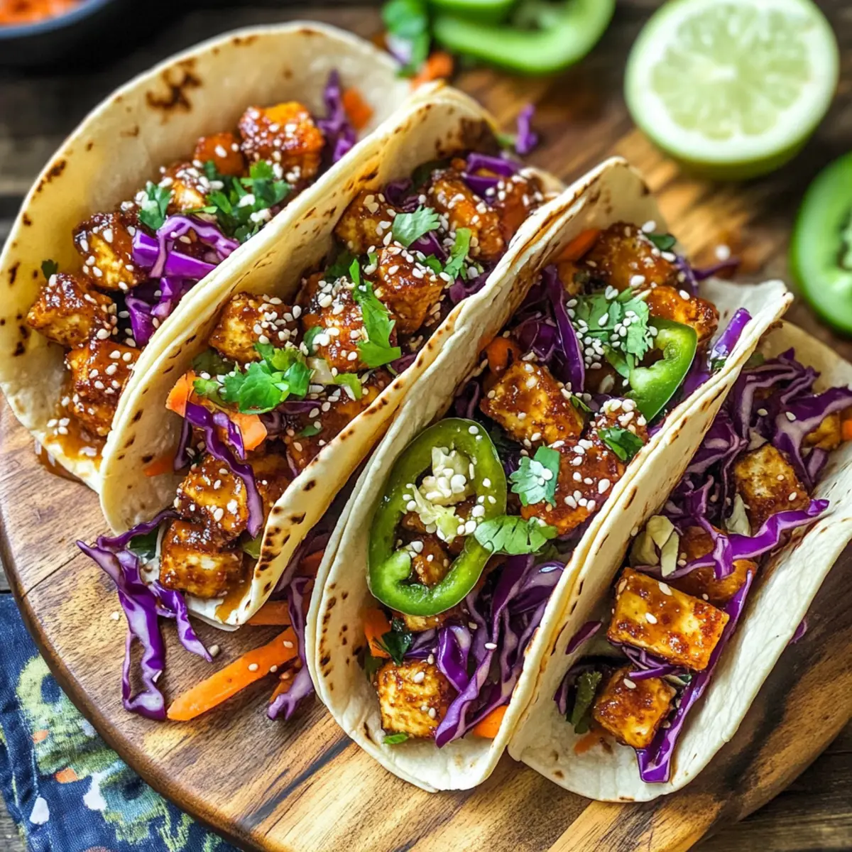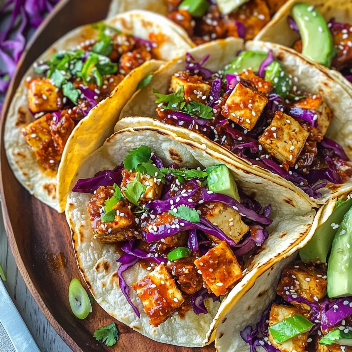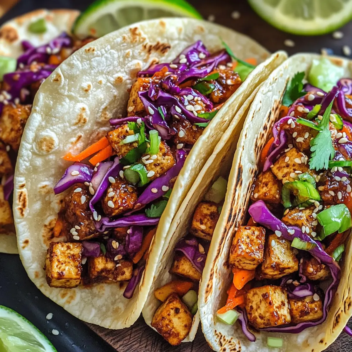 Die Verbindung zweier Kulturen auf einem Teller – das sind meine Spicy Korean-Inspired Crispy Tofu-Tacos! Diese köstlichen Tacos vereinen die knusprige Textur von perfekt gebratenem Tofu mit der feurigen Würze von Gochujang und einem frischen Gemüse-Slaw. Es gibt nichts Besseres, als beim Abendessen Abwechslung in die Küche zu bringen, und dieses Rezept bietet nicht nur eine schnelle Zubereitung, sondern auch einen gesunden Genuss, der Ihre Familie und Freunde begeistern wird. Die Kombination aus herzhaft und frisch macht die koreanisch inspirierten knusprigen Tofu-Tacos zum idealen Gericht für hektische Wochentage oder entspannte Wochenendessen. Neugierig auf das Geheimnis hinter dem perfekten Crunch? Lassen Sie uns gemeinsam eintauchen! Warum sind diese Tacos ein Genuss? Einzigartig, diese Tacos sind eine köstliche Fusion aus koreanischen Aromen und mexikanischem Streetfood! Knusprige Textur, der Tofu wird perfekt frittiert und sorgt für ein unwiderstehliches Geschmackserlebnis. Vielseitig, Sie können die Zutaten anpassen und sogar glutenfreie Optionen nutzen! Schnell zubereitet, ideal für hektische Abende, ohne Kompromisse beim Geschmack. Gesund, bietet diese Rezeptur eine nährstoffreiche Alternative zu herkömmlichen Tacos mit weniger Kalorien. Lassen Sie sich von unserer Zubereitung anregen und entdecken Sie das Geheimnis der koreanisch inspirierten knusprigen Tofu-Tacos! Koreanisch inspirierte knusprige Tofu-Taco-Zutaten • Diese köstlichen Tacos sind nicht nur eine Geschmacksexplosion, sondern auch einfach zuzubereiten! Für den Tofu Fester Tofu – Das Hauptprotein dieser Tacos: Achten Sie darauf, ihn gut zu pressen, um überschüssige Feuchtigkeit zu entfernen und optimale Knusprigkeit zu erreichen. Gochujang (Koreanische Chilipaste) – Verleiht eine feurige Würze und Tiefe des Geschmacks: Verwenden Sie weniger für einen milderen Geschmack (empfohlen wird 1/4 Tasse basierend auf Bewertungen). Leichter Brauner Zucker – Balanciert die Schärfe mit einer süßen Note: Kann je nach Vorliebe reduziert werden. Sojasauce – Fügt Umami und Salzigkeit hinzu, die für die Würze unerlässlich sind. Für den Slaw Kohl (lila und grün) – Bildet den erfrischenden Slaw und sorgt für Knusprigkeit und Farbe. Karotten – Bringen Süße und eine gute Textur in den Slaw. Reiswein-Essig – Fügt den Gemüse eine angenehme Säure und Frische hinzu. Für die Zubereitung Maisstärke – Wird verwendet, um den Tofu für extra Knusprigkeit beim Frittieren zu coat. Genießen Sie unsere koreanisch inspirierten knusprigen Tofu-Tacos und entdecken Sie, wie einfach es ist, Ihre Familie mit einem gesunden, schnellen Abendessen zu begeistern! Schritt-für-Schritt-Anleitung für Koreanisch inspirierte knusprige Tofu-Tacos Step 1: Tofu vorbereiten Zuerst den festen Tofu gut pressen, um überschüssige Feuchtigkeit zu entfernen. Schneiden Sie den Tofu anschließend in mundgerechte Würfel, die gleichmäßig garen. Legen Sie die Würfel auf ein Küchentuch, um sicherzustellen, dass sie trocken sind. Dieser Schritt ist entscheidend für die perfekte Knusprigkeit der koreanisch inspirierten knusprigen Tofu-Tacos. Step 2: Marinade zubereiten In einer Schüssel die Gochujang, den leichten braunen Zucker und die Sojasauce gut vermischen. Optional können Sie etwas Reiswein-Essig hinzufügen, um zusätzliche Säure und Frische zu erreichen. Werfen Sie die gewürfelten Tofu-Stücke in die Marinade und lassen Sie sie mindestens 30 Minuten ziehen, damit die Aromen gut einziehen. Step 3: Slaw vorbereiten Während die Tofu-Stücke marinieren, den Kohl und die Karotten in feine Streifen schneiden. In einer großen Schüssel die gehackten Gemüse mit Reiswein-Essig und einer Prise Salz vermengen. Lassen Sie die Mischung einige Minuten ruhen, damit der Salat weich wird und die Aromen sich entfalten können. Dies sorgt für eine erfrischende Komponente in den Tacos. Step 4: Tofu panieren und frittieren Die marinierten Tofu-Würfel in einer Schüssel mit Maisstärke bestäuben, bis sie gleichmäßig coated sind. Erhitzen Sie in einer großen Pfanne etwas Öl bei mittlerer bis hoher Temperatur. Frittieren Sie den Tofu für etwa 10-15 Minuten, bis er goldbraun und knusprig ist. Achten Sie darauf, die Tofu-Stücke regelmäßig zu wenden, um eine gleichmäßige Bräunung zu garantieren. Step 5: Tacos zusammenstellen Die frischen Tortillas auf einen Teller legen und die knusprigen Tofu-Stücke in die Mitte jeder Tortilla geben. Toppen Sie die Tacos großzügig mit dem vorbereiteten Slaw, um eine tolle Textur und Geschmackskombination zu erhalten. Servieren Sie die koreanisch inspirierten knusprigen Tofu-Tacos warm und genießen Sie dieses köstliche Gericht! Was passt zu koreanisch inspirierten knusprigen Tofu-Tacos? Ein harmonisches Mahl besteht aus mehr als nur köstlichen Tacos – hier sind einige perfekte Begleiter, die Ihre Geschmacksknospen erfreuen werden. Cremige Avocado: Verleiht den Tacos eine reichhaltige, cremige Note und ein gesundes Fett, das perfekt zu dem würzigen Tofu passt. Frisch gehackter Koriander: Dieser aromatische Kräutertraum bringt eine erfrischende Note und ergänzt die Schärfe des Gochujang wunderbar. Zitronen-Limetten-Saft: Ein spritziger Spritzer verleiht den Tacos eine zusätzliche Frische und harmonisiert die Aromen perfekt. Scharfer Kimchi: Dieses traditionelle koreanische eingelegte Gemüse fügt eine explosive Schärfe und Umami hinzu, die Ihre Tacos noch aufregender macht. Leichter Gurkensalat: Frisch und knackig, dieser Salat bringt eine erfrischende Komponente, die die würzige Tacos-Auswahl balanciert. Kalte Erfrischungsgetränke: Kombinieren Sie die Tacos mit einem leichten Kräutertee oder einem erfrischenden Ingwerlimonade für eine perfekte Erfrischung. Eiscreme-Sandwiches: Für den süßen Abschluss sind gefrorene Desserts ideal, um den Abend auf eine süße Note zu bringen. Würzige Nachos: Für die Knusperliebe, servieren Sie Nachos mit einer würzigen Salsa a