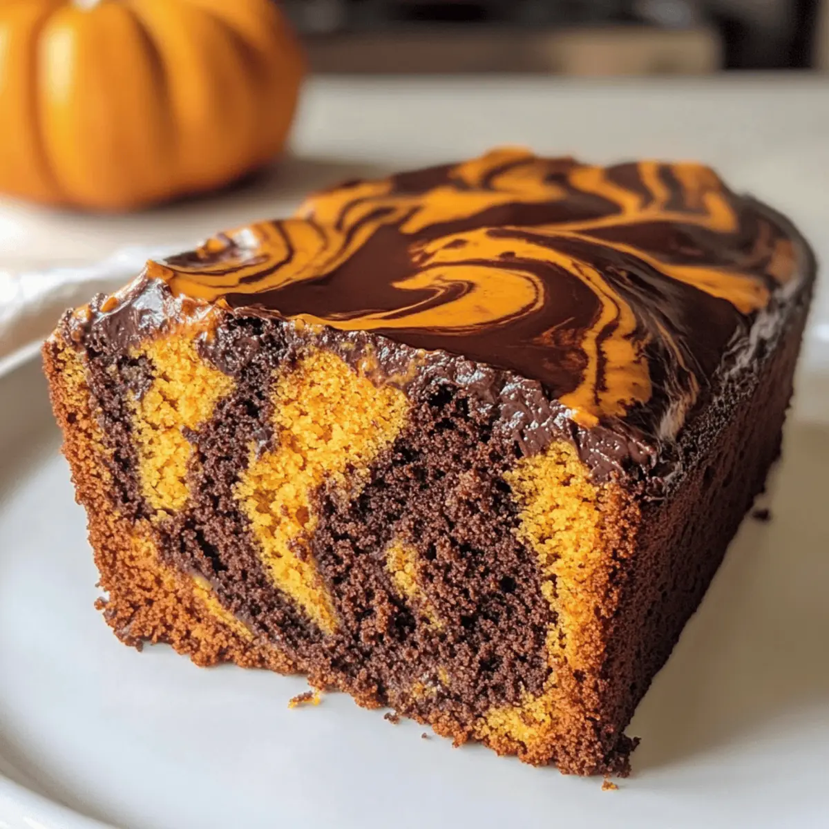 Dieser Kürbis Marmor Kuchen (vegan) ist eine herbstliche Köstlichkeit, die zarten Kürbis und schokoladige Wirbel kombiniert.