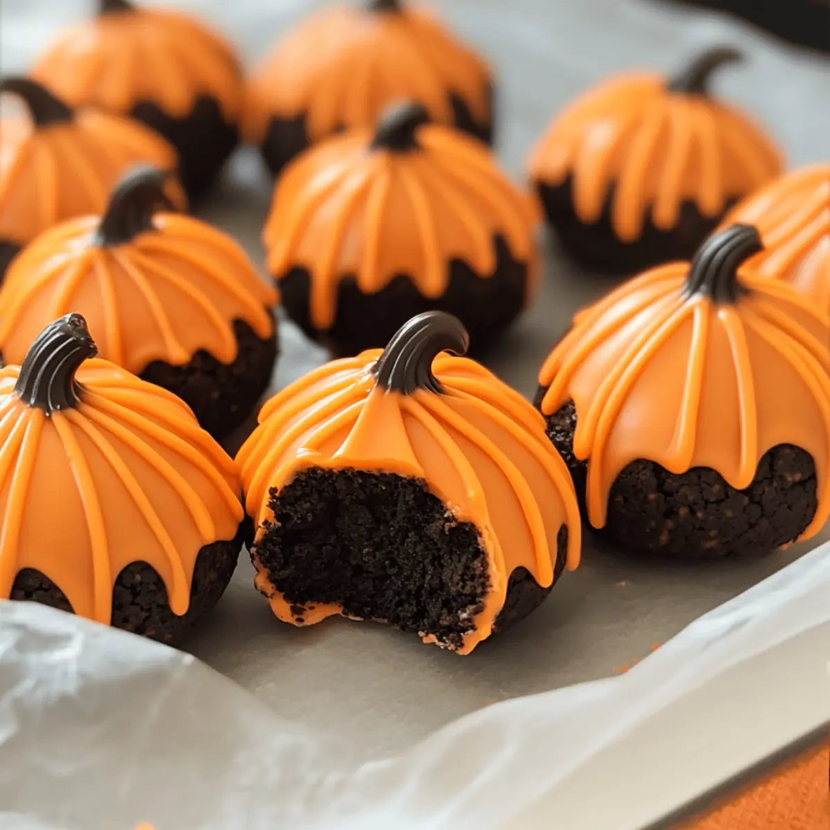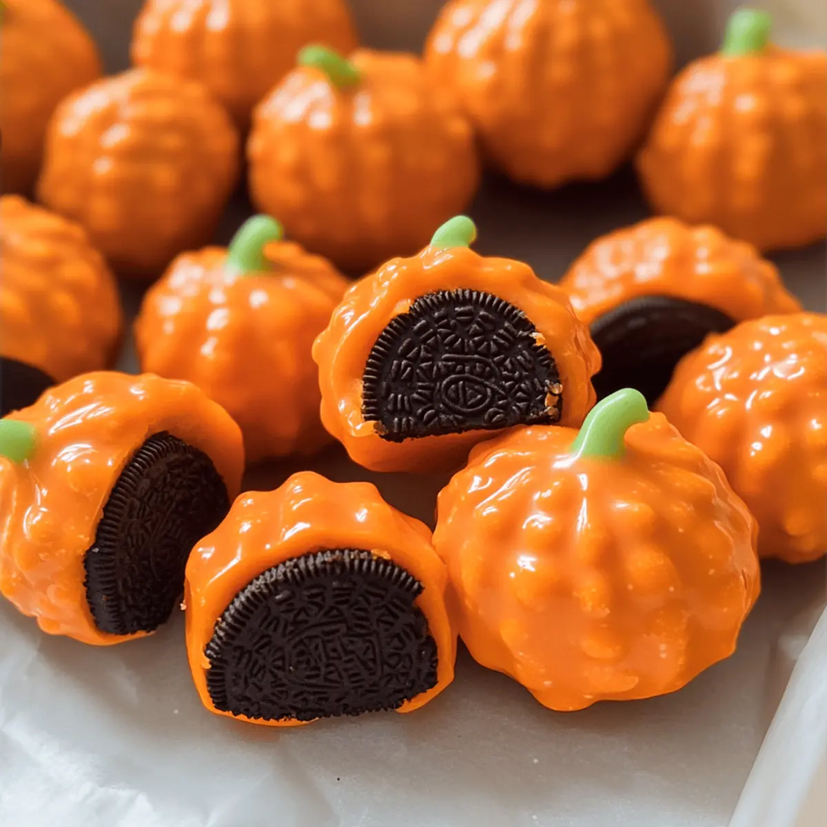 Während ich in meiner Küche stehe und die warmen Herbstfarben bewundere, kann ich den verführerischen Duft der Schweden und die Vorfreude auf meine Kürbis-Oreo-Kugeln kaum zurückhalten. Diese köstlichen, no-bake Leckereien sind nicht nur ein Augenschmaus, sondern auch mit nur fünf Zutaten im Handumdrehen zubereitet. Perfekt für all jene, die gesundes Essen vermissen und schnell jemandes Herz gewinnen möchten, bieten diese glutenfreien Kugeln ein wunderbares Geschmackserlebnis, das sowohl Kinder als auch Erwachsene begeistert. Mit ihrem cremigen Innenleben und der bunten Schokoladenglasur bringen sie jeden festlichen Anlass zum Strahlen. Bist du bereit, deine nächste Dessert-Überraschung zu kreieren? Warum sind Kürbis-Oreo-Kugeln so besonders? Einfachheit: Die Zubereitung dieser Leckereien ist schnell und unkompliziert – ideal für alle, die keine Zeit für aufwendiges Backen haben. Vielfältiger Geschmack: Dank der Kombination von Oreo und Frischkäse entsteht ein köstlicher, cremiger Biss, der ein wahres Geschmackserlebnis bietet. Festliche Optik: Ihre fröhliche, orange Farbe und die Form eines Kürbisses machen sie zu einem perfekten Highlight auf jedem Desserttisch. Geselligkeit: Diese Kugeln sind ein Hit bei jedem Event – von Halloween bis zu Thanksgiving. Ihre glutenfreie Variante macht sie auch für alle zugänglich, die auf Gluten verzichten. Lass dich inspirieren und kombiniere verschiedene Farben der Schokolade, um das Ganze noch bunter zu gestalten – deine Gäste werden begeistert sein! Kürbis-Oreo-Kugeln Zutaten Entdecke die benötigten Zutaten für diese köstlichen Kürbis-Oreo-Kugeln, die nicht nur einfach zuzubereiten sind, sondern auch deine Gäste begeistern werden! Für die Basis Oreo-Kekse – sorgen für Süße und Struktur; verwende glutenfreie Oreos für eine glutenfreie Variante. Frischkäse – verleiht Cremigkeit und bindet die Mischung; asegure, dass er weich ist für einfaches Mischen. Für die Glasur Orange Candy Melts – die Glasur, die den Kugeln ihr fröhliches Aussehen verleiht; du kannst auch andere Farben für verschiedene Feiertage verwenden. Mit diesen Zutaten bist du bestens ausgestattet, um die köstlichen Kürbis-Oreo-Kugeln zu kreieren! Schritt-für-Schritt-Anleitung für Kürbis-Oreo-Kugeln Step 1: Oreos zerkleinern Zuerst die Oreo-Kekse in einer Küchenmaschine fein zerkleinern. Pulsieren Sie die Kekse, bis sie zu einer gleichmäßigen, feinen Krümelmasse werden, die gut zusammenhält. Dies sollte nur wenige Minuten dauern, sodass Sie die Krümel direkt in eine große Schüssel umfüllen können. Step 2: Füllung mischen Fügen Sie nun den weich gewordenen Frischkäse zu den zerkrümelten Oreos hinzu. Mischen Sie die beiden Zutaten gründlich mit einem Holzlöffel oder einem Handmixer, bis eine homogene und cremige Masse entsteht. Achten Sie darauf, dass keine Klumpen zurückbleiben, damit Ihre Kürbis-Oreo-Kugeln schön geschmeidig werden. Step 3: Kugeln formen Nehmen Sie mit einem Esslöffel gleich große Portionen der Mischung und formen Sie daraus 2,5 cm große Kugeln. Setzen Sie diese Kugeln auf ein mit Backpapier ausgelegtes Backblech. Sobald alle Kugeln geformt sind, stellen Sie das Blech für etwa 15 Minuten in den Kühlschrank, damit die Mischung etwas fester wird und die Kugeln ihre Form behalten. Step 4: Kürbisse gestalten Nach dem Kühlen entfernen Sie das Blech aus dem Kühlschrank. Verwenden Sie einen Zahnstocher, um vorsichtige Linien in jede Kugel zu ritzen und sie so wie Kürbisse aussehen zu lassen. Diese “Schneisen” verleihen Ihren Kürbis-Oreo-Kugeln ein festliches Aussehen. Stellen Sie die Kugeln anschließend für weitere 10 Minuten zurück in den Kühlschrank. Step 5: Schokolade schmelzen Geben Sie die orangen Candy Melts in eine hitzebeständige Schüssel und schmelzen Sie diese vorsichtig im Wasserbad oder in der Mikrowelle. Erhitzen Sie die Schokolade in kurzen Intervallen (30 Sekunden) und rühren Sie zwischendurch um, bis die Schokolade vollständig geschmolzen und glatt ist. Achten Sie darauf, dass kein Wasser in die Schokolade gelangt. Step 6: Kugeln eintauchen Tauchen Sie nun jede gekühlte Kugel einzeln in die geschmolzene Schokolade. Heben Sie sie heraus und lassen Sie die überschüssige Schokolade vorsichtig abtropfen. Legen Sie die Kugeln zurück auf das Backblech und wiederholen Sie den Vorgang, bis alle Kugeln mit der orangen Glasur überzogen sind. Step 7: Dekorieren Sobald die Kugeln in der Schokolade sind, dekorieren Sie sie umgehend mit einem Brezel als Stängel oder mit grünem Zuckerguss bzw. einer grünen M&M als Blatt. Diese kleinen Details verleihen Ihren Kürbis-Oreo-Kugeln das perfekte festliche Finish und machen sie zu einem echten Hingucker auf jedem Desserttisch. Step 8: Kühlen und servieren Lassen Sie die dekorierten Kürbis-Oreo-Kugeln im Kühlschrank kühlen, bis sie fest und bereit zum Servieren sind. Dies dauert etwa 30 Minuten. Halten Sie sie bis zum Servieren im Kühlschrank, damit sie frisch und köstlich bleiben. Genießen Sie diese leckeren Leckereien bei Ihrem nächsten Fest! Was passt zu Kürbis-Oreo-Kugeln? Kreiere mit diesen köstlichen Leckereien ein unvergessliches Festmahl, das den Herbst in dein Zuhause bringt. Cremige Süßkartoffelpüree: Die Süße der Süßkartoffeln ergänzt perfekt den schokoladigen Cookies, und ihre samtige Textur harmoniert großartig mit den Kürbis-Oreo-Kugeln. Knusprige Apfelchips: Diese knackigen Snacks fügen einen frischen, fruchtigen Geschmack hinzu, der die Süße der Kugeln wunderbar ausbalanciert. Ideal als zusätzlicher Crunch! Zimt-vanillige Einhorn-Milch: Dieses milchige Getränk mit einer Note von Zimt passt perfekt zu den Geschmäckern des Herbstes und macht das Dessert noch festlicher. Leichte Schlagsahne: Eine dollop frischer Schlagsahne kann den cremigen Füllungen eine leichte Frische verleihen und einen zusätzlichen Kontrast zu den schokoladigen Kugeln bieten. Frischer Obstsalat: Eine Mischung aus Äpfel