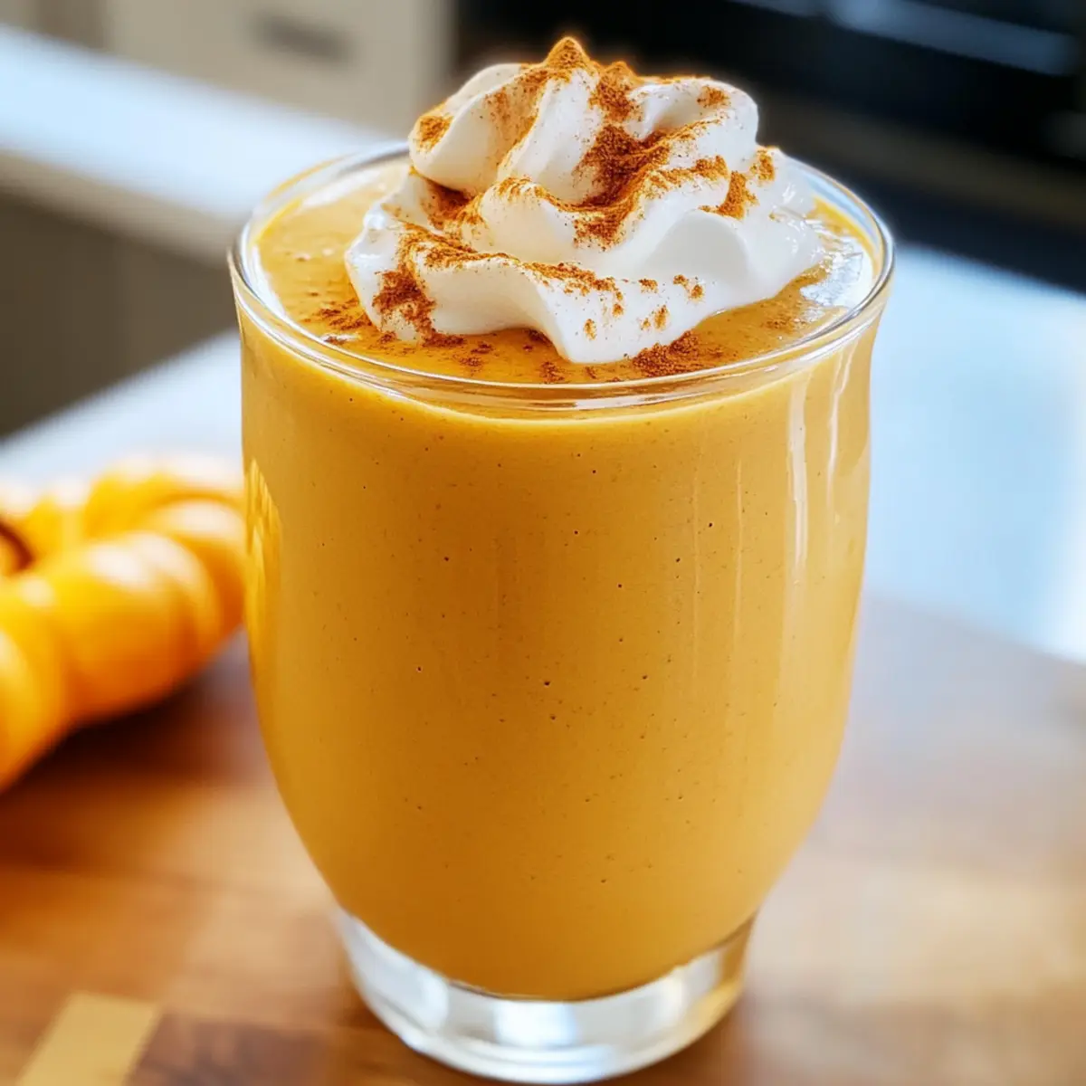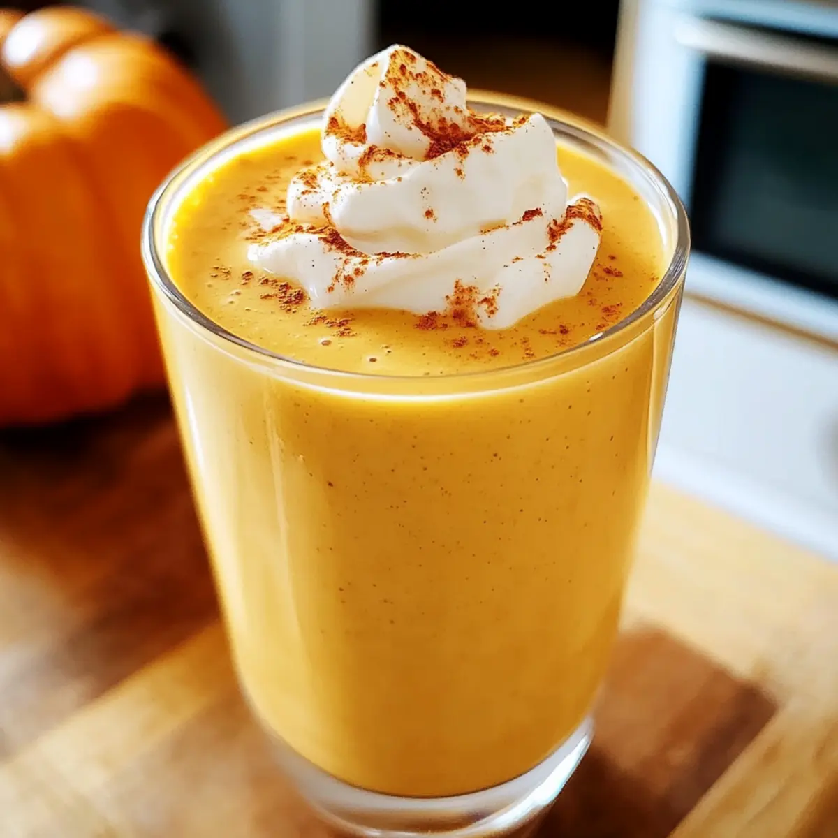 Ein warmer, wohlriechender Herbstmorgen, und ich habe plötzlich Lust auf etwas, das die Essenz dieser schönen Jahreszeit einfängt. Hier kommt das Kürbis-Smoothie Rezept ins Spiel! Mit seiner cremigen Textur und dem Hauch von Gewürzen ist dieser Smoothie nicht nur ein köstlicher Genuss, sondern auch eine nährstoffreiche Wahl für ein schnelles Frühstück oder einen gesunden Snack nach dem Training. Dank der Kombination aus gesunden Zutaten wird er der perfekte Begleiter, um sich energisch und zufrieden zu fühlen. Seid ihr bereit, in die Welt dieser herbstlichen Köstlichkeit einzutauchen? Warum ist dieses Rezept so besonders? Einzigartig und köstlich: Der Kürbis-Smoothie vereint die Aromen des Herbstes durch die süße Cremigkeit von Kürbispüree und einer Prise Zimt. Nährstoffreich: Vollgepackt mit Protein und Ballaststoffen ist er perfekt für Ihr Frühstück oder nach dem Training. Schnell zubereitet: In nur wenigen Minuten sind Sie bereit, diese herzhafte Leckerei zu genießen. Anpassungsfähig: Variieren Sie mit verschiedenen Zutaten, wie zum Beispiel Joghurtalternativen oder Süßungsmitteln, um ihn zu Ihrem eigenen zu machen. Eine Umarmung im Glas: Seine samtige Textur ist nicht nur sättigend, sondern auch ein wahrer Genuss für Gaumen und Seele – ein Muss für jeden Herbstliebhaber! Kürbis-Smoothie Zutaten • Entdecken Sie die gesunden Zutaten für dieses köstliche Kürbis-Smoothie Rezept! Für den Smoothie Kürbispüree – sorgt für den herzhaften, herbstlichen Geschmack und eine cremige Konsistenz. Verwenden Sie reines Kürbispüree, kein fertiges Kürbiskuchen-Füllung. Banane – bringt natürliche Süße und zusätzlichen Cremigkeitsfaktor. Sie können sie auch durch gefrorenes Obst austauschen, um neue Geschmäcker zu entdecken. Joghurt – fügt reichhaltige Cremigkeit und eine gute Portion Protein hinzu. Veganer können pflanzlichen Joghurt verwenden, um das Rezept anzupassen. Milch – dient als flüssige Basis für das Mixen. Ersetzen Sie sie durch Hafer- oder Sojamilch, je nach Vorliebe. Honig – sorgt für eine angenehme Süße. Sie können auch Agavendicksaft oder Ahornsirup verwenden, falls gewünscht. Zimt – verstärkt das herbstliche Aroma und ergänzt die Süße. Zur Not kann auch Muskatnuss verwendet werden. Muskatnuss – sorgt für einen warmen, würzigen Geschmack. Achten Sie darauf, nicht zu viel zu verwenden, um den Geschmack nicht zu dominieren. Eiswürfel (optional) – helfen, den Smoothie extra kalt und erfrischend zu machen, besonders an wärmeren Tagen. Genießen Sie diesen nährstoffreichen Kürbis-Smoothie als komfortable Umarmung im Glas! Step-by-Step Instructions für das Kürbis-Smoothie Rezept Step 1: Zutaten vorbereiten Sammeln Sie alle Zutaten für das Kürbis-Smoothie Rezept: 1 Tasse Kürbispüree, 1 Banane, 1 Tasse Joghurt, 1 Tasse Milch, 1 Teelöffel Honig, 1/2 Teelöffel Zimt, 1/4 Teelöffel Muskatnuss und optional Eiswürfel. Stellen Sie sicher, dass die Banane reif und, wenn möglich, gefroren ist, um die Cremigkeit zu erhöhen. Step 2: Mixer einstellen Geben Sie die vorbereiteten Zutaten in einen leistungsstarken Mixer. Achten Sie darauf, die Flüssigkeiten zuerst hinzuzufügen, gefolgt von den festen Zutaten, um ein gleichmäßiges Mixen zu gewährleisten. Plug the mixer in and secure the lid tightly to prevent any spills during blending. Step 3: Mixen bis zur perfekten Konsistenz Mischen Sie alle Zutaten bei mittlerer bis hoher Geschwindigkeit für etwa 30 bis 60 Sekunden, bis Sie eine cremige und gleichmäßige Konsistenz erreichen. Wenn der Smoothie zu dick ist, fügen Sie zusätzlich einen Schuss Milch hinzu, um ihn zu verdünnen. Beobachten Sie den Mixer und stoppen Sie, sobald eine schöne, seidig-glatte Textur erreicht ist. Step 4: Abschmecken und anpassen Probieren Sie den Kürbis-Smoothie und passen Sie die Süße an, indem Sie bei Bedarf mehr Honig oder eine andere Süßungsmitteloption hinzufügen. Mischen Sie nochmals kurz, um die zusätzlichen Zutaten gleichmäßig zu verteilen. Der Smoothie sollte süß und aromatisch sein, mit einem ausgewogenen Geschmack von Kürbis und Gewürzen. Step 5: Servieren und genießen Gießen Sie den fertigen Kürbis-Smoothie in ein oder zwei Gläser. Dekorieren Sie nach Belieben mit einem Hauch von Zimt oder einem Stück Banane. Servieren Sie den Smoothie sofort und genießen Sie die herbstliche Köstlichkeit als Gesundheits-Snack oder nahrhaftes Frühstück! Was passt gut zu Kürbis-Smoothie? Ein samtiger Kürbis-Smoothie ist der perfekte Start in den Tag und lässt sich wunderbar mit weiteren Köstlichkeiten kombinieren. Knusprige Granola: Passt ideal zu der cremigen Textur des Smoothies und sorgt für einen gesunden Crunch. Eine Mischung aus Nüssen und Haferflocken bringt zusätzlich gesunde Fette mit. Zimttoast: Ein einfaches, warmes Zimttoast ergänzt die herbstlichen Aromen und macht den Snack noch gemütlicher. Die Kombination aus Süße und knuspriger Textur harmoniert hervorragend. Frischer Obstsalat: Die Frische von seasonalem Obst wie Äpfeln oder Birnen bringt eine spritzige Note in den Genuss und hilft, das Geschmacksspektrum abzurunden. Würziger Chai-Tee: Wohltuend und aromatisch, dieser Tee passt perfekt zu einem Kürbis-Smoothie an kühlen Herbstmorgen. Dunkle Schokolade: Ein kleines Stück dunkler Schokolade sorgt für einen süßen Abschluss und ergänzt die Aromen im Smoothie. Mandeldrink: Eine zusätzliche Schale Mandel- oder Nussmilch gibt nicht nur einen sanften Geschmack, sondern verstärkt auch die gesundheitlichen Vorteile des Smoothies. Schokoladen-Haferkekse: Diese Kekse sind eine süße Ergänzung und bringen eine herzhafte Komponente, die die Genüsse des Kürbis-Smoothies wunderbar ergänzt. Kürbis-Smoothie Rezept Variationen Passend für jeden Geschmack und Anlass, können Sie diesen köstlichen Smoothie nach Ihren Vorlieben anpassen! Vegan: Ersetzen Sie den Joghurt durch pflanzlichen Joghurt und genießen Sie einen völlig veganen Gen
