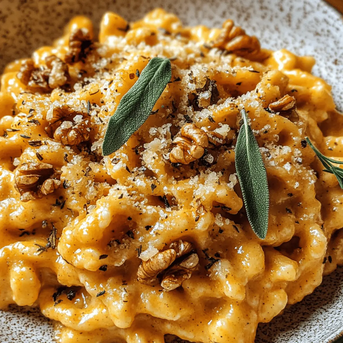 Als ich neulich beim Durchblättern meiner Herbstrezepte auf die Kürbis-Spätzle mit Walnüssen und Salbei stieß, fühlte ich mich sofort in die gemütlichen Abende meiner Kindheit zurückversetzt. Diese farbenfrohen Spätzle sind nicht nur ein Fest für die Augen, sondern auch ein wahrer Genuss für den Gaumen. Mit ihrem weichen Biss und dem nussigen Geschmack der gerösteten Walnüsse sowie dem aromatischen Hauch von frischem Salbei sind sie die perfekte vegetarische Comfort Food-Option für die kühleren Tage. Die Zubereitung ist einfach und schnell, sodass du blitzschnell ein herzhaftes Gericht auf den Tisch zaubern kannst. Doch welche Variationen könnte man noch ausprobieren? Lass uns gemeinsam in die köstliche Welt der Kürbis-Spätzle eintauchen! Warum sind diese Spätzle ein Muss? Einfache Zubereitung: Diese Kürbis-Spätzle sind schnell und unkompliziert zu machen, perfekt für den hektischen Alltag oder gemütliche Kochabende. Herzhafter Geschmack: Die Kombination aus nussigen Walnüssen und aromatischem Salbei verwandelt jede Mahlzeit in ein Fest für die Sinne. Vielfältige Variationen: Experimentiere mit Süßkartoffeln oder verschiedenen Nüssen, um deinen eigenen Geschmack zu kreieren. Du wirst sicher auch diese Variationen lieben! Gesunde Nährstoffe: Die Verwendung von Kürbis liefert wertvolle Vitamine, sodass du nicht nur lecker, sondern auch gesund speist. Perfekte Beilage: Diese Spätzle passen wunderbar zu winterlichen Salaten oder als Beilage zu Braten – ideal für deine nächsten Gäste! Kürbis-Spätzle Zutaten Für den Teig 300 g Mehl – Liefert Struktur und Textur; verwende Allzweckmehl für klassische Spätzle oder einen glutenfreien Mix für spezielle Bedürfnisse. 3 Eier – Fügen Reichtum hinzu und binden den Teig; frische Eier sorgen für den besten Geschmack und die schönste Farbe. 100 g Kürbispüree (Hokkaido oder Butternut) – Sorgt für Feuchtigkeit und eine subtile Süße; bietet leuchtende Farbe. Süßkartoffeln können als süßere Alternative verwendet werden. 80 ml Wasser – Passt die Konsistenz des Teigs an; sparsam verwenden, bis die gewünschte Textur erreicht ist. 1 Prise Salz – Verbessert den Geschmack im gesamten Gericht; nach Belieben würzen. 1 Prise frisch geriebene Muskatnuss – Fügt Wärme und Tiefe hinzu; verwende frische Muskatnuss für den besten Geschmack. Für die Garnitur 60 g Walnüsse – Sorgt für Crunch und Nussigkeit, geröstet für zusätzlichen Geschmack; kann durch Haselnüsse oder Pecannüsse ersetzt werden. 50 g Butter – Bildet die Basis für die Salbeiemulsion; wähle hochwertige Butter für besseren Geschmack. 8 frische Salbeiblätter – Verleiht ein aromatisches Kräuteraroma; nimm frische Blätter für den besten Geschmack. Salz und Pfeffer nach Geschmack – Unverzichtbar für die Gesamtwürzung. Verwöhne dich mit diesen köstlichen Kürbis-Spätzle Walnuss und Salbei und genieße ein herbstliches Geschmackserlebnis! Schritt-für-Schritt-Anleitung für Kürbis-Spätzle Walnuss und Salbei Step 1: Spätzle-Teig vorbereiten Beginne damit, das Mehl, Salz und die frisch geriebene Muskatnuss in einer großen Schüssel zu vermengen. Schlage die Eier hinein und füge das Kürbispüree hinzu. Mische die Zutaten gut und gieße nach und nach das Wasser dazu, bis ein dickflüssiger, elastischer Teig entsteht. Lasse den Teig für etwa 10 Minuten ruhen, damit die Zutaten gut miteinander verschmelzen. Step 2: Spätzle kochen Setze einen großen Topf mit gesalzenem Wasser auf den Herd und bringe das Wasser zum Kochen. Verwende eine Spätzlepresse oder ein Brett, um den vorbereiteten Teig portionsweise ins sprudelnde Wasser zu geben. Die Spätzle sind fertig, wenn sie an die Oberfläche steigen, was etwa 2-3 Minuten dauert. Nimm die Spätzle mit einem Schaumlöffel heraus und lasse sie in einem Sieb abtropfen. Step 3: Garnitur vorbereiten In einer trockenen Pfanne röste die Walnüsse bei mittlerer Hitze, bis sie duften, etwa 3-4 Minuten. Lass die Walnüsse anschließend abkühlen und hacke sie grob. In einem kleinen Topf erhitze die Butter zusammen mit den frischen Salbeiblättern, bis die Butter leicht nussig riecht und eine goldene Farbe annimmt. Würze die Mischung mit Salz und Pfeffer und rühre sie kräftig mit einem Schneebesen durch. Step 4: Kombinieren und Servieren Mische die gekochten Spätzle vorsichtig mit einem Teil der Salbeibutter in einer großen Schüssel, sodass die Spätzle gleichmäßig überzogen sind. Richte die Kürbis-Spätzle auf Tellern an, bestreue sie nach Belieben mit den gerösteten Walnüssen und träufle die restliche Salbeibutter darüber. Serviere die Spätzle sofort und genieße dieses herzliche Gericht voller Geschmack und Aromatik. Lagerungstipps für Kürbis-Spätzle Raumtemperatur:: Frische Spätzle sollten möglichst sofort verzehrt werden. Bei Raumtemperatur können sie maximal 1-2 Stunden aufbewahrt werden. Kühlschrank:: Gekochte Kürbis-Spätzle kannst du in einem luftdichten Behälter bis zu 3 Tage im Kühlschrank aufbewahren. Zum Aufwärmen empfiehlt sich eine Pfanne mit etwas Butter, um die Spätzle wieder fluffig zu machen. Gefrierer:: Für eine längere Lagerung friere die Spätzle portionsweise in einem luftdichten Behälter oder Gefrierbeutel ein. Sie halten sich bis zu 3 Monate. Direkt aus dem Gefrierfach können sie in kochendes Wasser oder einer Pfanne aufgewärmt werden. Wiedereinheizen:: Beim Aufwärmen ist es wichtig, die Spätzle nicht zu überkochen. In einer Pfanne mit etwas Butter sanft erhitzen, bis sie warm sind und frisch schmecken. Was passt zu Kürbis-Spätzle mit Walnüsse und Salbei? Wie wäre es, einen unvergesslichen Festtagstisch mit einer harmonischen Auswahl an Beilagen zu vervollständigen? Frischer Feldsalat: Dieser knackige Salat mit einer leichten Vinaigrette bringt eine erfrischende Balance zu den herzhaften Aromen der Spätzle. Die Kombination aus süßem Balsamico und nussigem Öl sorgt für ein geschmackvolles Erlebnis. Geröstetes