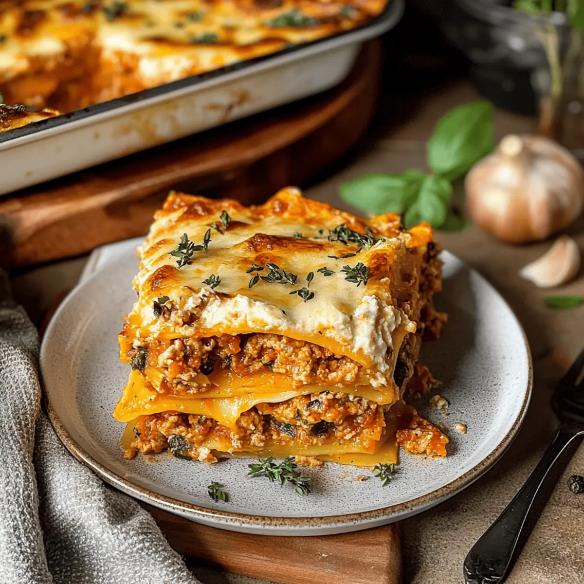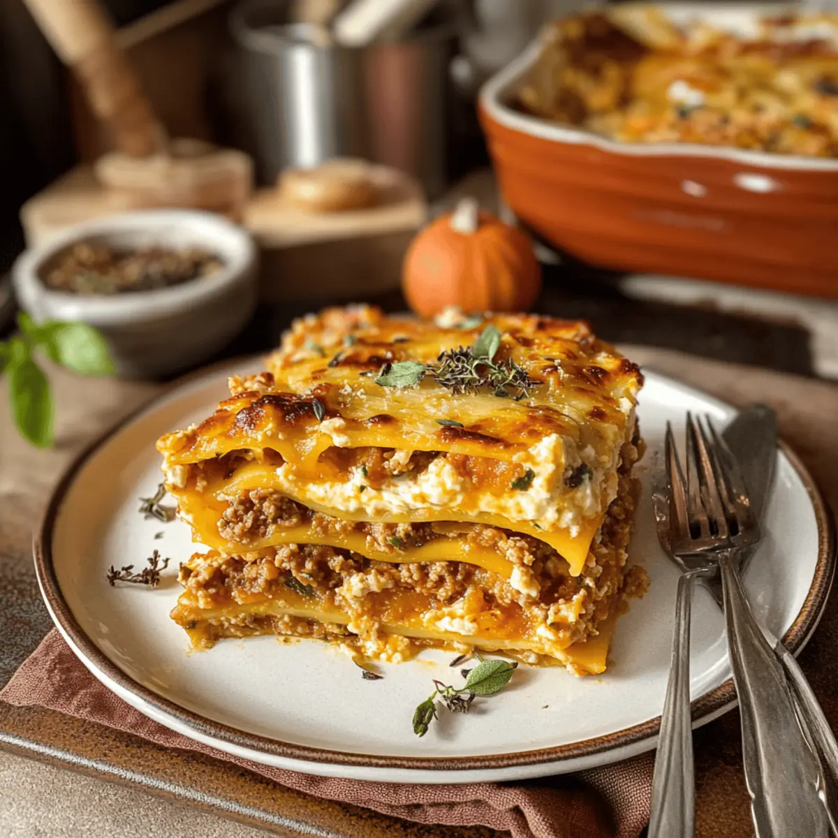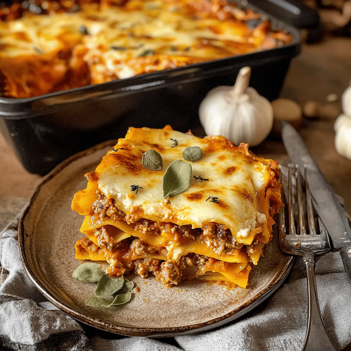 Das Aroma von frisch gebackenem Kürbis hat etwas ganz Besonderes, oder? In dieser Traditionen vereinenden Kürbislasagne mit Hackfleisch entdecke ich die perfekten Herbst- und Wintergerichte, die nicht nur sättigend, sondern auch unheimlich einfach zuzubereiten sind. Mit zarten Schichten aus Hokkaido-Kürbis, herzhaftem Hackfleisch und einer cremigen Béchamel wird jede Portion zu einer Umarmung für die Seele. Ob als schnelles Familienessen oder als Highlight bei geselligen Zusammenkünften – dieses Rezept wird sicherlich für Begeisterung sorgen. Hast du Lust, deine Küche mit diesen köstlichen Aromen zu verzaubern? Warum wirst du diese Lasagne lieben? Einfachheit: Die Zubereitung ist so unkompliziert, dass auch Kochanfänger keine Probleme haben werden. Saisonale Frische: Der Hokkaido-Kürbis sorgt für eine angenehme Süße und ist perfekt für die kühlen Monate. Herzhaft und sättigend: Diese Kürbislasagne kombiniert zartes Hackfleisch mit cremiger Béchamel – ein Fest für die Geschmacksnerven! Vielfältige Anpassungsmöglichkeiten: Probiere verschiedene Käsesorten oder füge noch mehr Gemüse wie Spinat hinzu, um deine eigene Note zu kreieren. Beliebter Crowd-Pleaser: Ideal für Familienfeiern oder gemütliche Abende mit Freunden; du wirst garantiert Lob ernten! Hast du schon einmal Kürbis in der Lasagne verwendet? Es ist eine köstliche Abwechslung, die deinem Essen eine besondere Note verleiht! Kürbislasagne mit Hackfleisch Zutaten Kürbislasagne mit Hackfleisch ist ein wunderbares Gericht, das du unbedingt ausprobieren solltest! Für die Füllung: Kürbis (Hokkaido) – sorgt für eine natürliche Süße und cremige Textur; kann durch Butternut-Kürbis ersetzt werden. Zwiebel – bildet die aromatische Basis für das Gericht; verwende Schalotten für einen milderen Geschmack. Knoblauch – verleiht der Füllung Tiefe; frischer Knoblauch ist vorzuziehen für intensiven Geschmack. Suppengrün (Gemüsemix) – bringt Komplexität und Nährstoffe; eventuell durch gewürfelte Karotten und Sellerie ersetzen. Olivenöl – zum Anbraten der Zutaten; jede andere Pflanzenölart eignet sich ebenfalls. Hackfleisch (Rind oder Wild) – die Hauptproteinquelle; für eine magerere Variante kann auch Puten- oder Hühnerhack verwendet werden. Tomatenmark – verstärkt den Geschmack in der Füllung; Tomatenpüree ist ein direkter Ersatz. Getrocknete Kräuter (Basilikum, Oregano, Thymian, Rosmarin) – intensiviert das Kräuteraroma; frische Kräuter sind ideal, wenn verfügbar. Salz & Pfeffer – zur Würze; nach Geschmack anpassen. Tomatensauce – bildet die Basis der Sauce; verwende gekaufte oder hausgemachte für mehr Textur. Für die Béchamelsauce: Butter – wichtig für die Béchamelzubereitung; Margarine kann ebenfalls verwendet werden. Mehl – sorgt für die Struktur der Béchamel; glutenfreies Mehl ist eine gute Alternative für eine glutenfreie Variante. Milch – sorgt für Cremigkeit in der Béchamel; Mandelmilch kann als milchfreie Option genutzt werden. Muskatnuss – verleiht der Sauce das besondere Etwas; kann weggelassen werden, wenn nicht verfügbar. Für die Lasagne: Lasagneblätter – bilden die Struktur der Lasagne; No-Boil-Lasagneblätter können Zeit sparen. Geriebener Käse – sorgt für eine köstlich schmelzige Kruste; Mozzarella oder eine Mischung verschiedener Käsesorten funktioniert hervorragend. Für den Belag (optional): Kürbiskerne & frische Kräuter – tolle Garnitur, die zusätzlich Textur und Aussehen verleiht. Mit diesen Zutaten bereitest du unvergessliche Kürbislasagne mit Hackfleisch zu, die nicht nur die Seele nährt, sondern auch ein Fest für die Sinne ist! Schritt-für-Schritt-Anleitung für Kürbislasagne mit Hackfleisch Step 1: Ofen vorheizen Heize den Ofen auf 180°C vor, während du mit den Vorbereitungen beginnst. Diese Temperatur sorgt dafür, dass die Kürbislasagne gleichmäßig gart und sich eine goldene Kruste bildet. Bereite ein großes, tiefes Backblech vor, das genug Platz für mehrere Schichten bietet. Step 2: Füllung vorbereiten Schneide die Zwiebel, den Knoblauch und das Suppengrün klein. Würfle den Hokkaido-Kürbis. In einer großen Pfanne erhitzt du einen Schuss Olivenöl bei mittlerer Hitze. Füge die Zwiebel hinzu und brate sie, bis sie glasig ist, was etwa 3–4 Minuten dauert. Step 3: Hackfleisch anbraten Gib das Hackfleisch in die Pfanne zur Zwiebel und brate es unter Rühren an, bis es komplett durchgegart und braun ist. Dies dauert ca. 5–6 Minuten. Achte darauf, das Fleisch zu zerkleinern, damit es gleichmäßig gart. Füge dann den Knoblauch und das Gemüse hinzu und brate alles noch für 2 Minuten weiter. Step 4: Kürbis und Gewürze hinzufügen Rühre den gewürfelten Kürbis unter die bereits angebratene Mischung und lasse alles für ca. 3 Minuten anschwitzen. Danach gibst du Tomatenmark, die getrockneten Kräuter, Salz und Pfeffer dazu. Mische alles gut durch und lasse die Füllung für etwa 8 Minuten köcheln, bis der Kürbis weich wird. Step 5: Béchamelsauce zubereiten In einem mittelgroßen Topf schmelze die Butter bei mittlerer Hitze. Nachdem sie geschmolzen ist, rühre das Mehl ein und koche es für 1–2 Minuten, bis die Mischung leicht blubbert. Gieße langsam die Milch unter ständigem Rühren dazu, um Klumpen zu vermeiden. Lasse die Sauce köcheln, bis sie dicklich wird, etwa 5–7 Minuten, und würze sie mit Salz, Pfeffer und frisch geriebener Muskatnuss. Step 6: Lasagne schichten Beginne mit der Schichtung: Verteile eine dünne Schicht Béchamelsauce auf dem Boden des gefetteten Backblechs. Lege die ersten Lasagneblätter darauf und fülle sie mit der Kürbis-Hackfleisch-Mischung. Darüber kommt eine weitere Schicht Béchamel. Wiederhole diesen Vorgang, bis alle Zutaten aufgebraucht sind, und schließe mit Lasagneblättern und der restlichen Béchamelsauce ab. Step 7: Fertigstellen und backen Belege die oberste Schicht der Lasagne mit dünnen Kürbisscheiben und streue den geriebenen Kä