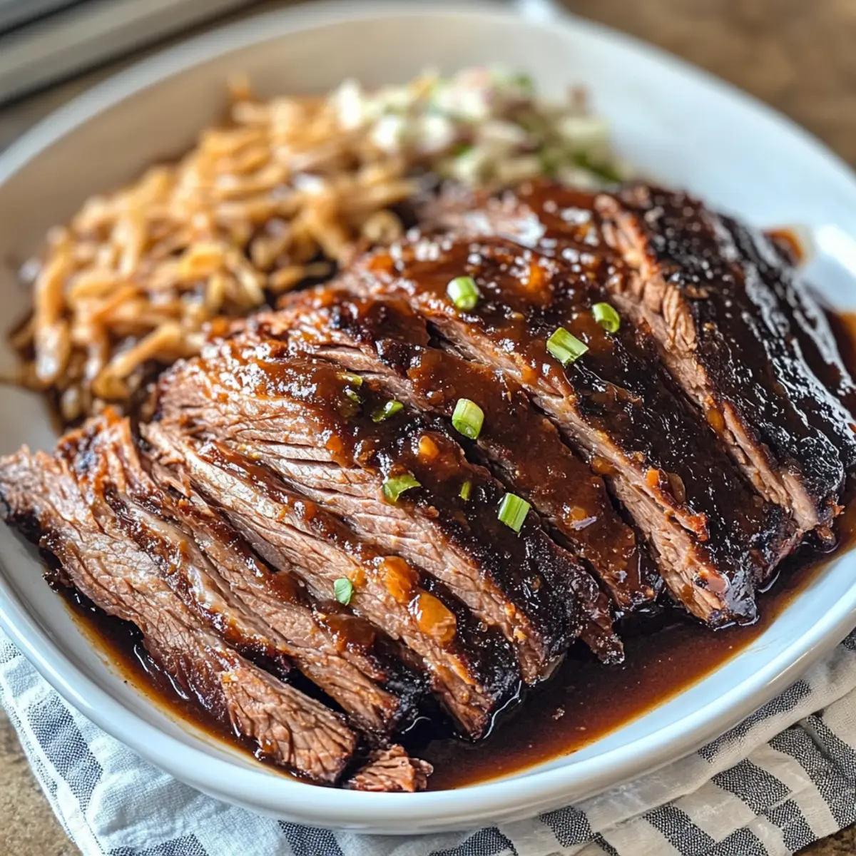 Als ich das erste Mal ein Stück langsamkochender Texas-Rinderbrust zubereitete, konnte ich den verführerischen Duft, der durch meine Küche zog, kaum fassen. Dieser Klassiker der amerikanischen BBQ-Kultur bringt nicht nur die Seele in Feierstimmung, sondern ist auch noch ganz einfach zuzubereiten! Egal, ob du eine Familienfeier planst oder einfach nur nach einem herzhaften Gericht für den Alltag suchst, dieses Rezept wird dich nie enttäuschen. Du wirst die köstliche Zartheit und die rauchigen Aromen lieben, die jeden Bissen zu einem Genuss machen. Außerdem ist dieses Gericht perfekt für Meal-Prep geeignet – bereite es vor und genieße die Zeit, die du mit deinen Lieben verbringen kannst. Bist du bereit, deine Geschmacksknospen zu verwöhnen? Lass uns gemeinsam in die BBQ-Welt eintauchen! Warum wirst du dieses Rezept lieben? Einfachheit: Die Zubereitung ist kinderleicht und benötigt nur grundlegende Kochkenntnisse – perfekt für jeden Hobbykoch. Reichhaltiger Geschmack: Die Kombination aus Gewürzen und saftigem Rindfleisch sorgt für ein unvergleichliches Geschmackserlebnis, das dich mit jedem Bissen begeistern wird. Vielseitigkeit: Dieses Rezept eignet sich nicht nur als Hauptgericht, sondern auch für köstliche BBQ-Sandwiches oder Tacos – deine Gäste werden begeistert sein! Zeitsparend: Dank des Slow Cookers entfällt das ständige Überwachen des Garvorgangs; du kannst dich entspannt um andere Dinge kümmern, während das Fleisch zart wird. Perfekte Textur: Der saftige, zarte Brisket mit einer knusprigen Kruste ist ein echtes Fest für die Sinne. Du wirst die Mischung aus rauchigem, süßem und herzhaftem Geschmack lieben! Wenn du mehr über tolle Beilagen oder Tipps zur Aufbewahrung erfahren möchtest, schau dir unsere Vorschläge für BBQ-Beilagen an. Langsamkochender Texas-Rinderbrust Zutaten • Hier findest du alle Zutaten für deinen perfekten Brisket! Für die Rinderbrust Rinderbrust – Ideale Größe ist 4-5 lbs für beste Ergebnisse. Geräucherte Paprika – Sorgt für das rauchige Aroma, das typisch für BBQ ist. Knoblauchpulver – Verstärkt das herzhafte Geschmacksprofil; frischer Knoblauch kann ebenfalls verwendet werden, aber die Menge anpassen. Zwiebelpulver – Bringt Süße und Tiefe in das Gericht. Gemahlener Kreuzkümmel – Fügt einen warmen, erdigen Geschmack hinzu. Salz und schwarzer Pfeffer – Essentielle Gewürze, um die Aromen aufzufrischen. Cayennepfeffer – Optional für die Schärfe. Brauner Zucker – Verleiht Süße und hilft, eine karamellisierte Kruste zu bilden. Worcestershire-Sauce – Vertieft den Umami-Geschmack des Rindfleisches. Rinderbrühe – Sorgt während des Kochens für Feuchtigkeit und Geschmack. Apfelessig – Zartet das Fleisch und fügt Säure hinzu. Flüssiger Rauch – Verstärkt den rauchigen Geschmack; optional bei Verwendung von geräucherter Paprika. Für die BBQ-Sauce Ketchup – Basisingredienz der Sauce, die Süße und Säure hinzufügt. Apfelessig – Sorgt für Frische und Spritzigkeit. Brauner Zucker – Süßt die Sauce; kann durch Honig ersetzt werden. Worcestershire-Sauce, Dijon-Senf – Fügen Komplexität und Schärfe hinzu. Gewürze (geräucherte Paprika, schwarzer Pfeffer, Salz, Knoblauch- und Zwiebelpulver) – Verfeinern das Geschmacksprofil der Sauce. Mit diesen Zutaten bereitest du den perfekten langsamkochenden Texas-Rinderbrust zu und erlebst ein BBQ, das dich begeistern wird! Schritt-für-Schritt-Anleitung für Langsamkochender Texas-Rinderbrust Step 1: Rinderbrust vorbereiten Trimme das überschüssige Fett von der Rinderbrust ab, dabei sollten mindestens ¼ Zoll stehen bleiben, um die Feuchtigkeit zu erhalten. Tupfe das Fleisch trocken, um sicherzustellen, dass die Gewürzmischung gut haftet und das Aroma durchkommt. Dies ist ein wichtiger erster Schritt für die perfekt langsamkochende Texas-Rinderbrust. Step 2: Würzen Mische in einer Schüssel die geräucherte Paprika, das Knoblauch- und Zwiebelpulver, den Kreuzkümmel, Salz, schwarzen Pfeffer, Cayennepfeffer und den braunen Zucker. Verteile diese Mischung großzügig über die gesamte Rinderbrust und reibe sie gut ein. Lasse das Fleisch dann bei Zimmertemperatur für 30 Minuten ruhen oder kühle es über Nacht im Kühlschrank ein, um den Geschmack zu intensivieren. Step 3: Kochflüssigkeit kombinieren In deinem Slow Cooker vermenge die Rinderbrühe, den Apfelessig, die Worcestershire-Sauce und den flüssigen Rauch, wenn du ihn verwendest. Diese Mischung sorgt dafür, dass die langsamkochende Texas-Rinderbrust während des Garens feucht bleibt und den unverwechselbaren BBQ-Geschmack erhält. Step 4: Langsam garen Leg die Rinderbrust mit der Fettschicht nach oben in den Slow Cooker. Schließe den Deckel und koche das Fleisch auf niedriger Stufe für 8 bis 10 Stunden, oder auf hoher Stufe für 4 bis 5 Stunden. Überprüfe die Garstufe, indem du mit einer Gabel leicht ins Fleisch stichst – es sollte zart und leicht auseinanderfallen. Step 5: BBQ-Sauce zubereiten In einem kleinen Topf vermische Ketchup, Apfelessig, braunen Zucker, Worcestershire-Sauce, Dijon-Senf sowie die Gewürze (geräucherte Paprika, schwarzer Pfeffer, Salz, Knoblauchpulver und Zwiebelpulver). Lass die Mischung auf mittlerer Hitze für etwa 10 Minuten köcheln, bis sie dicklich wird. Diese Sauce ergänzt die langsamkochende Texas-Rinderbrust perfekt. Step 6: Ruhen lassen und schneiden Wenn das Garen abgeschlossen ist, nimm die Rinderbrust aus dem Slow Cooker und lasse sie 15 Minuten ruhen. Dies hilft, die Säfte im Fleisch zu erhalten. Schneide die Rinderbrust gegen die Faser in dünne Scheiben, um die Zartheit zu maximieren. Serviere sie mit der BBQ-Sauce und deinen bevorzugten Beilagen für das umfassende BBQ-Erlebnis. Tipps für die beste langsamkochende Texas-Rinderbrust Fette trimmen: Achte darauf, die Rinderbrust richtig zu trimmen; zu viel Fett kann das Gericht fettig machen, während zu wenig es trocken lässt. Würzen vor dem Kochen: Lass das gewürzte Fleis
