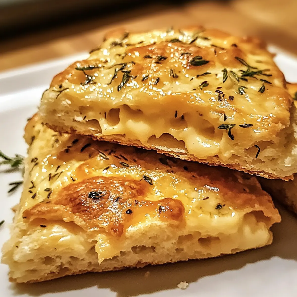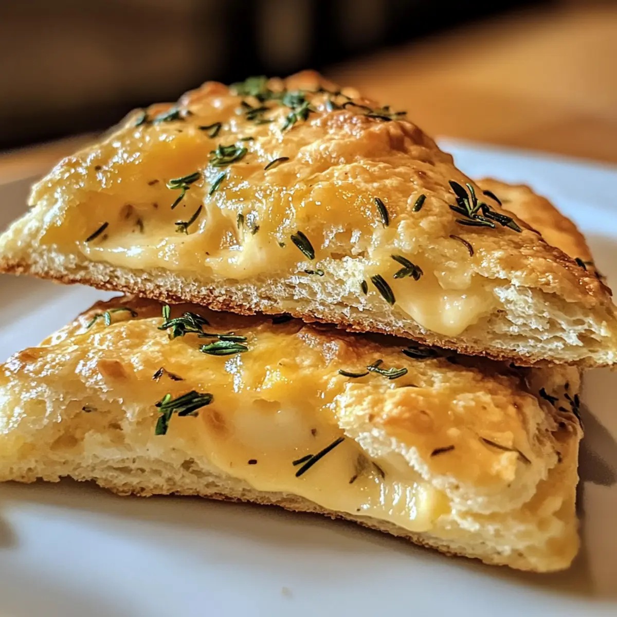 Der verführerische Duft frisch gebackener Scones dringt durch die Küche und lässt die Vorfreude auf den ersten Biss wachsen. Diese leckeren herzhafte Kräuter- und Käsescones für ultimativen Geschmacksgenuss sind nicht nur schnell zubereitet, sondern auch unglaublich vielseitig, sodass du sie mit deinen Lieblingskräutern und Käsesorten anpassen kannst – von griechischem Feta bis zu aromatischem Gruyère. Ob für ein gemütliches Frühstück oder als schmackhafter Snack für zwischendurch, diese Scones bieten dir eine perfekte Verbindung aus zarter Fluffigkeit und kräftigem Geschmack. Lass uns gemeinsam entdecken, wie du diese köstliche Leckerei zaubern kannst! Bist du bereit für etwas Frisches aus deinem Backofen? Warum sind diese Scones so besonders? Vielseitigkeit: Du kannst diese Scones ganz nach deinem Geschmack anpassen, indem du verschiedene Käsesorten und Kräuter verwendest, wie z.B. herzhaften Feta oder aromatischen Gruyère. Schnell zubereitet: In weniger als 30 Minuten hast du frische Scones auf dem Tisch – perfekt für ein schnelles Frühstück oder einen Snack! Herzhafter Genuss: Die Kombination aus Kräutern und Käse sorgt für einen intensiven Geschmack, der jeden Gaumen erfreut. Perfekt für Meal Prep: Stelle einfach den Teig eine Stunde vorher her und backe die Scones direkt aus dem Kühlschrank, sodass du immer ein schnelles Frühstück zur Hand hast. Crowd-Pleaser: Diese Scones sind ideal, um Familie und Freunde zu beeindrucken – serviere sie warm mit einer leckeren Tomatensuppe für ein besonders tolles Geschmackserlebnis! Entdecke mit unseren Tipps auch weitere Variation Ideen für deine eigenen Kreationen und genieße die unendlichen Möglichkeiten! Leckere herzhafte Kräuter- und Käsescones Zutaten • Für den Teig: Allzweckmehl – bildet die Basis der Scones; du kannst auch Vollkornmehl für mehr Biss verwenden. Backpulver – sorgt für das perfekte Aufgehen der Scones. Backsoda – hilft in Kombination mit Buttermilch, damit die Scones schön aufgehen. Salz – verstärkt den Geschmack der Scones. Schwarzer Pfeffer – fügt eine pikante Note hinzu und sorgt für Komplexität im Geschmack. • Für die Kräuter und den Käse: Frischer Rosmarin (2 EL) – verleiht ein aromatisches Aroma; kann durch Schnittlauch ersetzt werden, wenn du es milder magst. Frischer Thymian (1 EL) – ergänzt Rosmarin mit erdigen Noten; kann durch Dill ersetzt werden, um einen leichteren Geschmack zu erzielen. Scharfer Cheddar (1 Tasse) – sorgt für reichhaltigen, herzhaften Genuss; ersetze ihn durch Feta für verschiedene Geschmacksrichtungen. • Für die weiteren Zutaten: Ungesalzene Butter (1/2 Tasse) – sorgt für eine schöne Fluffigkeit; halte sie kalt, bis du mit dem Mischen beginnst. Buttermilch (3/4 Tasse) – verleiht Feuchtigkeit und einen leicht säuerlichen Geschmack; kann durch Milch mit Essig als Alternative ersetzt werden. Ei (1, geschlagen) – dient als Eiwasch und sorgt für eine glänzende, goldene Kruste. Diese leckeren herzhafte Kräuter- und Käsescones sind nicht nur einfach zu machen, sondern auch eine tolle Basis für deine kreativen Variationen! Schritt-für-Schritt-Anleitung für Leckere herzhafte Kräuter- und Käsescones für ultimativen Geschmacksgenuss Step 1: Ofen vorheizen Heize den Ofen auf 200°C (400°F) vor und lege ein Backblech mit Backpapier aus. Dies ist der erste Schritt, um sicherzustellen, dass deine leckeren herzhafte Kräuter- und Käsescones gleichmäßig gebacken und schön goldbraun werden. Step 2: Trockenbestandteile mischen In einer großen Schüssel verrühre das Allzweckmehl, Backpulver, Backsoda, Salz und schwarzen Pfeffer gründlich mit einem Schneebesen. Dies sorgt dafür, dass die leichten und fluffigen Texturen der Scones durch eine gleichmäßige Verteilung der Triebmittel unterstützt werden. Step 3: Kräuter und Käse einarbeiten Falte nun vorsichtig den frischen Rosmarin, den Thymian und den scharfen Cheddar-Käse in die Mehlmischung. Achte darauf, dass die Kräuter und der Käse gleichmäßig verteilt sind, um jeden Bissen deiner leckeren herzhafte Kräuter- und Käsescones mit Geschmack zu füllen. Step 4: Butter einarbeiten Nehme die kalte, gewürfelte Butter und arbeite sie mit einem Teigmischer oder deinen Fingerspitzen in die Mischung ein, bis die Konsistenz grober Brösel erreicht ist. Dies ist entscheidend für die Fluffigkeit deiner Scones, also sei sanft und vermeide ein Übermixen. Step 5: Feuchte Zutaten kombinieren Gieße die Buttermilch zur Mischung und rühre vorsichtig, bis der Teig gerade so zusammenkommt. Er sollte leicht feucht, aber nicht klebrig sein. Achte darauf, nicht zu viel zu rühren, um die zarte Textur deiner leckeren herzhafte Kräuter- und Käsescones zu bewahren. Step 6: Teig formen Übertrage den Teig auf eine leicht bemehlte Arbeitsfläche und knete ihn sanft, um ihn zusammenzuführen. Forme den Teig zu einem dicken Disc und schneide ihn in Wedge- oder Rundformen. Dies sorgt dafür, dass die Scones gleichmäßig und ansprechend aussehen. Step 7: Eiwasch auftragen Verquirle das Ei in einer kleinen Schüssel und bestreiche die Oberseiten der geformten Scones gleichmäßig mit der Eiwasch. Dies gibt den Scones eine glänzende, goldene Kruste, die sowohl aussehen als auch schmecken wird, als wären sie aus einer hochwertigen Bäckerei. Step 8: Backen Platziere die Scones im vorgeheizten Ofen und backe sie für etwa 15-20 Minuten, bis sie goldbraun und aufgegangen sind. Behalte sie im Auge; die perfekten Scones sollten ein leichtes Geräusch machen, wenn du an sie klopfst. Step 9: Abkühlen und Servieren Lasse die frisch gebackenen Scones einige Minuten auf einem Kuchengitter abkühlen, bevor du sie servierst. Genieße sie warm und frisch aus dem Ofen – sie sind der ultimative Genuss und eine hervorragende Ergänzung zu deinem Frühstück oder als Snack zwischendurch! Aufbewahrung und Einfrieren von leckeren herzhaften Kräuter- und Käsescones Luftdichte Behälter: B