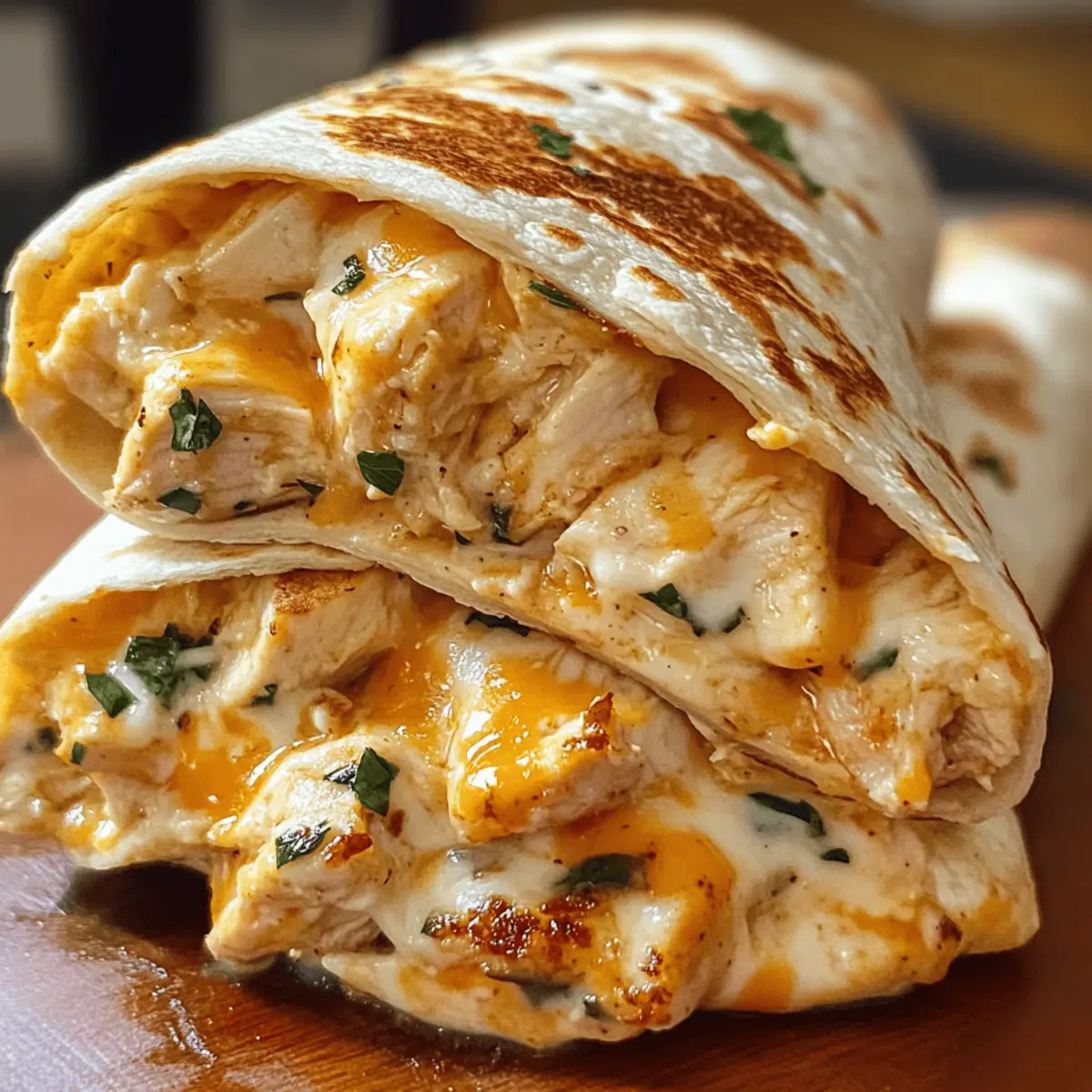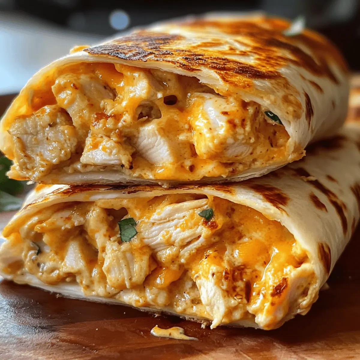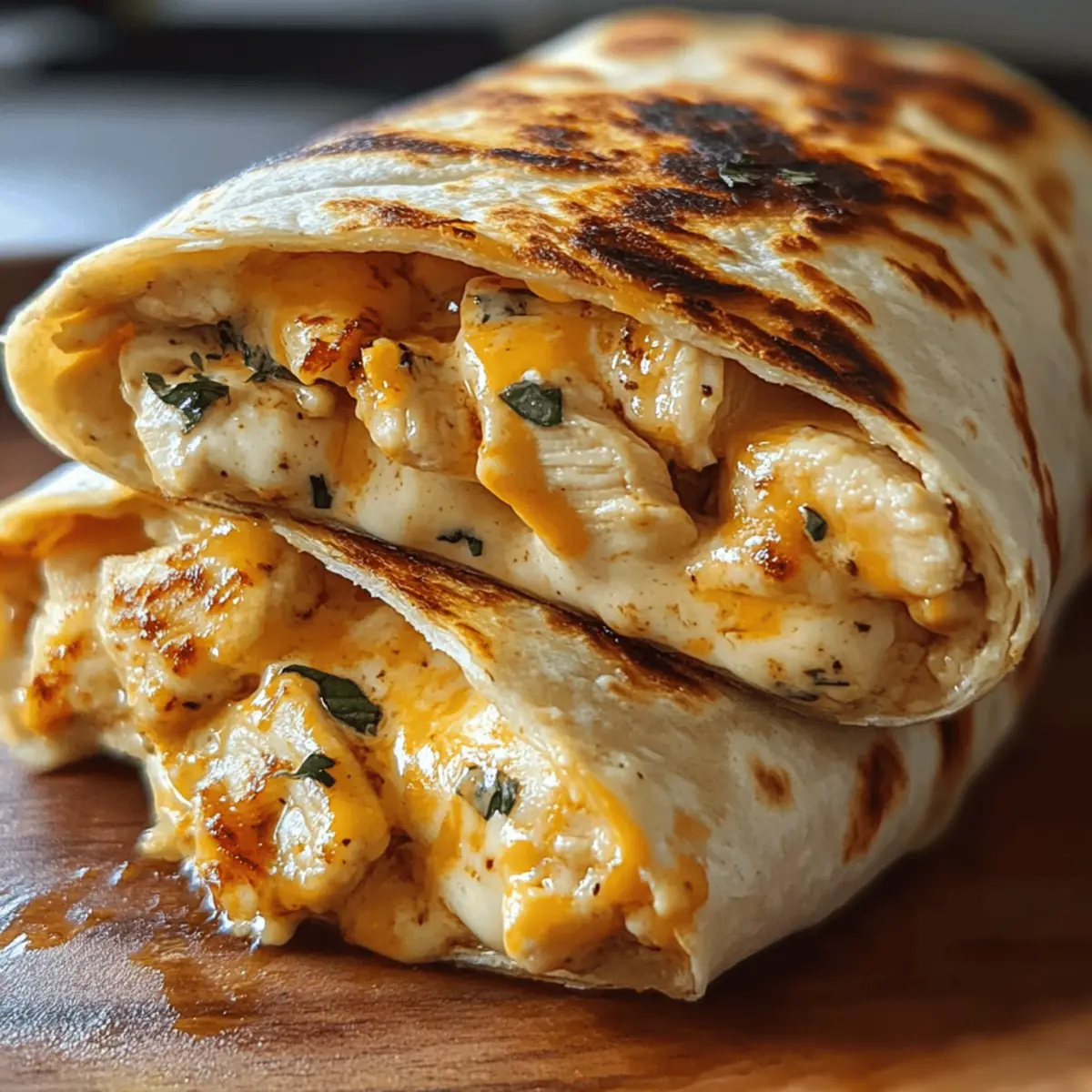 Während ich in der Küche stehe und die köstlichen Aromen von Knoblauch und geschmolzenem Käse wahrnehme, entsteht das unweigerliche Verlangen nach etwas Einfachem, aber dennoch Unwiderstehlichem: leckere, klebrige, käsige Knoblauch-Hühnchen-Wraps. Diese Wraps sind nicht nur in weniger als 30 Minuten zubereitet, sondern sie bieten auch die Möglichkeit, sie ganz nach deinem Geschmack anzupassen – egal, ob du mehr Gemüse, andere Käsesorten oder sogar eine feurige Note mit etwas Paprika hinzufügen möchtest. Perfekt für stressige Wochentage, präsentieren sie sich als ein schneller Genuss, der der gesamten Familie schmeckt. Bist du bereit, deine Küche in ein kleines Geschmackserlebnis zu verwandeln? Lass uns zusammen die Wraps zubereiten und einen einfachen Abend zu etwas Besonderem machen! Warum sind diese Wraps einfach unwiderstehlich? Einfachheit pur: Die Zubereitung ist kinderleicht und benötigt keine umfangreichen Kochkünste. Mit nur wenigen Zutaten zauberst du ein fantastisches Gericht. Vielseitig anpassbar: Du kannst die Wraps nach Belieben verfeinern – ob mit frischem Gemüse oder verschiedenen Käsesorten. Probiere es mit unseren Klebrige Kase Knoblauch für noch mehr Geschmack! Schnell und lecker: In weniger als 30 Minuten stehen diese Wraps auf dem Tisch – ideal für hektische Abende! Genuss für die ganze Familie: Jeder wird von der Kombination aus saftigem Hühnchen und schmelzendem Käse begeistert sein. Perfekte Textur: Krustige Tortilla außen und eine cremige, klebrige Füllung sorgen für einen unwiderstehlichen Biss. Ideal für Reste: Die Wraps lassen sich hervorragend aufbewahren und schmecken auch am nächsten Tag noch köstlich! Leckere Knoblauch-Hühnchen-Wraps Zutaten Für die Füllung: Würfelfleisch vom Hühnchen – Ist die Hauptquelle für Protein in den Wraps; verwende Brust- oder Schenkelstückchen für mehr Geschmack. Olivenöl – Fügt Feuchtigkeit hinzu und hilft beim Garen; kann mit Sonnenblumenöl ersetzt werden. Knoblauchpulver – Sorgt für herzhafte Tiefe; frisch gehackter Knoblauch bietet einen intensiveren Geschmack. Zwiebelpulver – Verbessert den Gesamtgeschmack; frische Zwiebeln können für mehr Textur hinzugefügt werden. Paprika – Bringt eine milde, rauchige Note; geräucherte Paprika kann für zusätzlichen Kick verwendet werden. Salz und Pfeffer – Ein Muss für die Würze; nach persönlichem Geschmack anpassen. Für die Wraps: Mehl Tortillas – Dienen als Basis für die Wraps; Vollkorn- oder glutenfreie Tortillas sind ebenfalls möglich. Cremige Knoblauchsauce – Der Schlüsselgeschmacksträger; verleiht Fülle, kannst du auch eine fertige Sauce verwenden, wenn es schnell gehen soll. Geriebener Cheddar und Mozzarella Käse – Sorgt für die cremige Textur und den Geschmack; verschiedene Käsesorten können ebenfalls gemischt werden, um die Wraps noch interessanter zu gestalten. Mit diesen leckeren, klebrigen, käsigen Knoblauch-Hühnchen-Wraps wird jedes Abendessen zu einem Anlass, auf den man sich freuen kann! Schritt-für-Schritt-Anleitung für leckere, klebrige, käsige Knoblauch-Hühnchen-Wraps Step 1: Hühnchen würzen In einer Schüssel das gewürfelte Hühnchen mit Olivenöl, Knoblauchpulver, Zwiebelpulver, Paprika, Salz und Pfeffer vermengen, bis es gleichmäßig beschichtet ist. Dies dauert etwa 5 Minuten. Dadurch wird das Hühnchen zart und aromatisch. Step 2: Hühnchen braten Erhitze eine beschichtete Pfanne bei mittlerer Hitze und füge das gewürzte Hühnchen hinzu. Brate es für 6-8 Minuten, bis es goldbraun und vollständig durchgegart ist. Achte darauf, dass das Hühnchen eine Kerntemperatur von mindestens 75 °C erreicht. Step 3: Wraps zusammenstellen Verteile die cremige Knoblauchsauce gleichmäßig auf den Tortillas. Lege dann das gebratene Hühnchen und eine großzügige Menge geriebenen Cheddar und Mozzarella darauf. Dies sollte etwa 5 Minuten in Anspruch nehmen, um sicherzustellen, dass die Saucker und der Käse gut verteilt sind. Step 4: Käse schmelzen Falte die Tortillas zusammen und lege sie in die vorherige Pfanne. Brate sie für 2-3 Minuten auf jeder Seite, bis der Käse geschmolzen ist und die Tortilla eine goldene, knusprige Oberfläche hat. Achte darauf, dass sie nicht zu dunkel werden, damit sie schön zart bleiben. Step 5: Servieren Schnippele die Wraps in der Mitte durch und garniere sie nach Belieben mit frischer Petersilie. Diese leckeren, klebrigen, käsigen Knoblauch-Hühnchen-Wraps sollte warm serviert werden, um das volle Aroma und die geschmolzene Käsigkeit zu genießen. Die perfekte Vorbereitung für leckere, klebrige, käsige Knoblauch-Hühnchen-Wraps Diese leckeren, klebrigen, käsigen Knoblauch-Hühnchen-Wraps sind ein ideales Gericht für die Vorbereitung im Voraus! Du kannst das gewürzte Hühnchen bis 24 Stunden zuvor marinieren, indem du es mit Olivenöl, Knoblauchpulver, Zwiebelpulver, Paprika, Salz und Pfeffer vermengst – so zieht das Aroma richtig gut ein. Achte darauf, das Fleisch in einem luftdichten Behälter im Kühlschrank aufzubewahren, um die Frische zu erhalten. Auch die Wraps können bis zu 3 Tage im Voraus zubereitet werden; heize sie einfach in einer Pfanne für 2-3 Minuten auf jeder Seite, um die Käsefüllung wieder geschmeidig und die Tortilla knusprig zu machen. Somit sparst du wertvolle Zeit und kannst dennoch ein köstliches Abendessen genießen! Lagerungstipps für leckere, klebrige, käsige Knoblauch-Hühnchen-Wraps Raumtemperatur: Die Wraps sollten nicht länger als 2 Stunden bei Raumtemperatur stehen gelassen werden, um Bakterienwachstum zu vermeiden. Kühlschrank: Bewahre die übrig gebliebenen Wraps in einem luftdichten Behälter im Kühlschrank auf, wo sie bis zu 3 Tage frisch bleiben. Gefrierfach: Für längere Lagerung kannst du die Wraps gut eingewickelt in Alufolie oder einem gefriergeeigneten Behälter bis zu 2 Monate im Gefrierfach aufbewahren. Wiedererwärmen: Erwärme die Wraps in einer Pfanne bei mittlerer Hitze für 5-7 Minuten