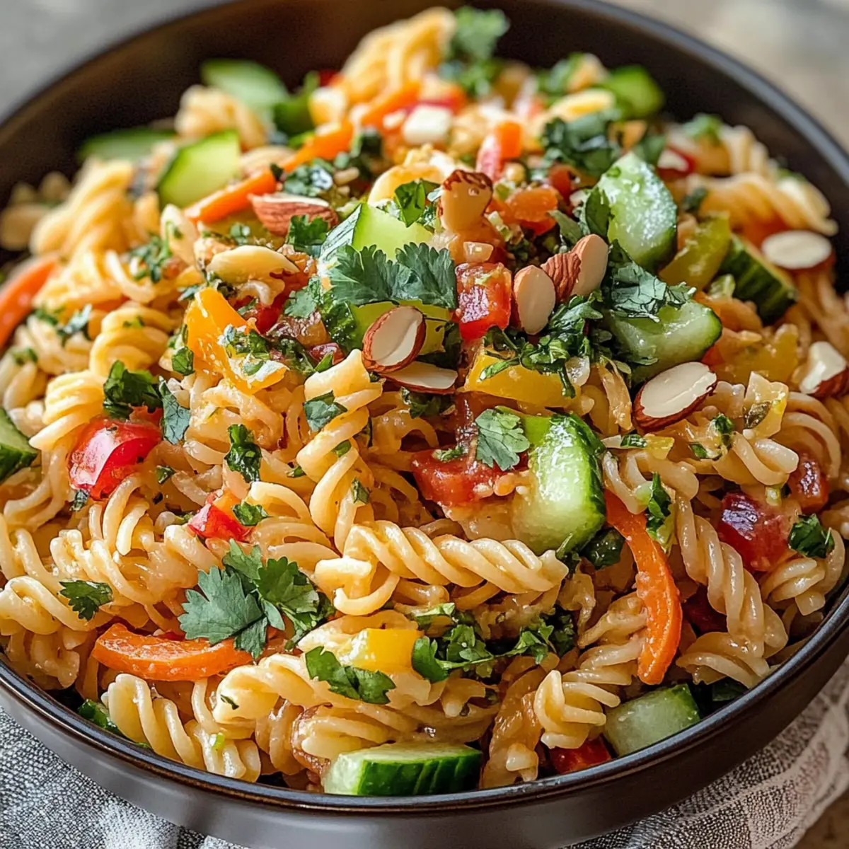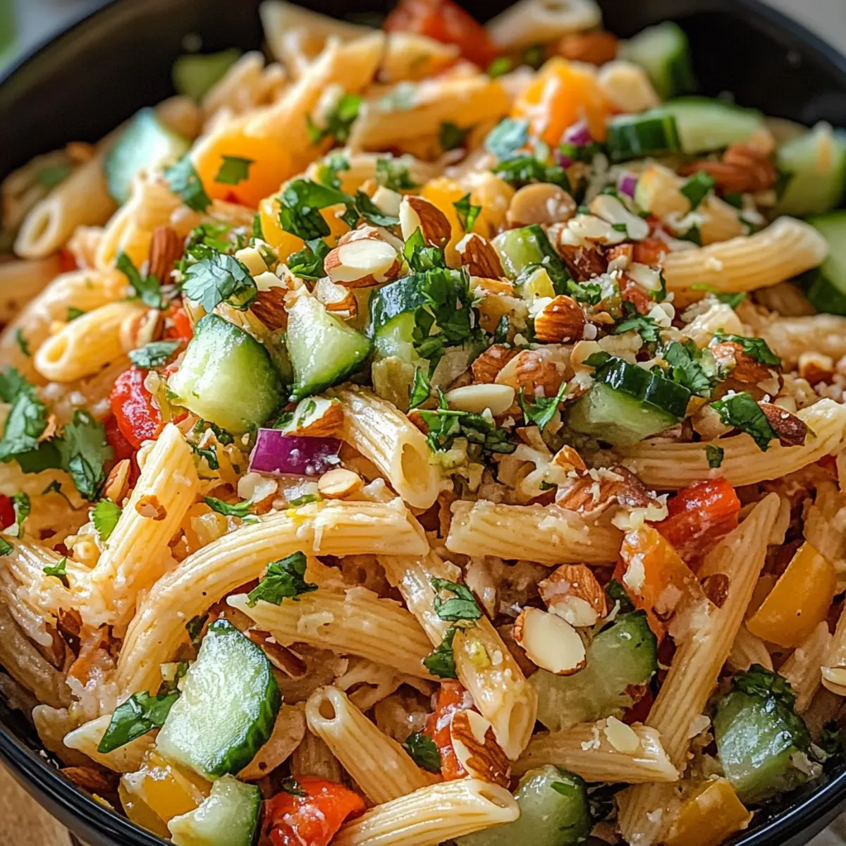 Der Sommer naht mit seinen warmen Sonnenstrahlen, und ich kann kaum erwarten, frische, leichte Gerichte auf den Tisch zu bringen. Der Limetten Crunch Nudelsalat vereint den spritzigen Geschmack von Limette mit knackigem Gemüse und macht ihn zum perfekten Begleiter für Grillabende oder Picknicks im Freien. Diese schnell zubereitete Erfrischung ist nicht nur gesund und vegetarisch, sondern bringt auch Farbe und Freude auf jeden Teller. Der Kontrast zwischen der zarten Pasta und dem knusprigen Gemüse wird nicht nur deinen Gaumen verwöhnen, sondern auch deine Gäste begeistern. Bist du bereit, deinen nächsten Sommerklassiker zu entdecken? Warum wird dieser Salat zum Liebling? Frische Zutaten: Der Limetten Crunch Nudelsalat kombiniert knackiges Gemüse mit der spritzigen Note von Limette und sorgt für eine erfrischende Geschmacksexplosion. Schnelle Zubereitung: In nur wenigen Schritten kannst du diesen köstlichen Salat für deine nächste Grillfeier oder ein Picknick zubereiten. VielfältigeVariationen: Ob du ihn mit verschiedenen Nüssen oder saisonalem Gemüse anpasst, die Möglichkeiten sind endlos! Gesund und leicht: Eine tolle Wahl für einen leichten Lunch oder als Beilage, ideal für gesundheitsbewusste Esser. Kombiniere ihn mit deinem Lieblingsprotein oder genieße ihn vegetarisch für einen vollwertigen Genuss. Perfekte Textur: Der Kontrast zwischen der zarten Pasta und dem knackigen Gemüse macht jeden Biss zu einem Erlebnis; du wirst dich noch lange erinnern! Limetten Crunch Nudelsalat Zutaten • Ein frisches, gesundes Rezept für den Sommer! Für die Nudeln Nudeln (Pasta) – die Basis des Salats; glutenfreie Pasta ist eine tolle Alternative. Für das Gemüse Karotte (Carrot) – sorgt für Süße und Crunch; kein Ersatz nötig, aber alternativ kannst du auch Kraut verwenden. Gurke (Cucumber) – bringt Frische; Zucchini ist ein geschmackvoller Austausch. Paprika (Bell Pepper) – liefert Farbe und Geschmack; wähle gelbe oder orange für eine süßere Note. Mais (Corn) – fügt Süße hinzu; frisch oder aus der Dose verwenden – gut abtropfen lassen. Frühlingszwiebeln (Spring Onions) – mild im Geschmack; grüne Zwiebeln sind ein guter Ersatz. Koriander (Cilantro) – sorgt für eine frische Kräuternote; für eine Alternative einfach Petersilie nehmen. Für das Dressing Olivenöl (Olive Oil) – die Basis für das Dressing; kann mit Avocadoöl ersetzt werden. Limettensaft und -schale (Lime Juice and Zest) – wichtig für die spritzige Geschmacksnote; Zitronensaft ist ein mögliches Substitute. Honig oder Agavendicksaft – fügt Süße hinzu; Ahornsirup ist eine weitere Option. Dijon-Senf (Dijon Mustard) – verleiht dem Dressing Tiefe; kann weggelassen werden, wenn gewünscht. Salz und Pfeffer – unverzichtbar zum Würzen; nach Geschmack anpassen. Cayennepfeffer – gibt optional eine scharfe Note; weglassen für eine mildere Version. Für die Nüsse Nüsse (Almonds/Cashews) – sorgen für einen köstlichen Crunch; einfach rösten für zusätzlichen Geschmack, oder mit Sonnenblumenkernen ersetzen, um eine Nussfreiheit zu gewährleisten. Step-by-Step Instructions für Limetten Crunch Nudelsalat Step 1: Nudeln kochen Bringe in einem großen Topf ausreichend Wasser mit Salz zum Kochen. Füge die Pasta hinzu und koche diese laut Packungsanweisung al dente. Nach dem Kochen, gieße die Nudeln in ein Sieb und spüle sie unter kaltem Wasser ab, um das Garen zu stoppen und sie abzukühlen. Step 2: Gemüse vorbereiten Während die Nudeln kochen, wasche und schneide das Gemüse. Schäle die Karotten und schneide sie in feine Stifte. Halbiere die Gurke, entferne die Kerne und schneide sie in Würfel. Die Paprika ebenfalls würfeln und die Frühlingszwiebeln in feine Ringe schneiden. Bereite auch den Koriander vor, indem du ihn grob hackst. Step 3: Nüsse rösten (optional) Erhitze eine trockene Pfanne bei mittlerer Hitze und füge die Nüsse hinzu. Röste diese für etwa 2–3 Minuten, bis sie goldbraun sind und du ihren nussigen Duft wahrnimmst. Rühre dabei ständig um, um ein Anbrennen zu vermeiden, und stelle sie dann zum Abkühlen beiseite. Step 4: Dressing mixen In einer mittelgroßen Schüssel vermische den Limettensaft, die Limettenschale, das Olivenöl, den Dijon-Senf, den Honig, Salz, Pfeffer und optional den Cayennepfeffer. Verquirle alles mit einem Schneebesen, bis die Zutaten gut kombiniert sind und eine homogene Emulsion entsteht. Step 5: Salat vermengen In einer großen Schüssel gibst du die abgekühlten Nudeln, das geschnittene Gemüse, die gerösteten Nüsse und den Koriander. Mit einem großen Löffel oder einer Zange vermenge alles gut miteinander, sodass die Zutaten gleichmäßig verteilt sind und ein appetitlicher Salat entsteht. Step 6: Dressing hinzufügen Gieße das vorbereitete Dressing über den Nudelsalat. Rühre alles sorgfältig durch, bis eine gleichmäßige Schicht Dressing alle Zutaten umhüllt. Achte darauf, dass jede Nudel und jedes Gemüse Stück gut in der würzigen Kombination benetzt ist, um den maximalen Geschmack zu erreichen. Step 7: Kühlen Decke die Schüssel mit Frischhaltefolie ab und stelle den Limetten Crunch Nudelsalat für etwa 15–20 Minuten in den Kühlschrank. Diese Ruhezeit ermöglicht den Aromen, sich zu entfalten und miteinander zu verschmelzen, was den Salat noch schmackhafter macht. Step 8: Servieren Serviere den Limetten Crunch Nudelsalat gut gekühlt als erfrischenden Beilagensalat oder als leichtes Hauptgericht. Er passt hervorragend zu Grillgerichten oder alleine als gesunde Mittagsmahlzeit; genieße die knackigen Texturen und den spritzigen Geschmack! Expert Tips für Limetten Crunch Nudelsalat Gut kühlen: Achte darauf, dass die Nudeln gut abgekühlt sind, bevor du sie mit dem Gemüse mischst, um ein Welken zu vermeiden. Würze anpassen: Probiere das Dressing vor dem Servieren und passe die Süße oder die Säure nach deinem Geschmack an. Textur verbessern: Überlege, kurz vor dem Servieren Avocado hinzuzufüge