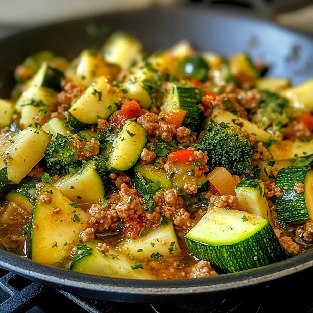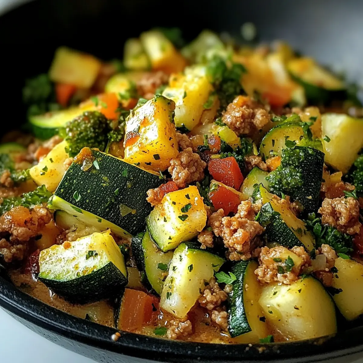 Als ich letztens in meiner Küche stand, durchflutete der verführerische Duft von geröstetem Knoblauch und frisch geschnittenem Zucchini den Raum. Es war der perfekte Moment für mein Low-Carb Ground Turkey and Zucchini Skillet, ein Gericht, das nicht nur in weniger als 30 Minuten zubereitet ist, sondern auch voller Nährstoffe steckt. Diese Kombination aus magerem Putenhackfleisch und zarten Zucchini lässt sich wunderbar in einer Pfanne zaubern und ist ideal für stressige Wochentage. Egal, ob du ein erfahrener Koch oder ein Einsteiger bist, dieses Rezept ist kinderleicht und wird garantiert zum neuen Abendessen-Hit in deinem Haushalt. Also, wie schnell kann ein gesundes und schmackhaftes Gericht auf den Tisch kommen? Lass uns das Geheimnis entdecken! Warum wirst du dieses Rezept lieben? Einfachheit: Die Zubereitung ist unkompliziert und benötigt nur grundlegende Kochfähigkeiten. Jeder kann es meistern! Herzhafte Aromen: Die Kombination aus frischem Gemüse und magerem Putenfleisch sorgt für einen intensiven Geschmack, der auch ohne viele Zutaten begeistert. Vielseitig: Du kannst dieses Rezept ganz nach deinem Geschmack anpassen, sei es durch Austausch der Fleischsorte oder das Hinzufügen von anderen Gemüsesorten wie Paprika oder Spinat. Zeitersparnis: In nur 30 Minuten steht ein köstliches, gesundes Gericht auf dem Tisch — perfekt für die hektischen Wochentage. Crowd-Pleasing: Sowohl Kochanfänger als auch erfahrene Küchenchefs werden von diesem Rezept begeistert sein, denn es bringt die Familie zusammen! Zutaten für das Low-Carb Ground Turkey and Zucchini Skillet • Eine einfache und gesunde Mahlzeit für die ganze Familie! Für die Pfanne Putenhackfleisch – eine magerere Proteinquelle, die für ein herzhaftes Gericht sorgt; kann auch durch Hähnchen oder Rind ersetzt werden. Zucchini – sorgt für Feuchtigkeit und eine leichte Textur; kann alternativ durch gelbe Zucchini ersetzt werden. Olivenöl – verwendest du zum Anbraten, für einen feinen Geschmack; Avocadoöl ist eine gute Alternative mit höherem Rauchpunkt. Knoblauch – verstärkt den Geschmack und das Aroma; frischer Knoblauch ist ideal, kann aber durch Knoblauchpulver ersetzt werden. Zwiebel – liefert eine süßliche und herzhafte Basis; gelbe oder rote Zwiebeln eignen sich gut. Verwendung von Schalotten für einen milderen Geschmack möglich. Salz & Pfeffer – essenzielle Gewürze für Balance und Geschmack; nach persönlichem Belieben anpassen. Italienische Gewürzmischung – sorgt für tiefen Geschmack; kann bei Bedarf durch eine Mischung aus getrocknetem Basilikum und Oregano ersetzt werden. Parmesan (optional) – zum Bestreuen, fügt eine herzhafte Note hinzu; für eine milchfreie Variante einfach weglassen oder durch Hefeflocken ersetzen. Schritt-für-Schritt-Anleitung für das Low-Carb Ground Turkey and Zucchini Skillet Step 1: Olivenöl erhitzen Erhitze in einer großen Pfanne bei mittlerer bis hoher Hitze 2 Esslöffel Olivenöl. Achte darauf, dass das Öl schimmert, bevor du mit dem nächsten Schritt fortfährst. Dies sorgt dafür, dass das Fleisch und das Gemüse gleichmäßig angebraten werden und ein köstliches Aroma entfalten. Step 2: Zwiebeln und Knoblauch anbraten Füge 1 fein gehackte Zwiebel und 2 zerdrückte Knoblauchzehen in die Pfanne hinzu. Brate die Mischung für etwa 2–3 Minuten, bis die Zwiebeln glasig und der Knoblauch aromatisch ist. Dies stellt sicher, dass die Basis des Gerichts voll von herzhaften Aromen ist. Step 3: Putenhackfleisch hinzufügen Gib 500 g Putenhackfleisch in die Pfanne und rühre gut um. Koche das Fleisch ungefähr 5–7 Minuten lang, bis es vollständig durchgegart und leicht gebräunt ist. Achte darauf, das Fleisch während des Kochens zu zerkleinern, damit es gleichmäßig brät und eine köstliche Textur erhält. Step 4: Zucchini und Gewürze hinzufügen Schnitze 2 mittelgroße Zucchini in dünne Scheiben und füge sie zusammen mit 1 Esslöffel italienischer Gewürzmischung in das Pfannenmix hinzu. Koche alles für weitere 5–7 Minuten, bis die Zucchini zart sind. Achte darauf, dass sie nicht matschig werden, damit sie ihre frische Textur behalten. Step 5: Abschmecken und servieren Schließlich schmecke das Gericht mit Salz und Pfeffer nach Belieben ab. Mische die Gewürze gut ein, damit sich die Aromen entfalten können. Optional kannst du vor dem Servieren noch 2 Esslöffel frisch geriebenen Parmesan darüberstreuen, um einen herzhaften Finish auf dein Low-Carb Ground Turkey and Zucchini Skillet zu geben. Lagerungstipps für das Low-Carb Ground Turkey and Zucchini Skillet Kühlschrank: Lagere die Reste in einem luftdichten Behälter und genieße sie innerhalb von 3 bis 4 Tagen. So bleiben die frischen Aromen und die Textur der Zucchini optimal erhalten. Gefrierschrank: Du kannst das Gericht portionsweise einfrieren, um es bis zu 3 Monate haltbar zu machen. Achte darauf, es gut einzupacken, um Gefrierbrand zu vermeiden. Aufwärmen: Zum Aufwärmen kannst du die Reste in der Mikrowelle oder in einer Pfanne bei mittlerer Hitze erwärmen. Füge etwas Wasser oder Brühe hinzu, um die Feuchtigkeit zurückzubringen. Tipps zur Verwendung: Diese Lagerungshinweise helfen dir, die köstlichen verbleibenden Portionen des Low-Carb Ground Turkey and Zucchini Skillet frisch und schmackhaft zu halten! Meal Prep für das Low-Carb Ground Turkey and Zucchini Skillet Du wirst begeistert sein, wie einfach es ist, das Low-Carb Ground Turkey and Zucchini Skillet im Voraus vorzubereiten! Du kannst das Putenhackfleisch bereits bis zu 24 Stunden vorher anbraten und mit der gewürfelten Zwiebel und dem Knoblauch kombinieren; so entfalten sich die Aromen optimal. Die Zucchini lässt sich ebenfalls vorschneiden und im Kühlschrank aufbewahren, um sie bis zu 3 Tage frisch zu halten. Achte darauf, die Zucchini in einem luftdichten Behälter zu lagern, um ein Verwelken zu verhindern. Wenn du bereit bist, das Gericht zu genießen, erhitzt einfach die vorgegarte Fleischmischung