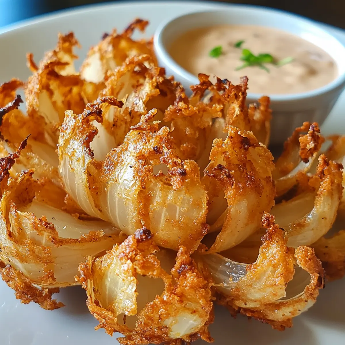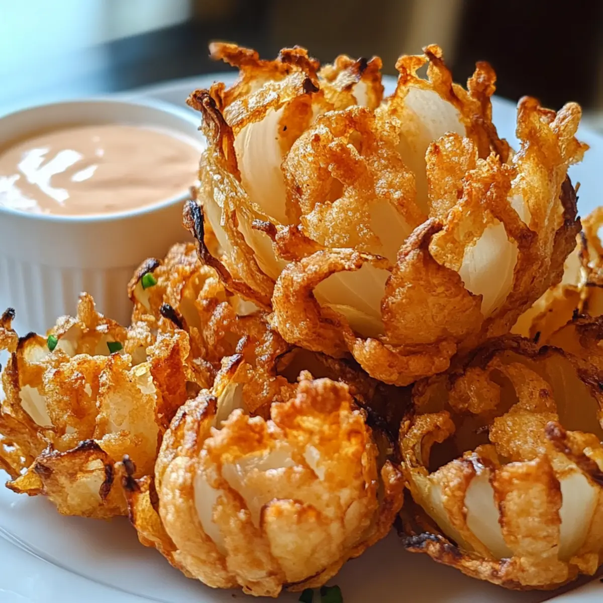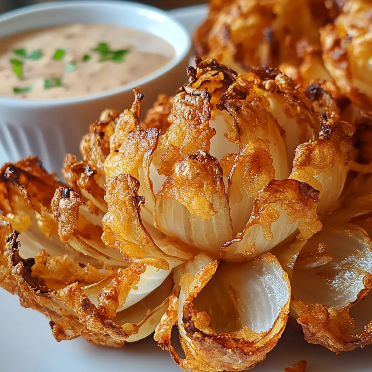 Hast du schon einmal den Anblick einer blühenden Zwiebel gesehen, der dir das Wasser im Munde zusammenlaufen lässt? Diese luftfrittierte blühende Zwiebel ist die perfekte Lösung, um deinen Snack-Horizont zu erweitern. Mit ihrem goldenen, knusprigen Äußeren und dem zarten Inneren bietet sie nicht nur ein recht beeindruckendes Essen für deine nächste Feier, sondern auch eine gesündere Variante, die mit weniger Öl auskommt. Ob als Vorspeise oder Party-Food – mit ihren würzigen Nuancen wird sie deine Gäste verzaubern und sicher für Gesprächsstoff sorgen. Bist du bereit, die Geheimnisse dieser köstlichen Zubereitung zu entdecken? Warum wirst du diese Rezept lieben? Einfachheit: Der Prozess ist unkompliziert und benötigt nur grundlegende Kochkenntnisse. Jeder kann diese köstliche Appetizer zaubern! Weniger Öl: Diese Variante der blühenden Zwiebel ist gesünder, da sie in der Luftfritteuse zubereitet wird und somit nur wenig Öl benötigt. Knusprige Textur: Das perfekte Zusammenspiel von knuspriger Kruste und zartem Inneren sorgt für ein unvergleichliches Geschmackserlebnis. Vielseitigkeit: Es gibt viele Möglichkeiten, das Rezept zu variieren! Probiere es mit unterschiedlichen Gewürzen oder Dips aus, um deine eigenen Geschmackskombinationen zu kreieren. Beliebtheit: Diese atemberaubende Vorspeise wird sicherlich Gespräche anregen und deine Gäste beeindrucken! Außerdem kannst du sie wunderbar mit einem frischen Salat oder verschiedenen Dips kombinieren.[Lass dich inspirieren von unseren Dips für die Appetizer-Party]. Luftfritteuse blühende Zwiebeln Zutaten • Entdecke die perfekten Zutaten für deine luftfrittierte blühende Zwiebel! Für die Zwiebeln Zwiebeln – Vier kleine süße Zwiebeln (wie Vidalia) sorgen für Struktur und Geschmack. Wähle feste Zwiebeln, damit sie beim Kochen ihre Form behalten. Eier – 2 große; dienen als Bindemittel für die Panade. Aquafaba kann als vegane Alternative verwendet werden. Buttermilch – 1 Tasse; sorgt für Feuchtigkeit und Geschmack in der Panade. Pflanzliche Milch mit Essig nachgemischt kann Buttermilch ersetzen. Für die Panade Allzweckmehl – 1 Tasse; bildet eine trockene Schicht, die das Ei und die Semmelbrösel haften lässt. Glutenfreies Mehl kann hier verwendet werden. Paprika – 1 Teelöffel; verleiht milde Schärfe und kräftige Farbe. Geräucherte Paprika kann für mehr Geschmack verwendet werden. Knoblauchpulver – 1 Teelöffel; trägt zur Umami-Note bei. Frischer gehackter Knoblauch kann genutzt werden, verändert jedoch die Textur. Salz – 1 Teelöffel; verstärkt den Gesamtschmack. Verwende koscheres oder Meersalz für die besten Ergebnisse. Schwarzer Pfeffer – ½ Teelöffel; sorgt für einen subtilen Kick. Weißer Pfeffer ist eine mildere Alternative. Semmelbrösel – 1 Tasse (Panko empfohlen); für extra Knusprigkeit. Kann auch durch zerdrückte Cornflakes für eine glutenfreie Option ersetzt werden. Zum Frittieren Kochspray – Für die Luftfritteuse; notwendig, um eine gleichmäßige, knusprige Schicht ohne übermäßiges Öl zu erzielen. Mit diesen Zutaten zauberst du ganz einfach eine köstliche luftfrittierte blühende Zwiebel! Schritt-für-Schritt-Anleitung für Luftfritteuse blühende Zwiebeln Step 1: Zwiebeln vorbereiten Schäle die süßen Zwiebeln und schneide ¼ Zoll von den Oberseiten ab, wobei die Wurzel intakt bleibt. Schneide vertikale Einschnitte rund um die Zwiebel in einem Abstand von 1 Zoll, ohne die Wurzel zu durchtrennen. Dies schafft die Basis für die blühende Zwiebel und sorgt dafür, dass sie beim Frittieren ihre Form behält. Step 2: Zwiebeln aufblühen Die Zwiebelblüten vorsichtig auseinanderdrücken, um den blühenden Effekt zu erzeugen. Achte darauf, die Zwiebelblätter nicht abzubrechen, während du sie sanft öffnest. Dieser Schritt ist entscheidend, um das charakteristische Aussehen der luftfrittierten blühenden Zwiebel zu erreichen und die würzige Füllung optimal zur Geltung zu bringen. Step 3: Panierstation einrichten Bereite drei Schalen für die Panade vor. In der ersten Schüssel mische das Allzweckmehl mit Paprika, Knoblauchpulver, Salz und Pfeffer. In der zweiten Schüssel schlagen die Eier und die Buttermilch gründlich auf. Die dritte Schüssel mit den Semmelbröseln vorbereiten, um eine knusprige Textur zu gewährleisten. Step 4: Zwiebeln panieren Nehme jede Zwiebel und wende sie zuerst in der Mehlmischung, dann tauche sie in die Ei-Buttermilch-Mischung und rolle sie schließlich in den Semmelbröseln. Drücke die Semmelbrösel sanft an, damit sie gut haften. Diese Schicht ist entscheidend für die knusprige Kruste der luftfrittierten blühenden Zwiebel. Step 5: Luftfrittieren Heize die Luftfritteuse auf 190°C (375°F) vor. Sprühe den Korb und die Oberseite der Zwiebel leicht mit Kochspray ein, um eine gleichmäßige Bräunung zu erzielen. Lege die Zwiebeln in den Korb und frittiere sie für 15-18 Minuten, bis sie goldbraun und knusprig sind. Achte darauf, regelmäßig nach dem Fortschritt zu sehen. Step 6: Servieren Arrangiere die luftfrittierten blühenden Zwiebeln auf einer schönen Servierplatte. Du kannst sie mit verschiedenen Dips servieren, um den Geschmack zu variieren. Diese beeindruckende Vorspeise ist perfekt für deine nächste Feier oder als köstlicher Snack zur Selbstgenuss! Variationen & Alternativen für Luftfritteuse blühende Zwiebeln Entfessele deine Kreativität in der Küche und entdecke, wie du diese köstliche Zubereitung ganz nach deinem Geschmack anpassen kannst. Glutenfrei: Verwende glutenfreies Mehl und Semmelbrösel, um die Panade anzupassen und trotzdem knusprigen Genuss zu erleben. Vegan: Ersetze die Eier durch Aquafaba und die Buttermilch durch pflanzliche Milch mit Essig. So bleibt diese Delikatesse auch vegan ! Rauchige Note: Tausche Paprika gegen geräucherte Paprika, um der Zwiebel einen tiefen und aromatischen Geschmack zu verleihen. Doppeleffekt: Verwende eine Kombination aus Zwiebeln und großen Champignons für