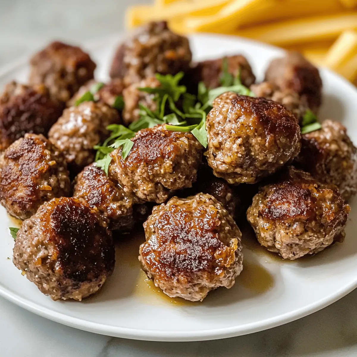 Ein köstlicher Duft schwebt durch meine Küche, als ich die Luftfritteuse Fleischbällchen zubereite – es ist, als würde ich in meine eigene kleine italienische Trattoria eintauchen. Diese Saftigen und zarten Fleischbällchen sind nicht nur blitzschnell zubereitet, sie bringen auch Abwechslung auf den Tisch. In gerade einmal 20 Minuten kreieren wir hier ein herzhaftes Gericht, das die gesamte Familie begeistert. Ob auf einem knusprigen Brötchen als Fleischbällchen-Sandwich, zu Pasta oder als Snack für zwischendurch – diese vielseitige Rezeptidee ist ideal für jeden Anlass. Und das Beste: Sie sind köstlich und bieten die Möglichkeit, flexibel mit verschiedenen Fleischsorten und Gewürzen zu experimentieren. Bereit, eine neue Lieblingsmahlzeit zu entdecken? Warum sind Luftfritteuse Fleischbällchen so beliebt? Einfachheit: Die Zubereitung ist kinderleicht und erfordert nur wenige Grundkenntnisse in der Küche. In nur 20 Minuten sind diese köstlichen Fleischbällchen bereit! Vielseitigkeit: Ob mit Rinder-, Puten- oder Hähnchenfleisch – die Variationen sind endlos! Experimentieren Sie mit verschiedenen Gewürzen und Kräutern, um Ihren eigenen Stil zu kreieren. Gesundheiten: Diese Fleischbällchen sind nicht nur lecker, sondern auch proteinreich und können glutenfrei zubereitet werden! Ersetzen Sie einfach die Paniermehl durch Parmesan oder Haferflocken für eine gesunde Option. Genuss pur: Außen knusprig und innen saftig – das perfekte Zusammenspiel von Texturen macht jedes Bissen zu einem Genuss. Genießen Sie sie als Sandwich, zu Pasta oder als Snack. Familienfreundlich: Egal ob Kinder oder Erwachsene, jeder wird von diesen würzigen Häppchen begeistert sein! Eine tolle Möglichkeit, um die ganze Familie am Esstisch zu vereinen. Luftfritteuse Fleischbällchen Zutaten Hinweis: Bereiten Sie sich auf ein köstliches Gericht vor, das schnell und einfach zuzubereiten ist! Für die Fleischbällchen • Gemischtes Hackfleisch – Eine Kombination aus Rind, Pute oder Hähnchen für verschiedene Geschmäcker. • Ei – Bindet die Zutaten und sorgt dafür, dass die Fleischbällchen zusammenhalten. • Semmelbrösel – Sorgt für eine angenehme Textur; für eine glutenfreie Option verwenden Sie Haferflocken oder Parmesan. • Zwiebel – Fügt Geschmack und Feuchtigkeit hinzu; frisch gehackt sorgt für optimale Verteilung. • Knoblauch – Bringt zusätzlichen Geschmack; frisch gehackt ist am besten. • Frische Petersilie – Verleiht Frische und Farbe; kann auch durch Basilikum ersetzt werden. • Salz – Intensiviert die Aromen; nach Geschmack anpassen. • Schwarzer Pfeffer – Fügt eine milde Schärfe hinzu; für mehr Kick können Sie Chiliflocken verwenden. Für das Servieren • Sandwichbrötchen – Ideal für leckere Fleischbällchen-Sandwiches. • Spaghetti – Eine klassische Kombination für ein herzhaftes Gericht. • Dipsaucen – Wie Marinara oder BBQ für einen köstlichen Snack. Schritt-für-Schritt-Anleitung für Luftfritteuse Fleischbällchen Schritt 1: Gemüse vorbereiten Zwiebel, Knoblauch und Petersilie in einem Küchenprozessor oder mit einem Messer fein hacken. Achten Sie darauf, dass alles gut zerkleinert ist, damit die Aromen gleichmäßig verteilt werden können. Dieser Schritt sorgt für eine geschmackvolle Basis in Ihren Luftfritteuse Fleischbällchen, die den gesamten Gericht einen frischen Kick verleiht. Schritt 2: Zutaten mischen In einer großen Schüssel das gemischte Hackfleisch, die gehackten Zutaten, Semmelbrösel, Ei, Salz und Pfeffer zusammengeben. Mischen Sie die Zutaten vorsichtig mit den Händen oder einem Löffel, bis sie gerade so kombiniert sind. Übermixen Sie die Mischung nicht, um zarte und saftige Fleischbällchen zu gewährleisten. Schritt 3: Fleischbällchen formen Nehmen Sie etwa eine esslöffelgroße Menge der Mischung und formen Sie sie zu gleichmäßigen Bällchen mit einem Durchmesser von etwa 2,5 cm. Stellen Sie sicher, dass sie nicht zu fest zusammengedrückt werden, damit die Luftfritteuse Fleischbällchen schön saftig bleiben. Legen Sie die geformten Bällchen auf einen Teller, während Sie den Rest der Mischung zubereiten. Schritt 4: Luftfrittieren Legen Sie die geformten Fleischbällchen in einer einzigen Schicht in den Korb der Luftfritteuse. Stellen Sie die Temperatur auf 200°C ein und lassen Sie sie für 10 Minuten garen. Wenden Sie die Fleischbällchen während des Garens nicht, damit sie außen knusprig und innen zart bleiben. Schritt 5: Gargrad überprüfen Nach 10 Minuten sollten Ihre Luftfritteuse Fleischbällchen eine schöne goldbraune Farbe haben. Verwenden Sie ein Fleischthermometer, um sicherzustellen, dass sie eine Innentemperatur von mindestens 74°C erreicht haben. Falls notwendig, fügen Sie 2 Minuten zusätzliche Garzeit hinzu, bis sie den gewünschten Gargrad erreichen. Schritt 6: Servieren und genießen Sobald Ihre Fleischbällchen fertig sind, nehmen Sie diese aus der Fritteuse und lassen Sie sie kurz ruhen. Servieren Sie sie auf frischen Sandwichbrötchen für ein köstliches Fleischbällchen-Sandwich, mit Spaghetti und einer Dipsauce wie Marinara oder einfach als Snack. Genießen Sie die saftigen Luftfritteuse Fleischbällchen mit der ganzen Familie! Tipps für die besten Luftfritteuse Fleischbällchen Fleischwahl: Wählen Sie hochwertiges Hackfleisch, um den besten Geschmack zu erzielen. Eine Mischung aus Rind- und Putenfleisch sorgt für eine wunderbare Textur und Geschmackstiefe. Nicht Übermixen: Achten Sie darauf, die Fleischmischung nicht zu übermixen, um zarte und saftige Luftfritteuse Fleischbällchen zu erhalten. Übermäßiges Mischen kann die Textur beeinträchtigen. Die richtige Größe: Formen Sie die Fleischbällchen gleichmäßig, etwa 2,5 cm im Durchmesser, damit sie gleichmäßig garen. Zu große Bällchen benötigen länger und könnten außen anbrennen. In einer Schicht kochen: Gar die Fleischbällchen in einer einzigen Schicht in der Luftfritteuse, um eine gleichmä