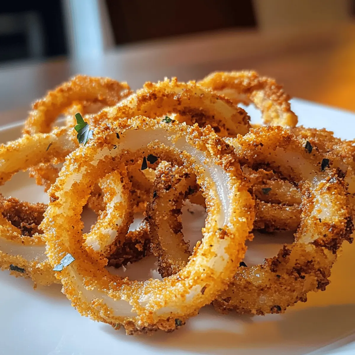 Während ich kürzlich in meiner Küche stand, bemerkte ich, wie mein Appetit auf einen knusprigen Snack immer größer wurde. Und dann kam mir die geniale Idee: Luftfritteuse Zwiebelringe! Diese Crispy Air Fryer Onion Rings sind nicht nur ein absolutes Highlight, sondern auch eine gesunde Alternative zu traditionellen frittierten Snacks. In weniger als 30 Minuten zaubern sie einen köstlichen, knusprigen Snack hervor, der perfekt für einen Filmabend oder als Beilage zu deinen Lieblingsgerichten geeignet ist. Darüber hinaus sind sie eine großartige vegetarische Option und können ganz einfach glutenfrei zubereitet werden. Seid ihr bereit, eure Snack-Spiel zu revolutionieren? Lasst uns gemeinsam diesen köstlichen Genuss entdecken! Warum sind Luftfritteuse Zwiebelringe so beliebt? Knusprige Perfektion: Diese Zwiebelringe bieten den perfekten Crunch, den jeder Liebhaber von Snacks sucht. Gesunde Alternative: Dank der Luftfritteuse sind sie deutlich fettärmer als die klassischen Varianten. Einfache Zubereitung: In weniger als 30 Minuten sind sie fertig, ideal für spontane Snackattacken. Vielseitig: Ob als Beilage zu Burgern oder einfach mit einem Dip – sie passen überall! Glutenfreie Option: Mit einer einfachen Anpassung kannst du sie auch glutenfrei zubereiten, ohne auf den Geschmack zu verzichten. Wenn du nach weiteren leckeren Rezepten suchst, wie zum Beispiel Kaesespaetzle Aus Der oder Zitronenkuchen Mit Puderzucker, schau dir unbedingt die Vielzahl an Möglichkeiten an! Luftfritteuse Zwiebelringe Zutaten • Hier sind die leckeren Zutaten, die du brauchst! Für den Teig Zwiebeln – Die Basiszutat, die den Geschmack und die Fülle bietet; verwende mittelgroße bis große Zwiebeln für ideale Ringe. Allzweckmehl – Umhüllt die Zwiebelringe und sorgt für Struktur; für eine glutenfreie Version einfach glutenfreies Mehl verwenden. Paprika – Fügt einen herzhaften Geschmack und eine schöne Farbe hinzu; optional kannst du mit Cayennepfeffer für mehr Würze experimentieren. Salz & Pfeffer – Verbessert den Gesamtsgeschmack der Zwiebelringe; passen Sie nach persönlichem Geschmack an. Eier – Dienen als Bindemittel, damit die Panade haftet; vegan? Nutze stattdessen Leinsamen-Eier. Für die Panade Breadcrumbs – Erzeugt die knusprige Beschichtung; verwende Panko-Breadcrumbs für zusätzlichen Crunch. Spray (Öl) – Ein leichter Sprühnebelsorgt für eine goldene Bräunung und hält sie gesünder. Diese Luftfritteuse Zwiebelringe sind die perfekte Kombination aus Genuss und Gesundheit – bereit, deinen Snack-Horizont zu erweitern! Schritt-für-Schritt-Anleitung für Luftfritteuse Zwiebelringe Step 1: Vorheizen der Luftfritteuse Heize die Luftfritteuse auf 200°C (392°F) vor, damit die Zwiebelringe gleichmäßig und knusprig werden. Stelle sicher, dass die Fritteuse in der Mitte des Kochbereichs steht, um eine optimale Luftzirkulation zu gewährleisten. Diese präventive Maßnahme sorgt dafür, dass die Ringe beim Frittieren schön goldbraun werden. Step 2: Zubereitung der Mehlmischung In einer großen Schüssel vermenge das Allzweckmehl, Paprika, Salz und Pfeffer gründlich. Diese Mischung bildet die erste Schicht für deine Luftfritteuse Zwiebelringe und gibt ihnen zusätzlichen Geschmack. Achte darauf, dass alle Zutaten gut kombiniert sind, damit jede Zwiebelring gleichmäßig gewürzt wird. Step 3: Zwiebelringe mit Mehl bestäuben Nimm die Zwiebelringe und tauche sie in die Mehlmischung. Achte darauf, dass jeder Ring gleichmäßig mit dem Mehl überzogen wird. Schüttle eventuell überschüssiges Mehl ab, damit die Ringe nicht klumpig werden. Diese erste Schicht bietet eine perfekte Grundlage für die weiteren Schichten. Step 4: Mit Ei binden Tauche die bemehlten Zwiebelringe nun in die geschlagenen Eier. Diese Eier dienen als Bindemittel, sodass die Panade an den Ringen haftet. Achte darauf, dass jede Zwiebelring gut mit Ei überzogen ist, damit die Panade gleichmäßig haften bleibt und beim Frittieren perfekt knusprig wird. Step 5: Panieren der Zwiebelringe Rolle die Zwiebelringe in den Semmelbröseln, bis sie komplett von einer gleichmäßigen Schicht umgeben sind. Drücke leicht, um sicherzustellen, dass die Brösel gut haften. Wenn du Panko-Brösel verwendest, erhältst du einen besonders knusprigen Effekt, der deinen Luftfritteuse Zwiebelringen eine unwiderstehliche Textur verleiht. Step 6: Zwiebelringe in die Fritteuse geben Lege die panieren Zwiebelringe vorsichtig in den Frittierkorb der Luftfritteuse. Achte darauf, dass sie nicht übereinander liegen, damit die heiße Luft zirkulieren kann. Dies ist entscheidend, um sicherzustellen, dass sie gleichmäßig garen und knusprig werden. Step 7: Frittieren der Zwiebelringe Spray leicht die Zwiebelringe mit Öl ein, um eine schöne Bräunung zu erzielen. Frittiere sie für 10–12 Minuten bei 200°C. Überprüfe die Ringe nach der Hälfte der Zeit und schüttle den Korb leicht, damit sie gleichmäßig braun werden. Sie sind fertig, wenn sie goldbraun und knusprig aussehen. Step 8: Servieren und Genießen Nimm die Luftfritteuse Zwiebelringe aus der Fritteuse und lasse sie kurz abkühlen. Serviere sie warm mit deinen Lieblings-Dips, wie z.B. hausgemachtem Ranch-Dressing oder einer würzigen Knoblauchsoße. Diese knusprigen Ringe sind eine großartige Ergänzung zu jedem Gericht oder einfach als köstlicher Snack! Meal Prep für Luftfritteuse Zwiebelringe Diese Luftfritteuse Zwiebelringe sind ideal für die Vorbereitung im Voraus, sodass du beim Snackgenuss Zeit sparen kannst! Du kannst die Zwiebelringe bis 24 Stunden vor dem Frittieren panieren und in einem luftdichten Behälter im Kühlschrank aufbewahren. Achte darauf, dass sie nicht übereinander liegen, um ein Ankleben zu verhindern und die Knusprigkeit zu bewahren. Wenn du bereit bist, sie zu genießen, sprühe die Ringe leicht mit Öl ein und frittiere sie bei 200°C für 10-12 Minuten, bis sie goldbraun und knusprig sind. Diese einfache Vorbereitungsart ermögli
