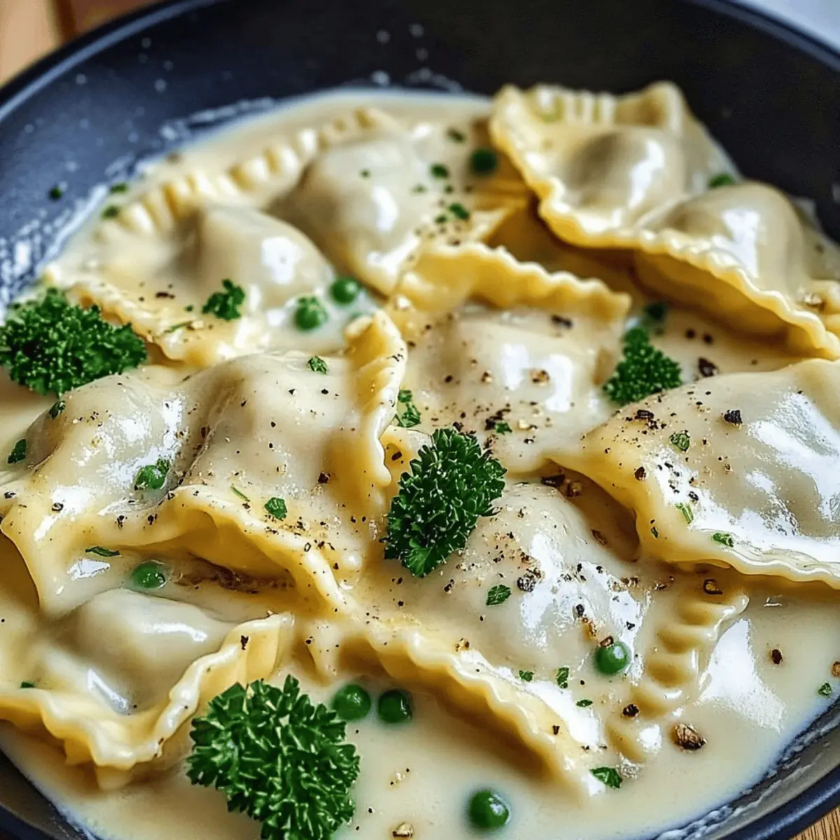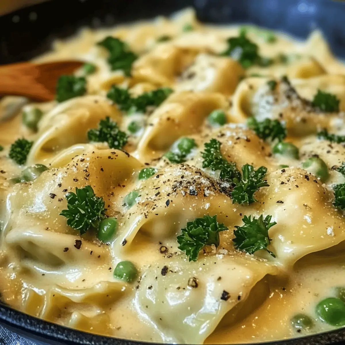 Das Aroma von frisch gebratener Zwiebel und geschmolzenem Käse kann selbst die trübsten Morgen aufhellen. Ich habe kürzlich das traditionelle Rezept für Maultaschen in Käse-Sahne-Soße entdeckt, und es hat sich als mein neues Frühstücks-Lieblingsgericht entpuppt! Diese köstliche Kombination aus zarter Pasta und einer samtigen Käsesauce ist nicht nur blitzschnell zubereitet, sondern bringt auch den Komfort eines herzhaften Frühstücks auf den Tisch, das den Tag gleich viel besser beginnen lässt. Perfekt für alle, die die Eile des Alltags hinter sich lassen und sich etwas Zeit für sich selbst nehmen möchten. Neugierig, wie man dieses leckere Gericht ganz einfach selbst zaubert? Lass uns gleich loslegen! Warum solltest du Maultaschen probieren? Köstlicher Genuss: Maultaschen in Käse-Sahne-Soße vereint zarte Pasta mit einer cremigen Käsesauce, die einfach unwiderstehlich ist. Einfachheit: Die Zubereitung erfordert nur grundlegende Kochkenntnisse und wenig Zeit – ideal für einen schnellen Genuss. Vielseitigkeit: Füge gerne saisonales Gemüse oder unterschiedliche Käsesorten hinzu, um das Gericht nach deinem Geschmack zu verändern. Nahrhaft und sättigend: Perfekt als herzhaftes Frühstück oder sättigendes Mittagessen, das dich lange zufriedenstellt. Traditionelles Flair: Erlebe ein Stück schwäbischer Küche, das nicht nur den Gaumen, sondern auch das Herz erwärmt. Entdecke noch mehr Rezepte für delectable pasta dishes, die im Handumdrehen zubereitet sind! Maultaschen in Käse-Sahne-Soße Zutaten Für die Maultaschen und Sauce • Maultaschen – traditionelle deutsche Pasta, die als Grundlage für dieses köstliche Gericht dient. Verwende frische oder vorgegarte Versionen für mehr Bequemlichkeit. • Sahne (Creme) – sorgt für die Reichhaltigkeit und Cremigkeit der Sauce. Du kannst auch eine leichtere Creme oder eine pflanzliche Alternative verwenden, wenn gewünscht. • Geriebener Käse (Emmental oder Gouda) – verleiht der Sauce Geschmack und die cremige Textur; experimentiere gerne mit anderen halbharten Käsesorten. • Zwiebel – verstärkt die Geschmacksbasis der Sauce. Süße Zwiebeln eignen sich hervorragend. • Butter – dient zum Anbraten der Zwiebeln; kann für eine leichtere Variante durch Olivenöl ersetzt werden. • Salz und Pfeffer – unverzichtbar zur Geschmacksabrundung. • Muskatnuss – (optional) für eine tiefere Geschmacksnuance; frisch geriebene Muskatnuss ist bevorzugt. • Petersilie – zur Garnitur, fügt Frische und Farbe zum Gericht hinzu. Entdecke das Geheimnis hinter dem köstlichen Geschmack von Maultaschen in Käse-Sahne-Soße und bereite dir ein Frühstück zu, das einfach glücklich macht! Schritt-für-Schritt-Anleitung für Maultaschen in Käse-Sahne-Soße Step 1: Maultaschen kochen Bringe einen großen Topf mit gesalzenem Wasser zum Kochen und koche die Maultaschen gemäß den Anweisungen auf der Verpackung für etwa 5-7 Minuten, bis sie weich und gar sind. Achte darauf, dass sie an die Oberfläche steigen, was anzeigt, dass sie fertig sind. Gieße die Maultaschen in ein Sieb ab und lasse sie kurz abtropfen. Step 2: Zwiebeln anbraten Erhitze in einer großen Pfanne bei mittlerer Hitze 2 Esslöffel Butter. Füge die fein gehackte Zwiebel hinzu und brate sie unter gelegentlichem Rühren für etwa 3-4 Minuten, bis sie glasig und leicht goldbraun ist. Dies verleiht der Sauce eine aromatische Grundlage für die Maultaschen in Käse-Sahne-Soße. Step 3: Sahne hinzufügen Gib die Sahne in die Pfanne zu den Zwiebeln, und rühre gut um, bis sie sich vollständig verbindet. Erhöhe die Hitze leicht und lasse die Mischung für etwa 2-3 Minuten köcheln, bis sie beginnt leicht zu blubbern. Achte darauf, dass die Sahne nicht kocht, sondern nur warm wird. Step 4: Käse einrühren Reduziere die Hitze auf niedrig und füge langsam den geriebenen Käse hinzu. Rühre die Mischung ständig um, bis der Käse vollständig geschmolzen ist und eine cremige Konsistenz erreicht ist. Dies dauert etwa 3-5 Minuten. Achte auf eine glatte und gleichmäßige Sauce, die zu deiner Käse-Sahne-Soße wird. Step 5: Würzen Füge eine Prise Salz, frisch gemahlenen Pfeffer und optional etwas frisch geriebene Muskatnuss zur Sauce hinzu. Rühre alles gut um und schmecke die Sauce ab. Bei Bedarf kannst du die Gewürze anpassen, um das volle Aroma in den Maultaschen in Käse-Sahne-Soße zu entfalten. Step 6: Maultaschen unterheben Gib die gekochten Maultaschen direkt in die Pfanne mit der Käsesauce. Mische sie behutsam, bis sie gleichmäßig von der Sauce ummantelt sind. Lasse sie für etwa 1-2 Minuten in der warmen Sauce ziehen, damit sie den leckeren Geschmack aufnehmen können, und achte darauf, sie nicht zu zerbrechen. Step 7: Servieren Verteile die Maultaschen in Käse-Sahne-Soße auf vorgewärmte Teller. Wenn gewünscht, garniere das Gericht mit frisch gehackter Petersilie für eine farbenfrohe Präsentation. Sofort servieren und die cremige Köstlichkeit genießen, während sie noch heiß ist! Maultaschen in Käse-Sahne-Soße für die schnelle Vorbereitung Maultaschen in Käse-Sahne-Soße sind ideal für die Meal-Prep-Planung! Du kannst die Maultaschen schon bis zu 3 Tage im Voraus kochen und im Kühlschrank aufbewahren, sodass du nur noch die Sauce zubereiten musst. Auch die Zwiebeln können vorab angebraten und in einem luftdichten Behälter gelagert werden, um die Aromen zu bewahren. Um die Qualität der Sauce zu erhalten, ist es wichtig, sie kurz vor dem Servieren zuzubereiten; einfach die angebratenen Zwiebeln mit der Sahne und dem Käse schmelzen lassen, dann die bereits gekochten Maultaschen untermischen und für 1-2 Minuten in der Sauce ziehen lassen. So genießt du beim Aufwärmen einen ebenso köstlichen Geschmack wie frisch zubereitet! Praktische Tipps für Maultaschen in Käse-Sahne-Soße Zwiebel richtig anbraten: Achte darauf, die Zwiebeln nur sanft zu braten, um ein Anbrennen zu vermeiden, da dies der Sauce einen bitteren Geschmack ver