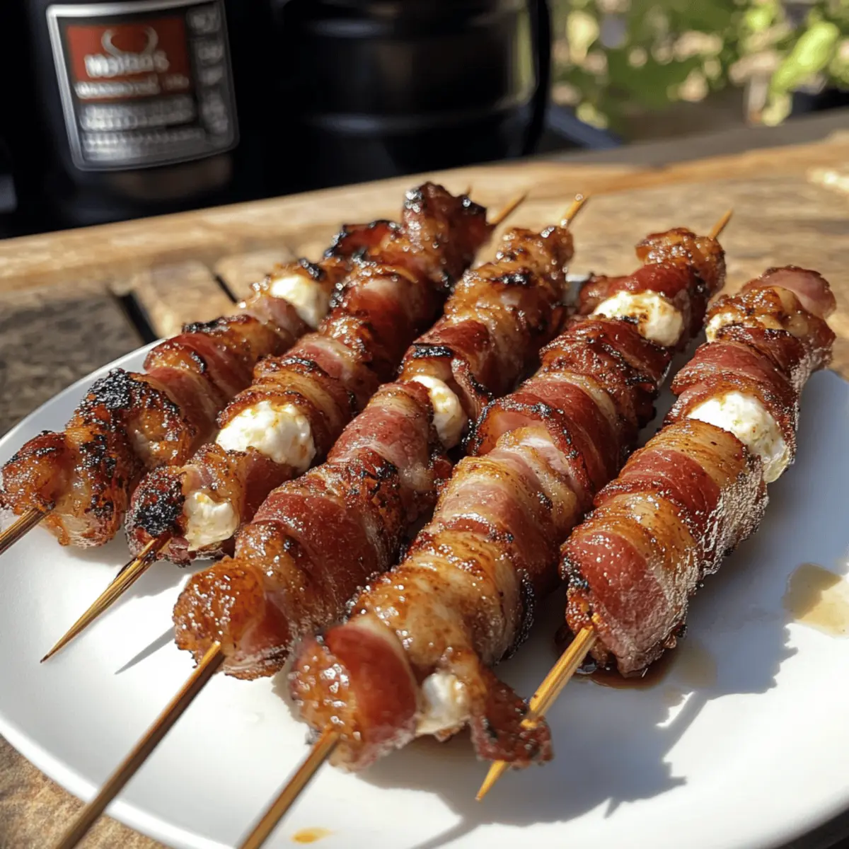 Vor kurzem habe ich beim Grillen eine aufregende Entdeckung gemacht: Mini Speckbomben-Sticks! Diese köstlichen Häppchen vereinen den rauchigen Geschmack von knusprigem Bacon mit saftigem Rinderhack und schmelzendem Mozzarella. Perfekt als Fingerfood für Partys oder einfach nur zum Schlemmen bei einem gemütlichen Abendessen, sind sie ebenso schnell zubereitet wie sie schmecken. Mit ein paar einfachen Zutaten und der Ninja Woodfire Grill wird das Grillen zum Kinderspiel. Diese Speckbomben sind nicht nur ein echter Hingucker, sondern auch ein echter Crowd-Pleaser – genau das, was man braucht, um ein bisschen mehr Freude in den Alltag zu bringen. Wer kann da schon widerstehen? Bereit, deine Grillkünste auf das nächste Level zu heben? Warum du Mini Speckbomben-Sticks lieben wirst? Einfachheit: Die Zubereitung dieser Mini Speckbomben-Sticks erfordert nur ein paar grundlegende Kochfähigkeiten, perfekt für jeden Grillanfänger. Köstlicher Geschmack: Die Kombination aus würzigem Rinderhack, geschmolzenem Mozzarella und dem knusprigen Bacon macht jeden Bissen zu einem Geschmackserlebnis. Vielseitigkeit: Diese Sticks sind nicht nur für Partys geeignet, sie passen auch hervorragend zu einem gemütlichen Abendessen oder als Snack. Schnelle Zubereitung: Dank des Ninja Woodfire Grills sind sie in kürzester Zeit fertig, was sie zu einer perfekten Wahl für spontane Grillabende macht. Geselligkeit: Ideal zum Teilen – deine Gäste werden begeistert sein, und du wirst immer nach dem Rezept gefragt! Mini Speckbomben-Stick Zutaten Hinweis: Um die köstlichen Mini Speckbomben-Sticks perfekt zuzubereiten, brauchst du nur einige einfache Zutaten. Für die Füllung • Gehacktes vom Rind – sorgt für den herzhaften Geschmack und die nötige Proteinfülle; du kannst stattdessen auch gemahlenes Hähnchen oder Pute verwenden. • BBQ-Rub (z.B. Cape Herb & Spice Argentinian Style Rub) – fügt Tiefe und Würze hinzu; wähle deinen bevorzugten BBQ-Rub für persönliche Note. • Mini-Mozzarella (10-20 Stück) – bringt eine cremige Füllung; tausche sie gegen gut schmelzenden Käse wie Cheddar oder Gouda aus. Für das Bacon-Wrap • Bacon (20 Streifen) – bietet den perfekten Crunch und den rauchigen Geschmack; alternative: Putenbacon für eine leichtere Variante. Für das Topping • Selbst geröstete Zwiebeln – verstärken die Süße und Struktur; frische Zwiebeln sind auch brauchbar, aber geröstete bringen den besten Geschmack. • Barbecue Sauce (z.B. Old Texas Chipotle) – zum Glasieren; eine hausgemachte oder deine Lieblingssauce verleiht dem Gericht zusätzlichen Pfeffer. Schritt-für-Schritt-Anleitung für Mini Speckbomben-Sticks Step 1: Grill vorheizen Heize den Ninja Woodfire Grill auf die Grill-Einstellung vor. Stelle sicher, dass die Temperatur hoch genug ist, um einen guten Sear zu erzielen. Dies dauert in der Regel etwa 10 bis 15 Minuten. Die richtigen Grillsignale sind ein gleichmäßiger, heißer Grillrost, der bereit ist, die Mini Speckbomben-Sticks perfekt zu garen. Step 2: Rinderhack vorbereiten Würze das gehackte Rindfleisch großzügig mit einem BBQ-Rub, um ihm Geschmack zu verleihen. Mische alle Zutaten gut durch, damit die Gewürze gleichmäßig verteilt sind. Stelle sicher, dass das Fleisch gleichmäßig gewürzt ist, damit jeder Bissen der Mini Speckbomben-Sticks ein Geschmackserlebnis wird. Step 3: Mini Speckbomben-Sticks formen Forme aus der würzigen Fleischmasse 10 bis 14 gleichmäßige Sticks, die gut auf die Holzspieße passen. Achte darauf, dass sie nicht zu dick sind, damit sie gleichmäßig garen können. Die Form sollte etwa die Größe eines kleinen Würstchens haben, um eine perfekte Konsistenz zu erreichen. Step 4: Mozzarella einfüllen Mache mit deinem Daumen einen Schlitz in jede Fleischstick und füge 1-2 Mini-Mozzarella-Bällchen hinein. Schließe das Fleisch wieder um den Käse, sodass er gut umschlossen ist. Dies sorgt für eine schmelzende, cremige Füllung in der Mitte deiner Mini Speckbomben-Sticks. Step 5: Bacon umwickeln Wickle jede vorbereitet Fleischstick mit 2 Streifen Bacon, um eine knusprige Umhüllung zu schaffen. Achte darauf, das Bacon gleichmäßig zu verteilen, damit es beim Grillen schön knusprig wird. Der rauchige Geschmack des Bacons wird eine köstliche Ergänzung zu den Mini Speckbomben-Sticks sein. Step 6: Holzspieße einsetzen Stecke durch jede umwickelte Speckbombe einen Holzspieß, um Stabilität zu gewährleisten. Stelle sicher, dass der Spieß gut durch das Fleisch geht, damit die Mini Speckbomben-Sticks beim Grillen nicht auseinanderfallen. Dies erleichtert auch das Wenden während des Grillens. Step 7: Grillen Grille die Mini Speckbomben-Sticks mit geschlossener Deckel für etwa 15-20 Minuten. Drehe sie gelegentlich, bis der Bacon goldbraun und knusprig ist. Achte darauf, dass die Innentemperatur des Fleisches 70°C erreicht, um sicherzustellen, dass sie gut durchgegart sind. Step 8: BBQ Sauce auftragen In den letzten 5 Minuten des Grillens bürste die Mini Speckbomben-Sticks großzügig mit BBQ-Sauce. Dies verleiht ihnen nicht nur zusätzlichen Geschmack, sondern sorgt auch für eine schöne Glasur. Der süß-rauchige Glanz wird die Vorfreude auf das Verkosten steigern. Step 9: Mit Zwiebeln garnieren Kurz vor dem Servieren kannst du die Mini Speckbomben-Sticks mit selbst gerösteten Zwiebeln bestreuen. Diese verleihen dem Gericht eine köstliche Süße und zusätzlichen Crunch. Serviere die Sticks warm, damit der geschmolzene Käse und der knusprige Bacon die perfekte Kombination aus Texturen bieten. Tipps für die Zubereitung von Mini Speckbomben-Sticks im Voraus Die Mini Speckbomben-Sticks sind perfekt für die Vorbereitung im Voraus, sodass du Zeit an einem geschäftigen Abend sparst! Du kannst die belegten und gewickelten Sticks bis zu 24 Stunden im Voraus im Kühlschrank lagern, wodurch ihre Frische und der Geschmack bewahrt werden. Achte darauf, sie in einem luftdichten Behälter aufzubewahren, um das Austrocknen