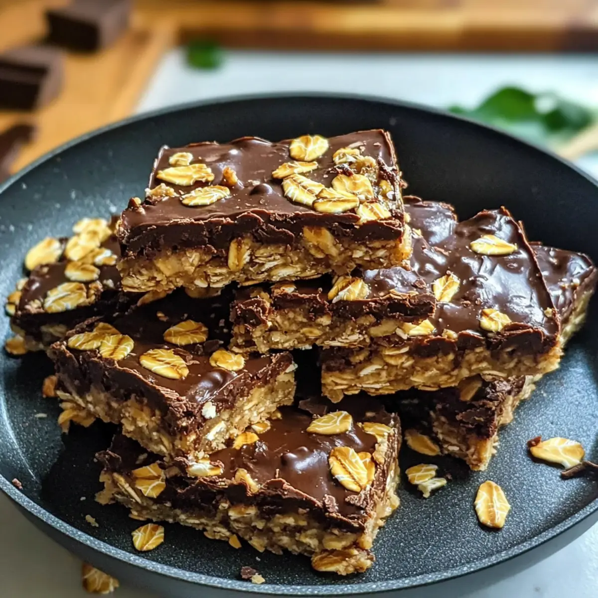 Hast du dich jemals gefragt, wie du mit wenigen Zutaten eine gesunde Leckerei zaubern kannst? Diese No-Bake Chocolate Oat Bars sind nicht nur unglaublich einfach zuzubereiten, sie sind auch perfekt für alle, die auf der Suche nach einem schokoladigen Snack sind, ohne dabei den Ofen vorheizen zu müssen. Mit dem nussigen Geschmack von Erdnussbutter und einer süßen Note von Ahornsirup bieten diese glutenfreien und veganen Riegel eine köstliche Kombination aus Genuss und Nährstoffen. Das Beste daran? Sie sind super vielseitig und eignen sich hervorragend für unterwegs oder als energiespendender Snack vor dem Workout. Neugierig, wie man sie zubereitet? Lass uns direkt ins Rezept eintauchen! Warum sind diese Riegel so besonders? Einfachheit: Die Zubereitung dieser No-Bake Chocolate Oat Bars ist denkbar einfach und erfordert nur grundlegende Kochkenntnisse. Vielseitigkeit: Du kannst die Zutaten anpassen, wie z.B. verschiedene Nussbutter oder Süßstoffe verwenden, um sie deinem Geschmack anzupassen. Gesundheitlich: Diese Riegel sind nicht nur glutenfrei und vegan, sondern auch reich an Ballaststoffen und gesunden Fetten, was sie zu einer nahrhaften Wahl macht. Schnell und Praktisch: In nur wenigen Schritten und ohne Backen hast du einen köstlichen Snack, der sich perfekt für unterwegs eignet. Ideale Portionen: Sie lassen sich leicht schneiden und portionieren, perfekt für den Snackbedarf während der Woche. Du könntest sie sogar mit etwas frischem Obst servieren oder als köstlichen Topping für Joghurt nutzen – vielleicht ein wenig Pfifferlinge Mit Spinat dazu? Genieße dieses gesunde Frühstücksvergnügen und entdecke, wie einfach es ist, lecker und nahrhaft zu kochen! No-Bake Chocolate Oat Bars Zutaten Für die Basis: Rolled Oats – Der ideale Grundbaustein, der für die perfekte Textur sorgt. Du kannst auch Schnelle Haferflocken verwenden, wenn du eine feinere Konsistenz möchtest. Natürliche Erdnussbutter (oder Mandelbutter) – Sie sorgt für Cremigkeit und bindet die Riegel. Erdnussbutter kann durch eine nussfreie Option wie Sonnenblumenbutter ersetzt werden. Ahornsirup (oder Agavensirup) – Für die Süße und Feuchtigkeit. Honig eignet sich gut für eine nicht-vegane Variante. Für den Schokoladengeschmack: Kakaopulver – Liefert den reichhaltigen Schokoladengeschmack. Du kannst auch niederländisches Kakaopulver verwenden, wenn du einen milderen Geschmack bevorzugst. Vanilleextrakt – Verleiht dem Ganzen eine besondere Note. Optional, aber sehr empfehlenswert für das Aroma. Salz – Balanciert die Süße und intensiviert den Geschmack. Verwende Meersalz für einen zusätzlichen Geschmackskick. Entdecke mit diesem Rezept die köstlichen No-Bake Chocolate Oat Bars, die nicht nur einfach zuzubereiten sind, sondern auch vielseitig und ideal für einen gesunden Snack zwischendurch! Schritt-für-Schritt-Anleitung für No-Bake Chocolate Oat Bars Step 1: Trockene Zutaten vermengen In einer großen Rührschüssel die Haferflocken und das Kakaopulver gründlich vermengen. Achte darauf, dass keine Klumpen entstehen und die Mischung gleichmäßig ist. Diese trockenen Zutaten bilden die Basis deiner No-Bake Chocolate Oat Bars und sollten gut miteinander verbunden sein, um den besten Geschmack und die beste Textur zu erzielen. Step 2: Nasse Zutaten vorbereiten In einer separaten Schüssel die natürliche Erdnussbutter, den Ahornsirup und den Vanilleextrakt glatt verrühren. Verwende einen Schneebesen oder einen Handmixer, um eine cremige Konsistenz zu erreichen. Diese feuchten Zutaten sorgen dafür, dass die Riegel zusammenhalten und ihnen eine köstliche Süße verleihen, die perfekt zu den Haferflocken passt. Step 3: Nasse und trockene Zutaten kombinieren Gieße die nasse Mischung über die trockenen Zutaten und rühre alles gründlich um, bis alle Haferflocken gleichmäßig mit der Schokoladen-Mischung überzogen sind. Diese Kombination sorgt dafür, dass die No-Bake Chocolate Oat Bars eine köstliche, reichhaltige Textur erhalten. Es sollte eine klebende Masse entstehen, die sich leicht formen lässt. Step 4: Mischung in die Form drücken Lege eine Backform mit Backpapier aus und drücke die Mischung gleichmäßig und fest in die Form. Achte darauf, dass die Masse gut gepackt ist, um ein Zerbröckeln der Riegel zu vermeiden. Besonders wichtig ist es, die Mischung gut zu komprimieren, damit die No-Bake Chocolate Oat Bars beim Schneiden stabil bleiben und ihre Form behalten. Step 5: Kühlen und schneiden Stelle die gefüllte Backform für mindestens 1 Stunde in den Kühlschrank, damit die Riegel fest werden können. Nach dem Kühlen die Riegel in gleichmäßige Stücke schneiden. Die optimale Kühlzeit sorgt dafür, dass die Riegel schön fest sind und beim Schneiden keine Krümel fallen. So erhältst du saubere Kanten und eine perfekte Snack-Portion. Step 6: Servieren und genießen Die No-Bake Chocolate Oat Bars können direkt aus dem Kühlschrank serviert werden. Diese Riegel eignen sich hervorragend als gesunder Snack oder als Energiequelle vor dem Training. Du kannst sie auch in einem luftdichten Behälter im Kühlschrank aufbewahren, um sie mehrere Tage frisch und lecker zu halten. Tipps für die besten No-Bake Chocolate Oat Bars Kompakte Mischung: Achte darauf, die Mischung fest in die Backform zu drücken, um ein Zerbröckeln der Riegel zu vermeiden. Feuchte Anpassung: Falls die Mischung zu trocken ist, gib einen Schuss Pflanzenmilch hinzu, um die Bindung zu verbessern. Crunchy Extra: Für mehr Biss kannst du Nüsse oder Samen vor dem Andrücken in die Mischung einarbeiten. Kühlzeit beachten: Lass die Riegel genügend Zeit im Kühlschrank fest zu werden, um saubere Schnittkanten zu erzielen. Variationen genießen: Experimentiere mit verschiedenen Nussbuttersorten oder Süßungsmitteln, um deine perfekten No-Bake Chocolate Oat Bars zu kreieren. Was passt zu No-Bake Chocolate Oat Bars? Diese köstlichen Riegel sind nicht nur ein Snack für zwischendurch, sondern laden zu