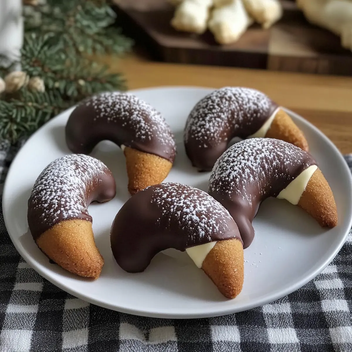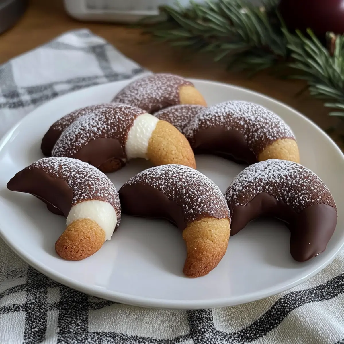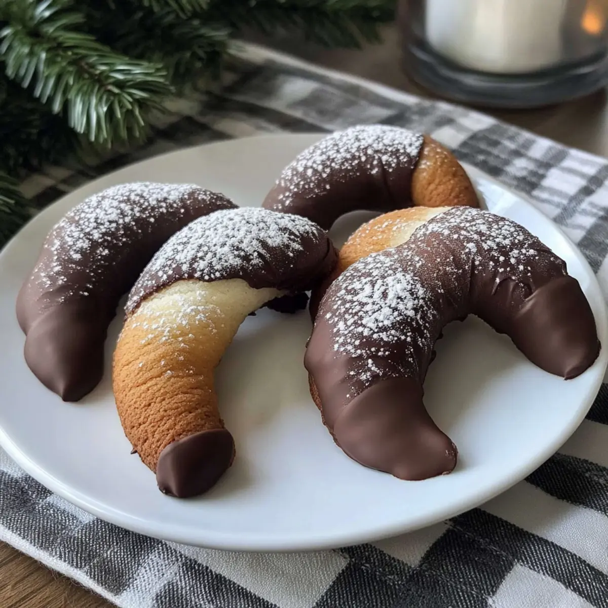 Während ich in meiner Küche stand und den verführerischen Duft von frisch gebackenem Gebäck einatmete, wusste ich sofort, dass es Zeit für etwas ganz Besonderes war: Nougat-Kipferl. Diese zauberhaften, crescent-förmigen Köstlichkeiten sind nicht nur unglaublich lecker, sondern auch einfach zuzubereiten – perfekt für die ganze Familie! Die Kombination aus zartem Teig und geschmolzener Nougatschokolade macht sie zu einem idealen Snack für jeden Anlass, sei es ein festliches Buffet oder eine genussvolle Nachmittagspause. Und dass wir sogar glutenfreie Alternativen im Petto haben, macht das Rezept noch verlockender! Neugierig, wie ihr sie in eurer eigenen Küche zaubern könnt? Lasst uns gemeinsam in dieses schokoladige Abenteuer eintauchen! Warum sind Nougat-Kipferl so unwiderstehlich? Einfachheit: Die Zubereitung dieser Köstlichkeiten ist kinderleicht und benötigt nur wenige Zutaten, was sie perfekt für alle Bäcker macht! Vielseitigkeit: Egal ob für festliche Anlässe oder einfach als Snack zwischendurch, diese Nougat-Kipferl passen zu jeder Gelegenheit und sind ein Hit bei Groß und Klein. Gesundheitsbewusst: Mit Optionen wie glutenfreien Varianten und Dinkelmehl könnt ihr diese Leckerei an eure Ernährungsbedürfnisse anpassen. Aromatische Verführung: Der köstliche, schokoladige Überzug und der zarte Teig verschmelzen zu einem geschmacklichen Erlebnis, das Freunde und Familie begeistern wird. Schnell zubereitet: In nur 30 Minuten könnt ihr diese süßen Plätzchen backen und eure Liebsten mit frisch gebackenem Gebäck verwöhnen! Schaut euch auch unsere anderen schnellen Rezepte an, die ihr in kürzester Zeit genießen könnt! Nougat-Kipferl Zutaten Hinweis: Hier sind die benötigten Zutaten für die köstlichen Nougat-Kipferl, die sich leicht anpassen lassen! Für den Teig Weizenmehl (Wheat Flour) – sorgt für die Struktur des Teigs; ersetze es mit glutenfreiem Mehl oder Dinkelmehl für eine gesunde Variante. Zucker (Sugar) – fügt die süße Note hinzu; kann reduziert werden, um den Zuckergehalt zu verringern. Margarine (weich) (Soft Margarine) – sorgt für zarte Kekse; ersetze sie durch Butter für mehr Geschmack oder wähle eine vegane Option. Backpulver (Baking Powder) – lässt die Kekse schön soft werden; für knusprigere Kekse kann es weggelassen werden. Nougatschokolade (Nougat Chocolate) – ist der Hauptgeschmacksträger; verwende dunkle Schokolade für einen intensiveren Geschmack. Kakaopulver (Cocoa Powder) – verleiht Tiefe und Reichhaltigkeit; Instantkaffee kann als alternative Geschmacksquelle genutzt werden. Das sind die perfekten Zutaten für eure Nougat-Kipferl! Viel Spaß beim Backen! Schritt-für-Schritt-Anleitung für Nougat-Kipferl Step 1: Ofen vorheizen Heize deinen Ofen auf 180 °C (356 °F) vor und lege Backbleche mit Backpapier aus. Dies ist der erste Schritt, um sicherzustellen, dass deine Nougat-Kipferl gleichmäßig backen und die perfekte Textur erzielen. Achte darauf, dass der Ofen vollständig vorgeheizt ist, bevor du die Kekse hineinlegst. Step 2: Teig zubereiten In einer großen Schüssel kombiniere die weiche Margarine, den Zucker und das Backpulver. Mit einem Handmixer oder einem Schneebesen verrührst du die Mischung, bis sie cremig und gut vermischt ist. Dies dauert etwa 3-4 Minuten. Achte darauf, dass keine Klumpen mehr vorhanden sind, damit die Nougat-Kipferl schön zart werden. Step 3: Mehl und Kakao hinzufügen Füge nach und nach das Weizenmehl und das Kakaopulver zur Margarinemischung hinzu. Mische alles gut, bis ein glatter Teig entsteht. Dies kann etwa 2-3 Minuten in Anspruch nehmen. Wenn der Teig zu trocken aussieht, kannst du einen Esslöffel Wasser hinzufügen. Er sollte formbar, aber nicht klebrig sein. Step 4: Kekse formen Nehme kleine Portionen des Teigs, forme sie zu Halbmonden oder Kipferln und lege sie gleichmäßig auf die vorbereiteten Backbleche. Achte darauf, genügend Abstand zwischen den Keksen zu lassen, damit sie beim Backen nicht zusammenkleben. Dies gibt auch jedem Keks ausreichend Raum, um sich auszudehnen. Step 5: Backen Backe die Nougat-Kipferl für etwa 12-15 Minuten im vorheizten Ofen. Die Kekse sind fertig, wenn sie leicht goldbraun und fest anfühlen. Schau während des Backens regelmäßig nach, um sicherzustellen, dass sie nicht zu dunkel werden. Die richtige Farbe ist der Schlüssel zu perfekt zarten und leckeren Keksen. Step 6: Abkühlen lassen Lasse die gebackenen Nougat-Kipferl für etwa 5 Minuten auf dem Blech abkühlen, bevor du sie vorsichtig auf ein Kuchengitter legst. Es ist wichtig, dass sie vollständig abkühlen, bevor du mit dem Überziehen mit der geschmolzenen Nougatschokolade beginnst. So behalten sie ihre Form und die Textur bleibt perfekt. Step 7: Schokolade schmelzen Während die Kekse abkühlen, schmelze die Nougatschokolade in einem Wasserbad oder in der Mikrowelle. Stelle sicher, dass die Schokolade gleichmäßig geschmolzen ist und eine glatte Konsistenz hat. Rühre sie gelegentlich um, um ein Anbrennen zu vermeiden. Dies ist der Moment, um deiner Süßigkeit das schokoladige Finish zu geben. Step 8: Dekorieren Tauche die abgekühlten Nougat-Kipferl zur Hälfte in die geschmolzene Nougatschokolade und lege sie auf ein Backpapier, um fest zu werden. Achte darauf, dass die Schokolade gleichmäßig verteilt ist. Du kannst sie nach Belieben auch mit gehackten Nüssen oder Schokoladenstreuseln bestreuen, bevor die Schokolade fest wird. Step 9: Servieren und genießen Sobald die Schokolade fest geworden ist, sind deine Nougat-Kipferl bereit zum Servieren! Stelle sie schön auf einem Teller an und genieße sie mit Freunden oder der Familie. Diese zarten Kekse sind ein wahrer Genuss und passen perfekt zu einem Kaffee oder Tee für den ultimativen Genussmoment! Nougat-Kipferl Variationen & Alternativen Gestalte deine Nougat-Kipferl ganz nach deinem Geschmack – die Möglichkeiten sind nahezu endlos und machen das Gebäck noch verführerischer! Glutenfrei: Verwende glute