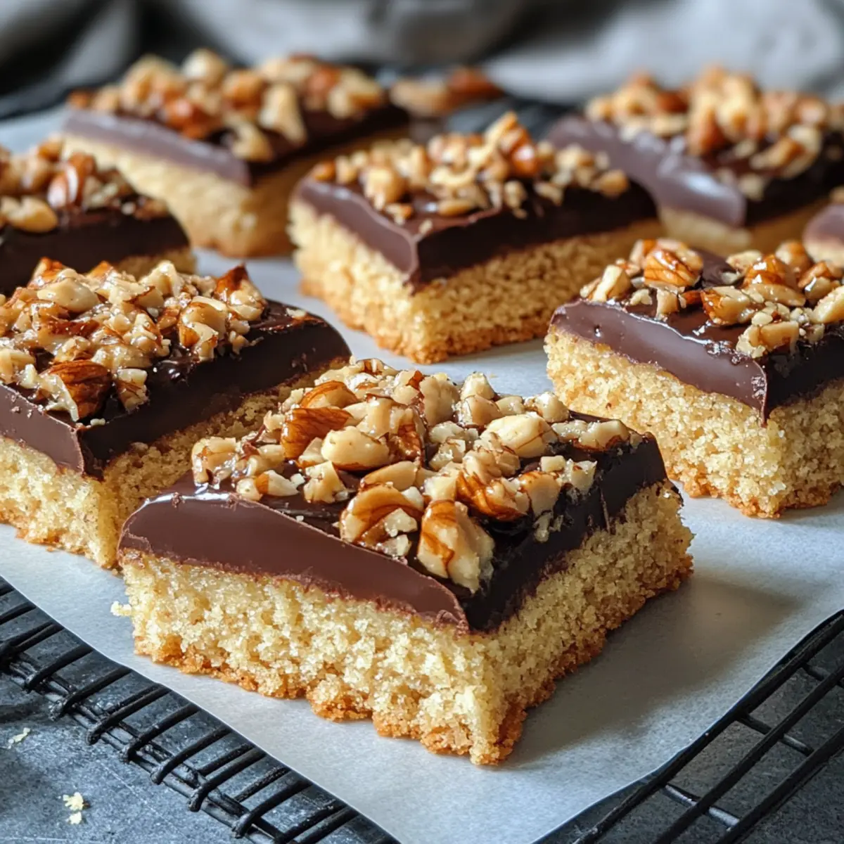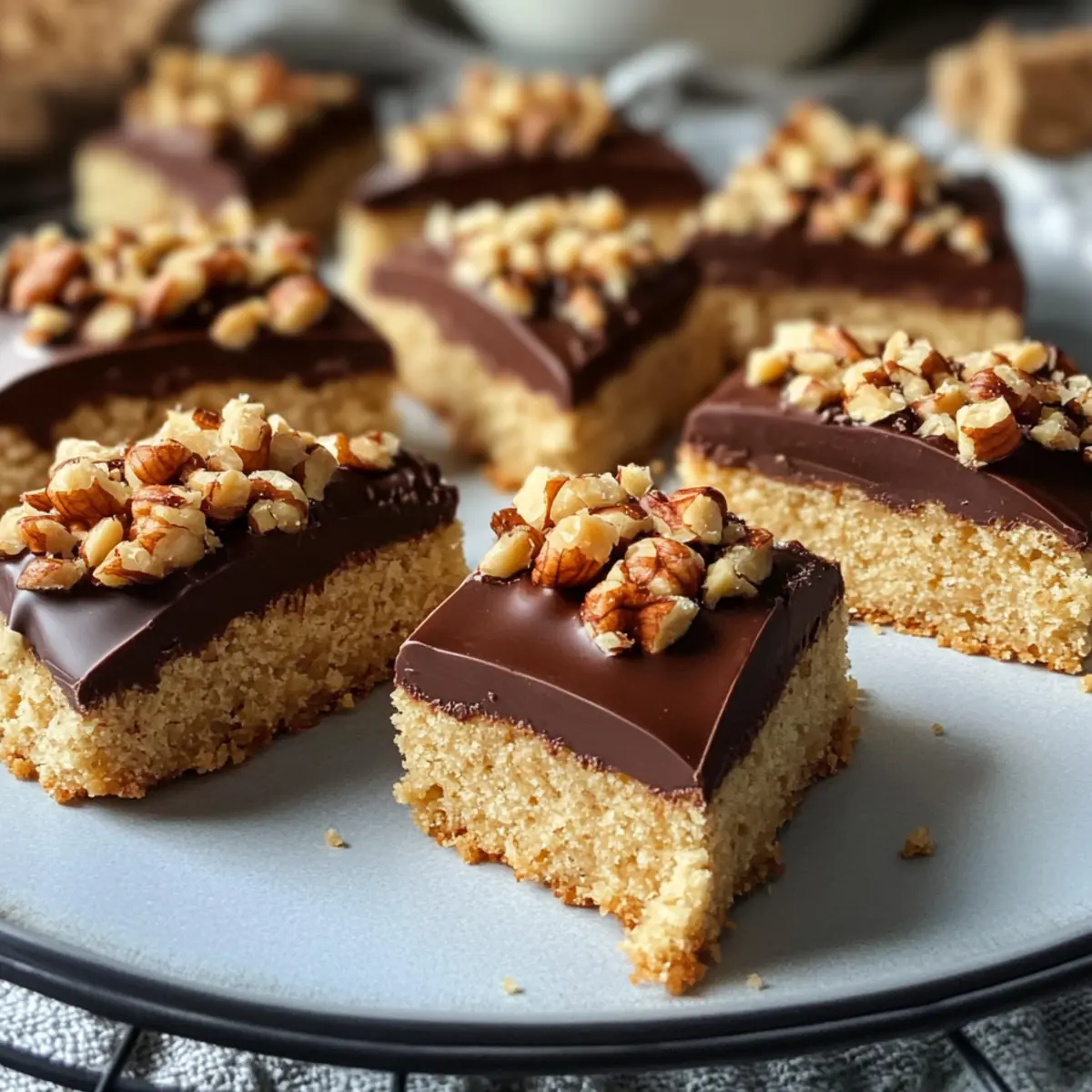 Ein verführerischer Duft von frisch gebackenem Gebäck schwebt durch meine Küche, während ich mich dem klassischen Rezept der Nussecken widme. Diese köstlichen Nut Corners bereiten nicht nur Freude beim Zubereiten, sondern auch beim Genießen. Mit ihrer buttrigen Basis und dem knusprigen Nussbelag, überzogen mit einer schokoladigen Glasur, sind Nussecken einfach zuzubereiten und eignen sich perfekt für gesellige Nachmittage oder als süßer Snack für die ganze Familie. Zudem sind sie flexibel: Du kannst sie ganz nach deinem Geschmack anpassen, indem du beispielsweise Mandeln statt Haselnüssen verwendest. Während du die knusprigen Stücke genießt, wirst du feststellen, dass sie auch ideal für glutenfreie Varianten sind. Neugierig geworden, wie du diese Leckerei selbst zubereiten kannst? Lass uns direkt loslegen! Warum wirst du Nussecken lieben? Einfachheit: Das Rezept ist unkompliziert und benötigt nur grundlegende Backfähigkeiten, was es ideal für Anfänger und erfahrene Bäcker macht. Vielseitigkeit: Du kannst die Nüsse nach deinem Geschmack variieren und sogar glutenfreie Zutaten verwenden, um jedem das Genießen zu ermöglichen. Köstlicher Geschmack: Die Mischung aus knusprigen Nüssen, süßem Aprikosenmarmelade und schokoladiger Glasur schafft ein unvergessliches Geschmackserlebnis. Perfekter Snack: Perfekt zum Teilen bei gemütlichen Teestunden oder als süße Versuchung für die ganze Familie – diese Nussecken sind einfach unwiderstehlich! Zeitersparnis: In nur wenigen Schritten und einer kurzen Backzeit zauberst du diese Leckerei und schaffst gleichzeitig unvergessliche Momente. Zusätzlicher Genuss: Wenn du noch mehr über die Zubereitung erfahren möchtest, schau dir auch unsere Tipps zu glutenfreien Varianten und alternative Nüsse an! Nussecken selber machen Zutaten Für den Teig Weizenmehl (Wheat Flour) – Sorgt für die nötige Struktur; kann durch glutenfreies Mehl ersetzt werden. Backpulver (Baking Powder) – Lässt den Teig schön aufgehen; achte darauf, dass es frisch ist. Zucker (Sugar) – Fügt die notwendige Süße hinzu; du kannst die Menge bei Bedarf reduzieren. Vanillezucker (Vanilla Sugar) – Verstärkt den Geschmack; ersetzbar durch 1 TL vanillierte Flüssigkeit. Eier (Eggs) – Bringen Feuchtigkeit und Reichhaltigkeit; Flax-Ei verwenden für eine vegane Variante. Butter – Sorgt für einen zarten und reichhaltigen Boden; pflanzliche Butter kann für eine milchfreie Version genutzt werden. Salz (Salt) – Balanced die Süße und hebt den Geschmack hervor. Für den Belag Brauner Zucker (Brown Sugar) – Gibt dem Nussbelag einen karamelligen Geschmack und sorgt für Feuchtigkeit. Milch (Milk) – Fügt zusätzliche Feuchtigkeit hinzu; jede Milchalternative ist ebenfalls verwendbar. Gemahlene Haselnüsse (Ground Hazelnuts) – Hauptgeschmacksträger; tausche sie gerne gegen Mandeln oder Walnüsse aus. Gehackte Nüsse (Chopped Nuts) – Fügt Textur hinzu; mische verschiedene Nüsse für mehr Vielfalt. Aprikosenmarmelade (Apricot Jam) – Bindet den Belag; kann durch jede andere fruchtige Marmelade ersetzt werden. Für die Glasur Zartbitterkuvertüre (Dark Chocolate Coating) – Gibt den Nussecken ein schönes Finish; verwende Milchschokolade für einen süßeren Geschmack. Schritt-für-Schritt-Anleitung für Nussecken selber machen Step 1: Boden vorbereiten Heize den Ofen auf 180°C (350°F) vor. In einer großen Schüssel vermischst du Weizenmehl, Backpulver, Zucker, Vanillezucker, Eier, Butter und Salz. Knete alles zu einem glatten Teig. Drücke den Teig gleichmäßig in ein mit Backpapier ausgelegtes Blech (37,5 x 46,5 cm) und achte darauf, dass der Boden gleichmäßig schön flach ist. Step 2: Belag zubereiten In einem kleinen Topf vermischt du den braunen Zucker, die Milch und die Butter und erhitzt die Mischung bei mittlerer Hitze, bis die Butter geschmolzen ist. Rühre dann die gemahlenen und gehackten Nüsse unter, bis alles gut vermischt ist. Diese Mischung wird gleichmäßigen, nussigen Geschmack bringen und hebt die Nussecken auf ein neues Level. Step 3: Zusammenbauen und backen Verteile die Nussmischung gleichmäßig auf dem vorbereiteten Teigboden und achte darauf, dass sie bis zu den Rändern reicht. Schiebe das Blech in den vorgeheizten Ofen und backe die Nussecken für etwa 25-30 Minuten, bis die Oberfläche goldbraun ist. Lass den verführerischen Duft auf dich wirken, während die Nussecken backen! Step 4: Glasur und Schneiden Lasse die Nussecken nach dem Backen etwas abkühlen, damit sie nicht zerbrechen. Verteile nun eine großzügige Schicht Aprikosenmarmelade gleichmäßig über die noch warmen Stücke. Schmelze die Zartbitterkuvertüre in einer Schüssel über einem Wasserbad und träufele die geschmolzene Schokolade über die Marmelade, um den Nussecken eine glänzende Glasur zu verleihen. Lass alles gut abkühlen, bevor du die Nussecken in Quadrate schneidest. Nussecken selber machen – Variationen & Substitute Lass deiner Kreativität freien Lauf und passe dieses köstliche Rezept nach deinem Geschmack an! Glutenfrei: Verwende glutenfreies Mehl, um diese Leckerei für alle zugänglich zu machen. So können auch glutenempfindliche Gäste mitgenießen. Mandeln statt Haselnüsse: Tausche die gemahlenen Haselnüsse gegen Mandeln aus, um einen süßeren, milderen Geschmack zu erreichen. Fruchtige Marmelade: Probiere Himbeer- oder Erdbeermarmelade anstelle von Aprikosenmarmelade für eine fruchtige Note. Diese Alternativen bringen frischen Wind in das Rezept. Vegan: Ersetze die Eier durch Leinsamen-Ei und die Butter durch pflanzliche Butter, damit auch Veganer in den Genuss kommen. Nüsse mixen: Kombiniere unterschiedliche Nüsse wie Walnüsse oder Pekannüsse, um Textur und zusätzliche Geschmackselemente zu schaffen. Schokoladenglasur variieren: Experimentiere mit Aromaschokoladen wie Chili oder Orange für einen aufregenden geschmacklichen Twist. Süßigkeit anpassen: Reduziere die Zuckermenge, um weniger süße Nussec