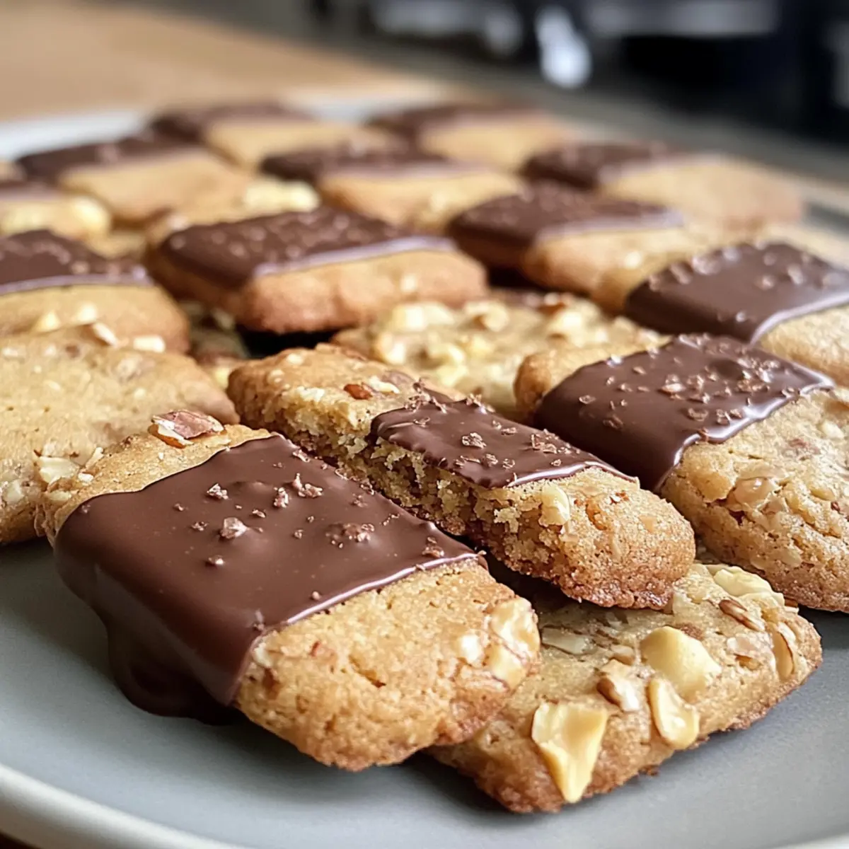 Lass die Kekse nach dem Backen auf dem Blech abkühlen. Tauche ein Ende jedes Kekses in geschmolzene Schokolade und lasse sie auf dem Blech vollständig aushärten. Die Schokolade verleiht deinen Nussplätzchen ohne Ausstechen eine köstliche Süße, die sie noch unwiderstehlicher macht.