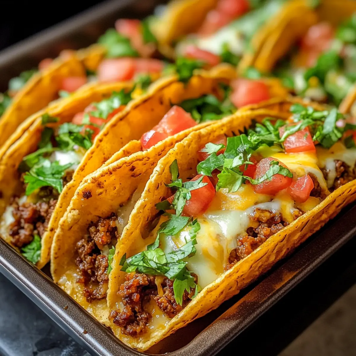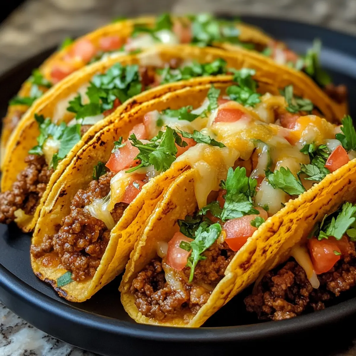 Familienfreundlich: Gekrönt von schmelzendem Käse und knusprigen Schalen sind diese Tacos ein Hit bei Groß und Klein – perfekt für das gemeinsame Abendessen.