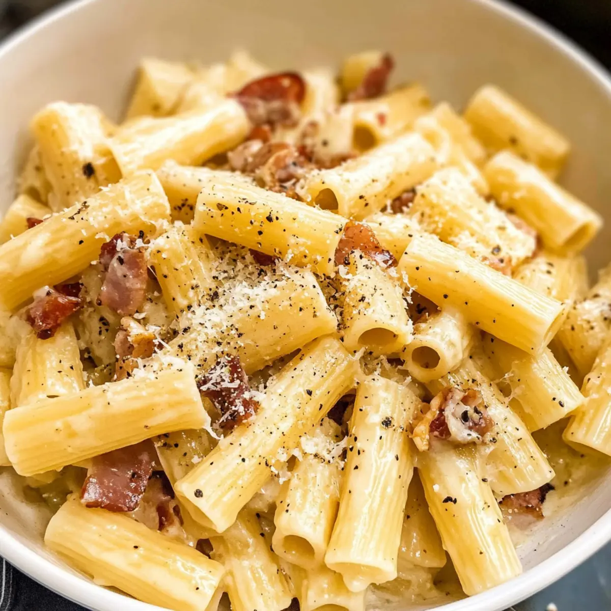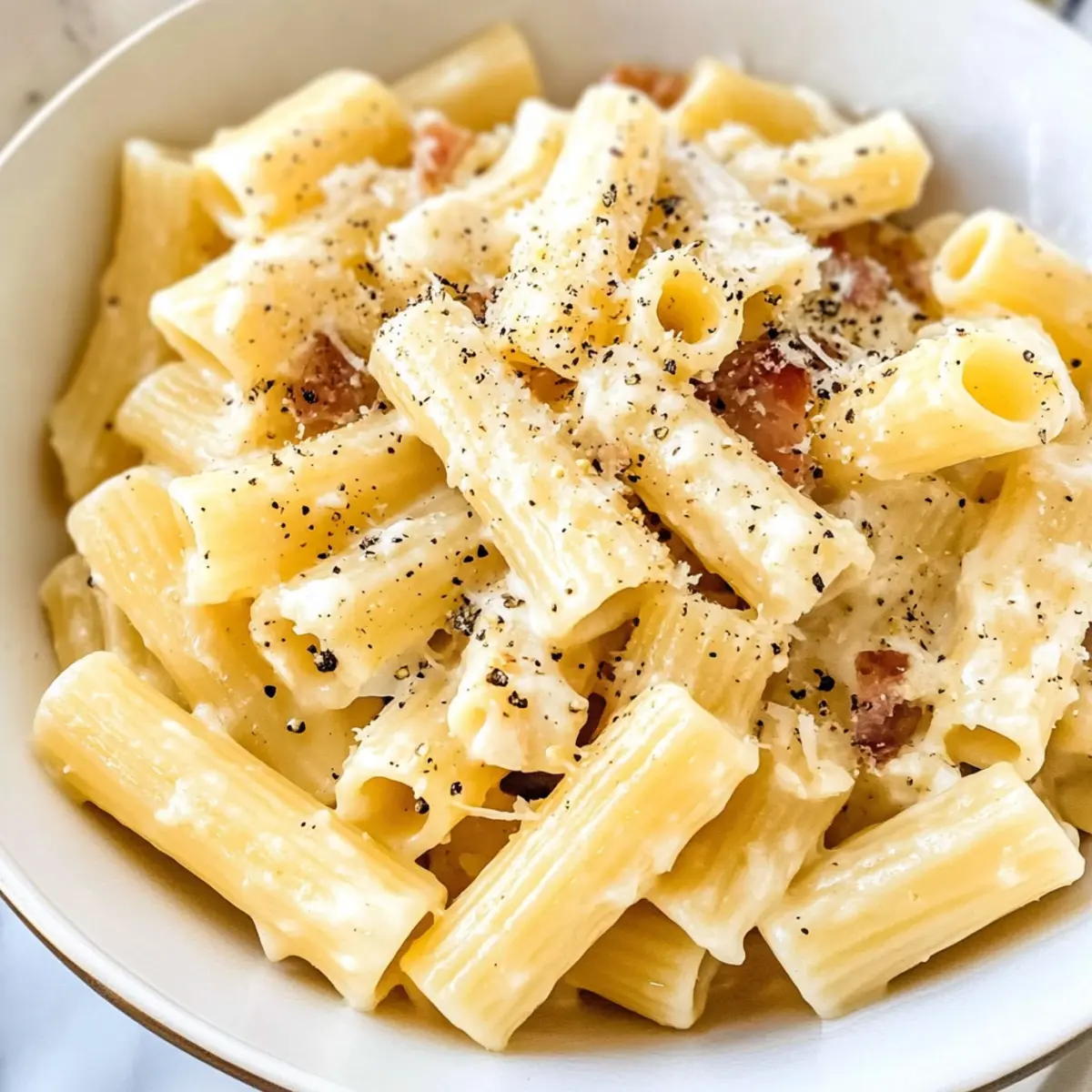 Plötzlich stand ich in einer kleinen Trattoria in Rom, als der unverkennbare Duft von frisch gebratenem Guanciale und geschmolzenem Pecorino durch die Luft zog. Diese Aromen entführten mich sofort in die Seele der italienischen Küche, und ich wusste, dass ich die perfekte Pasta Alla Gricia finden musste. Mit nur vier Zutaten – Rigatoni, Guanciale, Pecorino Romano und schwarzem Pfeffer – gelingt dieses Gericht im Handumdrehen und ist dabei eine wahre Wohlfühlmahlzeit. Bereitet in nur 20 Minuten, ist diese italienische Spezialität nicht nur schnell, sondern auch unglaublich befriedigend. Egal, ob du ein erfahrener Koch oder ein Neuling in der Küche bist, das Rezept bietet den idealen Einstieg in die Welt der italienischen Genüsse. Bist du bereit, deinen Gaumen mit dieser einfachen, aber köstlichen Pasta zu verwöhnen? Warum wirst du Pasta Alla Gricia lieben? Einfachheit: Mit nur vier Zutaten ist dieses Rezept kinderleicht und ideal für geschäftige Tage! Reichhaltiger Geschmack: Der herzhafte Guanciale und der würzige Pecorino Romano vereinen sich perfekt in jedem Bissen. Schnelle Zubereitung: In nur 20 Minuten kannst du ein authentisches italienisches Gericht zaubern.Vielseitigkeit: Perfekt als Hauptgericht oder als Begleitung zu einem frischen Caesar-Salat oder sogar einer köstlichen Pastapfanne Mit Brokkoli. Für alle: Dieses Rezept erfreut jeden – von Kochanfängern bis zu erfahrenen Küchenchefs! Pasta Alla Gricia Zutaten • Für die Pasta Rigatoni – Ideal, um die Sauce gut zu halten; du kannst auch andere kurze Pasta oder glutenfreie Alternativen verwenden. • Für die Sauce Guanciale – Diese italienische Spezialität verleiht einen tiefen, reichhaltigen Geschmack; wenn nicht verfügbar, kannst du Pancetta oder dick geschnittenen Speck verwenden. Schwarzer Pfeffer – Frisch gemahlen bringt er die Aromen perfekt zur Geltung; zusätzliche Gewürze sind nicht nötig, da die anderen Zutaten bereits salzig sind. Pecorino Romano Käse – Hartkäse, der die Sauce cremig und salzig macht; idealerweise verwendest du Pecorino, im Notfall geht auch Parmesan. Schritt-für-Schritt-Anleitung für Pasta Alla Gricia Step 1: Guanciale anbraten Erhitze eine große Pfanne bei mittlerer Hitze und gib die gewürfelte Guanciale hinein. Brate das Fleisch etwa 10 Minuten lang, bis es goldbraun und knusprig ist. Achte darauf, dass das Fett vollständig austritt und der Guanciale lecker duftet. Nimm die Pfanne vom Herd und lass das Fett für die Sauce stehen. Step 2: Pasta kochen Setze einen großen Topf mit Wasser auf, füge großzügig Salz hinzu und bringe es zum Kochen. Gib die Rigatoni hinzu und koche sie gemäß den Paketangaben, aber ziehe eine Minute ab, um sie al dente zu erhalten. Bevor du die Pasta abgießt, hebe etwa 2 Tassen des Kochwassers auf, um die Sauce später zu verfeinern. Step 3: Sauce zubereiten Stelle die Pfanne mit dem Guanciale wieder auf mittlere Hitze. Füge frisch gemahlenen schwarzen Pfeffer hinzu und röste ihn kurz für etwa 1 Minute, bis er aromatisch wird. Giess dann 1 Tasse des reservierten Pasta-Wassers hinzu und lasse die Mischung etwa 2-3 Minuten köcheln, bis sie um die Hälfte reduziert ist. Step 4: Pasta mischen Gib die al dente gekochten Rigatoni direkt in die Pfanne mit der Sauce. Verwende eine Zange, um die Pasta gut in der Sauce zu wenden, sodass sie gleichmäßig bedeckt wird. Füge die Hälfte des frisch geriebenen Pecorino hinzu und mische alles gründlich, sodass der Käse schmilzt und die Pasta cremig wird. Step 5: Fertigstellen & Servieren Rühre die knusprige Guanciale unter die Pasta und füge die restliche Käsemenge hinzu. Wenn nötig, befeuchte die Mischung mit zusätzlichem Kochwasser, um die gewünschte Konsistenz zu erreichen. Serviere die Pasta Alla Gricia heiß, garnierend mit mehr schwarzem Pfeffer und eventuell etwas Pecorino obendrauf für zusätzlichen Geschmack. Was serviert man zu Pasta Alla Gricia? Eine exquisite Pasta Alla Gricia verlangt einfach nach den richtigen Begleitern, um ein unvergessliches Essen zu kreieren. Frischer Caesar-Salat: Erfrischend knusprige Romaine mit einer cremigen Parmesan-Dressing harmonieren perfekt mit der herzhaften Pasta. Balsamico-geröstetes Gemüse: Die süßen Aromen von leicht karamellisierten Zucchini und Paprika bieten einen idealen Kontrast zur salzigen Pasta. Kräuterbrot: Knuspriges Brot, das mit Olivenöl und frischen Kräutern verfeinert ist, sorgt für einen wunderbaren Geschmacksträger für die Sauce. Italienischer Rotwein: Ein vollmundiger Chianti unterstützt die Aromen der Pasta und verstärkt das italienische Erlebnis. Tiramisu: Das klassische Dessert mit seiner zarten Kaffeenote rundet das Mahl perfekt ab und hinterlässt einen bleibenden Eindruck. Grüner Salat mit Zitronen-Dressing: Frische Blattsalate mit einem spritzigen Dressing bieten eine leichte Note und erfrischen den Gaumen. Expert Tips für Pasta Alla Gricia Richtige Salzmengen: Verwende ausreichend Salz im Pasta-Wasser (ca. 1 Esslöffel), um den Geschmack der Pasta Alla Gricia zu intensivieren. Wasserreservierung: Behalte genügend Kochwasser, um die Sauce nach Bedarf anzupassen; so bleibt die Pasta schön cremig. Hochwertige Zutaten: Nutze besten Guanciale und Pecorino Romano, um den vollen Geschmack dieser traditionellen italienischen Pasta Alla Gricia zu garantieren. Serviertemperatur: Die Pasta sofort nach dem Kochen servieren, damit die Aromen optimal zur Geltung kommen und die Konsistenz perfekt bleibt. Vermeide Überkochen: Achte darauf, die Pasta bis zur al dente-Konsistenz zu kochen; das sorgt für den richtigen Biss und verhindert ein matschiges Ergebnis. Pasta Alla Gricia Variationen und Alternativen Lass deiner Kreativität freien Lauf und entdecke, wie du dieses köstliche Gericht ganz nach deinem Geschmack anpassen kannst! Glutenfrei: Ersetze die Rigatoni durch glutenfreie Pasta, um die dish für alle genießbar zu machen. So bleibt der Genuss erhalten, ohne Kompromisse. Käsevielfalt: Verwen