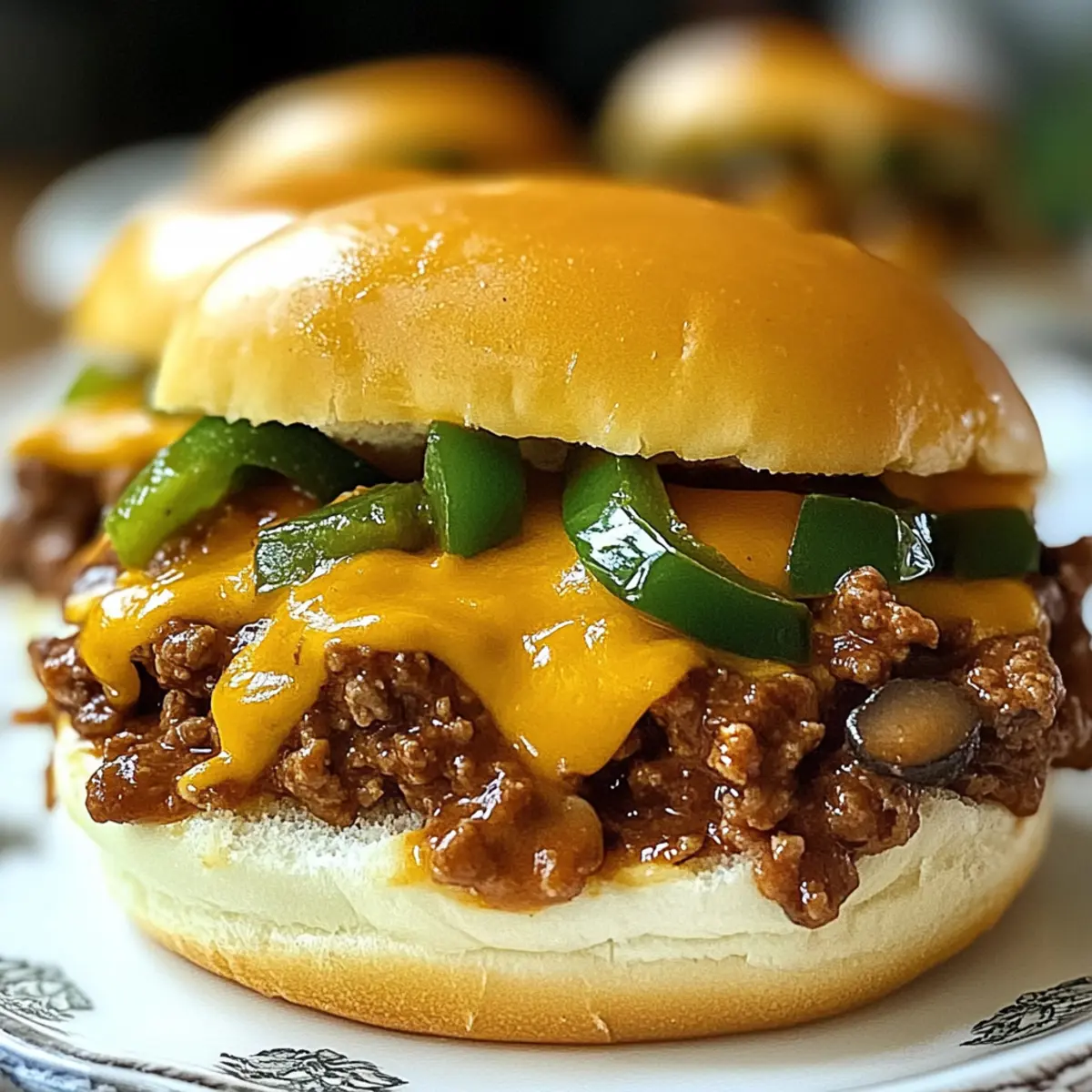 Ein bunter Teller voller Erinnerungen! Während ich in meiner Küche stehe, steigen die Aromen von saftigem Rinderhack, frischen Paprika und geschmolzenem Käse in die Luft und versetzen mich direkt in die pulsierende Atmosphäre von Philadelphia. Diese Philly-inspirierten Sloppy Joes sind nicht nur einfach zuzubereiten, sondern auch der Inbegriff von Comfort Food, das Herz und Seele gleichermaßen wärmt. Mit ihrer schnellen Zubereitungszeit und der Möglichkeit, die Zutaten ganz nach deinem Geschmack zu variieren, sind sie die perfekte Lösung für ein entspanntes Abendessen mit Freunden oder Familie. Wer kann da schon widerstehen? Lass uns gemeinsam herausfinden, wie du diese köstlichen Leckereien auf den Tisch zaubern kannst! Warum wirst du diese Sloppy Joes lieben? Einfachheit: Das Rezept ist unkompliziert und schnell zuzubereiten – ideal für stressige Wochentage! Reichhaltiger Geschmack: Die Kombination aus Rinderhack, Gemüse und schmelzendem Käse sorgt für eine Geschmacksexplosion, die jedem gefällt. Vielseitigkeit: Du kannst die Zutaten anpassend variieren, ob mit gemischtem Gemüse oder verschiedenen Käsesorten, um deinen persönlichen Touch zu verleihen. Geselligkeit: Perfekt für den nächsten Spieleabend oder ein gemütliches Familienessen – deine Gäste werden um Nachschlag bitten! Zeitersparnis: Mit einer Gesamtzubereitungszeit von lediglich 30 Minuten bist du blitzschnell fertig. Möchtest du mehr solche schnellen Rezepte ausprobieren? Schau dir unsere wunderbaren Dinner-Ideen an! Philly-inspirierte Sloppy Joes Zutaten • Für die Füllung: Rinderhackfleisch – sorgt für die reichhaltige Basis; du kannst auch gemahlenen Truthahn verwenden für eine fettärmere Variante. Zwiebel (1 große, fein gehackt) – verleiht Süße und Tiefe; gelbe oder weiße Zwiebeln sind am besten geeignet. Grüne Paprika (1, gewürfelt) – bringt Frische und Knusprigkeit; rote oder gelbe Paprika können ebenfalls verwendet werden. Knoblauch (2 Zehen, gehackt) – verstärkt den Geschmack; Knoblauchpulver kann in der Not auch genutzt werden. Champignons (200 g, gewürfelt) – trägt zu einem erdigen Geschmack und Textur bei; jede Pilzart ist nutzbar. Cheddar-Käse (1 Becher, gerieben) – sorgt für einen cremigen Genuss; Provolone oder Mozzarella sind gute Alternativen. Rinderbrühe (1 Tasse) – bringt Feuchtigkeit und geschmackliche Tiefe; Gemüsebrühe ist eine geeignete, fleischfreie Option. Worcestershiresauce (2 Esslöffel) – verstärkt den Umami-Geschmack; für eine glutenfreie Version kann Sojasauce verwendet werden. Tomatenmark (2 Esslöffel) – sorgt für einen konzentrierten Tomatengeschmack; Ketchup kann als Ersatz dienen, aber auf die Süße achten. Honig (1 Esslöffel) – balanciert die Säure mit Süße; Ahornsirup ist ein passender Ersatz. Paprika (1 Teelöffel) – gibt einen milden Pfeffergeschmack; geräucherte Paprika verleiht eine besondere Note. Kreuzkümmel (1 Teelöffel) – fügt Wärme und Erdigkeit hinzu; man kann ihn weglassen oder eine Prise Chili-Pulver verwenden. Brötchen (4 Stück, z.B. Burger-Brötchen oder Ciabatta) – hält die Füllung zusammen; glutenfreie Brötchen sind für spezielle Diäten geeignet. Salz und Pfeffer – nach Geschmack; frisch gemahlener schwarzer Pfeffer sorgt für das beste Aroma. Frisch gehackte Petersilie – wird zum Garnieren verwendet und bringt Farbe sowie Frische. Diese Philly-inspirierten Sloppy Joes sind ein wahrer Genuss! Bereite dich auf eine Geschmacksexplosion vor und genieße diese köstlichen Leckereien! Schritt-für-Schritt-Anleitung für Philly-inspirierte Sloppy Joes Step 1: Rinderhackfleisch anbraten Erhitze eine große Pfanne bei mittlerer Hitze. Füge das Rinderhackfleisch hinzu und brate es etwa 5-7 Minuten, bis es gleichmäßig braun ist und keine rosa Stellen mehr sichtbar sind. Lasse das Fett abtropfen, um eine herzhafte Basis für die Philly-inspirierten Sloppy Joes zu schaffen. Step 2: Gemüse hinzufügen Gib die fein gehackte Zwiebel und die gewürfelte grüne Paprika in die Pfanne und brate sie etwa 5 Minuten lang mit, bis sie weich und leicht gebräunt sind. Arbeite bei mittlerer Hitze, damit das Gemüse gleichmäßig gart und seine Aromen gut entfalten kann. Step 3: Knoblauch und Champignons einrühren Füge den gehackten Knoblauch und die gewürfelten Champignons hinzu und koche alles für weitere 3-4 Minuten. Achte darauf, dass die Champignons weich sind und den Großteil ihrer Flüssigkeit abgeben, um den Geschmack der Philly-inspirierten Sloppy Joes zu intensivieren. Step 4: Soße anrühren Mische das Tomatenmark, die Worcestershiresauce, den Honig und die Rinderbrühe unter die Mischung in der Pfanne. Rühre alles gut um, bis die Zutaten gleichmäßig verteilt sind, und lasse die Soße etwa 2 Minuten köcheln. Dies sorgt für eine tolle Grundlage und Geschmackstiefe. Step 5: Gewürze hinzufügen und köcheln lassen Integriere Paprika und Kreuzkümmel und würze die Mischung mit Salz und Pfeffer nach Geschmack. Bring die Mischung zum Kochen, reduziere die Hitze und lasse sie 10 Minuten lang leicht köcheln, bis die Soße dickflüssiger wird und die Aromen der Philly-inspirierten Sloppy Joes verschmelzen. Step 6: Käse schmelzen Streue den geriebenen Cheddar-Käse gleichmäßig über die Mischung in der Pfanne. Decke die Pfanne ab und lasse den Käse etwa 2 Minuten schmelzen, bis er schön cremig ist und sich leicht über die Füllung zieht. Step 7: Servieren Schneide die Brötchen auf und verteile die Mischung gleichmäßig auf die unteren Hälften. Garniere jeden Sloppy Joe mit frisch gehackter Petersilie für eine farbenfrohe Note und serviere sie sofort. Diese Philly-inspirierten Sloppy Joes sind perfekt für ein geselliges Abendessen! Variationen & Alternativen für Philly-inspirierte Sloppy Joes Entfessle deine Kreativität und passe die Rezeptur ganz nach deinem Geschmack an! Fleischvariante: Ersetze das Rinderhackfleisch durch gemahlenen Truthahn oder eine pflanzliche Option