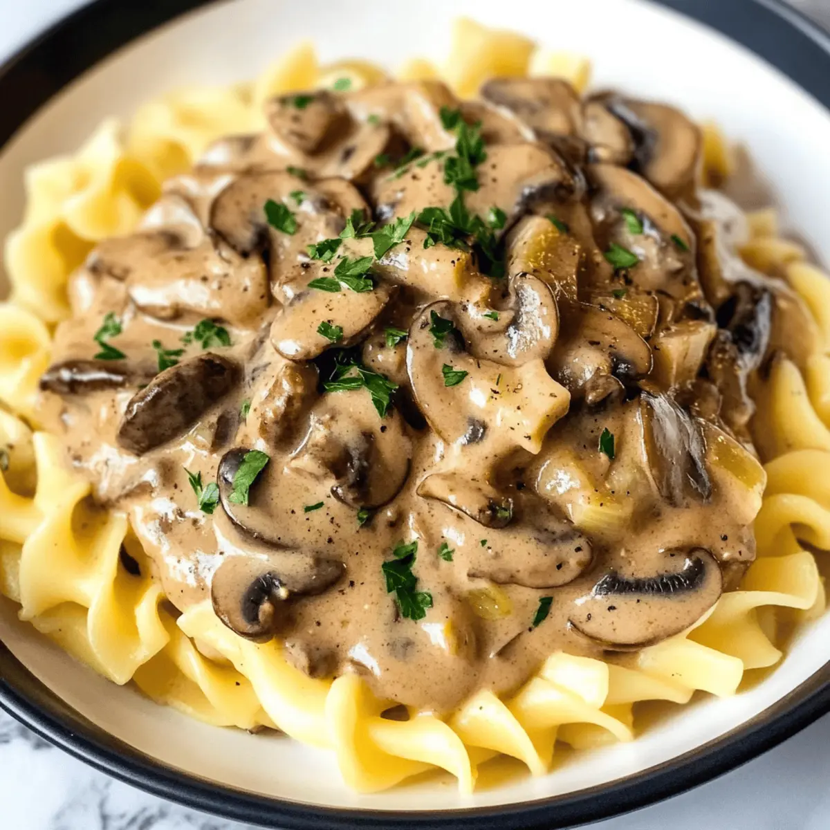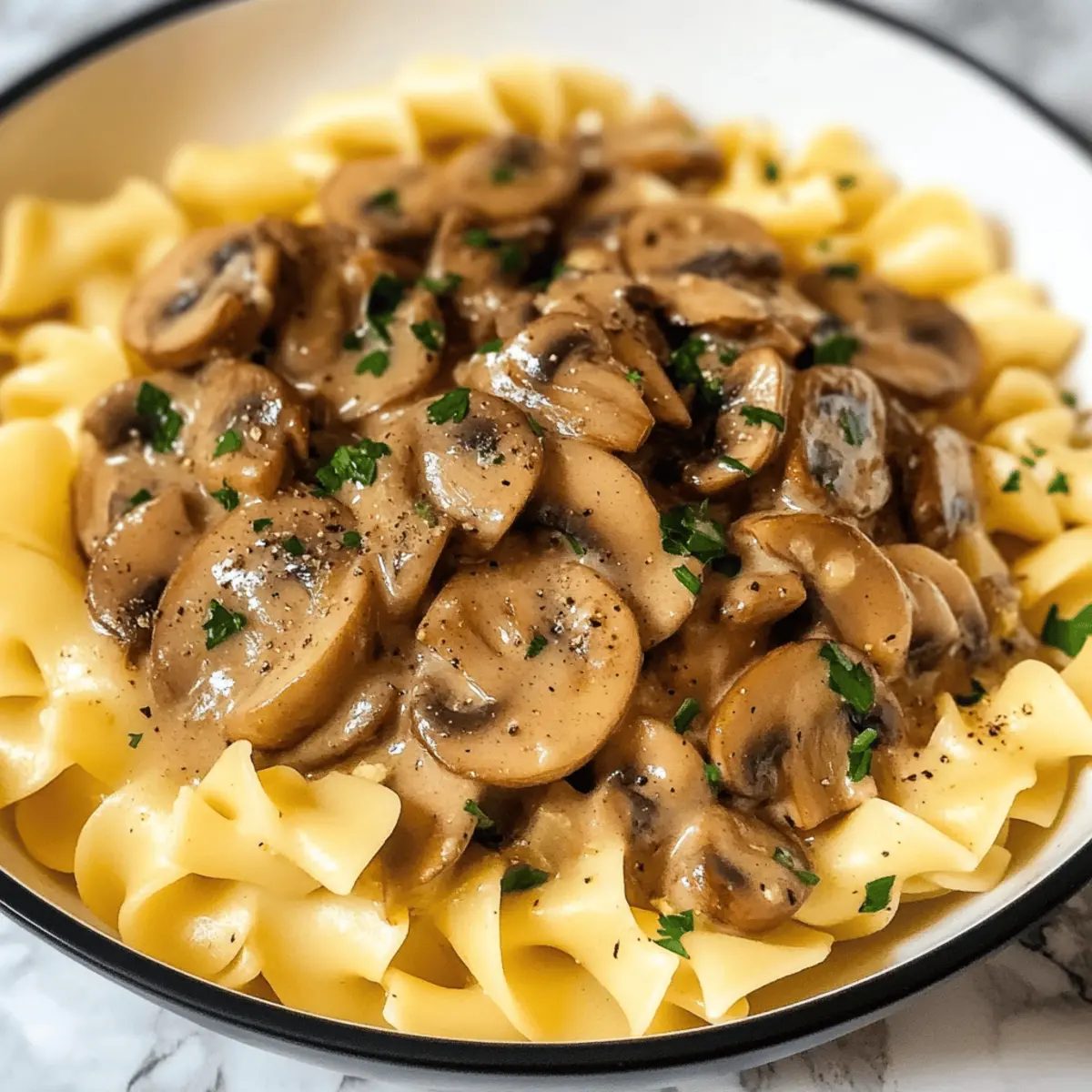 Eines der besten Dinge am Kochen ist die Möglichkeit, Gerichte ganz nach Ihrem Geschmack zu gestalten. Wenn ich den verführerischen Duft von Pilz-Stroganoff in meiner Küche wahrnehme, fühle ich mich sofort geborgen. Diese cremige, vegetarische Variante kombiniert die erdigen Aromen von Cremini-Pilzen mit einem Hauch von geräuchertem Paprika und frischem Thymian – und das alles in nur 30 Minuten! Perfekt für hektische Wochentage, ist dieses Gericht nicht nur schnell zubereitet, sondern auch ein wahrer Genuss für die Seele. Wer kann schon einem vollmundigen, herzhaften Abendessen widerstehen? Lassen Sie uns gemeinsam in dieses köstliche Rezept eintauchen, das den Zauber der vegetarischen Küche einfängt. Welche kleinen Geheimnisse werden Sie in Ihrem eigenen Pilz-Stroganoff entdecken? Warum ist dieser Pilz-Stroganoff besonders? Einfache Zubereitung: In nur 30 Minuten kreieren Sie ein köstliches, gemütliches Gericht, das Sie und Ihre Lieben begeistern wird. Vielseitigkeit: Passen Sie den Pilz-Stroganoff ganz nach Ihrem Geschmack an, indem Sie verschiedene Pilzsorten oder sogar zusätzliches Gemüse wie Spinat hinzufügen. Reichhaltiger Geschmack: Die Kombination aus erdigen Cremini-Pilzen und dem rauchigen Paprika sorgt für einen unverwechselbaren, herzhaften Genuss, der jedem schmeichelt. Perfekte Konsistenz: Die cremige Sauce umhüllt jede Nudel und macht jede Gabel zu einem wahren Erlebnis. Für mehr köstliche vegetarische Rezepte schauen Sie sich auch meinen Vegetarischen Eintopf oder das Cremige Nudelgericht an! Pilz-Stroganoff Zutaten Für die Nudeln • Eiernudeln – Der Hauptbestandteil; verwenden Sie glutenfreie Pasta für eine Alternative. Für die Sauce • Butter – Verleiht reichhaltiges Aroma; kann durch Olivenöl für eine milchfreie Option ersetzt werden. • Cremini-Pilze – Die aromatische Basis, halbiert oder geviertelt für eine feine Textur; mischen Sie verschiedene Pilze für einen abwechslungsreichen Geschmack. • Zwiebel – Füge Süße und Tiefe hinzu; gelbe oder weiße Zwiebeln sind ideal. • Knoblauch – Aromatischer Geschmacksträger; Knoblauchpulver kann im Verhältnis 1:8 als Ersatz verwendet werden. • Trocken Weißwein – Zum Ablöschen und zur Geschmackssteigerung; ersetzen Sie es durch Gemüsebrühe für eine alkoholfreie Variante. • Pilzbrühe – Fügt Umami-Geschmack hinzu; auch Gemüsebrühe kann verwendet werden, wenn Pilzbrühe nicht verfügbar ist. • Mehl – Als Bindemittel für die Sauce; verwenden Sie Maisstärke für eine glutenfreie Alternative. • Sauerrahm – Sorgt für Cremigkeit und einen Hauch von Säure; griechischer Joghurt ist eine fettärmere Option. • Thymian – Frische Kräuternote; getrockneter Thymian kann im Verhältnis 1:1 verwendet werden. • Dijon-Senf – Fügt scharfen Geschmack hinzu; kann weggelassen werden, falls kein Senf gewünscht ist. • Geräuchertes Paprika – Verleiht ein rauchiges Aroma; gewöhnliches Paprika kann verwendet werden, wenn geräuchertes nicht verfügbar ist. • Frische Petersilie/Schnittlauch – Für Garnierung und Frische; optional, aber empfehlenswert. Optional für die Garnierung • Frische Kräuter – Petersilie oder Schnittlauch; bringen Sie Farbe und zusätzliche Frische ins Gericht. Entdecken Sie den guten Geschmack von Pilz-Stroganoff und lassen Sie sich von dieser köstlichen vegetarischen Variante begeistern! Schritt-für-Schritt-Anleitung für Pilz-Stroganoff Step 1: Eiernudeln kochen Bringen Sie einen großen Topf mit gut gesalzenem Wasser zum Kochen. Fügen Sie die Eiernudeln hinzu und kochen Sie sie entsprechend den Packungsanweisungen al dente (normalerweise 8–10 Minuten). Sobald die Nudeln fertig sind, gießen Sie sie ab und mischen sie mit einem kleinen Stück Butter, um ein Verkleben zu verhindern und zusätzlichen Geschmack hinzuzufügen. Step 2: Pilze anbraten Erhitzen Sie eine große Pfanne bei mittlerer Hitze und geben Sie die Hälfte der Butter hinein. Fügen Sie die Cremini-Pilze hinzu, würzen Sie sie mit Salz und Pfeffer und braten Sie sie goldbraun an (ca. 8–10 Minuten). Entfernen Sie die angebratenen Pilze aus der Pfanne und stellen Sie sie beiseite, während Sie die Zwiebeln und den Knoblauch zubereiten. Step 3: Zwiebeln und Knoblauch sautieren In der gleichen Pfanne geben Sie die restliche Butter hinzu und lassen Sie sie schmelzen. Fügen Sie die gehackte Zwiebel und den Knoblauch hinzu und sautieren Sie alles für etwa 5 Minuten, bis die Zwiebeln weich und leicht durchscheinend sind. Diese Mischung wird die aromatische Grundlage für Ihren Pilz-Stroganoff. Step 4: Wein reduzieren Gießen Sie den trockenen Weißwein in die Pfanne und kratzen Sie mit einem Holzlöffel die gebräunten Stücke vom Pfannenboden ab. Lassen Sie den Wein bei mittlerer Hitze etwa 2–3 Minuten einkochen, bis er auf etwa die Hälfte reduziert ist. Dies intensiviert den Geschmack und gibt dem Gericht eine wunderbare Tiefe. Step 5: Sauce anrichten In einer Schüssel vermischen Sie das Mehl mit der Pilzbrühe, bis es gut aufgelöst ist. Gießen Sie diese Mischung zusammen mit den angebratenen Pilzen, Thymian, Dijon-Senf und geräuchertem Paprika in die Pfanne. Bringen Sie alles zum Kochen und lassen Sie die Sauce für 3–4 Minuten köcheln, bis sie dick wird und wunderbar duftet. Step 6: Sauerrahm unterheben Reduzieren Sie die Hitze auf niedrig und rühren Sie den Sauerrahm ein, bis er gut mit der Sauce vermischt ist. Schmecken Sie den Pilz-Stroganoff mit Salz und Pfeffer ab. Die Sauce sollte jetzt cremig und reichhaltig sein, um die Nudeln perfekt zu umhüllen. Step 7: Anrichten und servieren Servieren Sie den Pilz-Stroganoff über den buttrigen Nudeln, die Sie zuvor zubereitet haben. Garnieren Sie das Gericht nach Belieben mit frisch gehackter Petersilie oder Schnittlauch für einen zusätzlichen Farb- und Frischekick. Ihr köstlicher Pilz-Stroganoff ist jetzt bereit, genossen zu werden! Vorbereitung für den Pilz-Stroganoff im Voraus Der Pilz-Stroganoff 