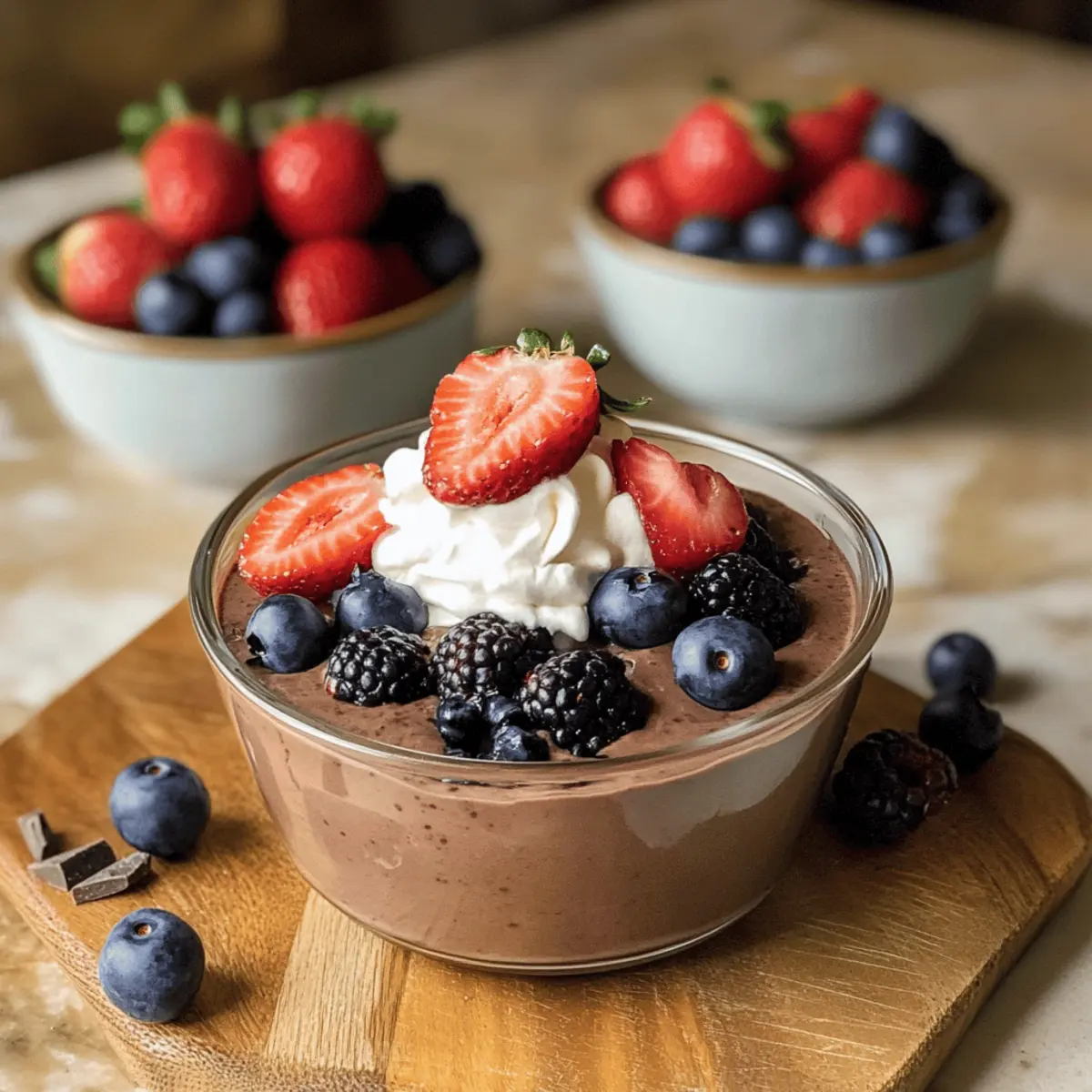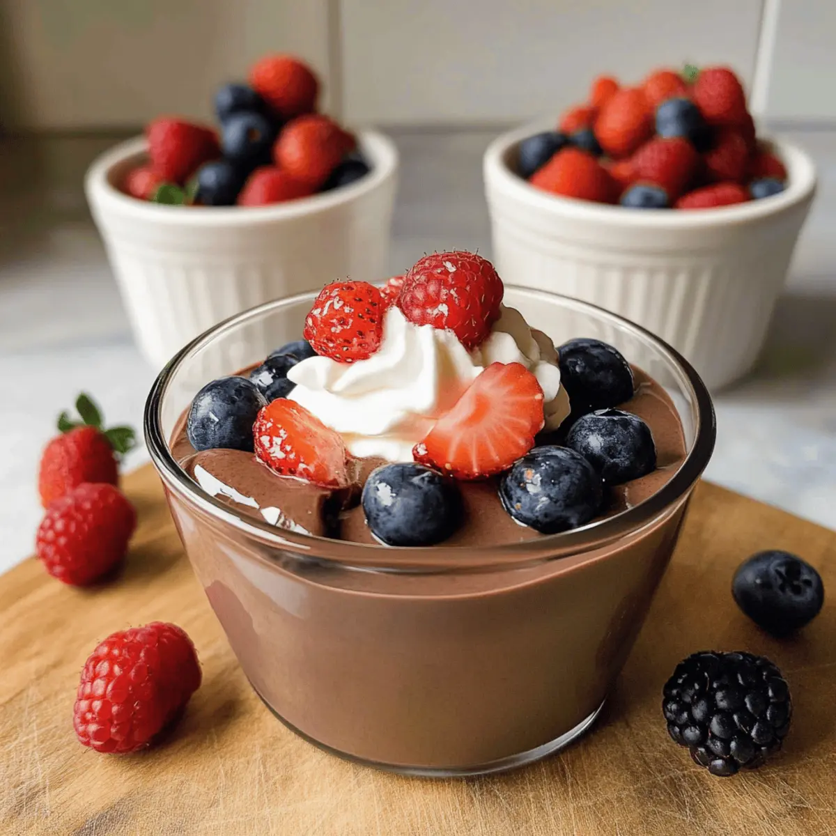 Wenn ich an einen schokoladigen Snack denke, der sowohl befriedigend als auch nahrhaft ist, muss ich an mein beliebtes Rezept für Proteinpudding denken. Dieser cremige, schokoladige Genuss bietet über 40 Gramm Protein pro Portion, was ihn zu einer idealen Wahl für alle macht, die auf eine gesunde Ernährung achten, aber nicht auf Geschmack verzichten möchten. Mit nur fünf einfachen Zutaten ist dieser Proteinpudding nicht nur schnell vorbereitbar, sondern auch perfekt als köstlicher Snack für zwischendurch. Ob nach dem Workout oder einfach als süße Belohnung, dieser Pudding wird sicherlich zu deinem neuen Liebling. Bist du bereit, deinen Gaumen mit diesem himmlischen Dessert zu verwöhnen? Warum wirst du diesen Proteinpudding lieben? Vielfalt, dieser Proteinpudding ist extrem anpassbar und lässt sich nach deinem Geschmack variieren. Einfach zuzubereiten, mit nur fünf Zutaten benötigt er minimalen Aufwand und ist schnell fertig. Gesund und nährstoffreich, mit über 40 Gramm Protein pro Portion ist er perfekt für Fitnessliebhaber und Süßigkeitenliebhaber. Cremige Textur, die fast wie ein Schokoladenmousse schmeckt, wird dich umhauen. Perfekt zum Vorkochen, du kannst ihn im Kühlschrank aufbewahren und hast jederzeit einen köstlichen Snack zur Hand. Probiere auch unsere Butterkekskuchen Mit Pudding oder die Griechische Pudding Tarte für weitere leckere Dessertideen! Proteinpudding Zutaten • Verwandle einfache Zutaten in ein köstliches Dessert! Für die Basis Griechischer Joghurt – bildet die cremige Grundlage; verwende Vollfett für einen reichhaltigen Geschmack. Schokoladen-Protein-Pulver – fügt sowohl Proteine als auch schokoladigen Geschmack hinzu; unflavored Proteinpulver eignet sich gut als Ersatz. Für den Schokoladengeschmack Ungesüßtes Kakaopulver – verstärkt den Schokoladengeschmack; passe die Menge nach deinem persönlichen Geschmack an. Vanilleextrakt – hebt die Aromen hervor; wähle zwischen reinem oder Imitat. Für die Süße Ahornsirup – sorgt für natürliche Süße; Honig oder Agavendicksaft sind tolle Alternativen. Dieser Proteinpudding wird sicher zu einem deiner neuen Favoriten! Schritt-für-Schritt-Anleitung für Proteinpudding Step 1: Zutaten vermengen In einer großen Schüssel griechischen Joghurt, Schokoladen-Protein-Pulver, ungesüßtes Kakaopulver, Vanilleextrakt und Ahornsirup gründlich vermengen. Verwende einen Schneebesen, um sicherzustellen, dass keine Klumpen entstehen, und alles gut verbunden wird. Die Mischung sollte eine gleichmäßige, cremige Konsistenz erreichen. Step 2: Konsistenz prüfen und anpassen Nachdem alle Zutaten gut vermischt sind, überprüfe die Konsistenz des Proteinpuddings. Er sollte dick und cremig sein. Falls du eine süßere Note bevorzugst, füge nach Belieben etwas mehr Ahornsirup hinzu und mische es erneut, bis alles gleichmäßig verteilt ist. Step 3: Kühlen für die perfekte Textur Decke die Schüssel mit Frischhaltefolie ab und stelle sie für mindestens eine Stunde in den Kühlschrank. Dieser Schritt ist entscheidend, da das Kühlen den Proteinpudding dicker und schmackhafter macht. Die Kühle wird auch dazu beitragen, die Aromen optimal zur Geltung zu bringen. Step 4: Servieren und garnieren Bevor du deinen Proteinpudding servierst, rühre ihn kurz durch, um die Cremigkeit wieder zu aktivieren. Du kannst ihn pur genießen oder nach Belieben mit Schlagsahne, Schokoladenspänen und frischen Beeren garnieren. Diese zusätzlichen Toppings bringen noch mehr Geschmack und Textur in dein Dessert. Step 5: Genießen und aufbewahren Der Proteinpudding ist nun fertig zum Genießen! Du kannst ihn als gesunden Snack nach dem Workout essen oder als köstliches Dessert. Bewahre die Reste in einem luftdichten Behälter im Kühlschrank auf, wo er bis zu vier Tage frisch bleibt. Was passt gut zu Proteinpudding? Um ein vollmundiges Gericht zu kreieren, kombiniere diesen köstlichen Proteinpudding mit einer Vielzahl von Beilagen, die deinen Gaumen erfreuen werden. Cremige Haferflocken: Diese warmen, herzhaften Haferflocken schaffen einen perfekten Kontrast zur kühlen Frische des Proteinpuddings. Mit ihrer sanften Süße ergänzen sie die schokoladige Intensität und machen das Frühstück oder einen Snack besonders nahrhaft. Frische Beeren: Himbeeren oder Erdbeeren bringen eine fruchtige Frische, die wunderbar mit der Schokolade harmoniert. Die süßen und saftigen Beeren sind nicht nur geschmacklich eine Freude; sie liefern auch einen gesunden Kick an Vitaminen. Nüsse und Samen: Eine Mischung aus gerösteten Mandeln und Chiasamen sorgt für einen knackigen Biss und zusätzliche Nährstoffe. Diese Kombination bietet gesunde Fette und macht den Proteinpudding noch sättigender und nahrhafter. Schokoladenstückchen: Für die Schokoladenliebhaber sind dunkle Schokoladenstückchen der perfekte Topping. Sie schmelzen leicht im Pudding und verleihen ihm einen intensiveren Geschmack, der jede Gabel zu einem Genuss macht. Kaffee oder Espresso: Eine Tasse aromatischer Kaffee kann eine leckere Begleitung zu deinem Dessert sein. Die bitteren Noten des Kaffees harmonieren perfekt mit der Süße des Proteinpuddings und machen das Ganze zu einer wächst heißgeliebten Kombination. Griechischer Joghurt: Ein Klecks griechischer Joghurt obenauf rundet den Proteinpudding noch zusätzlich ab und sorgt für eine extra Portion Protein. Diese Kombination ist besonders ideal nach dem Workout und ermöglicht eine kreative Variabilität in der Präsentation. Expertentipps für Proteinpudding • Gründliches Mischen: Achte darauf, alle Zutaten gut zu vermengen, um Klumpen im Proteinpudding zu vermeiden. Eine cremige Konsistenz ist das Ziel! • Süße Anpassen: Wenn du deinen Pudding süßer magst, füge nach und nach mehr Ahornsirup hinzu, um den perfekten Geschmack zu finden. • Kühlen ist wichtig: Lasse den Pudding mindestens eine Stunde im Kühlschrank, damit er die richtige Dicke und Textur erreicht. • Vielfältige Toppings: 